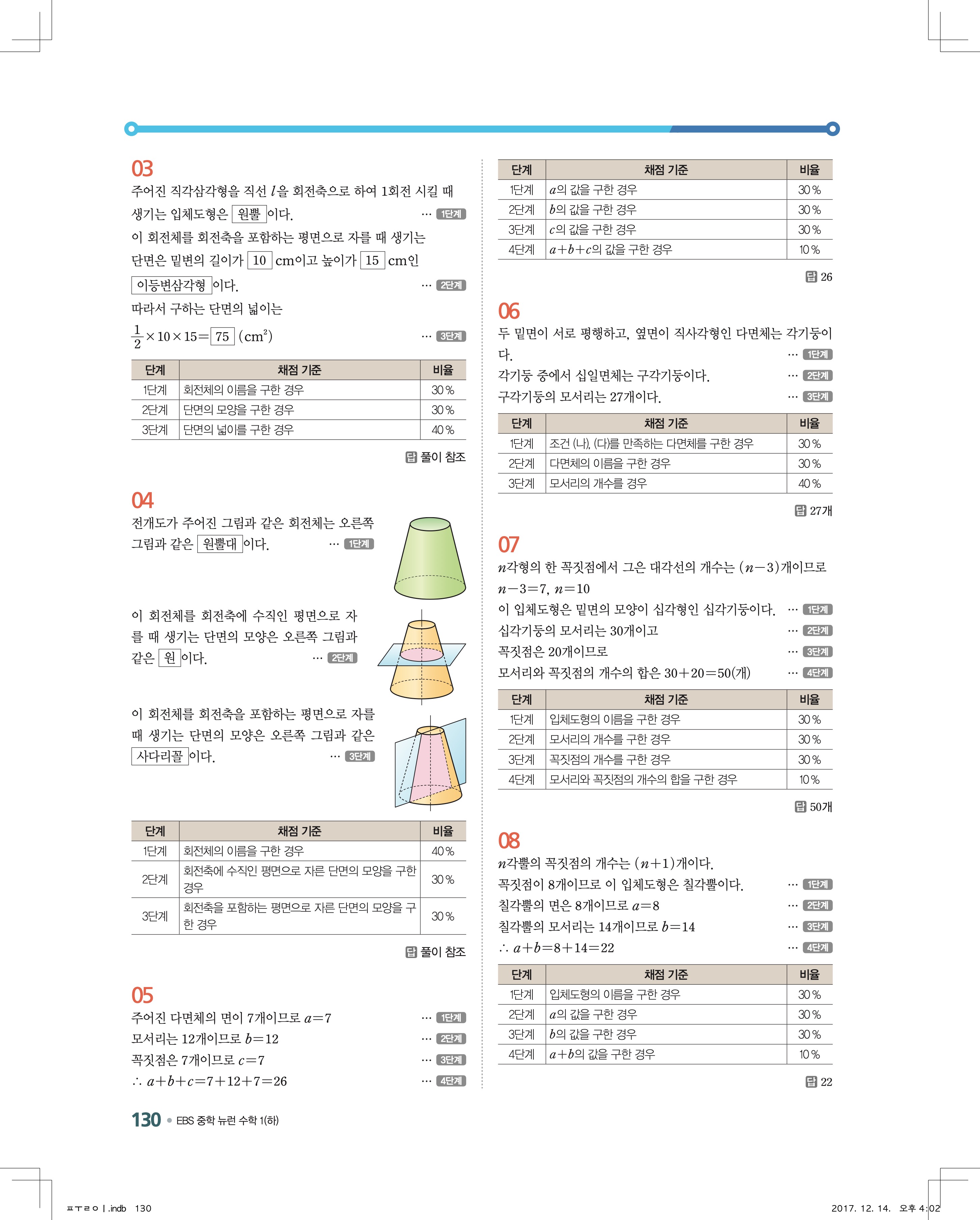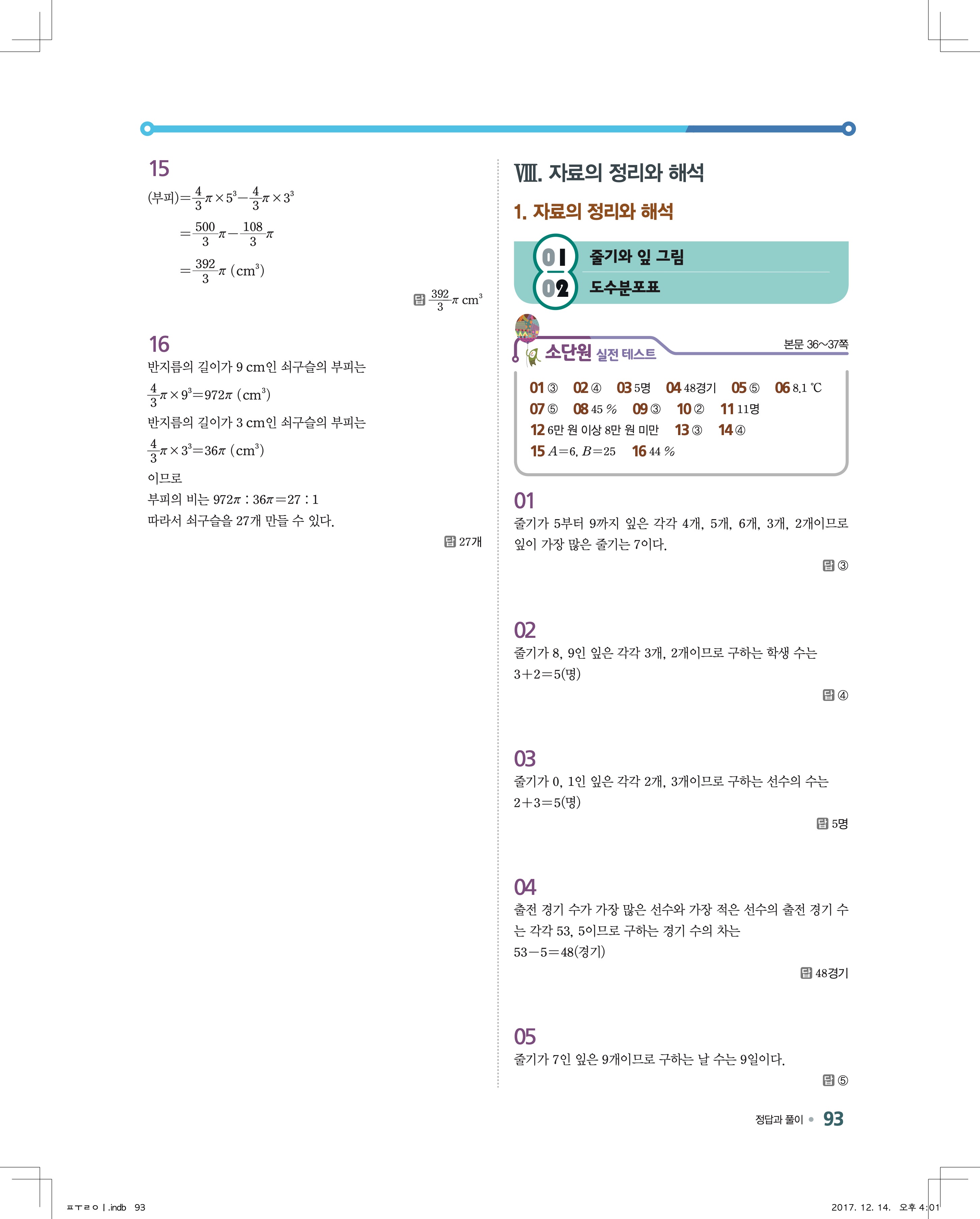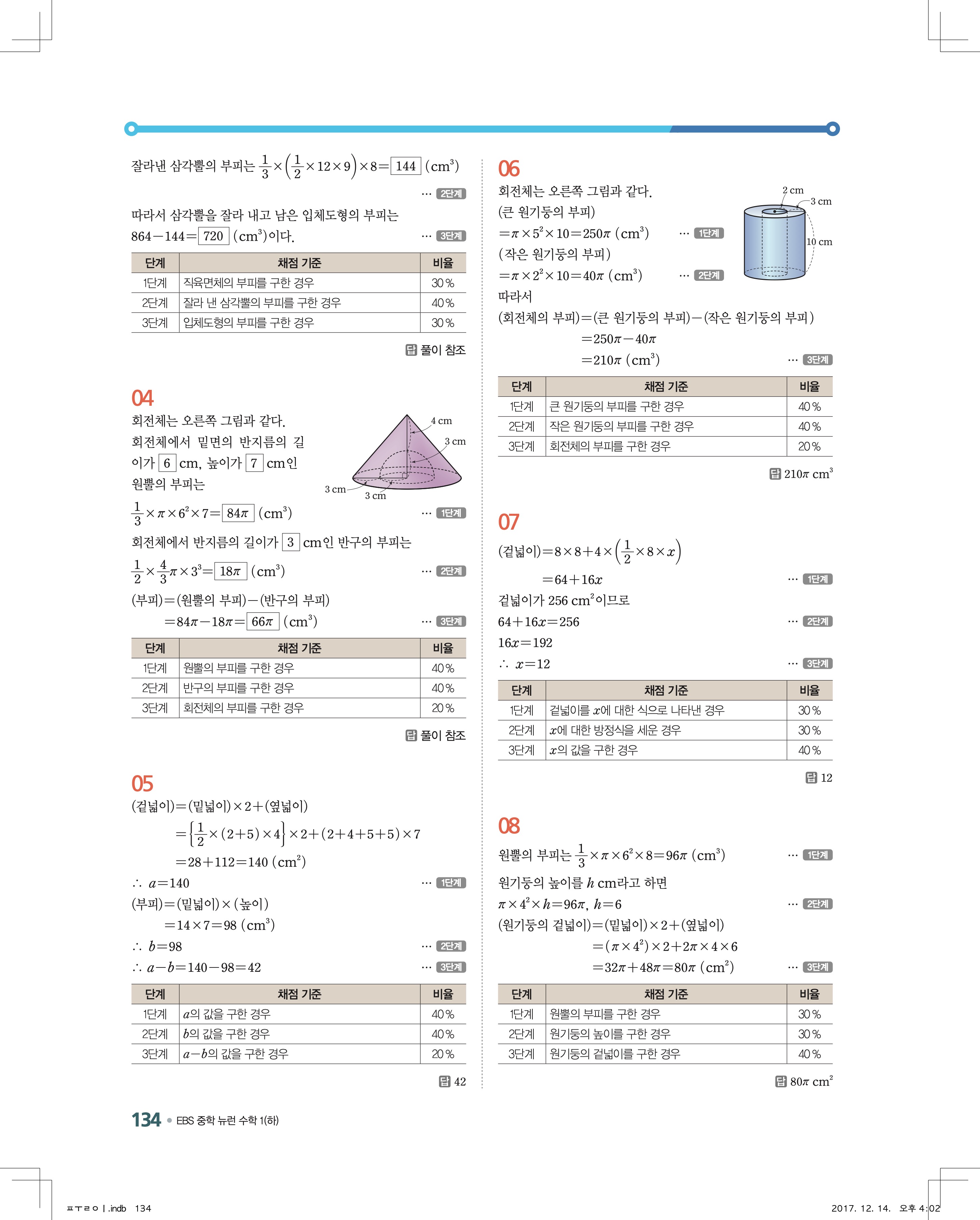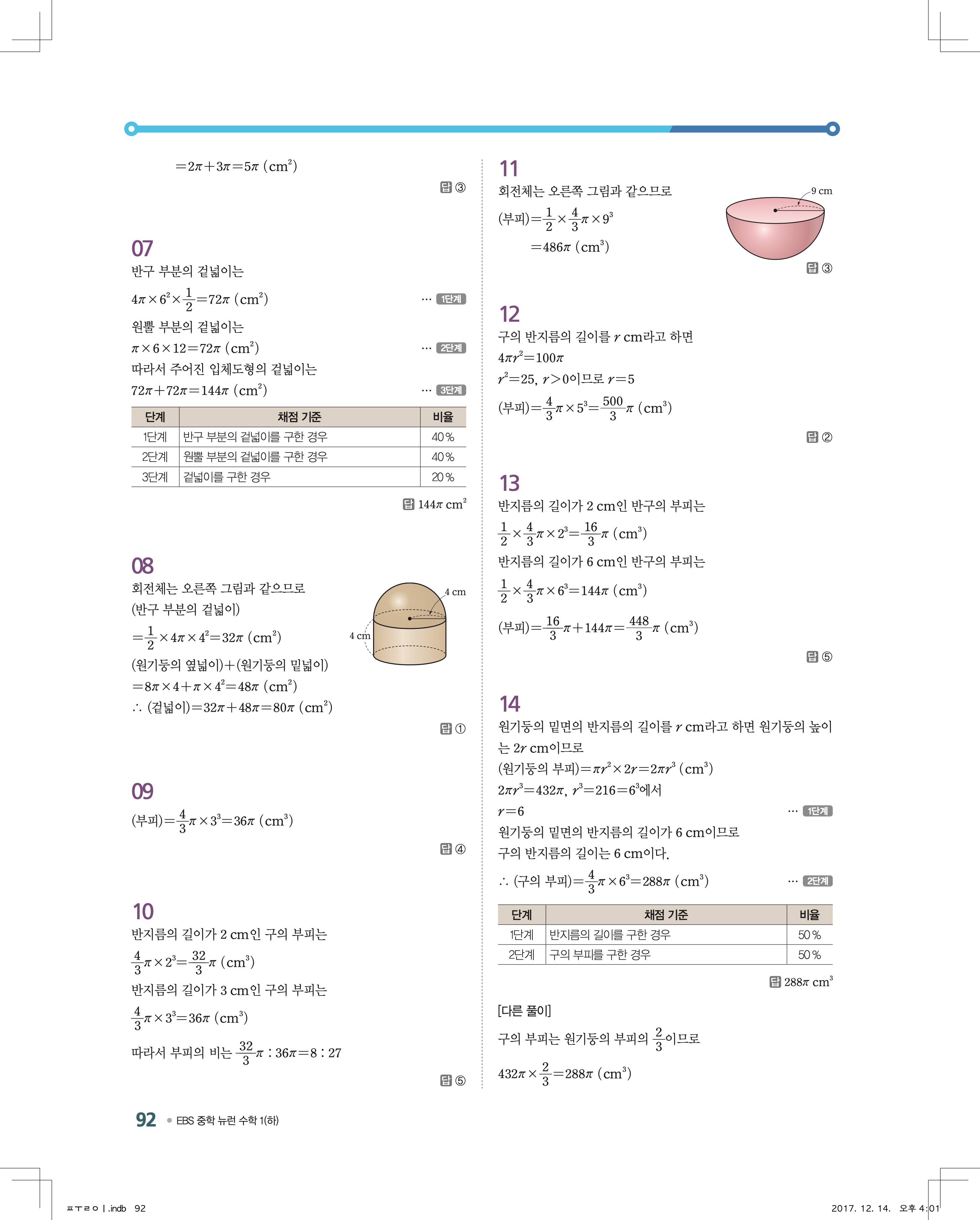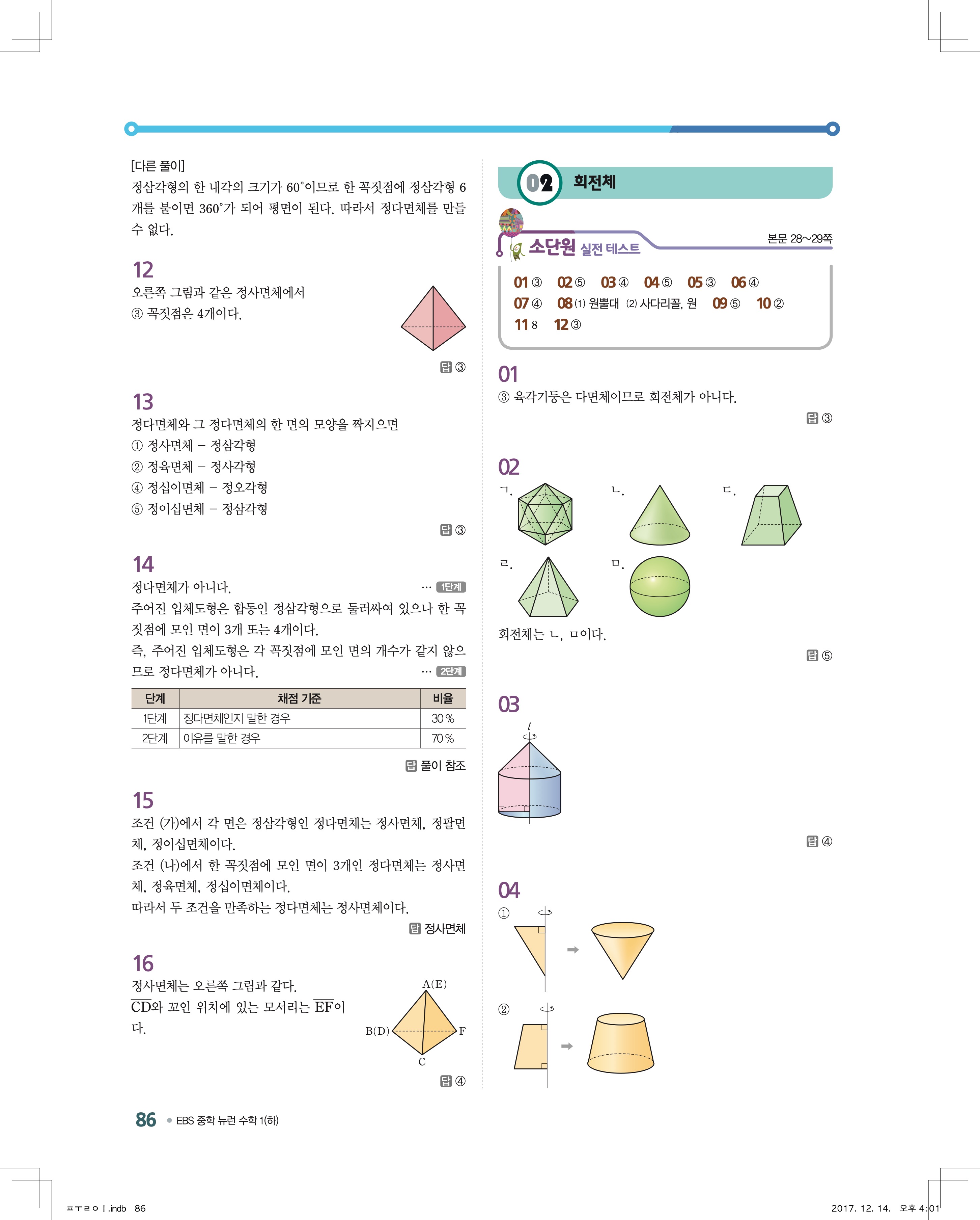 EBS 중학뉴런 수학1하 답지 해설 바로보는 사진답지 빠른답지 모바일최적화