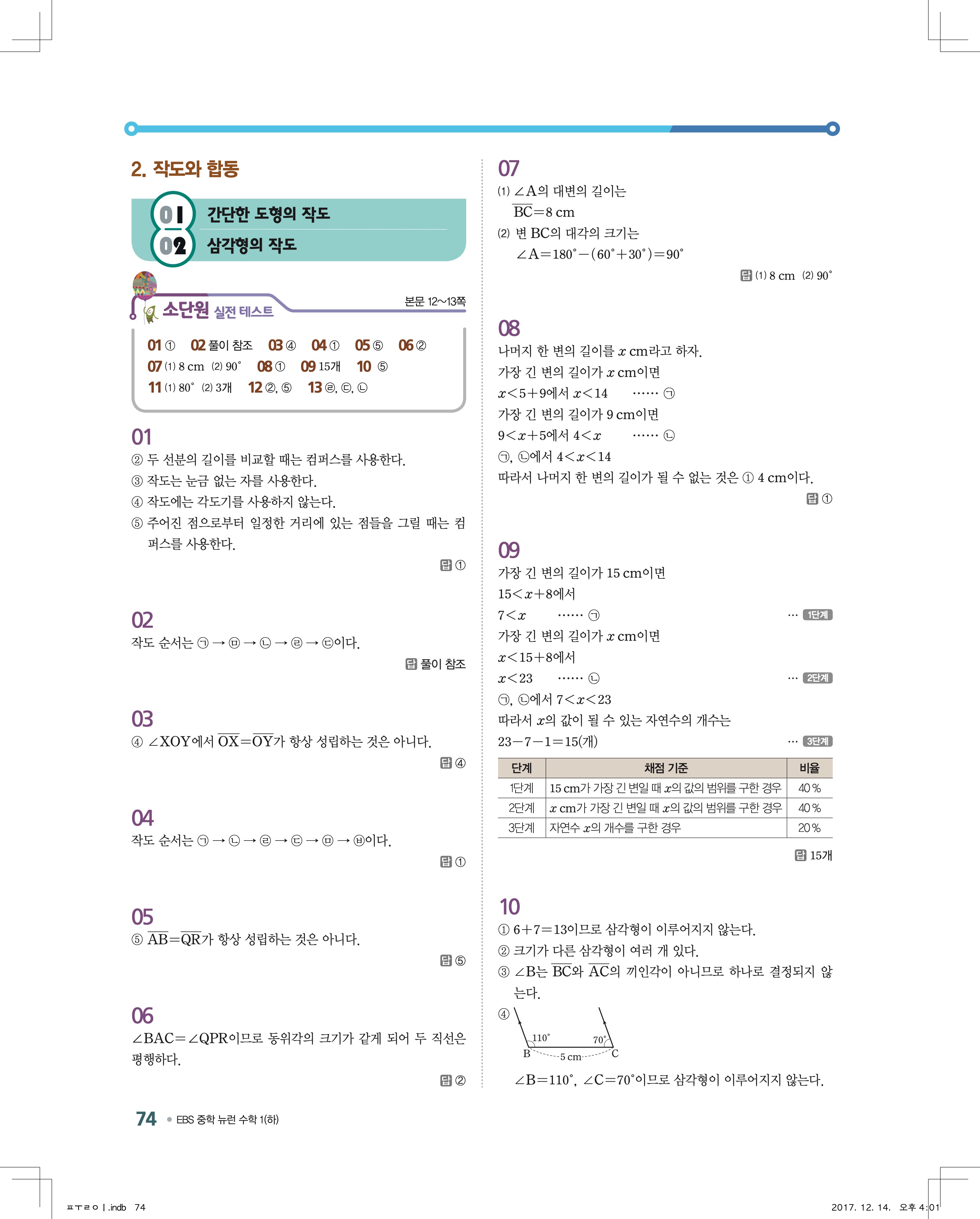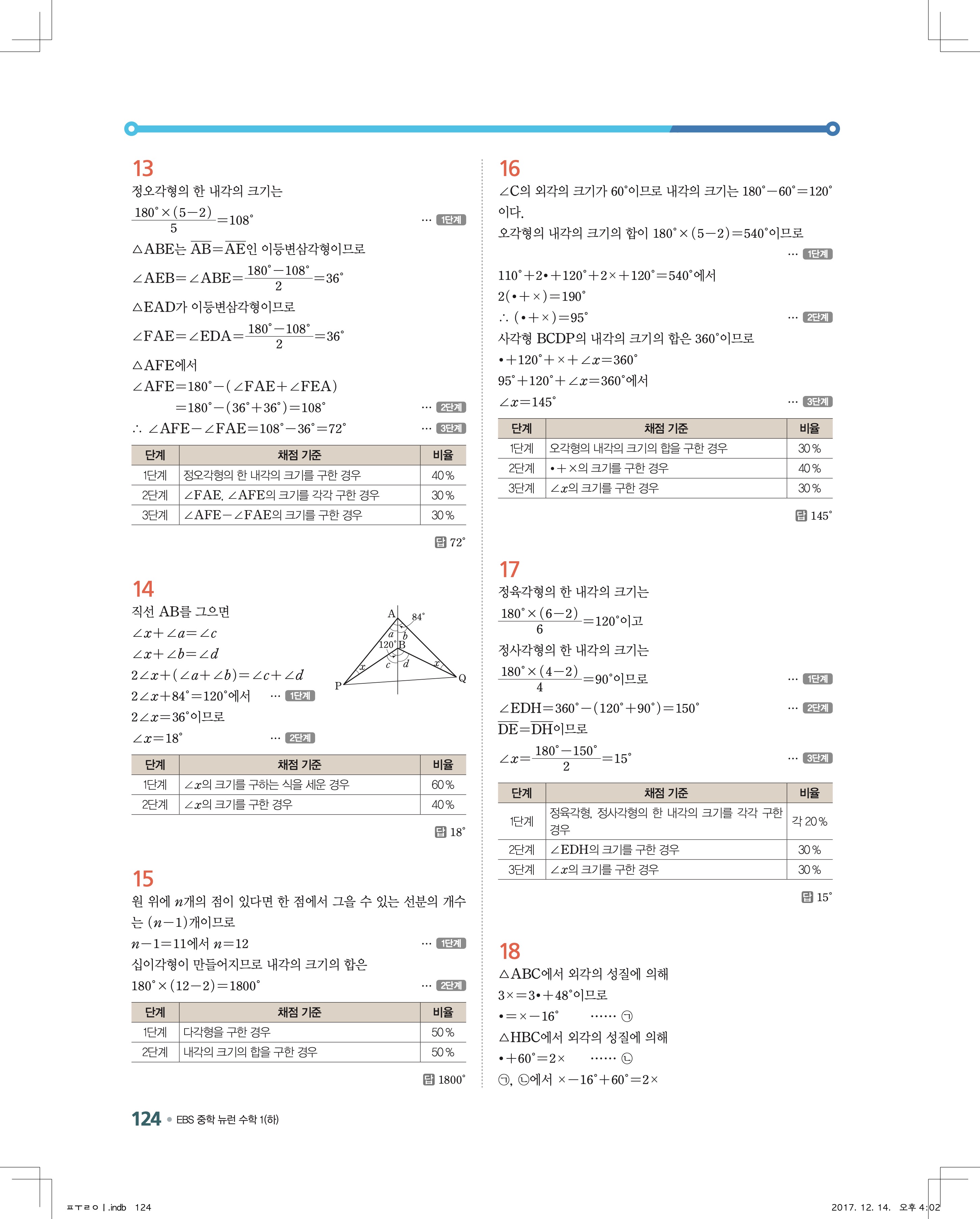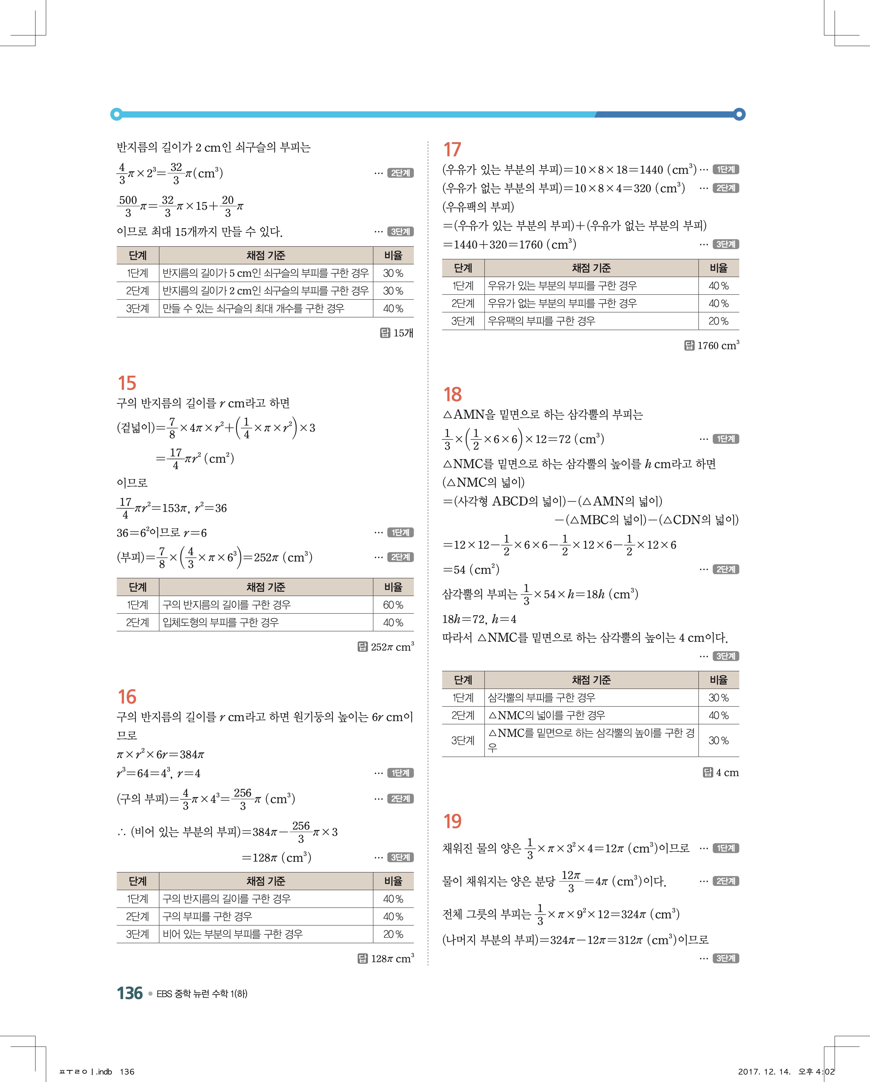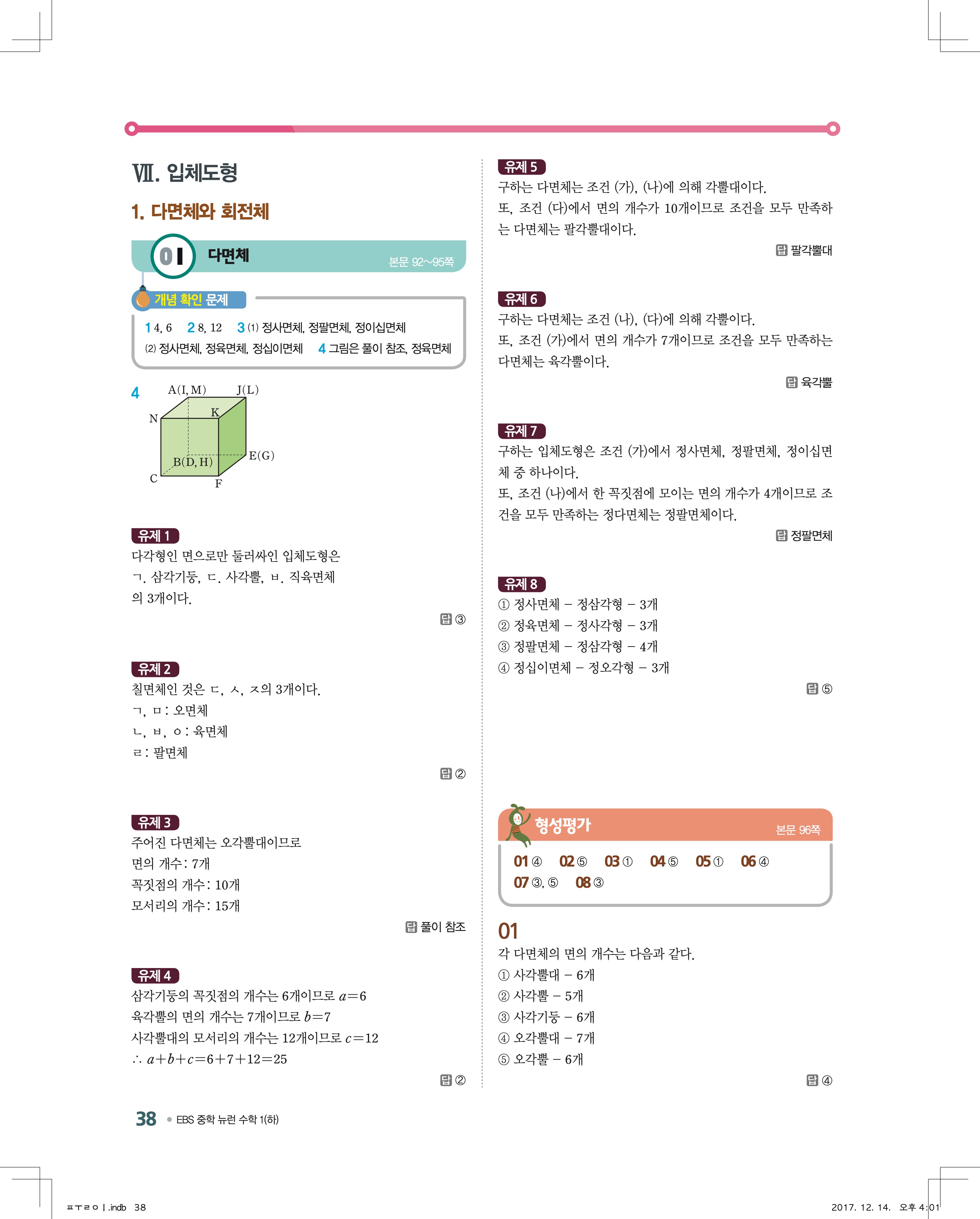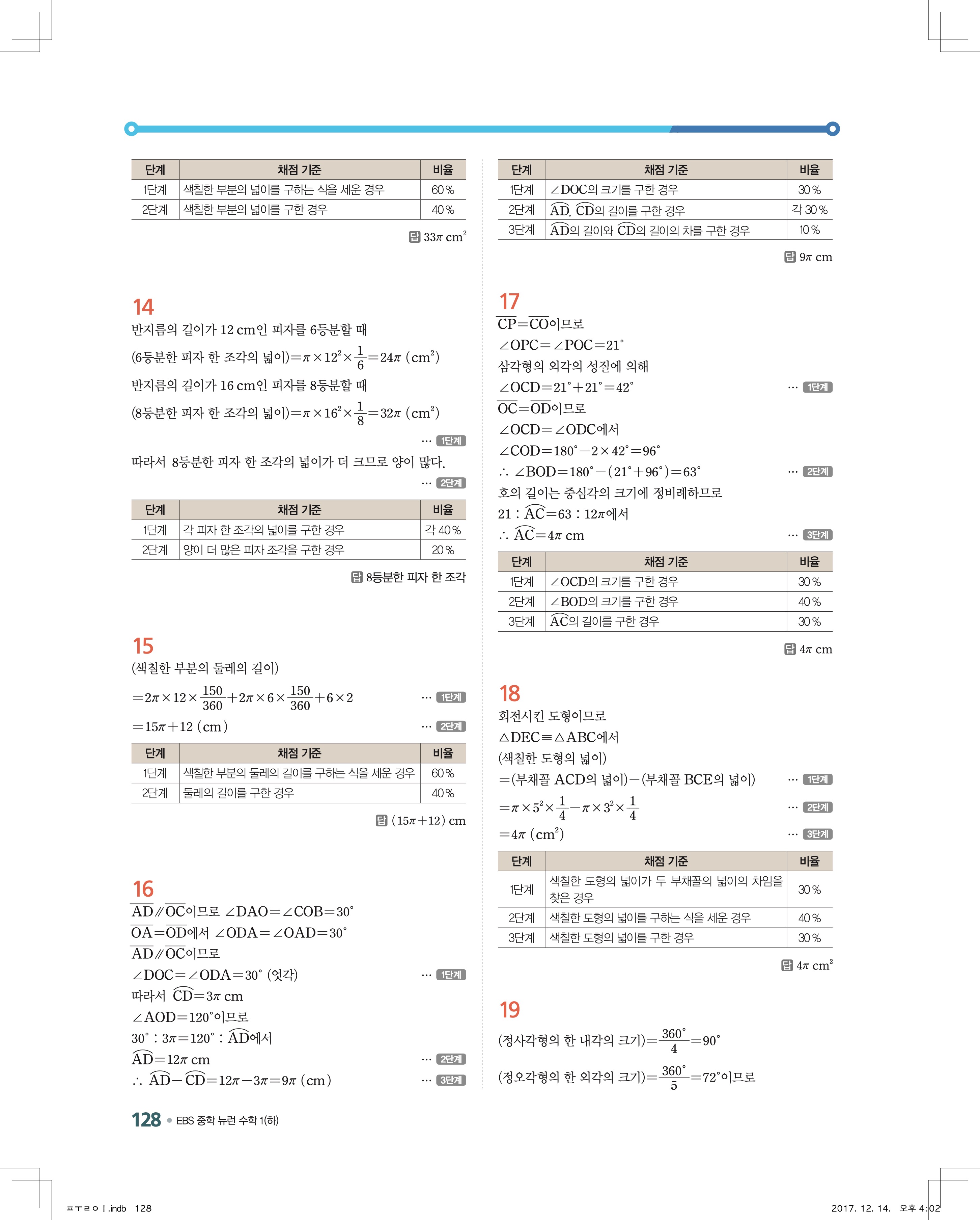 EBS 중학뉴런 수학1하 답지 해설 바로보는 사진답지 빠른답지 모바일최적화