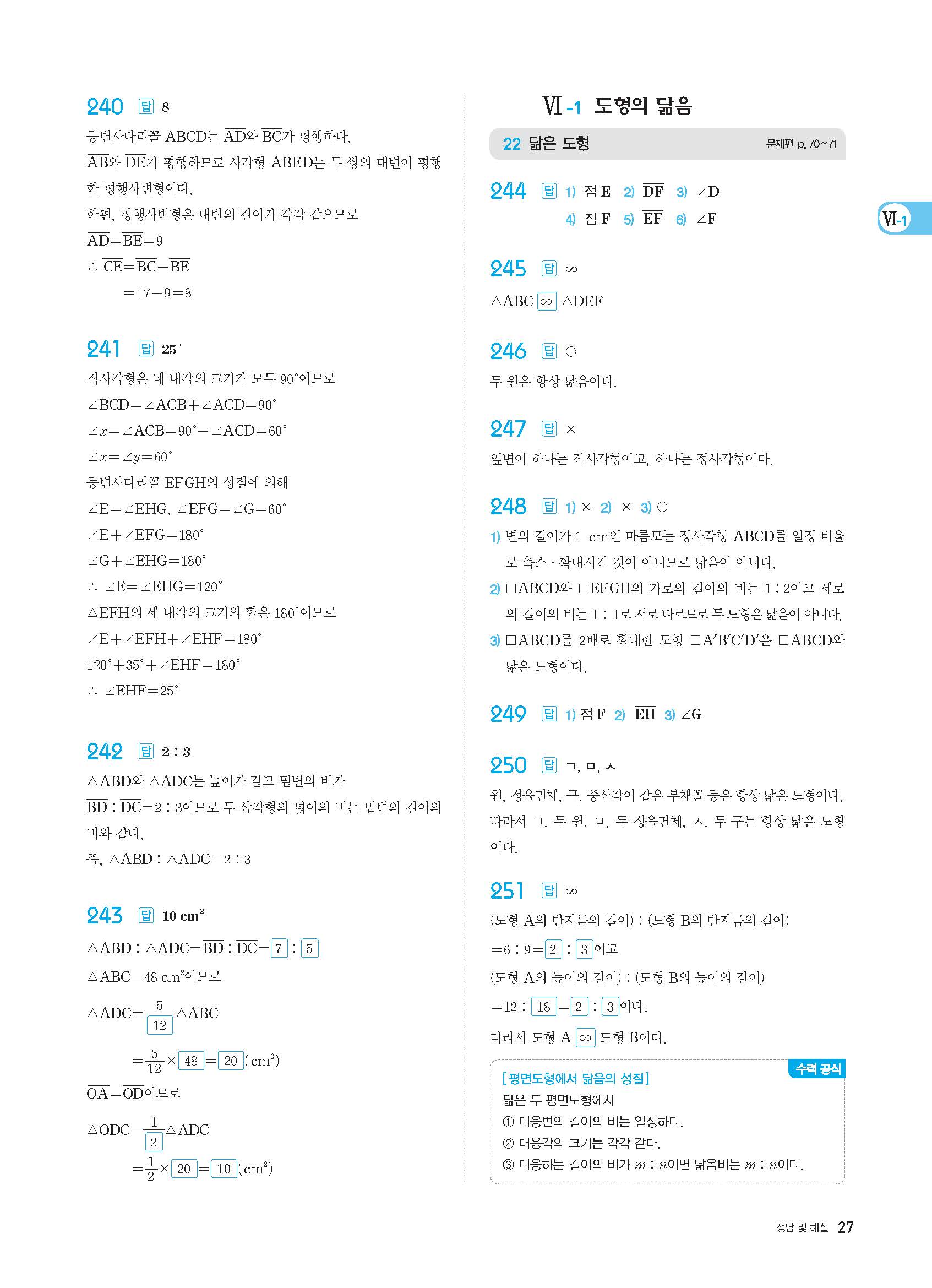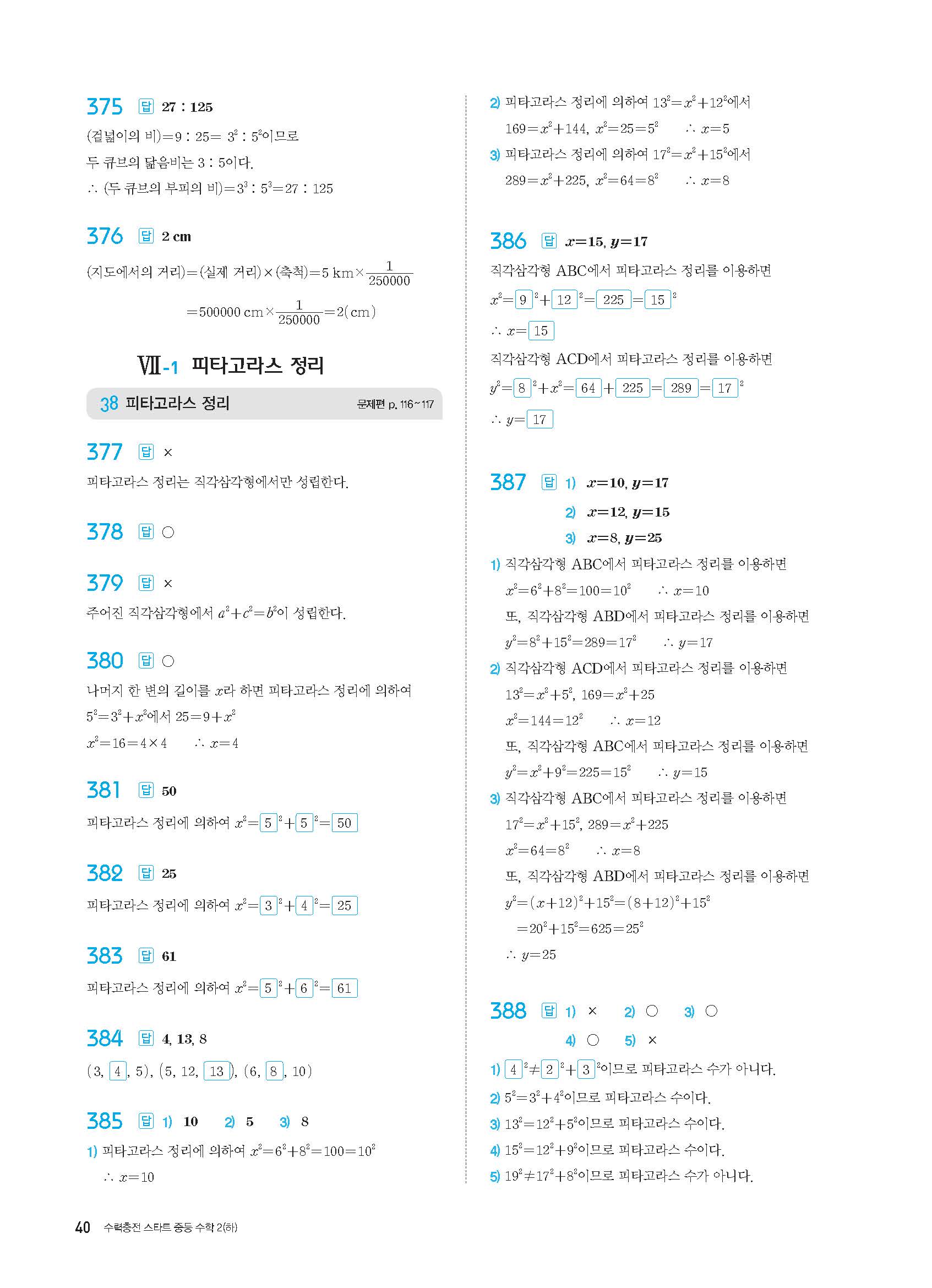 | 교학사 고호경 중2 수학교과서 답지 | |