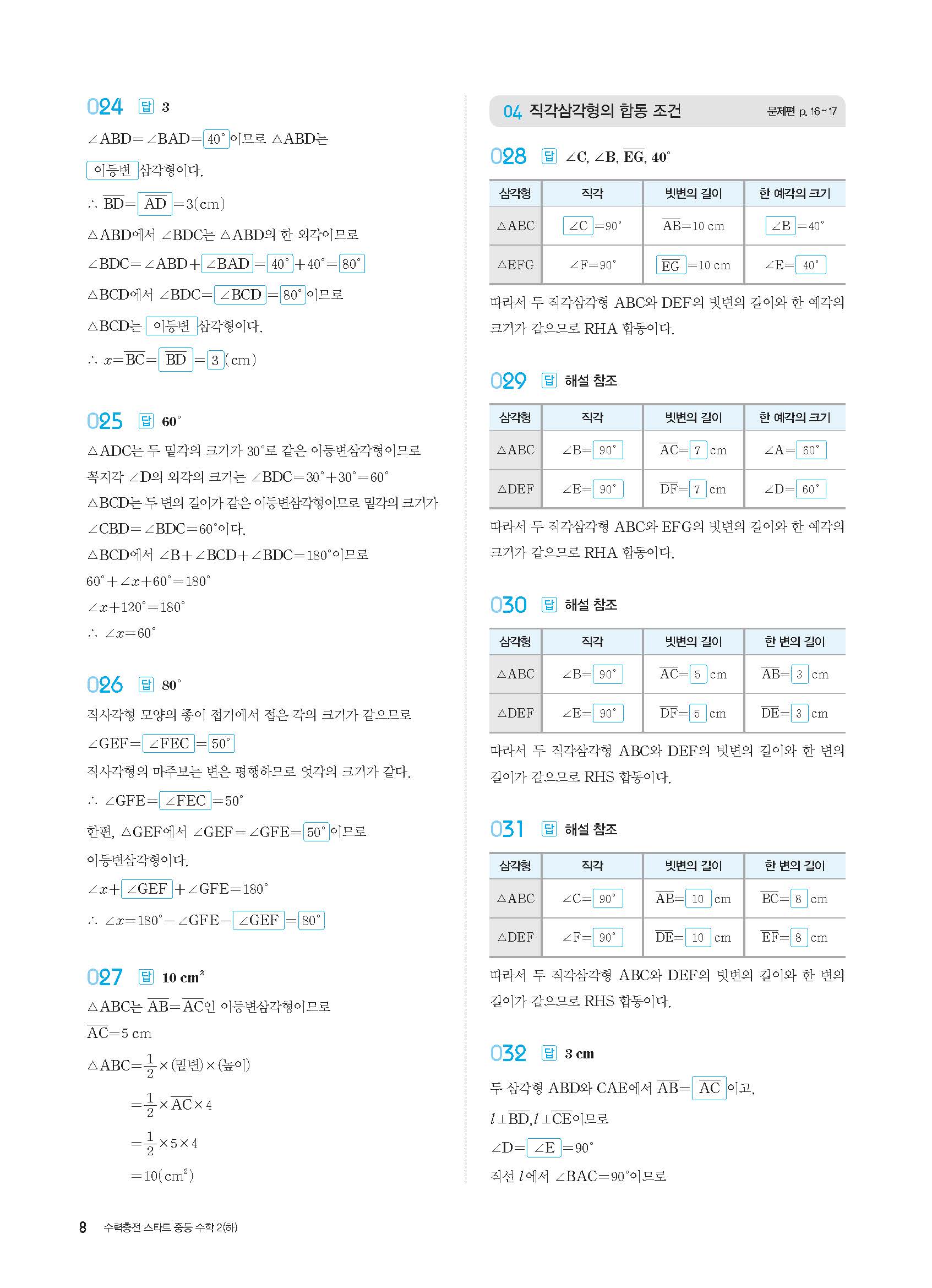 | 천재교육 이준열 중2 수학교과서 답지 | |
