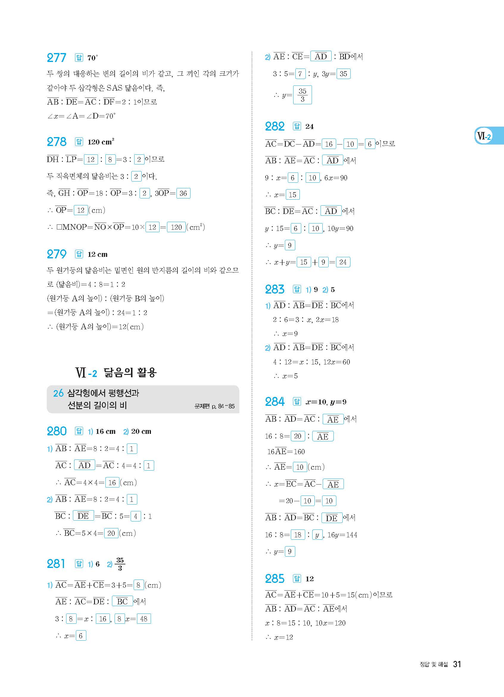 | 천재교육 류희찬 중2 수학교과서 답지 | |