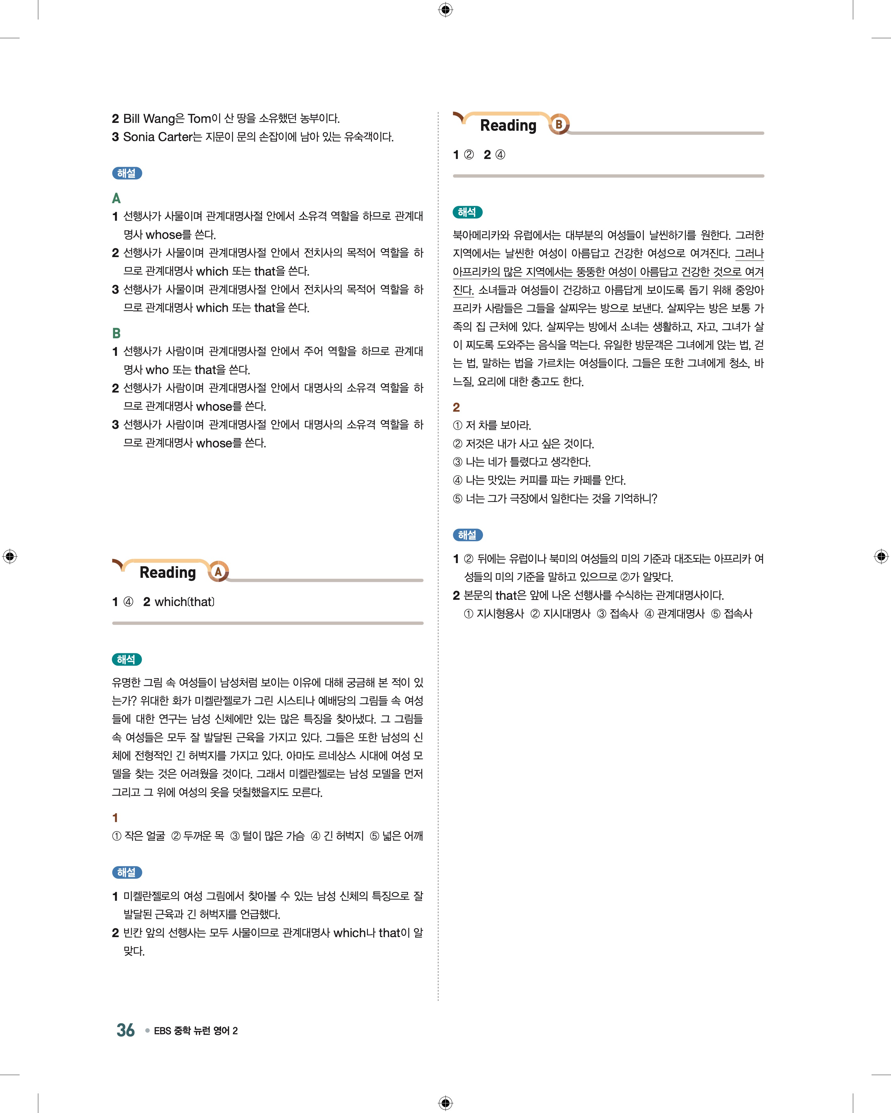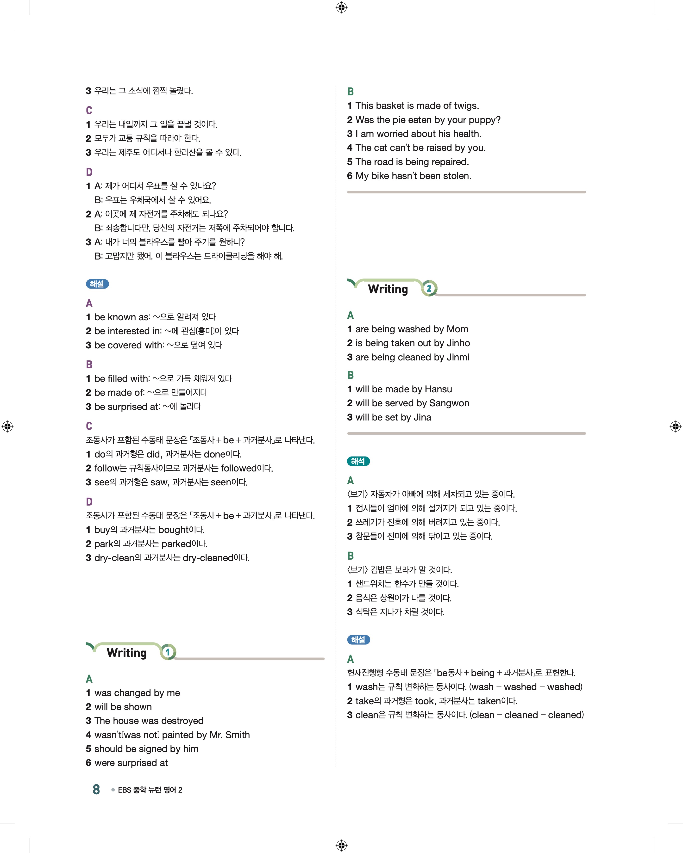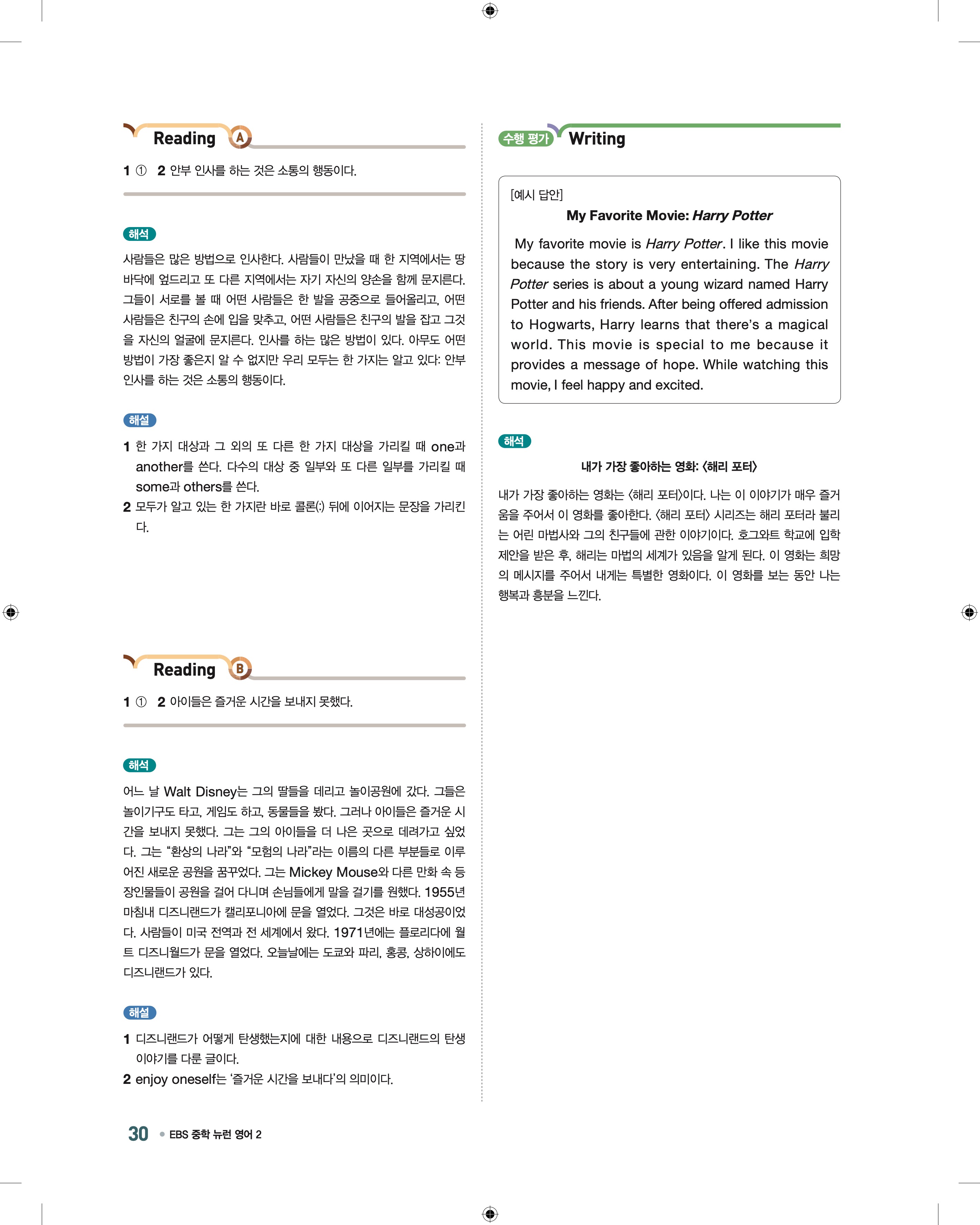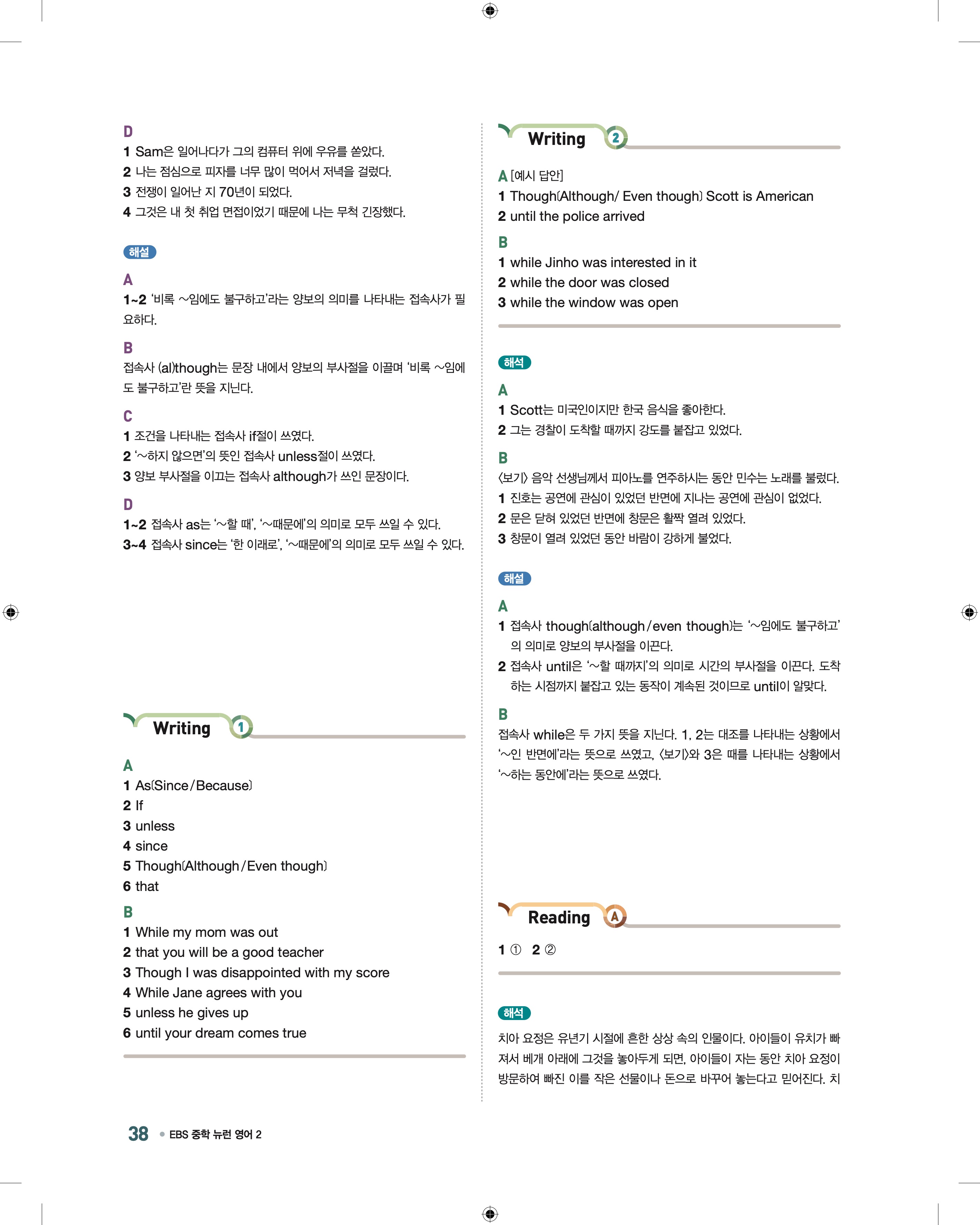 EBS 중학뉴런 영어2 답지 해설 바로보는 사진답지 빠른답지 모바일최적화