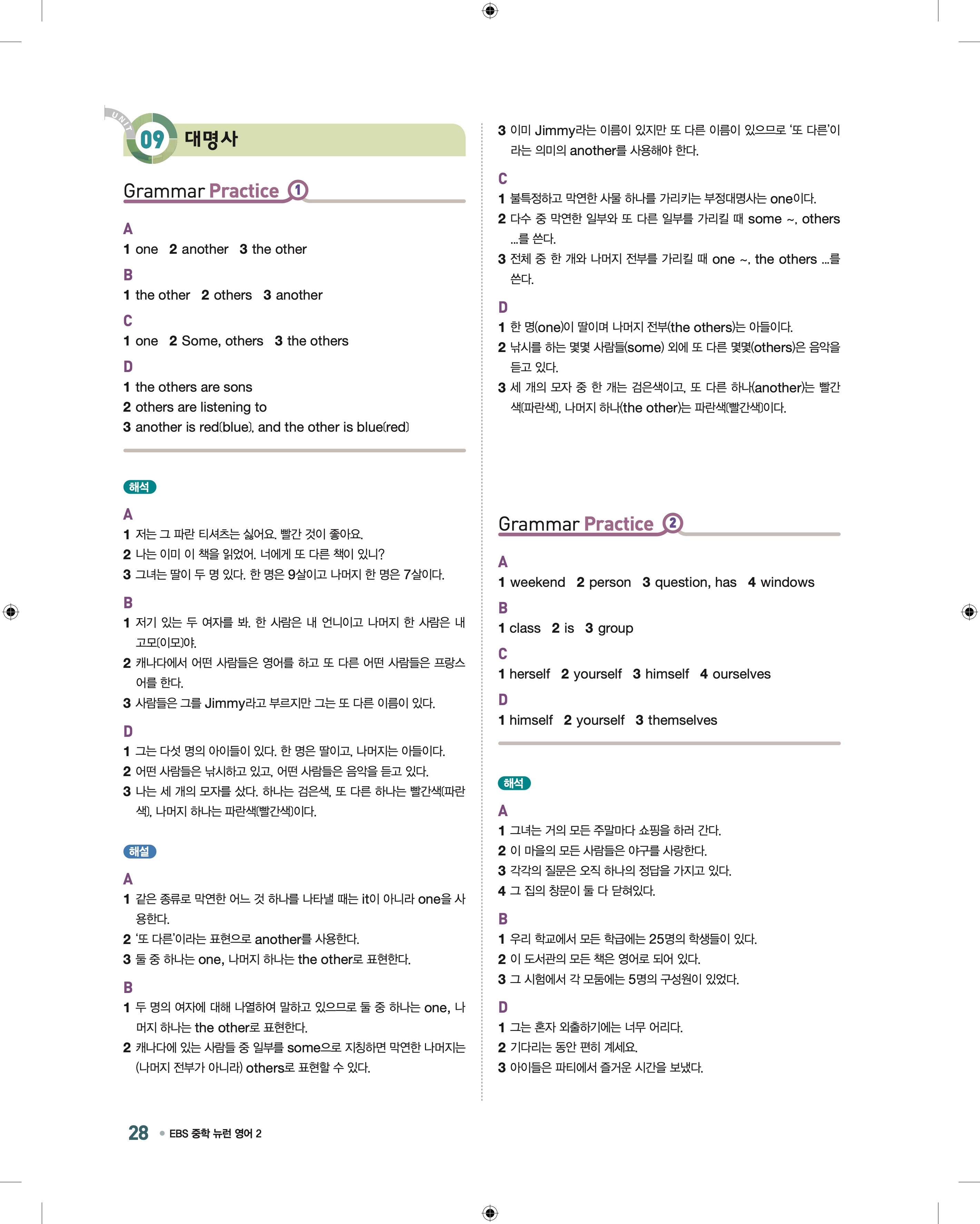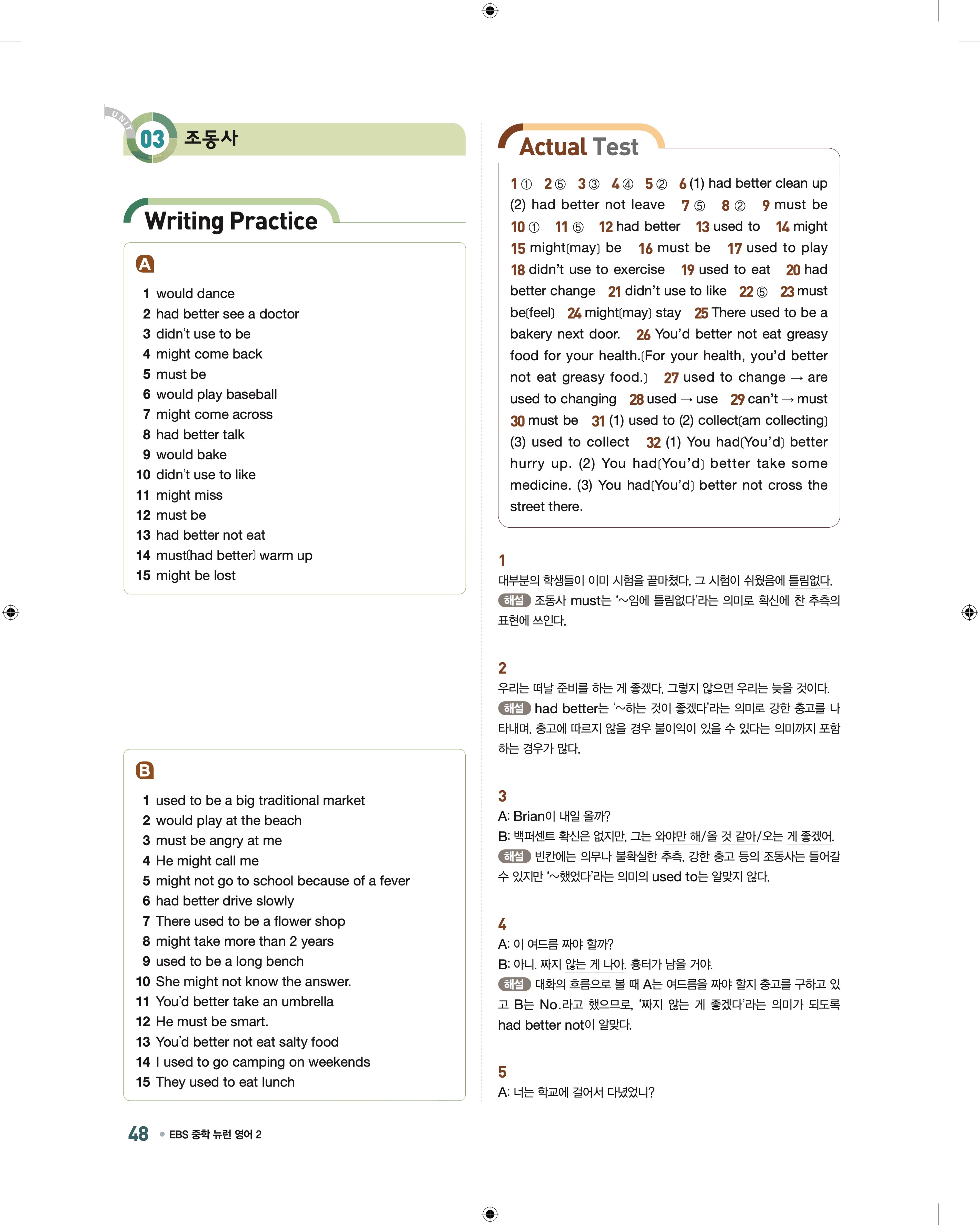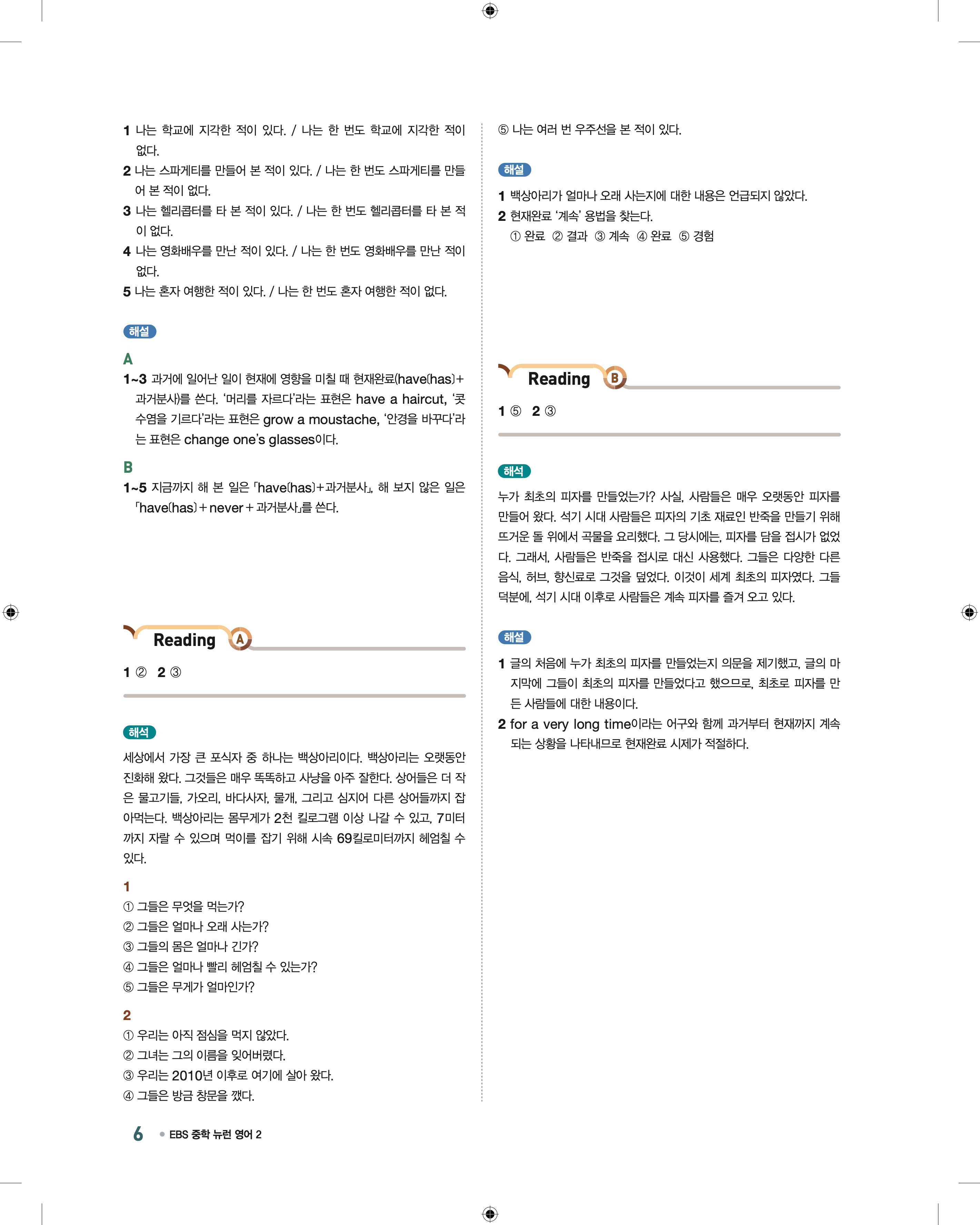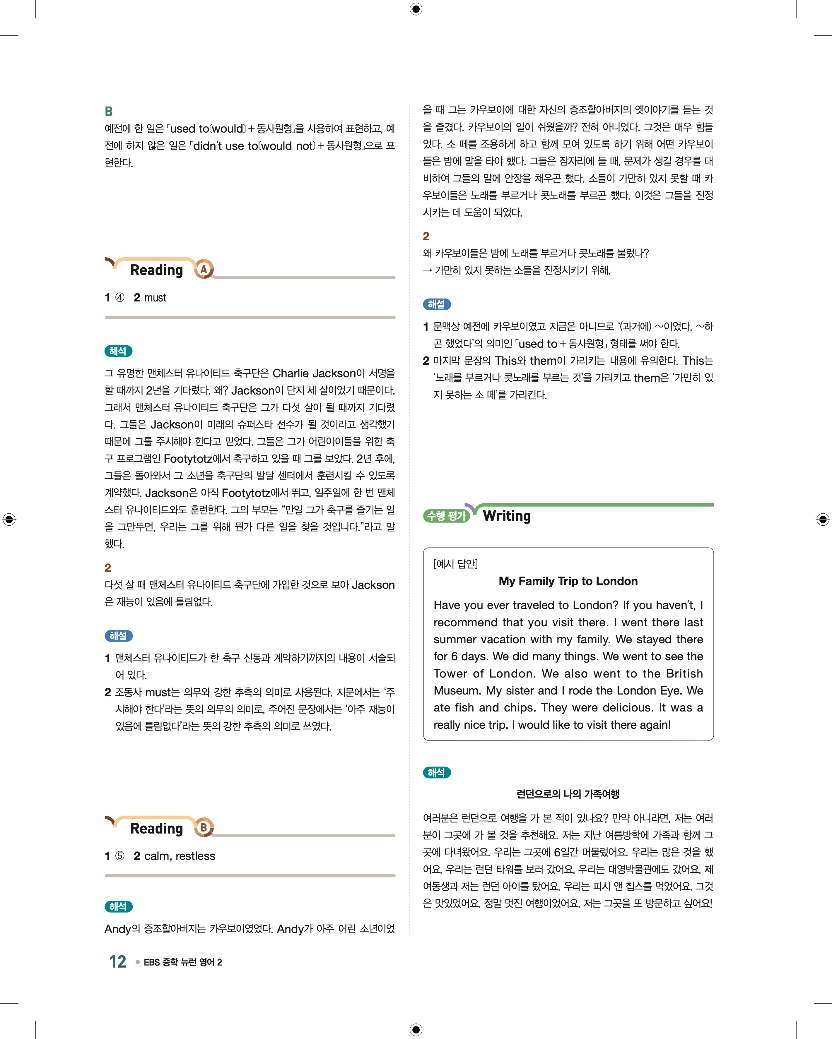 EBS 중학뉴런 영어2 답지 해설 바로보는 사진답지 빠른답지 모바일최적화