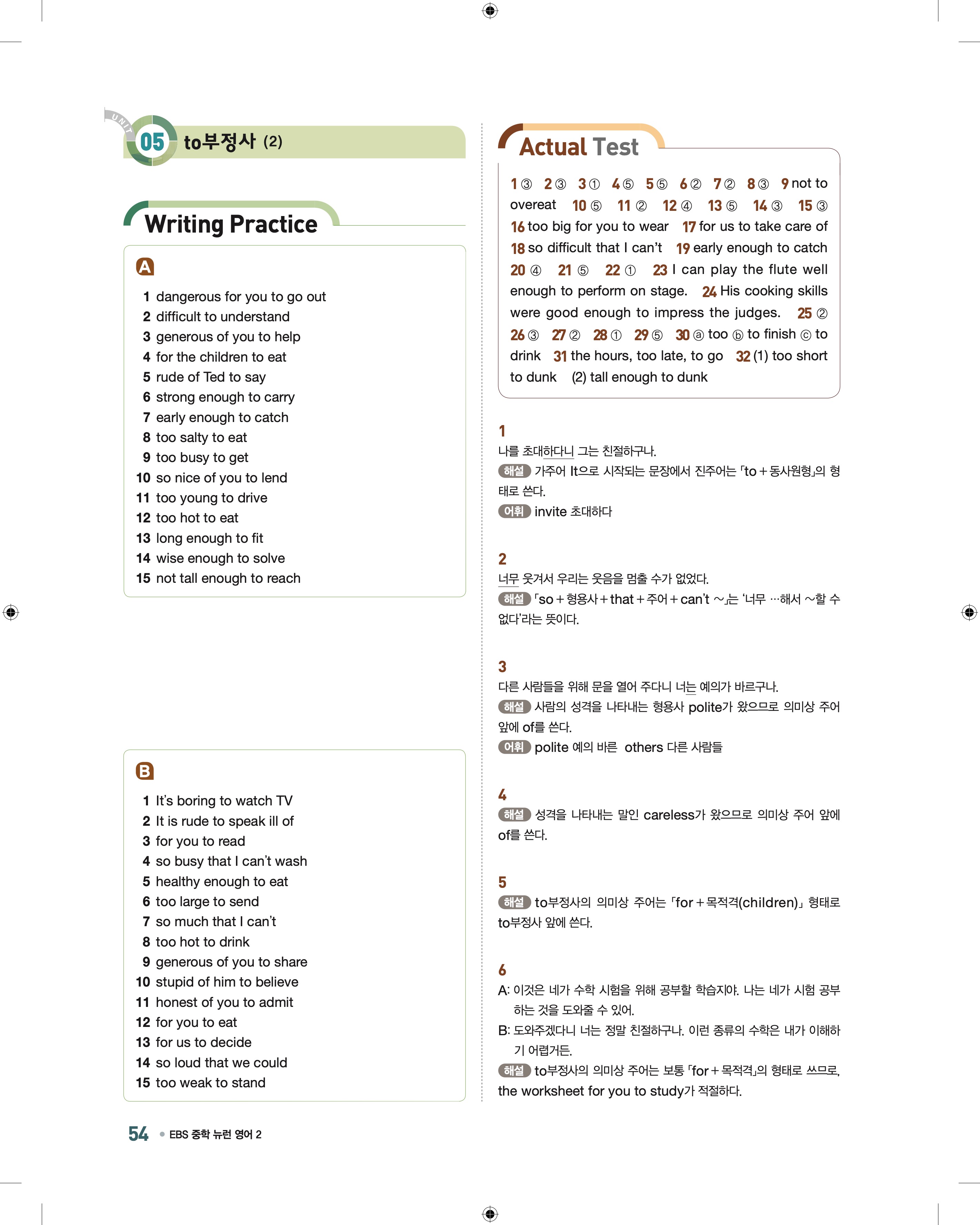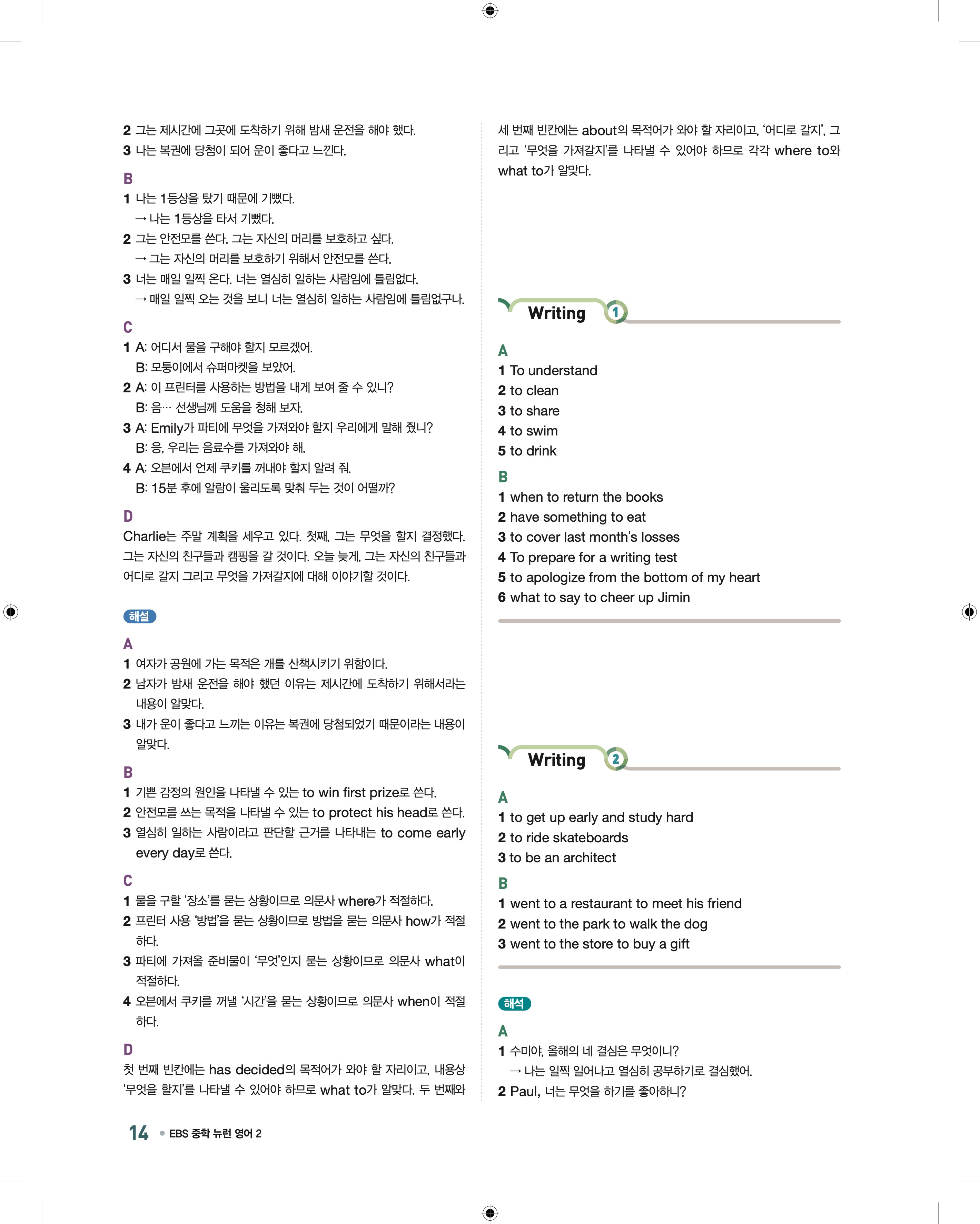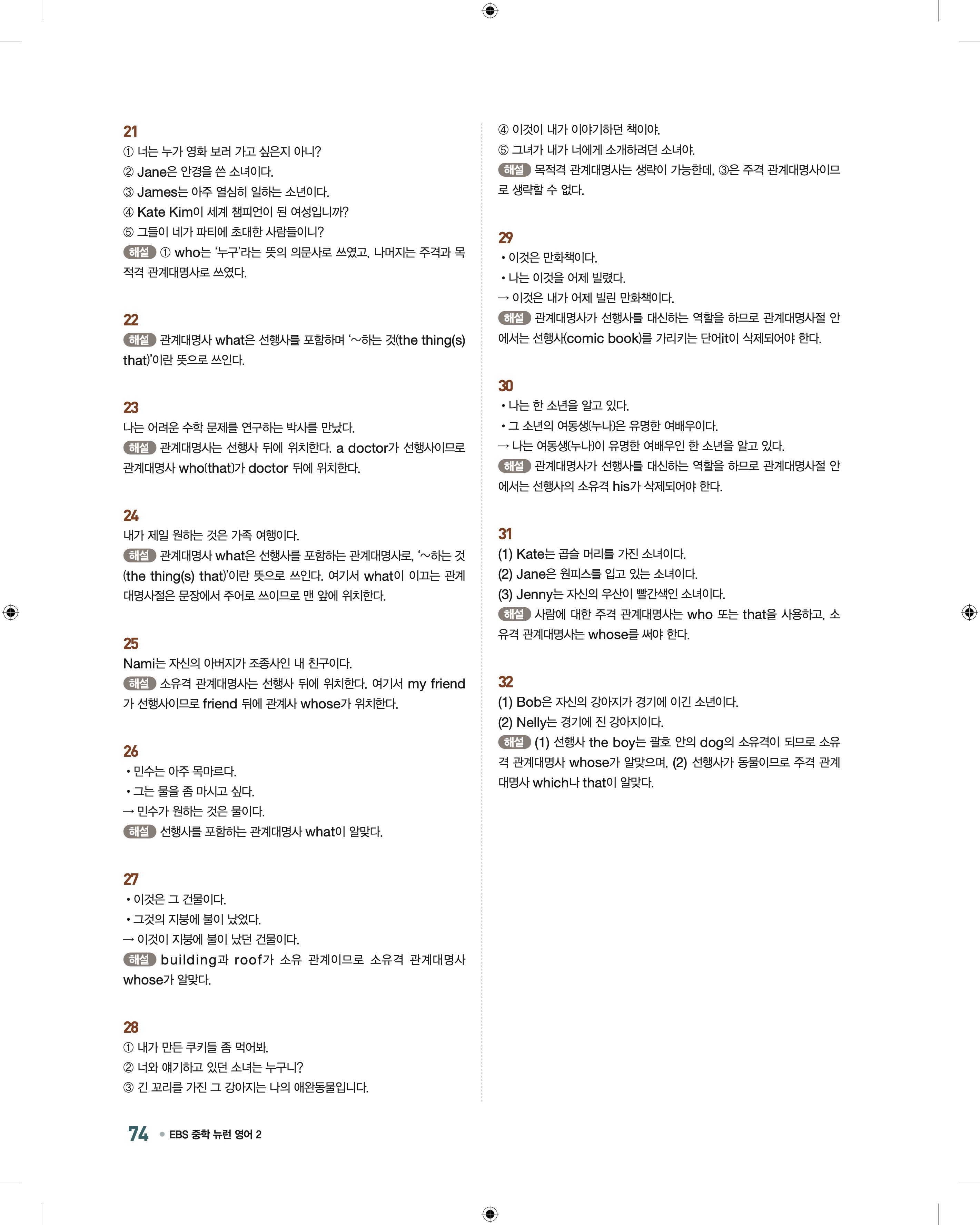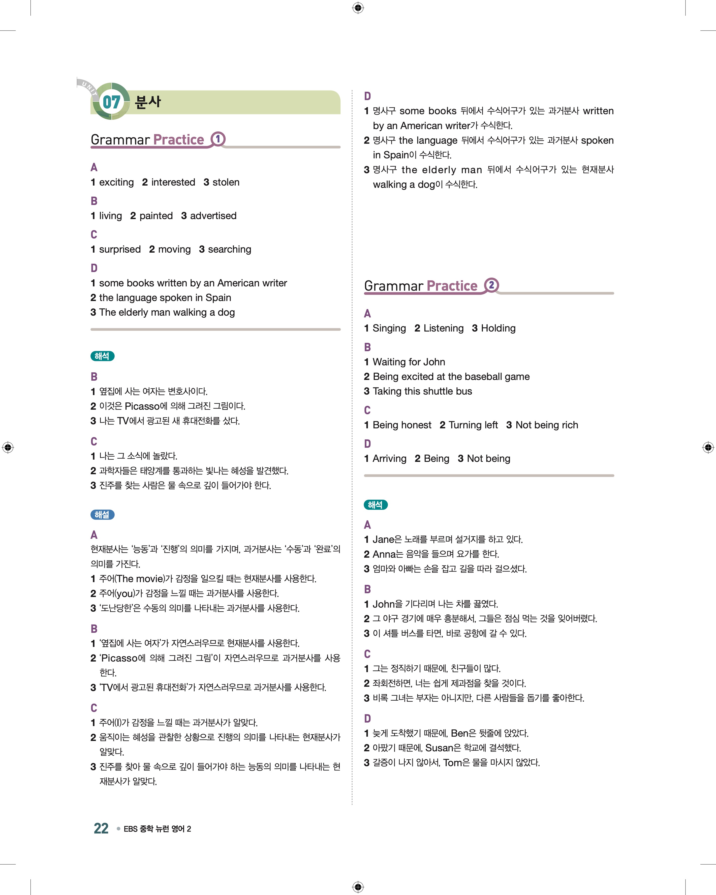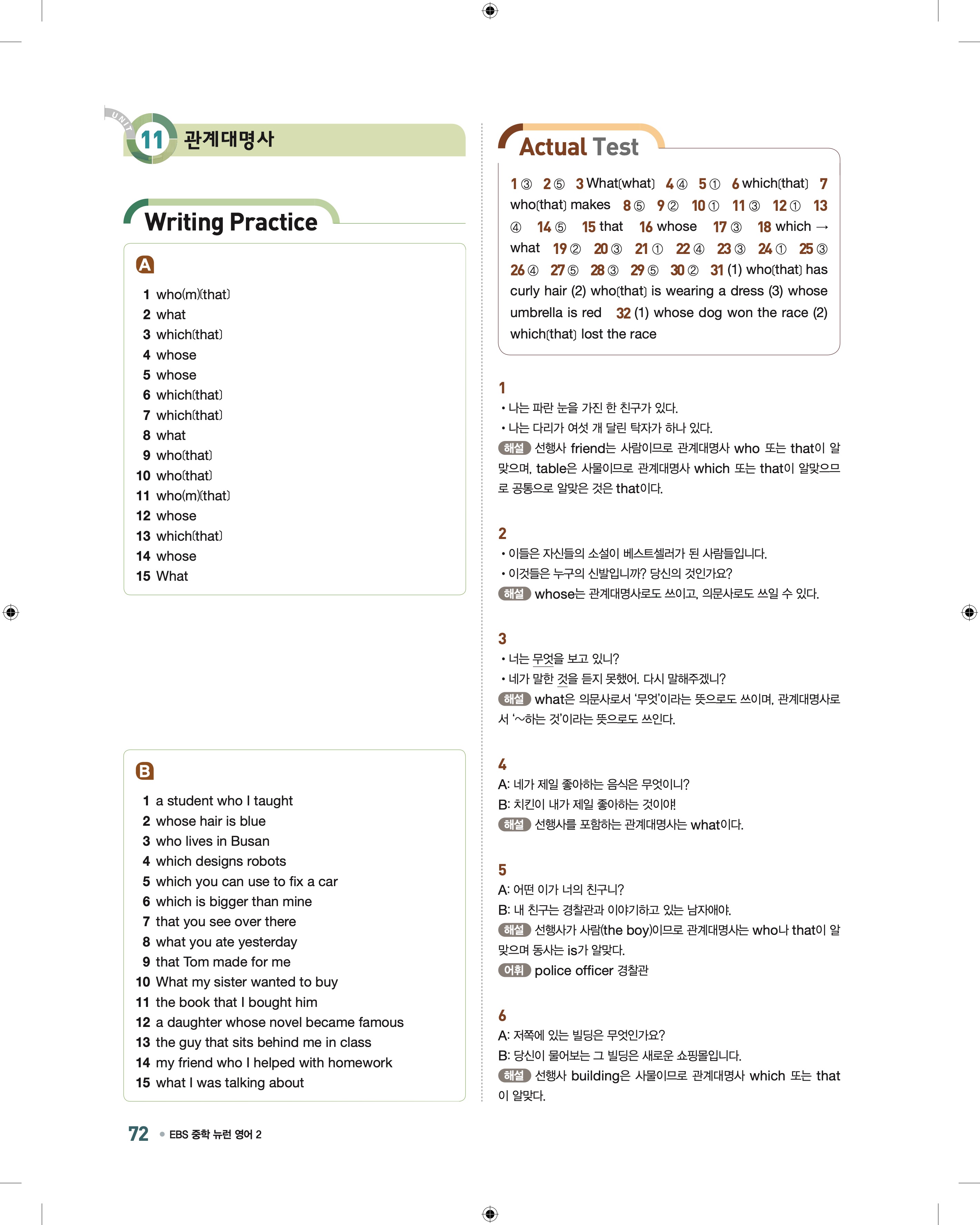 EBS 중학뉴런 영어2 답지 해설 바로보는 사진답지 빠른답지 모바일최적화