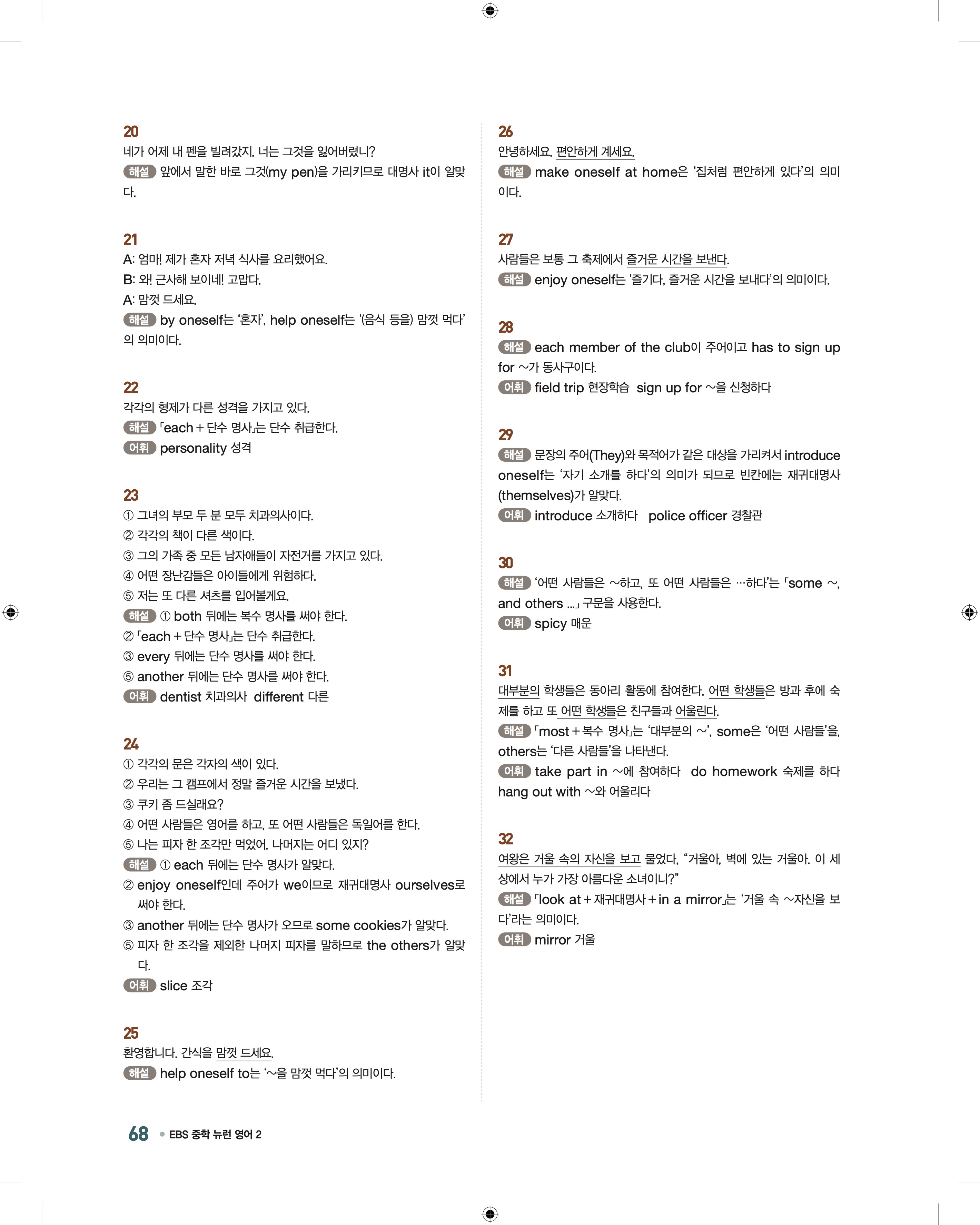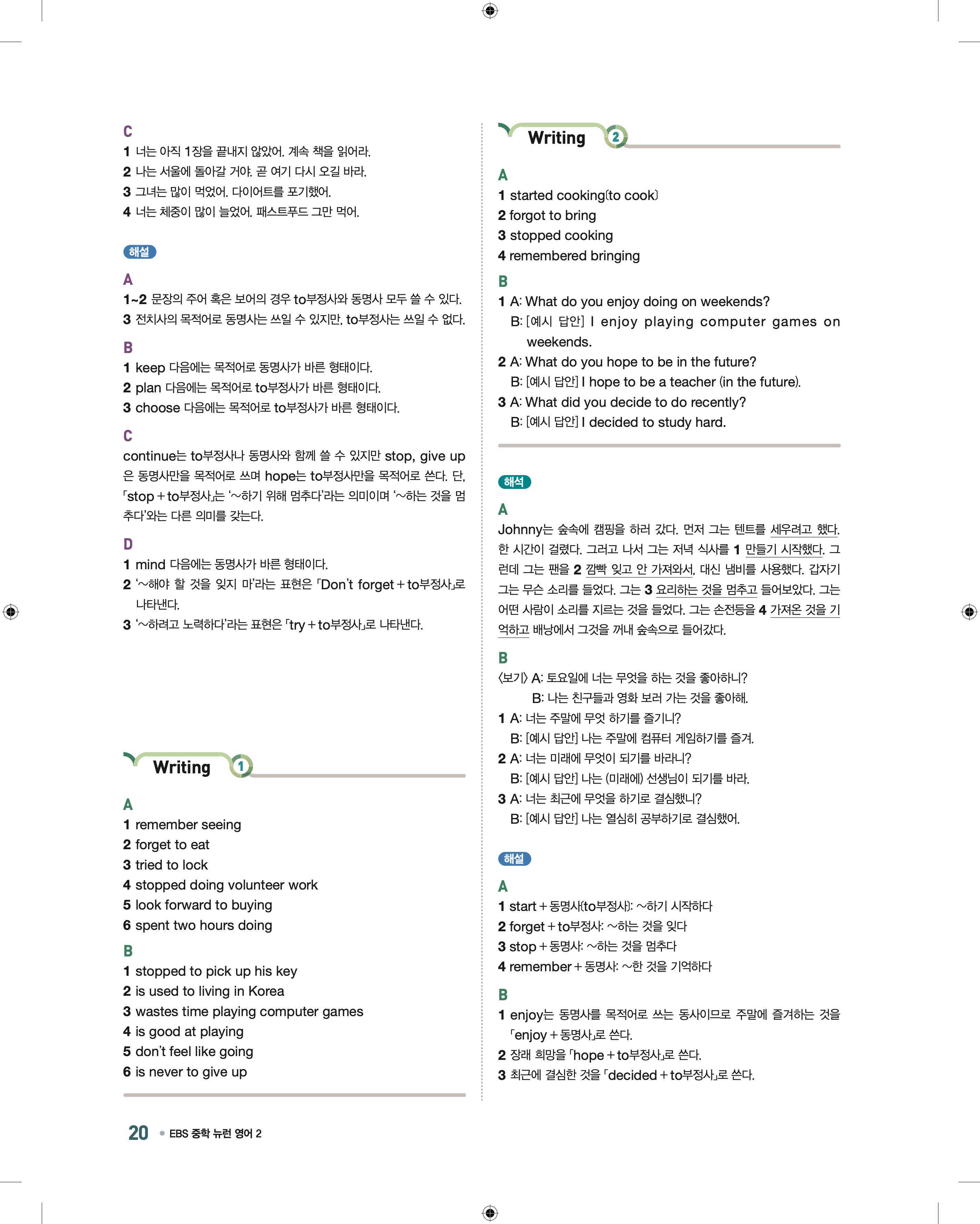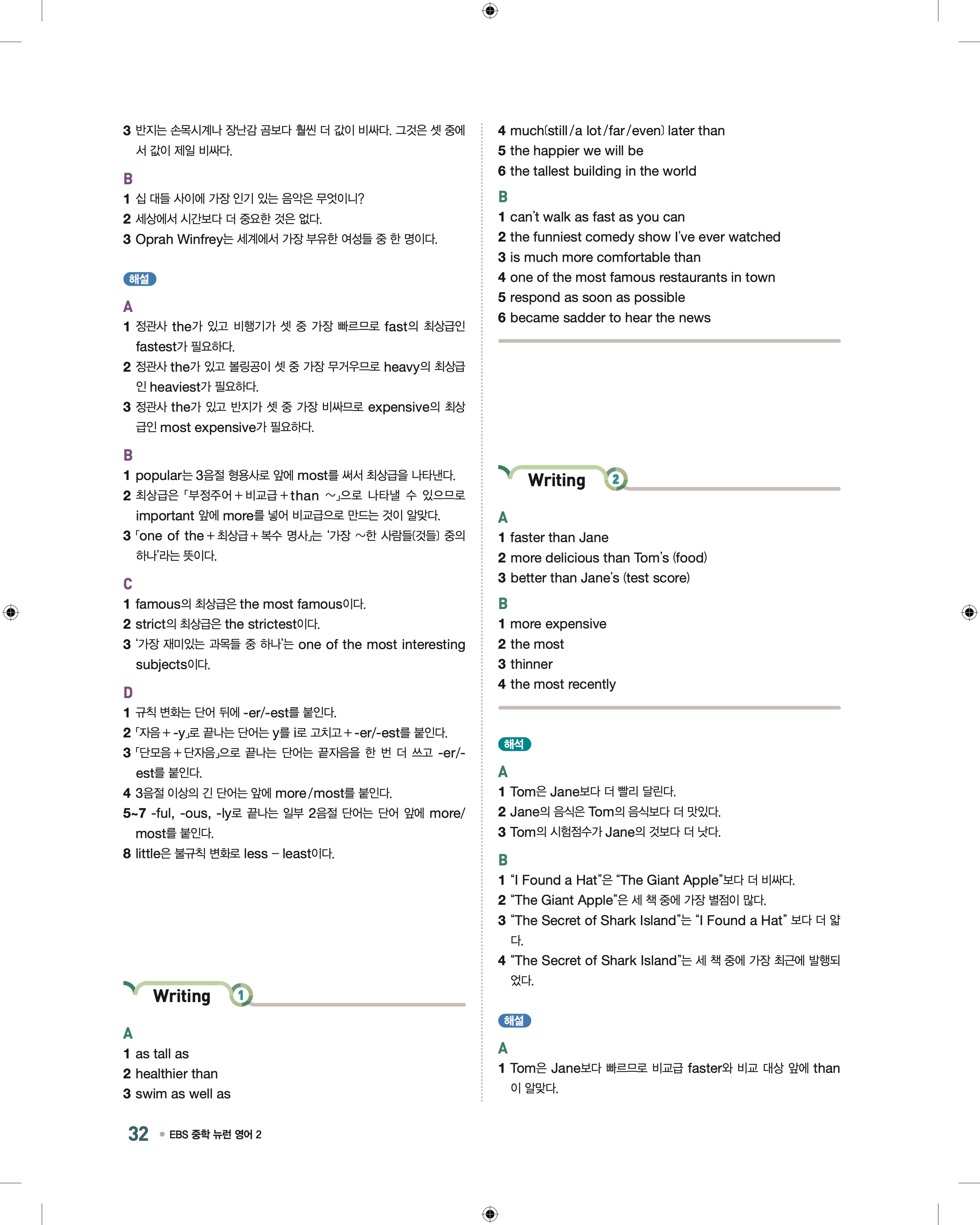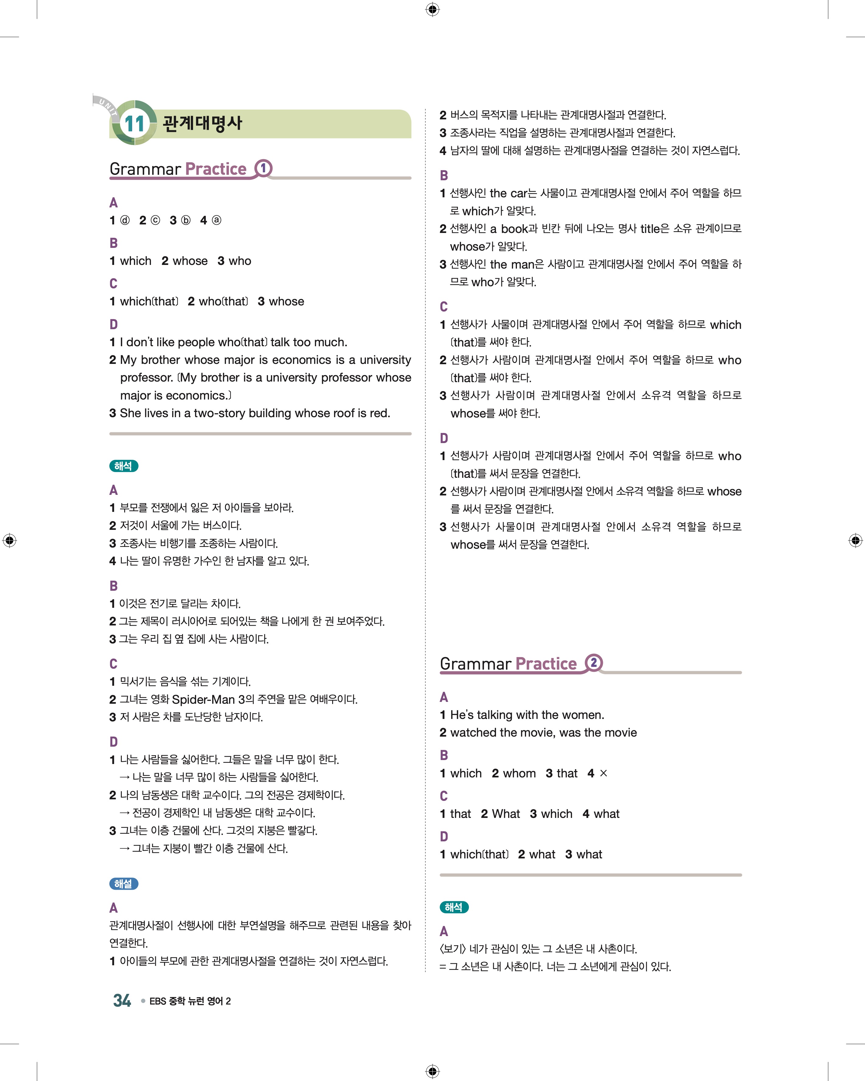 EBS 중학뉴런 영어2 답지 해설 바로보는 사진답지 빠른답지 모바일최적화
