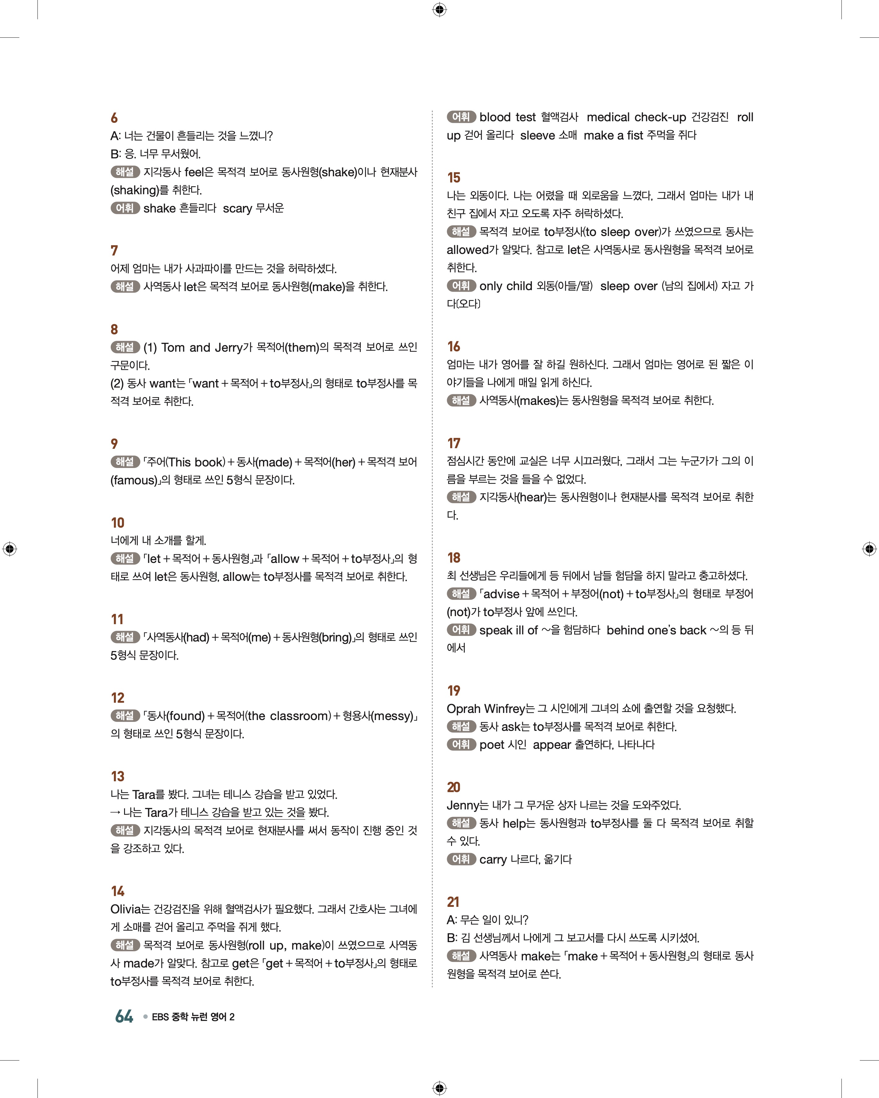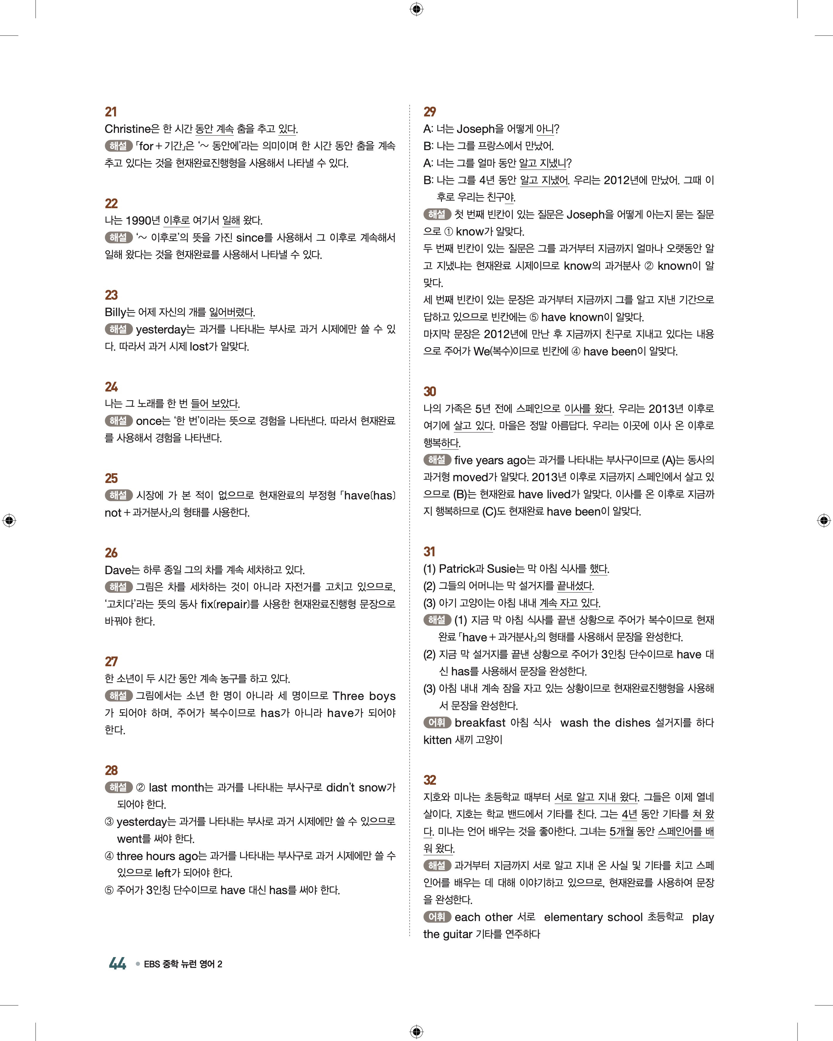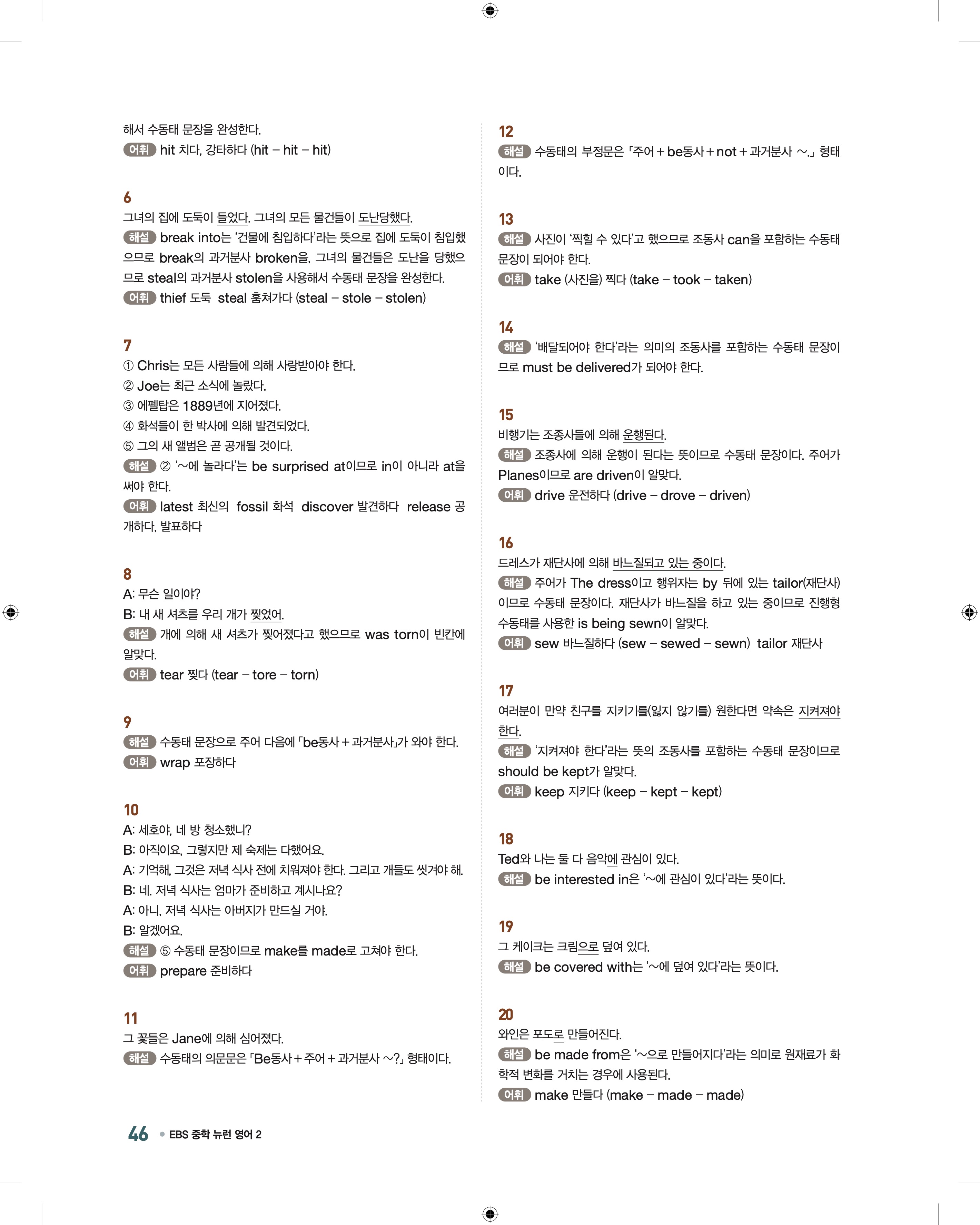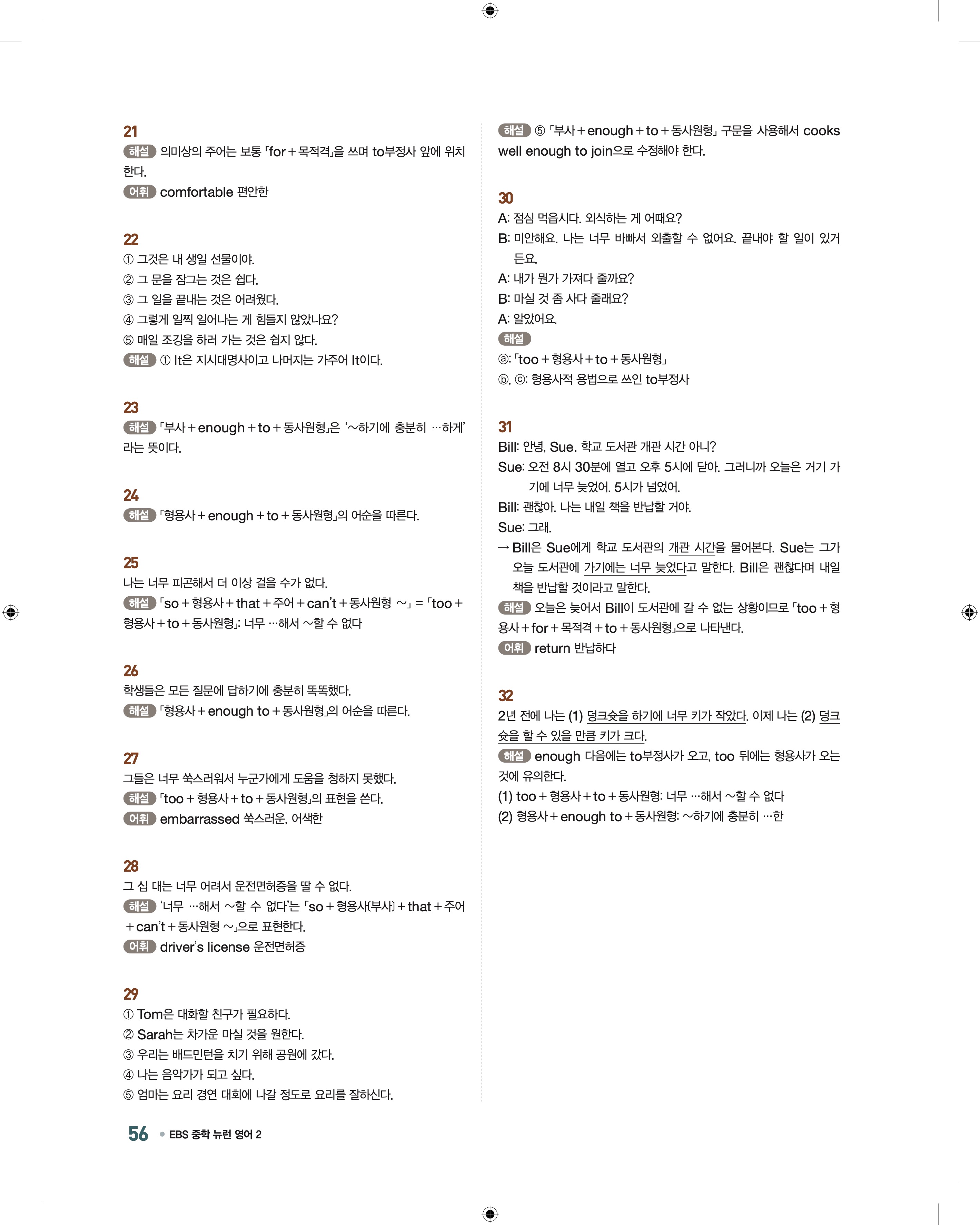 EBS 중학뉴런 영어2 답지 해설 바로보는 사진답지 빠른답지 모바일최적화