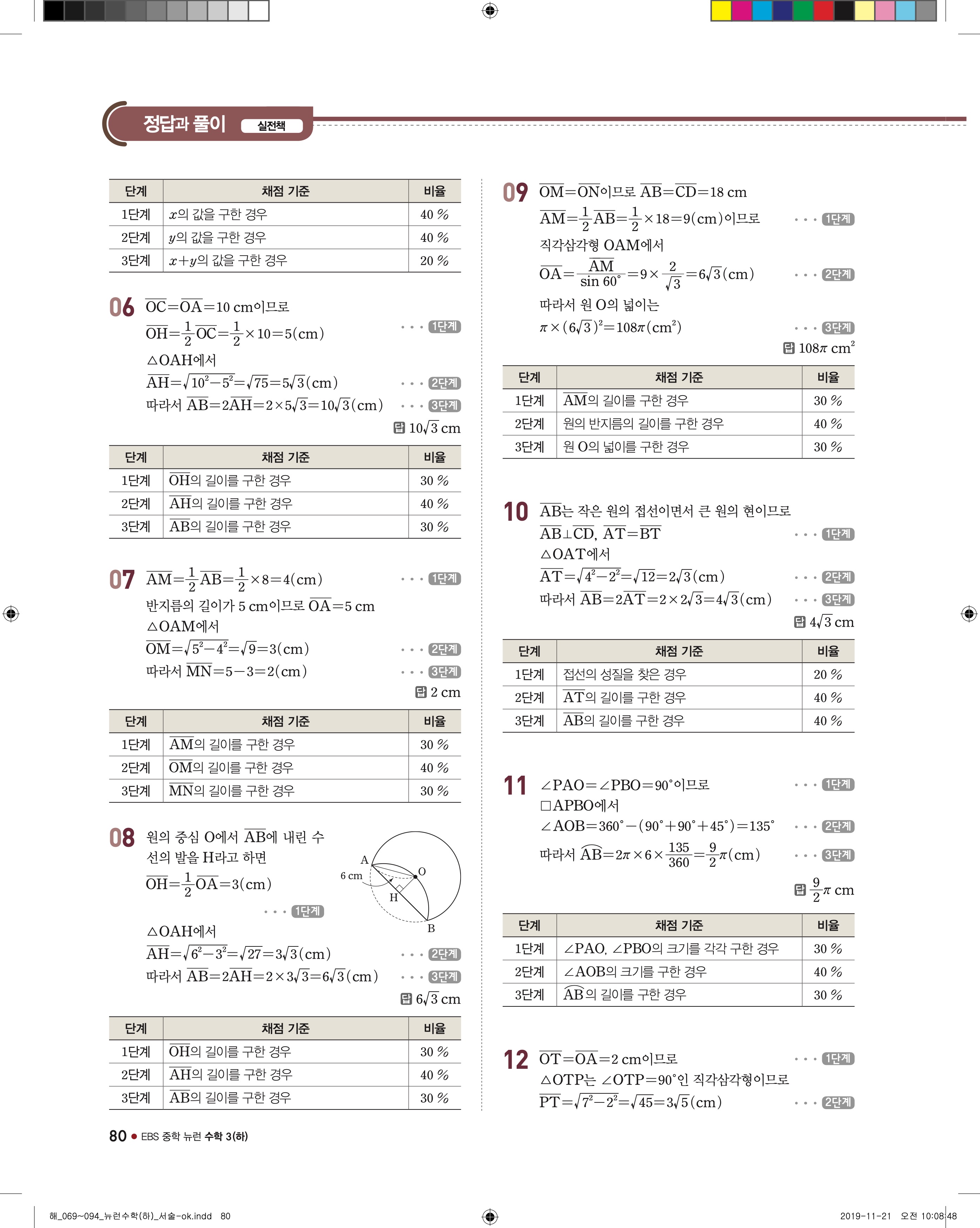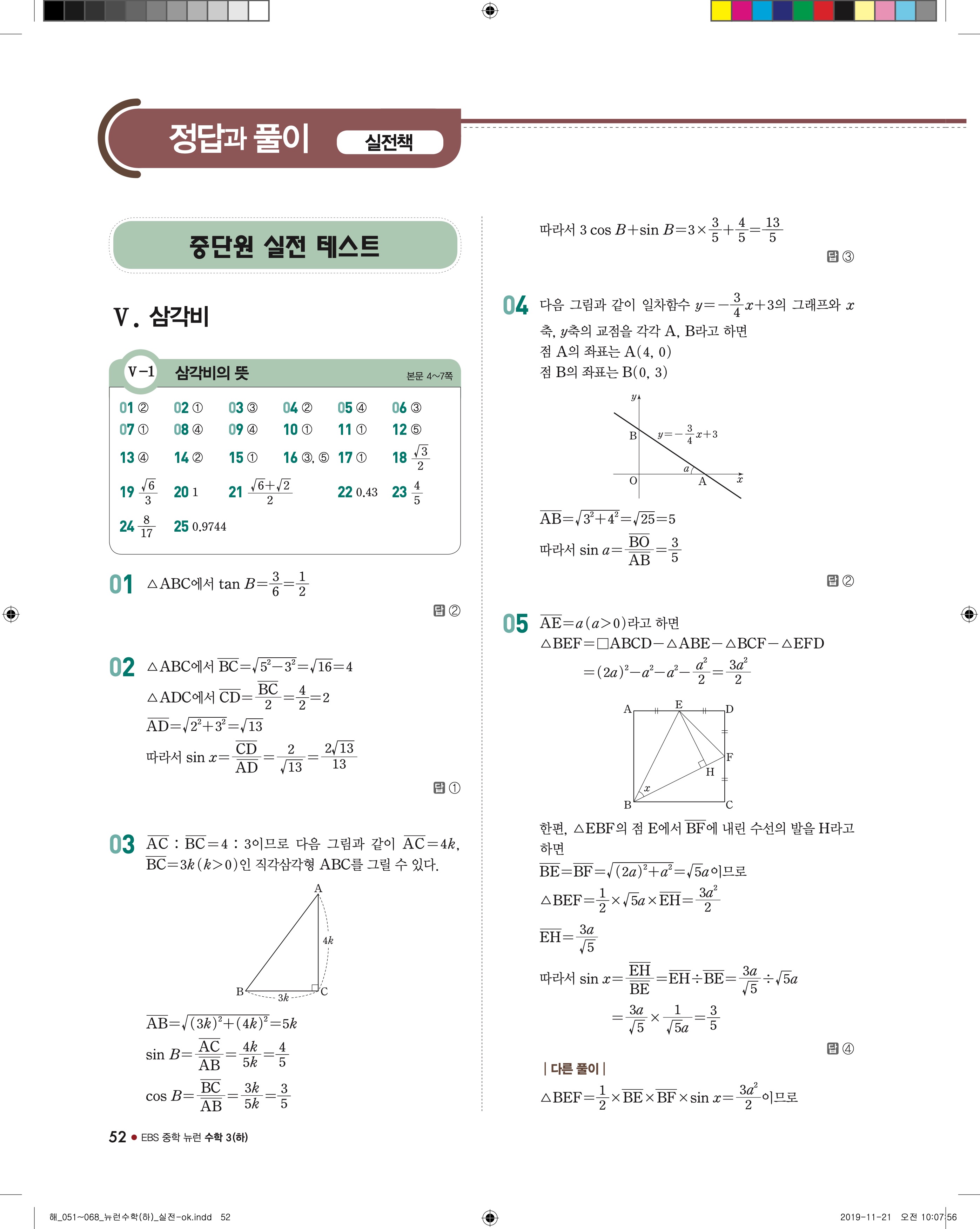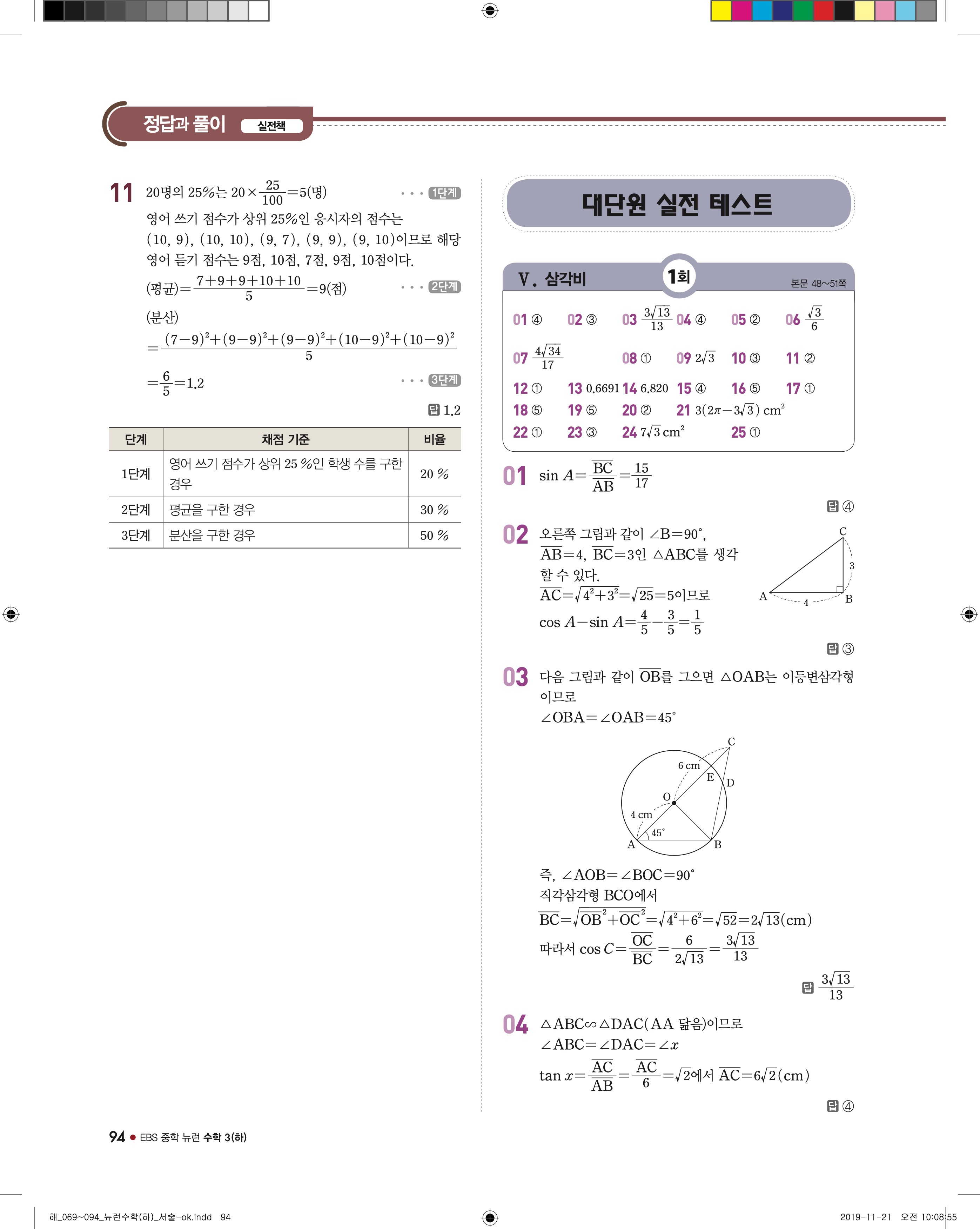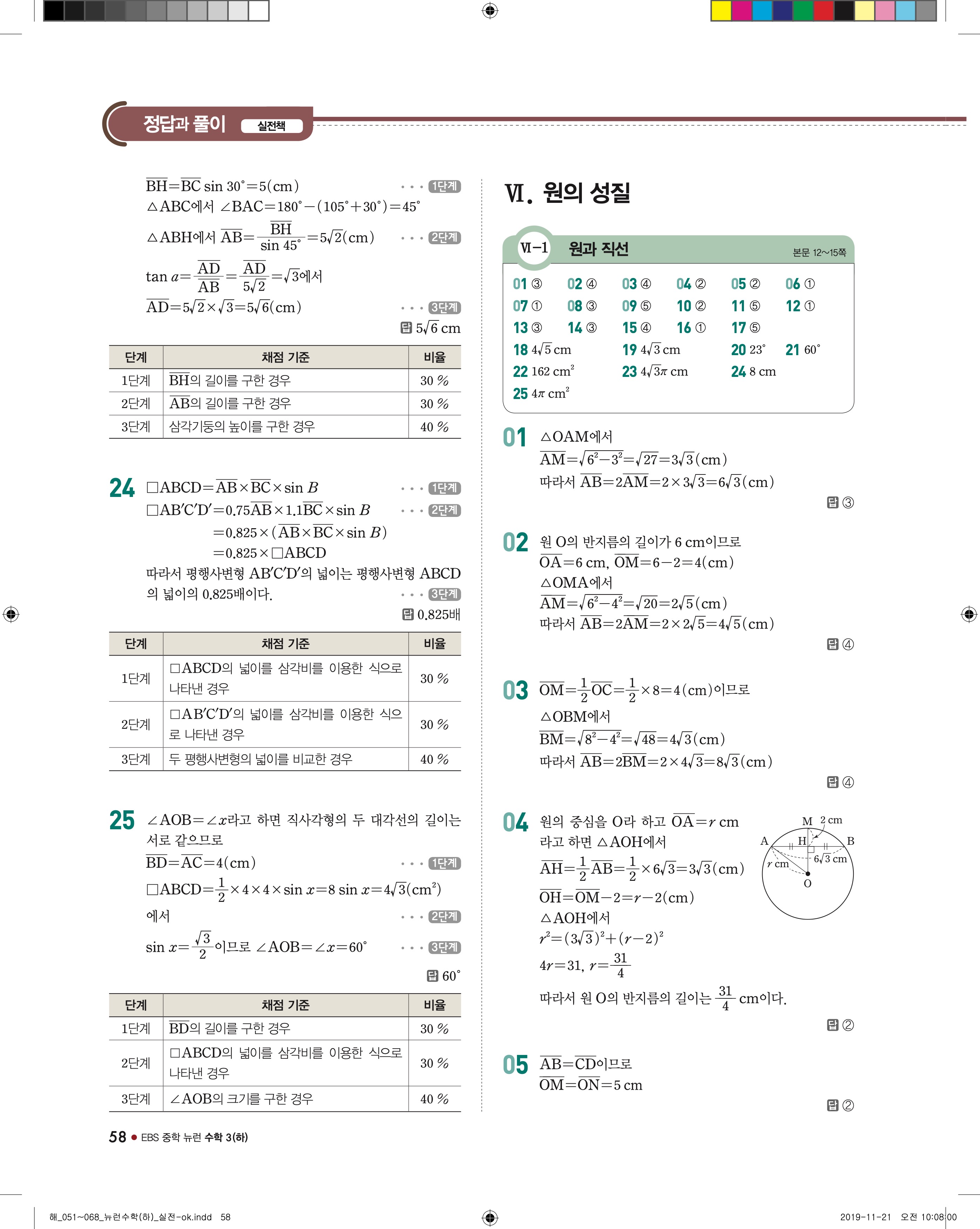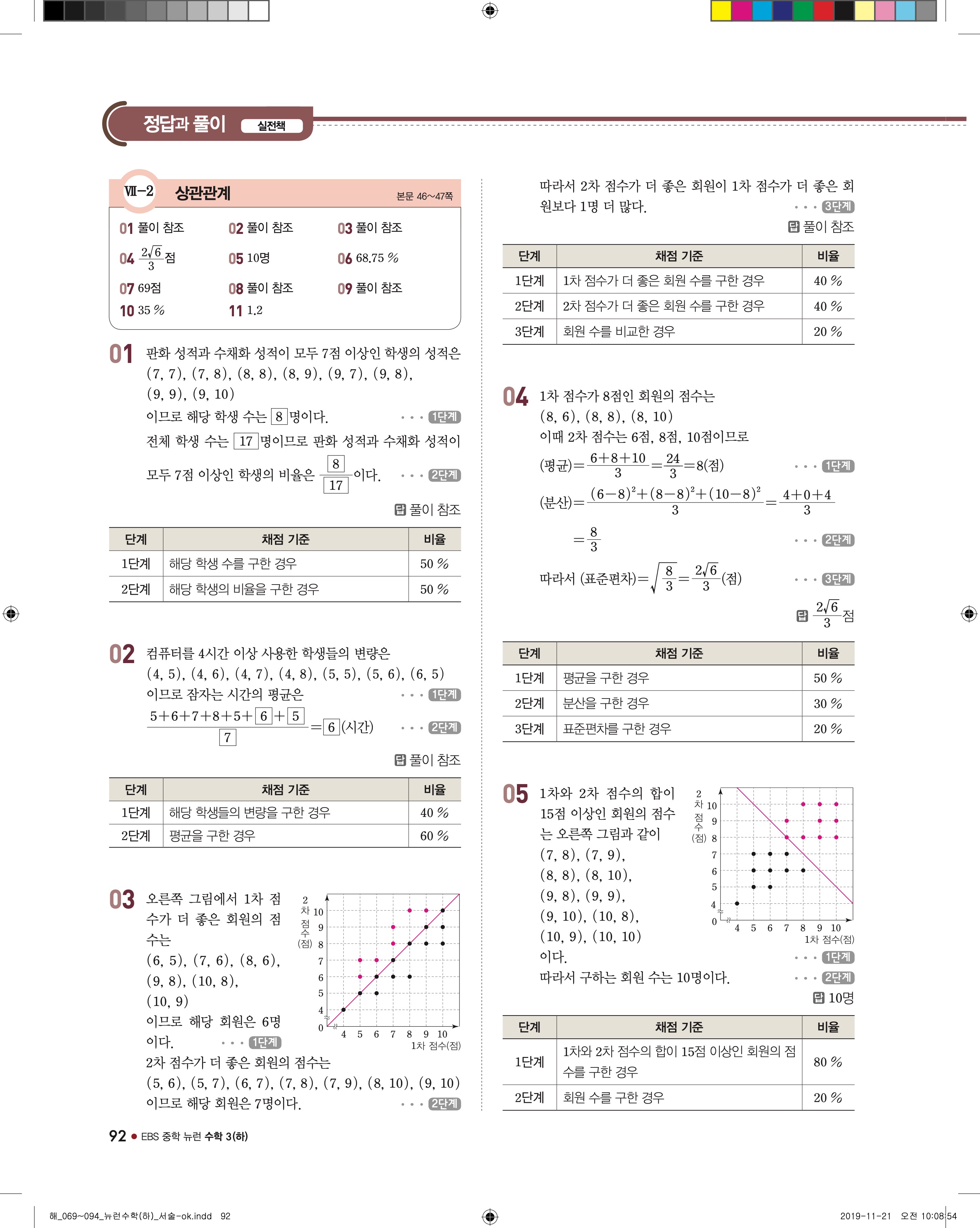 ebs중학뉴런 수학3하 3-2 답지 해설 바로보는 사진답지 빠른답지 모바일최적화