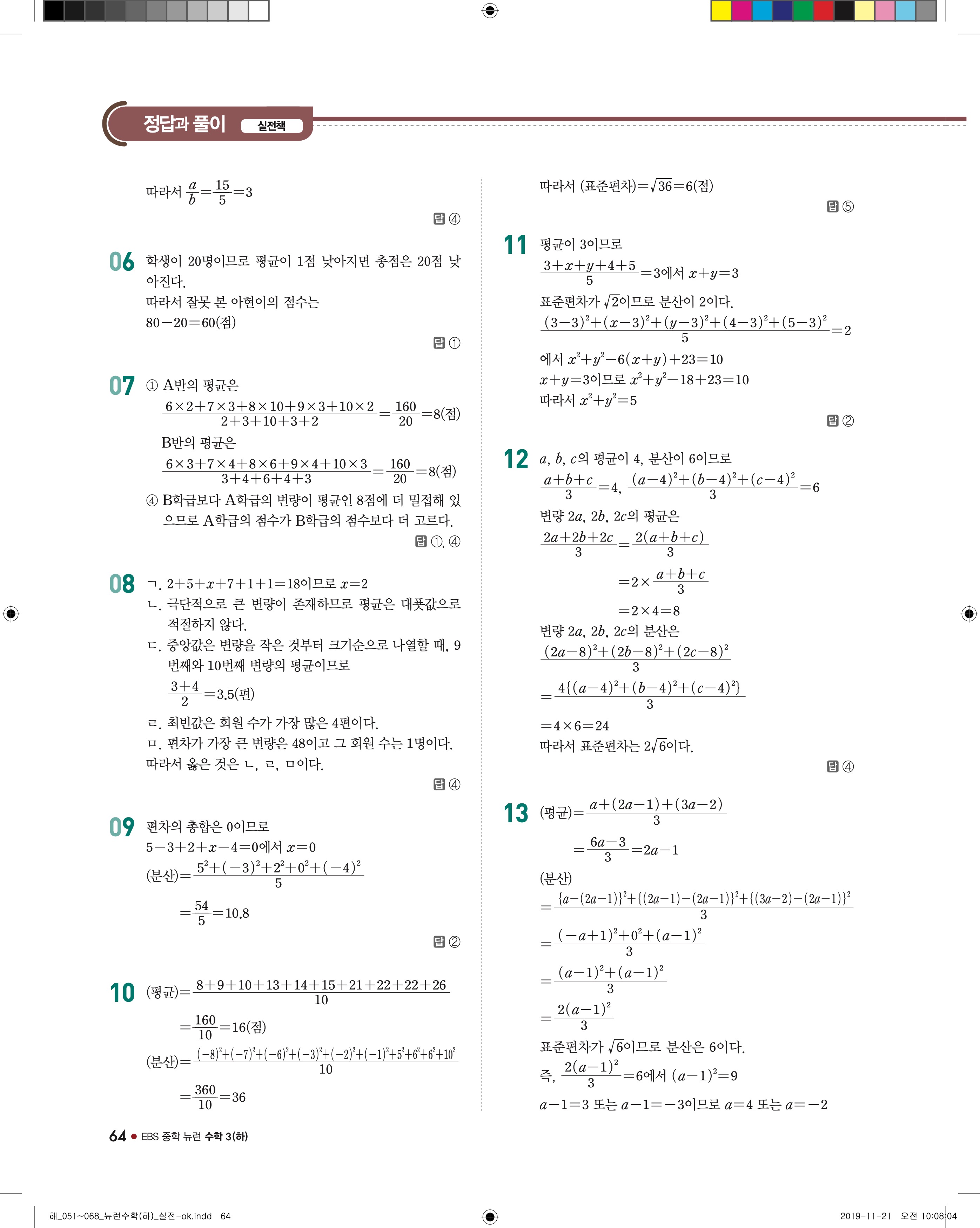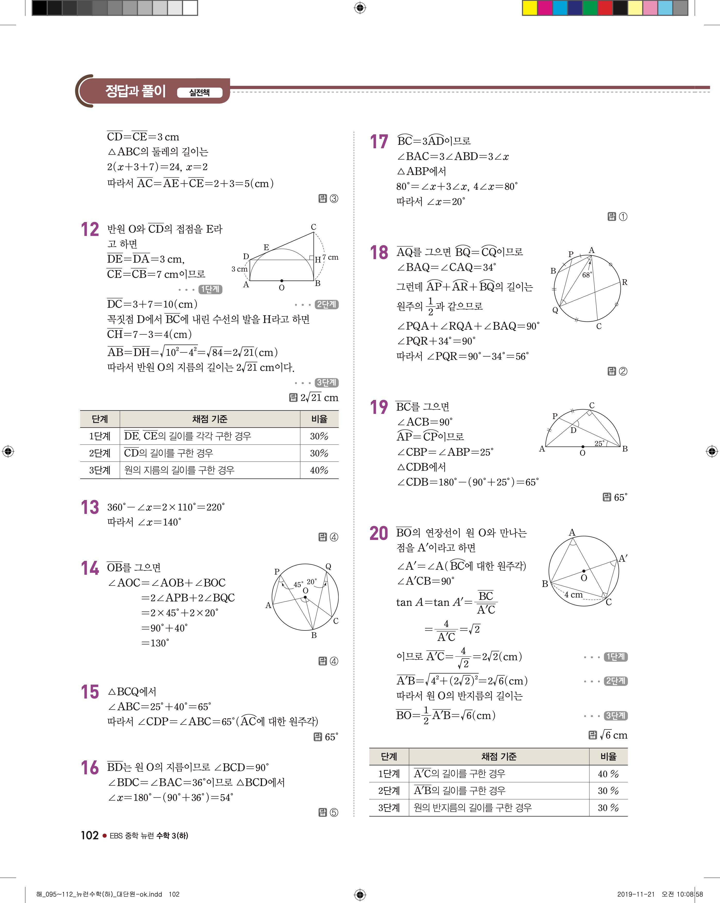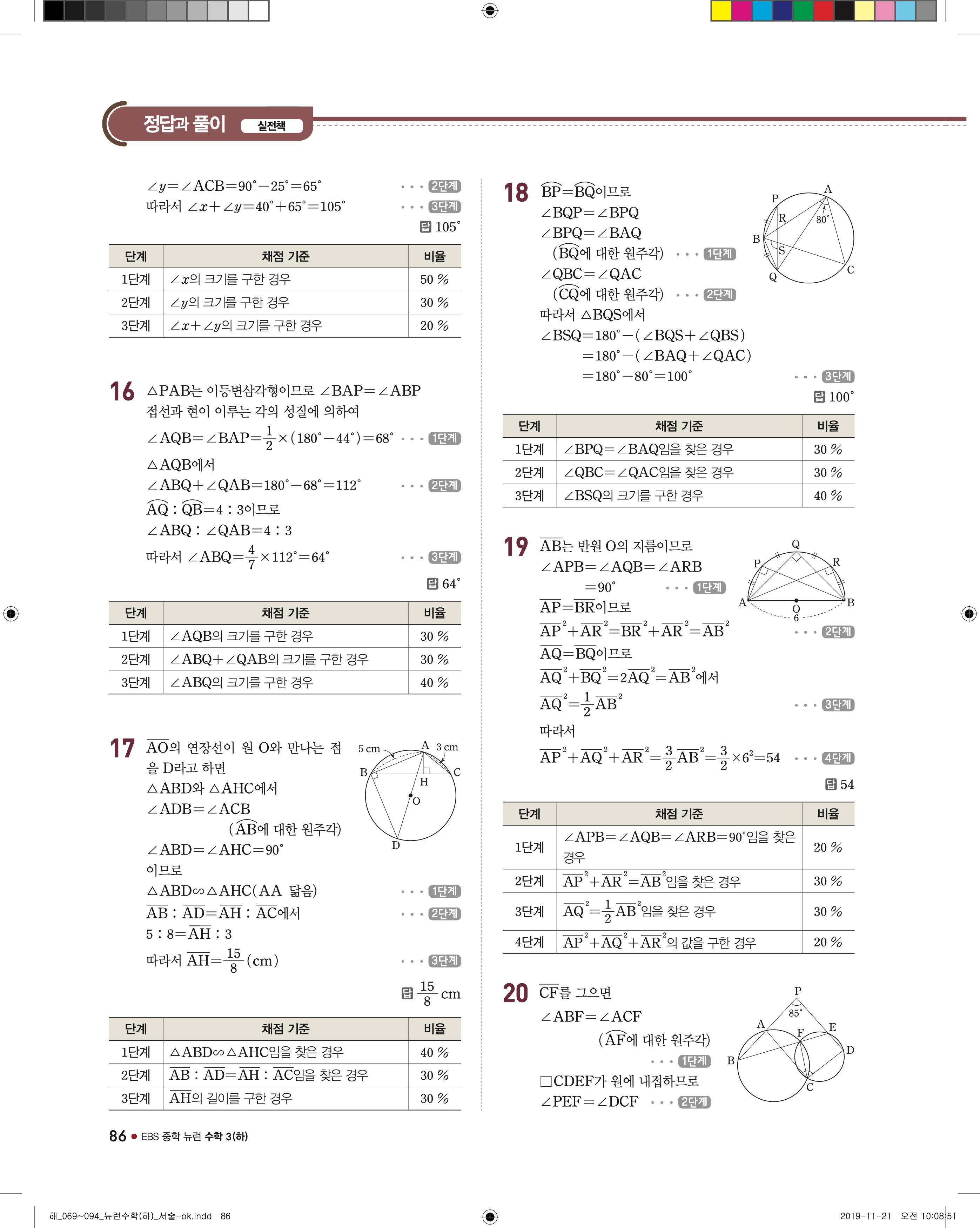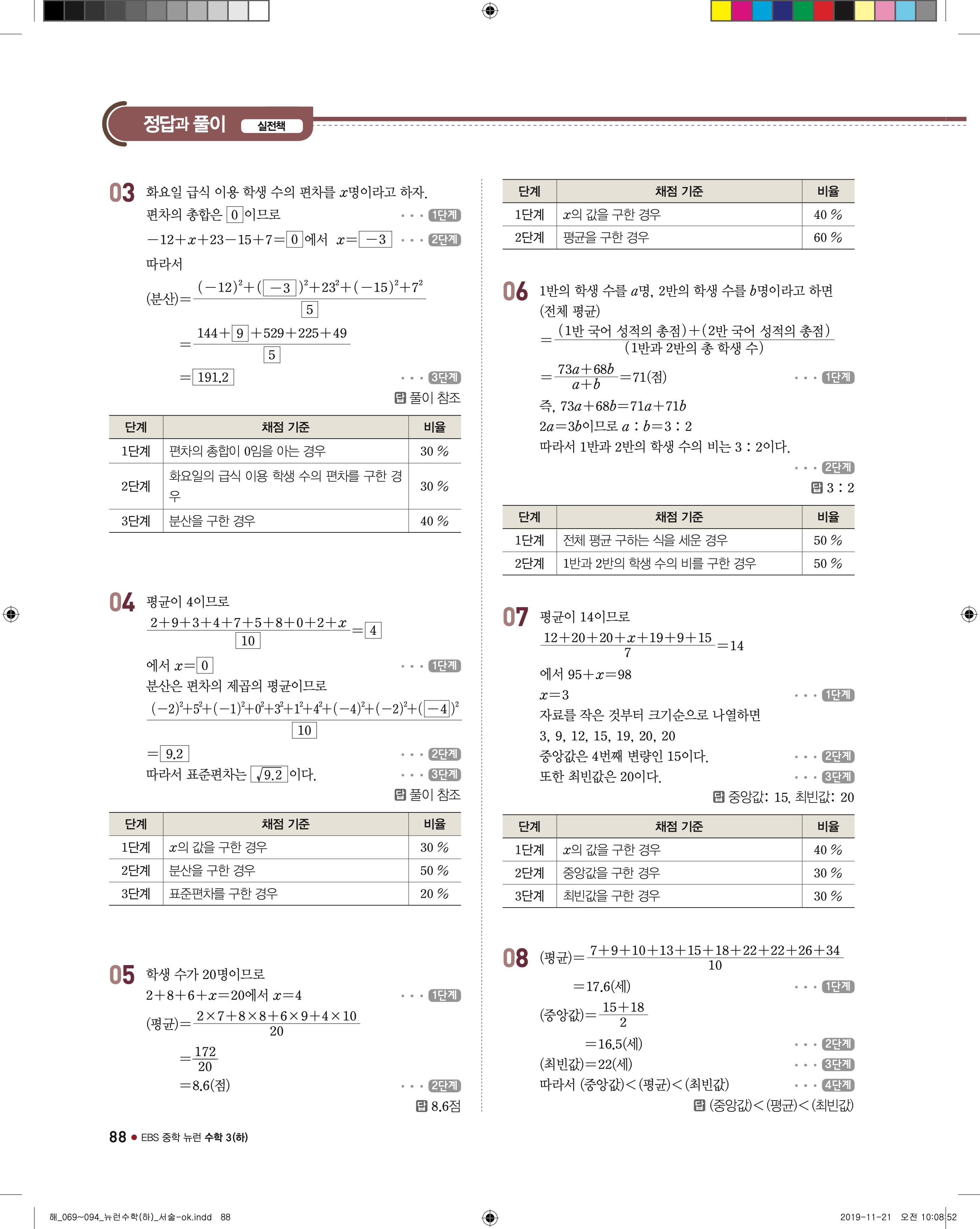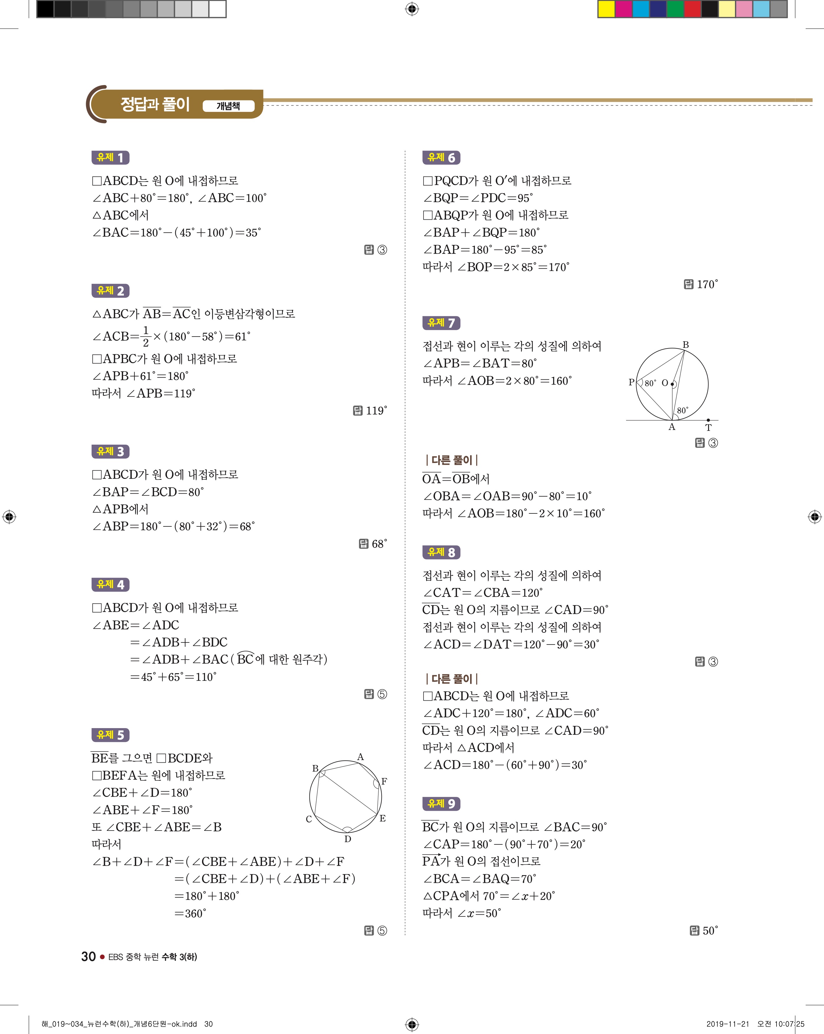 ebs중학뉴런 수학3하 3-2 답지 해설 바로보는 사진답지 빠른답지 모바일최적화