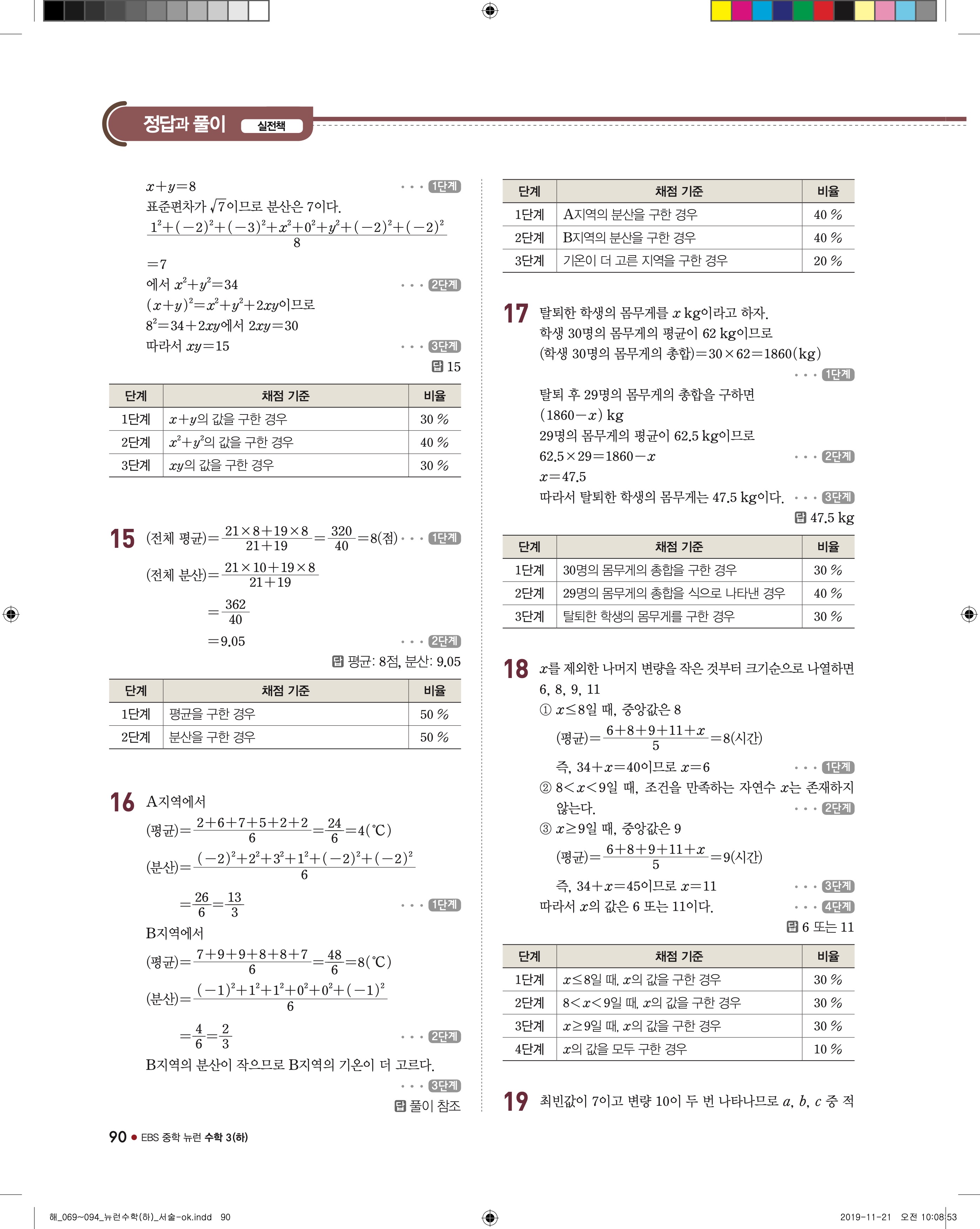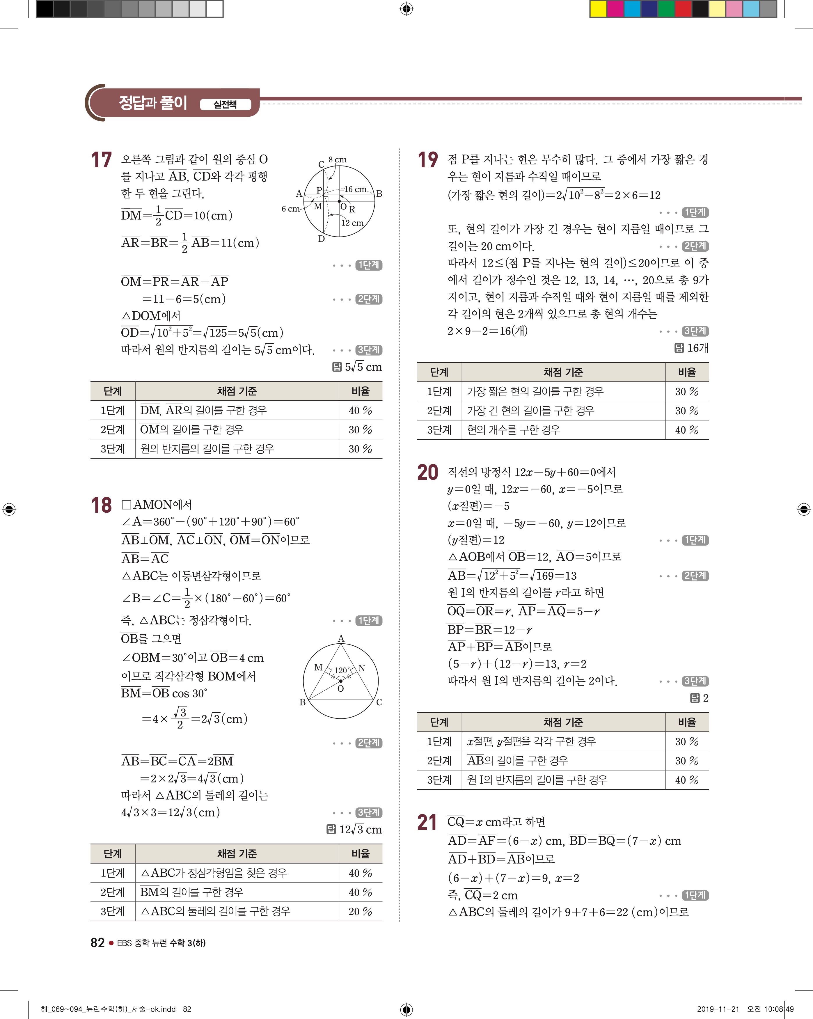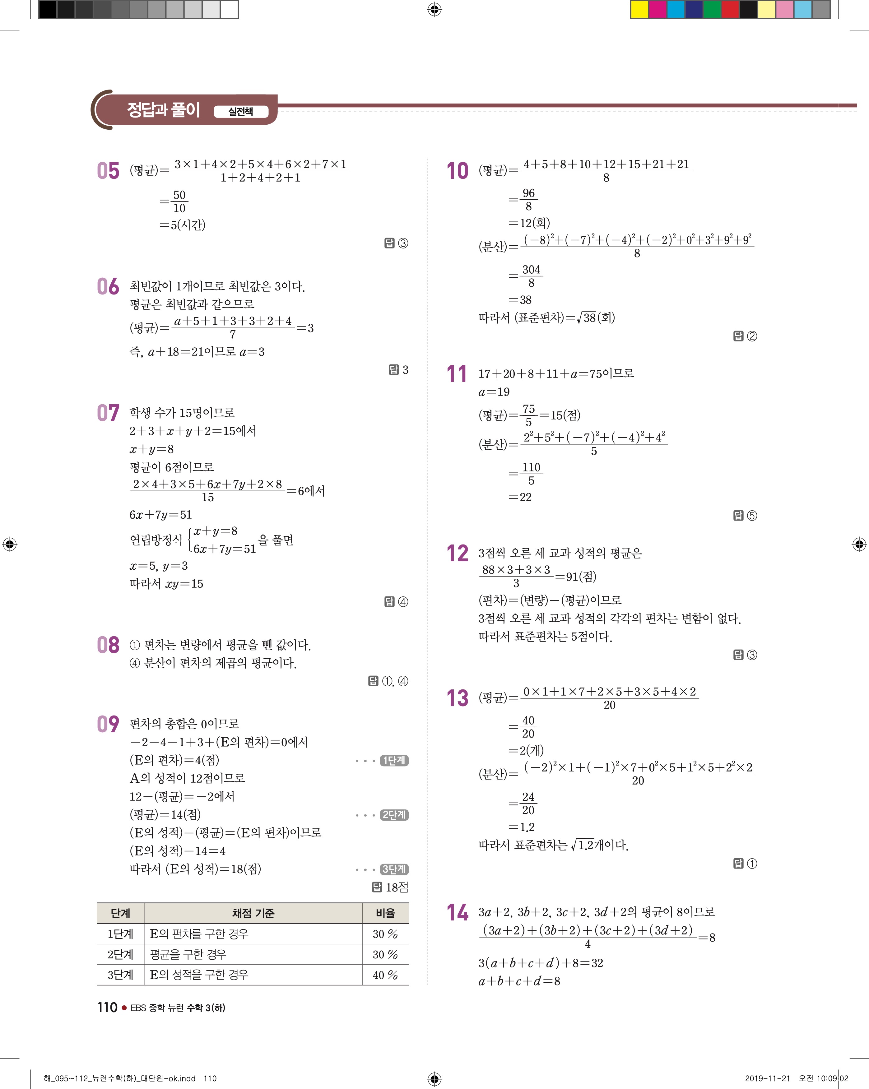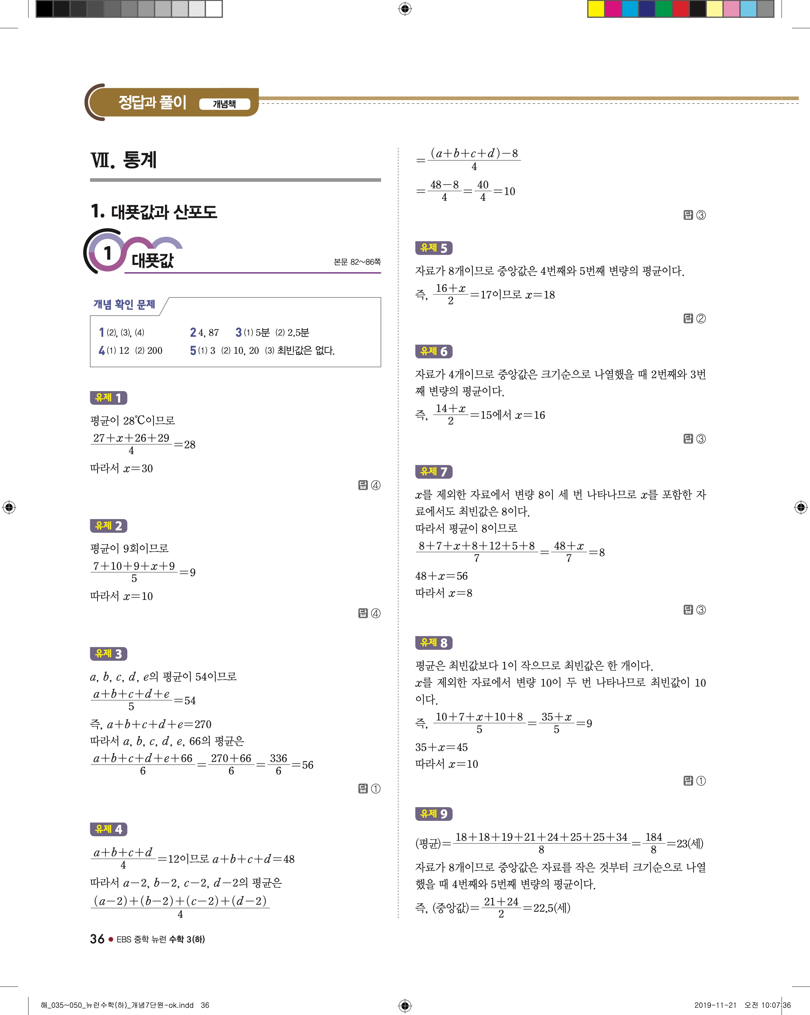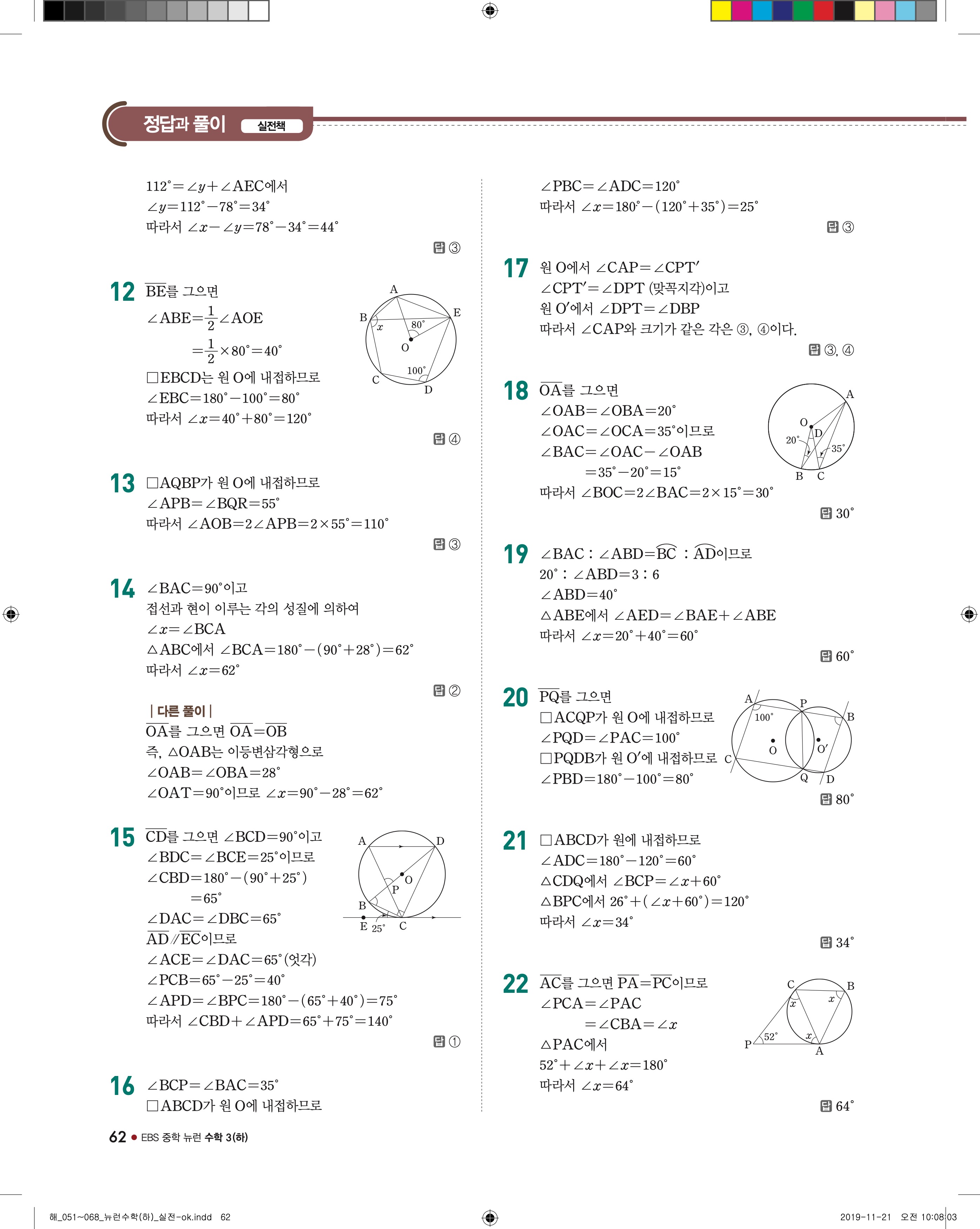 ebs중학뉴런 수학3하 3-2 답지 해설 바로보는 사진답지 빠른답지 모바일최적화