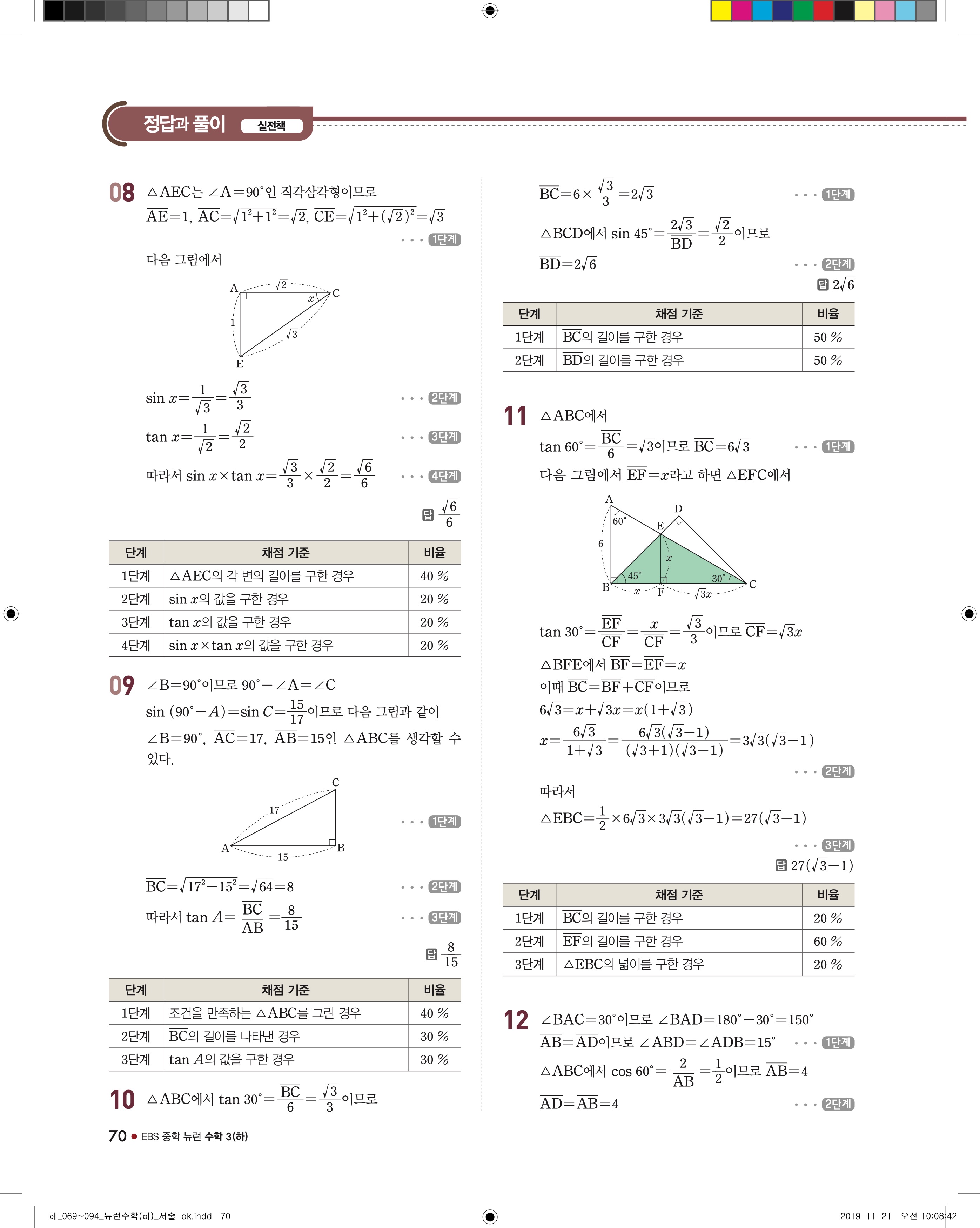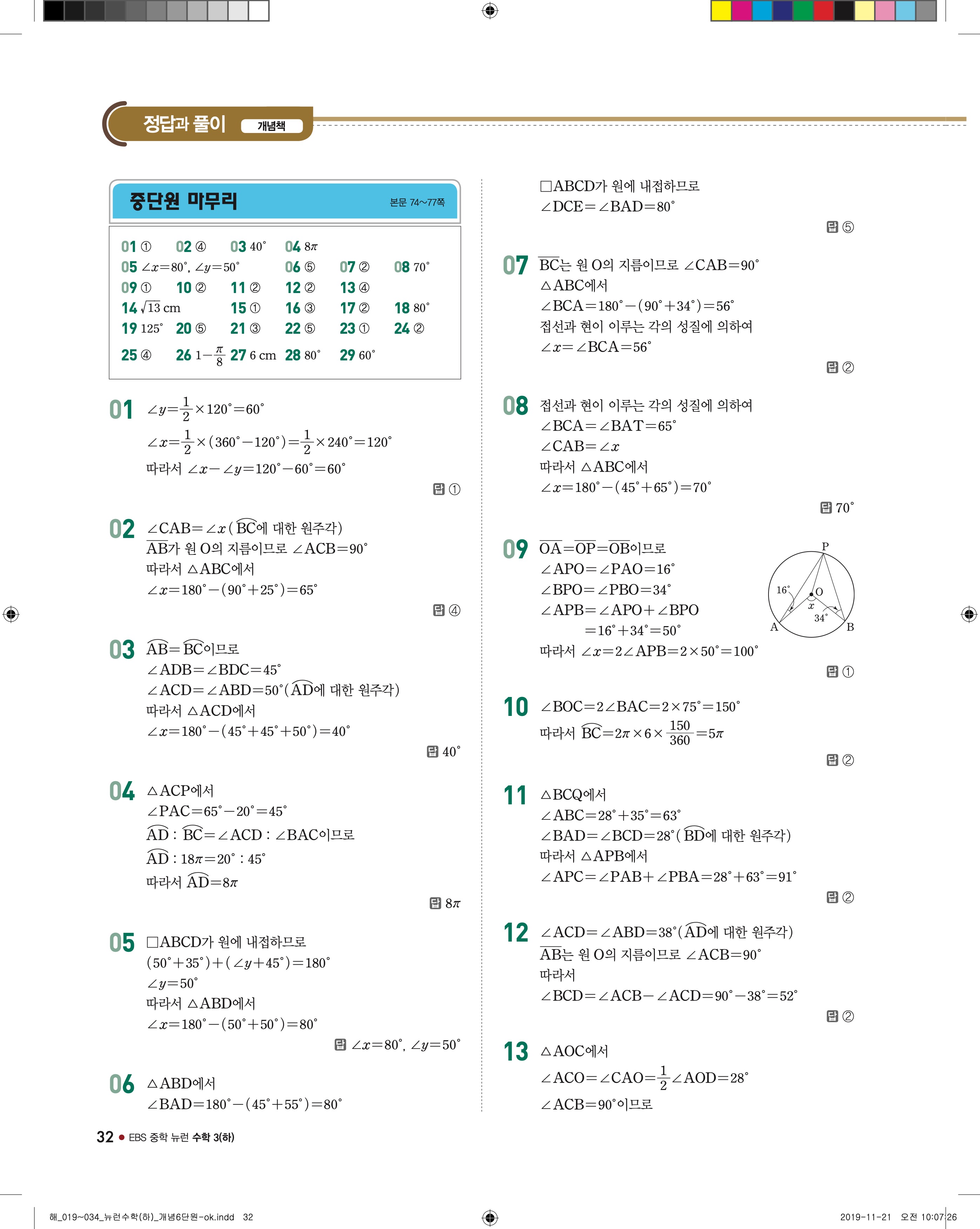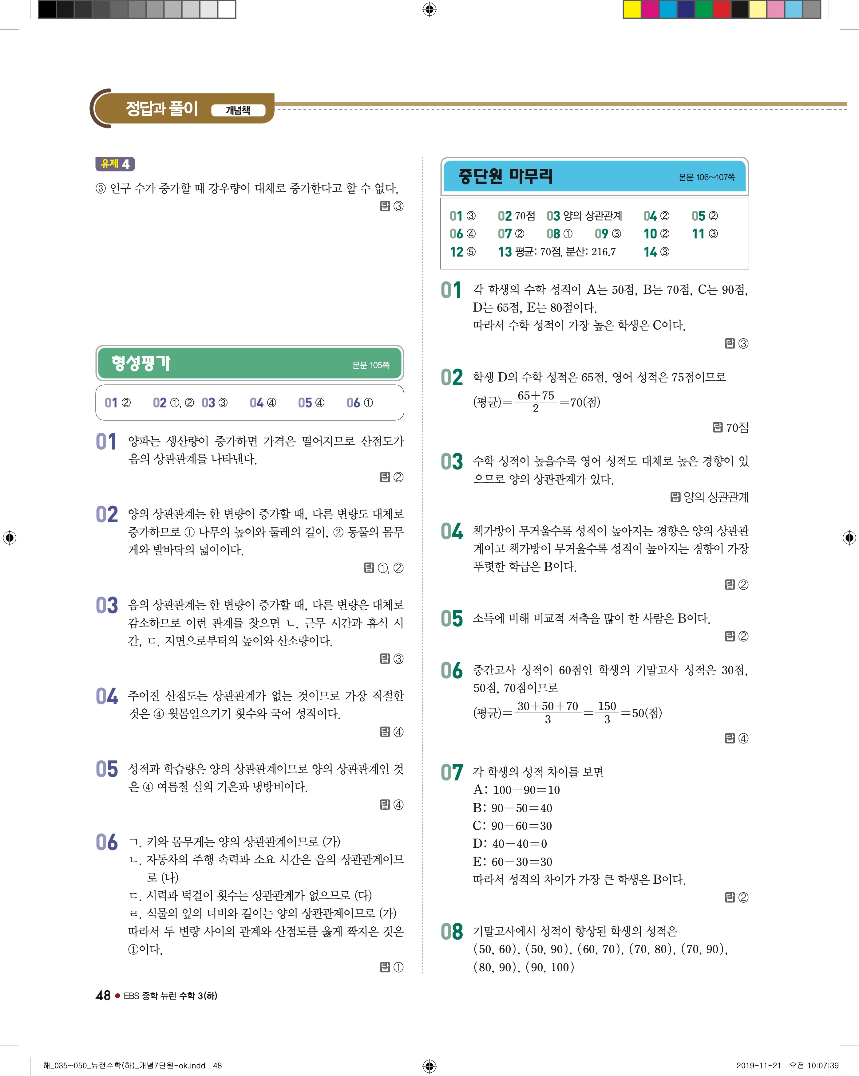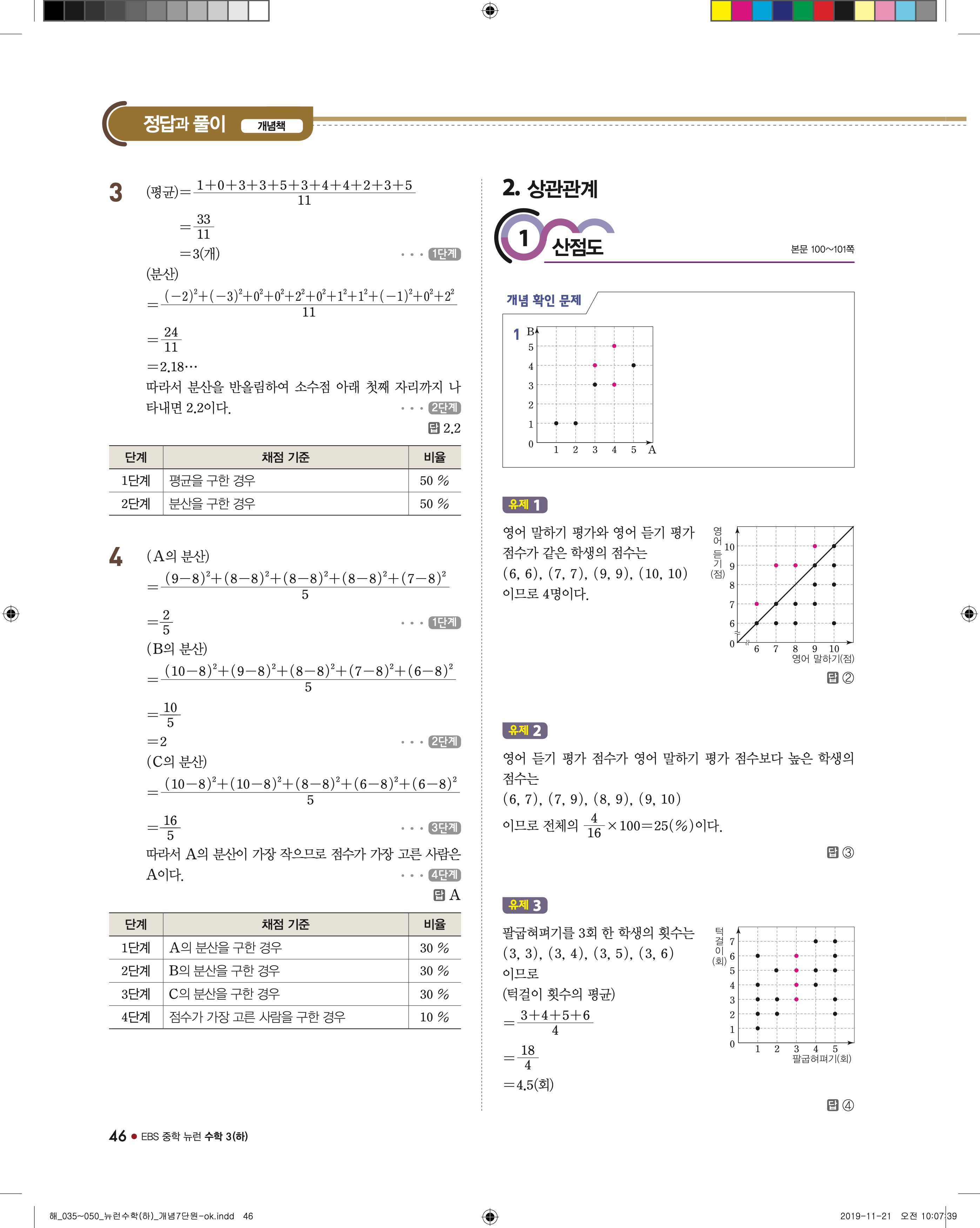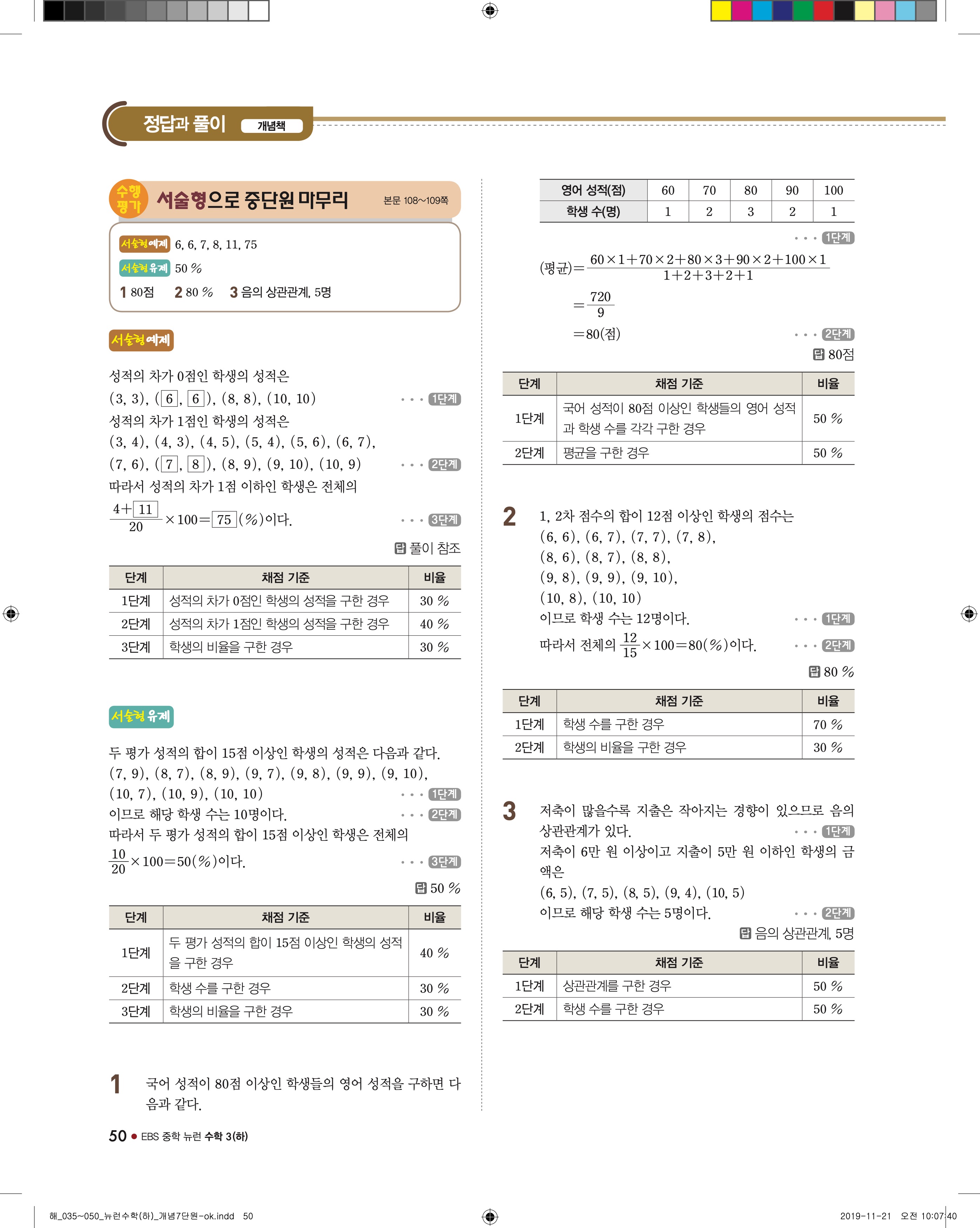 ebs중학뉴런 수학3하 3-2 답지 해설 바로보는 사진답지 빠른답지 모바일최적화