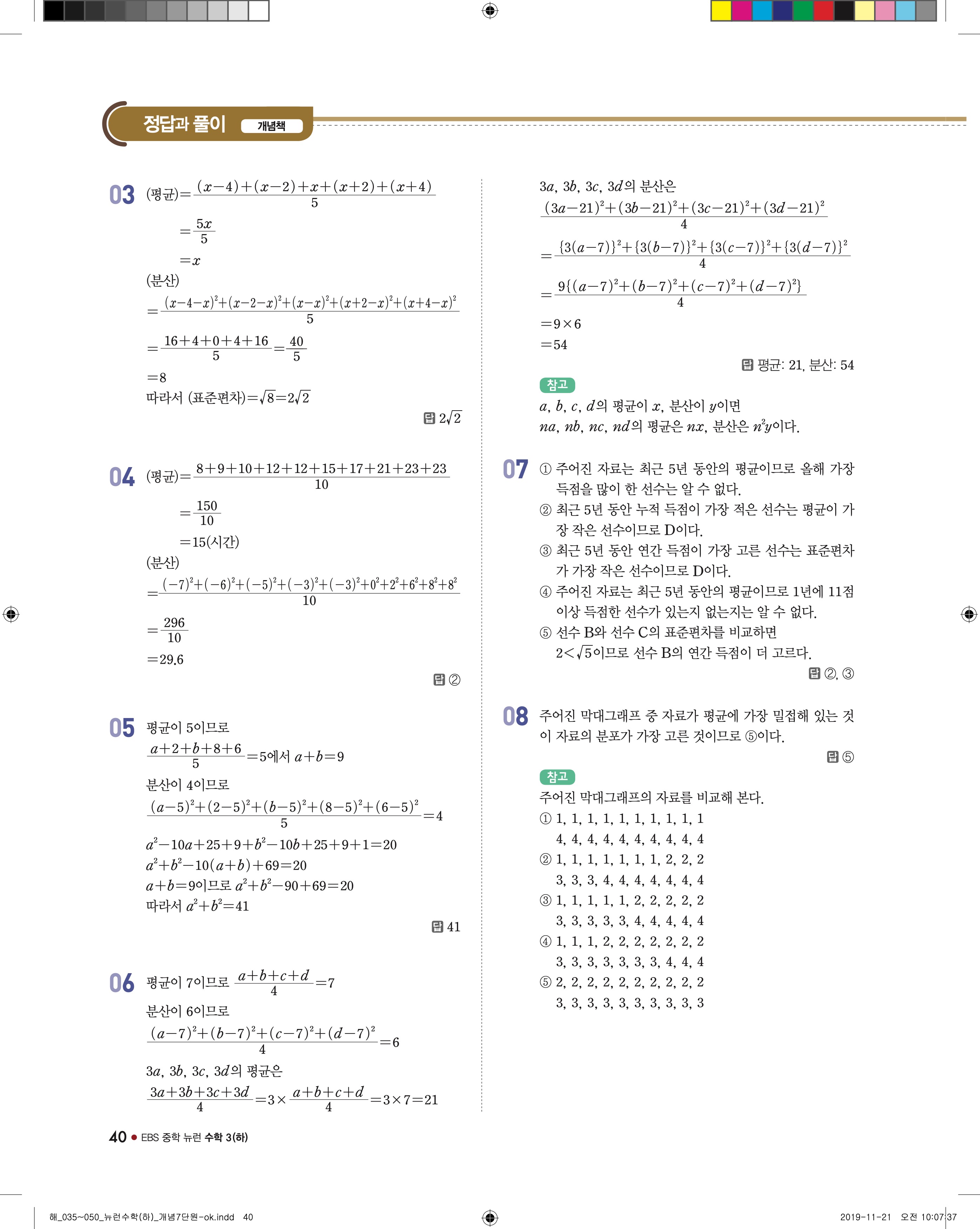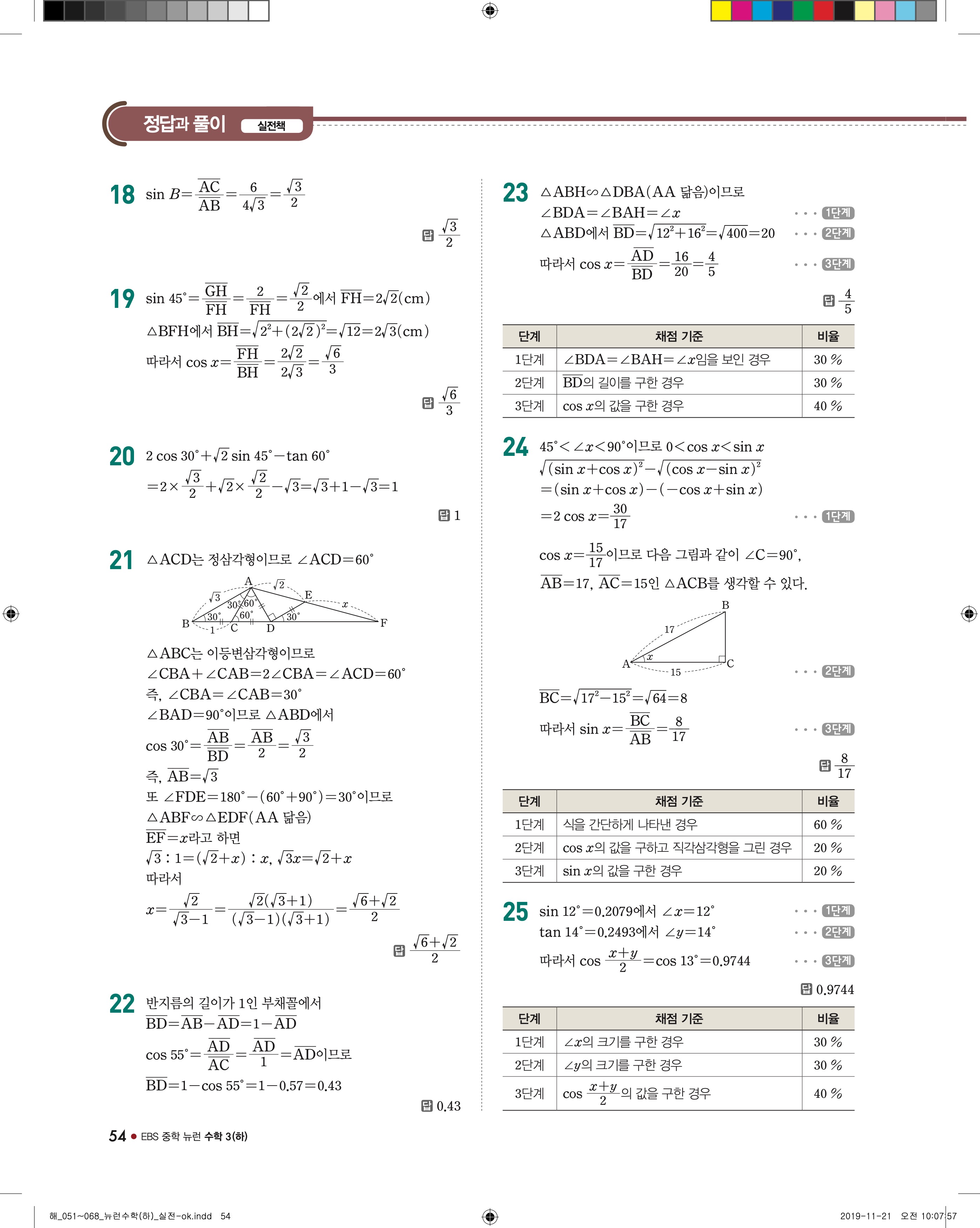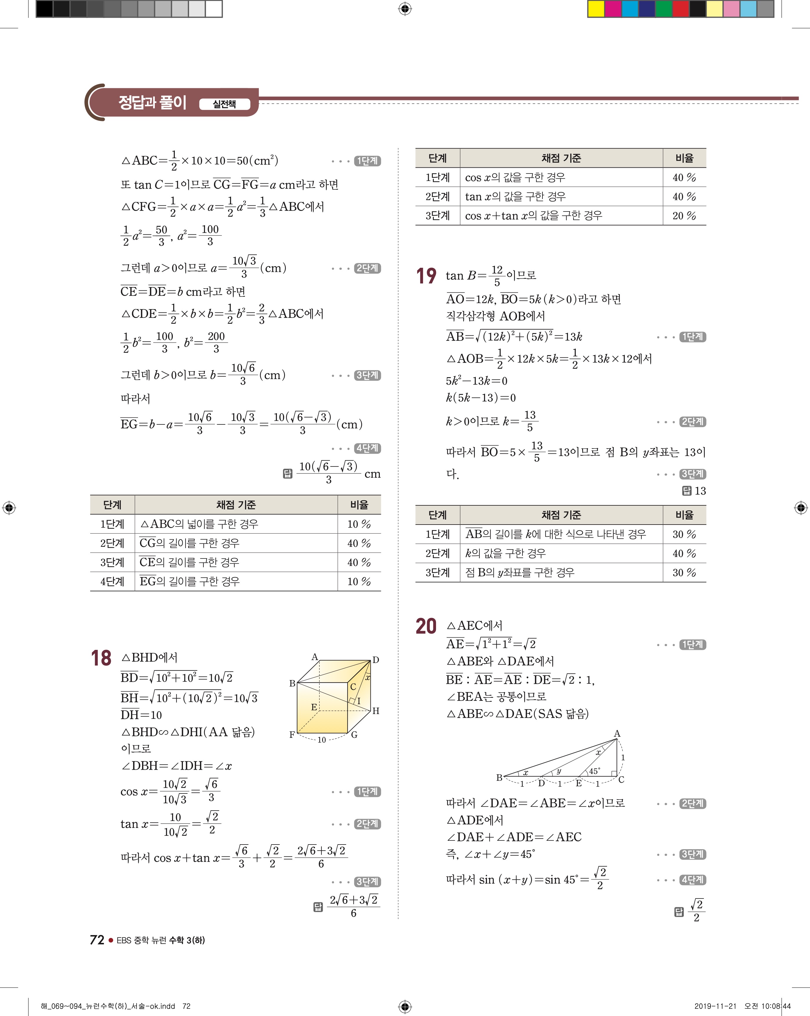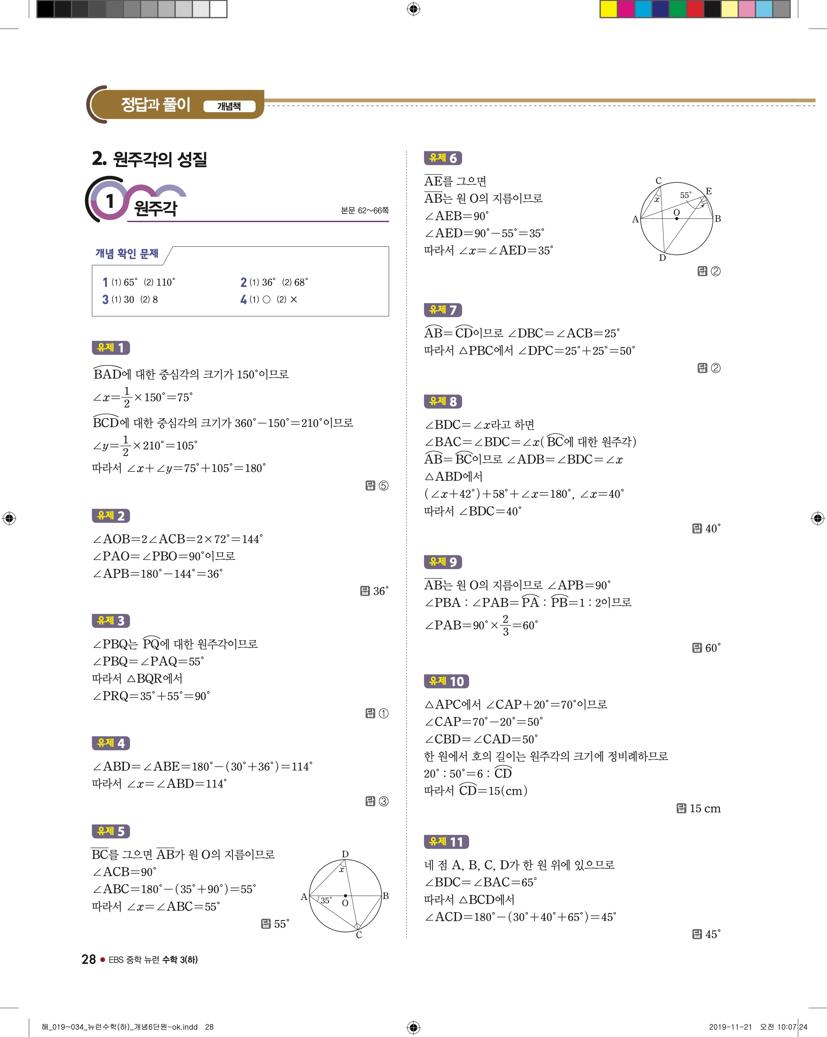 ebs중학뉴런 수학3하 3-2 답지 해설 바로보는 사진답지 빠른답지 모바일최적화
