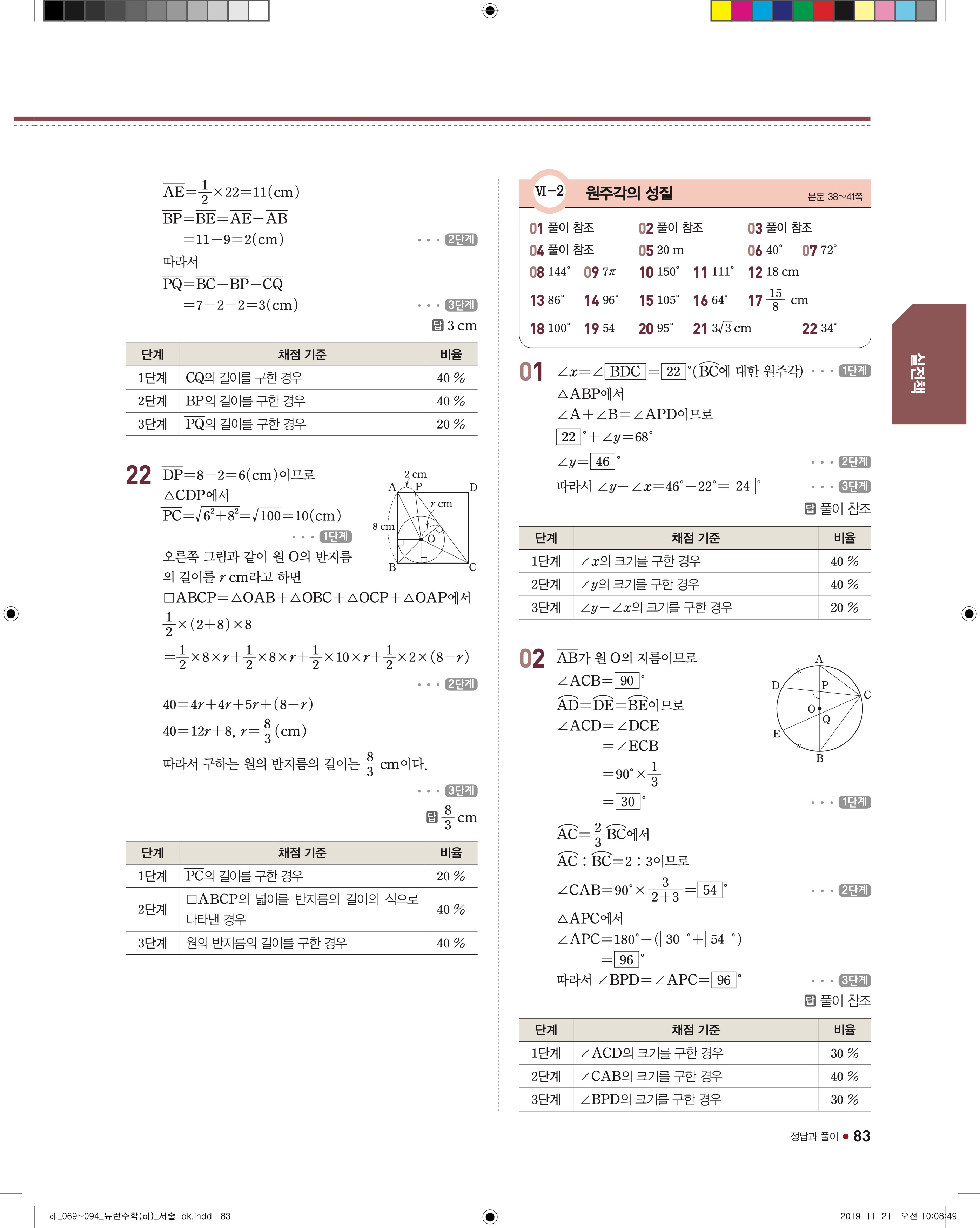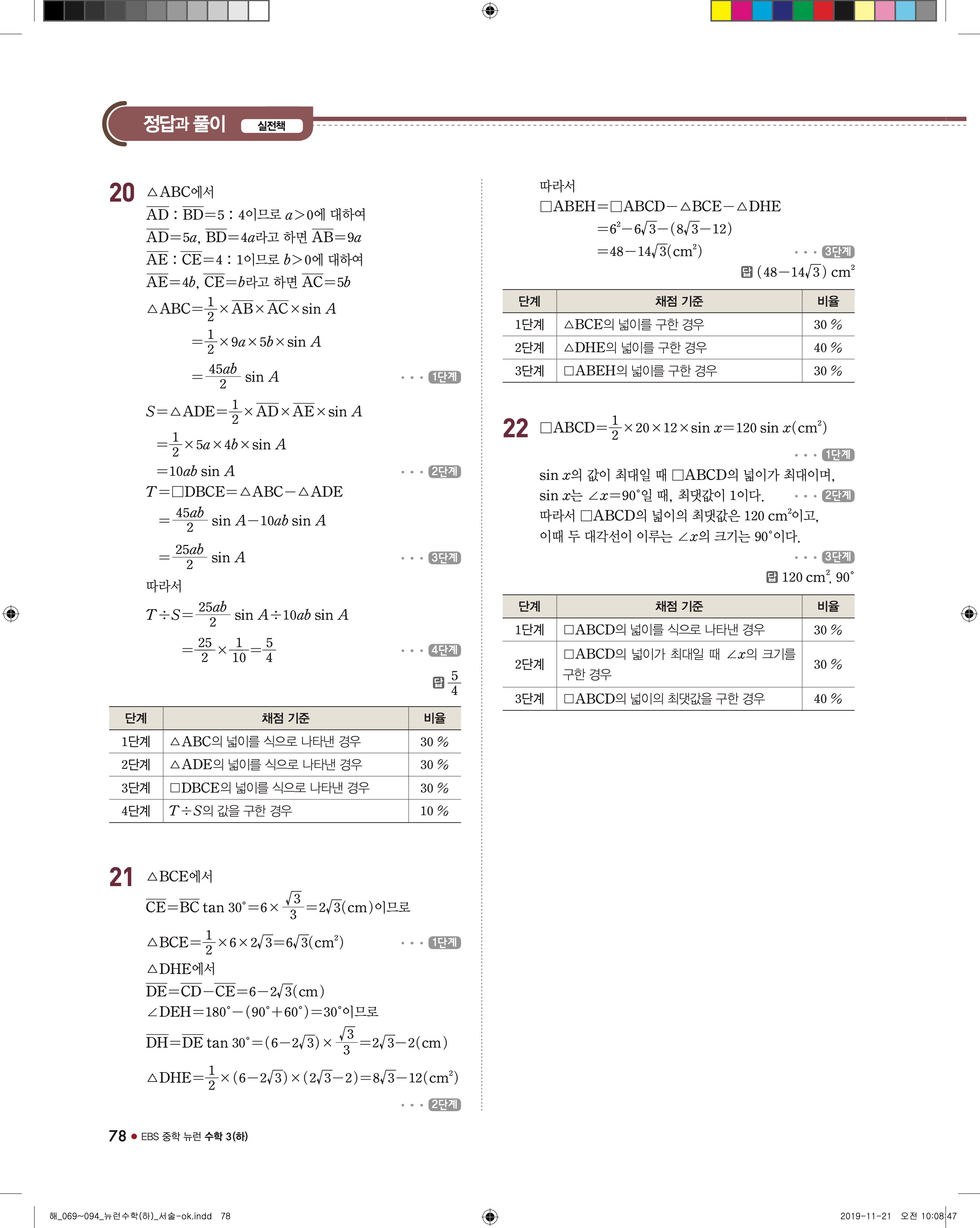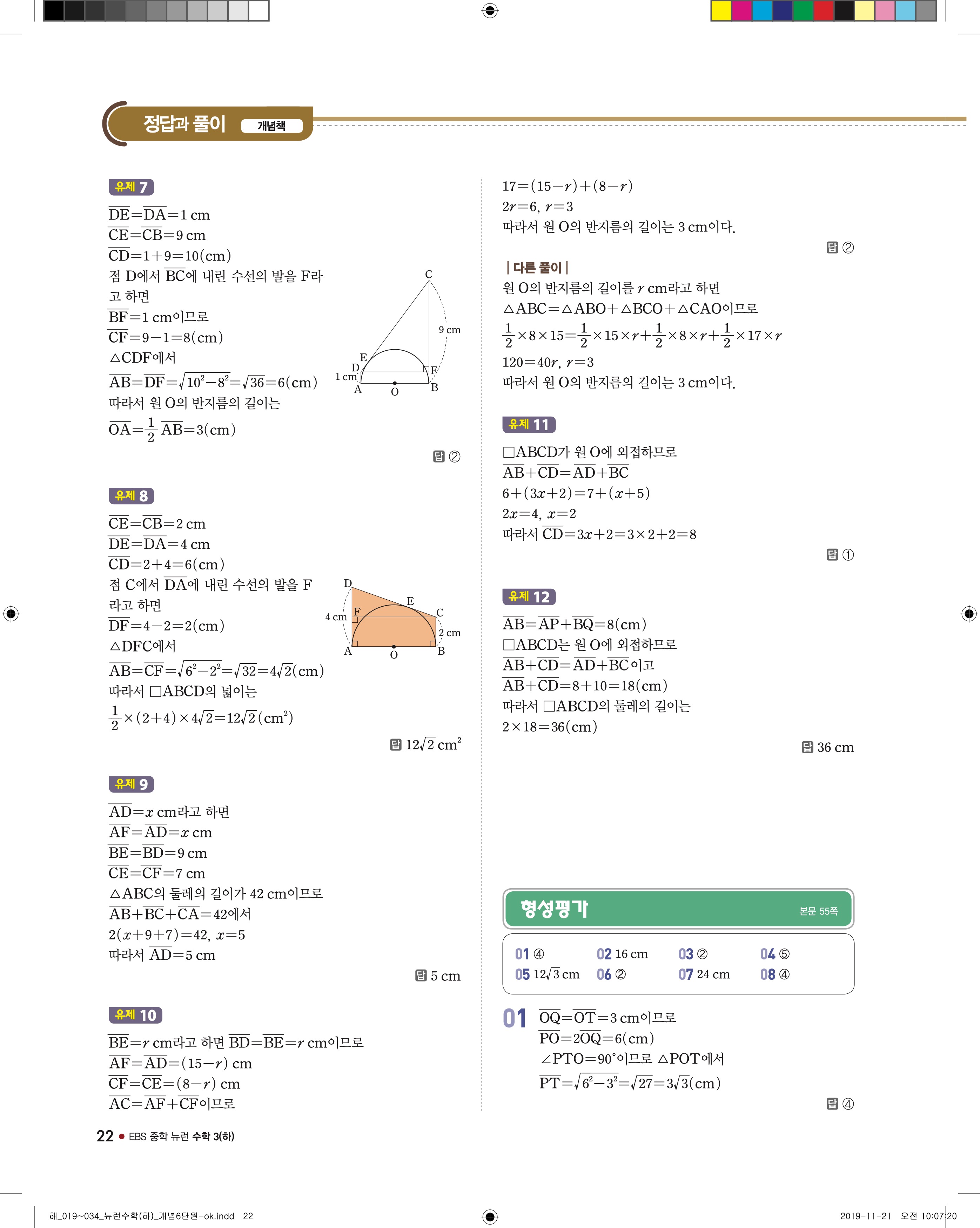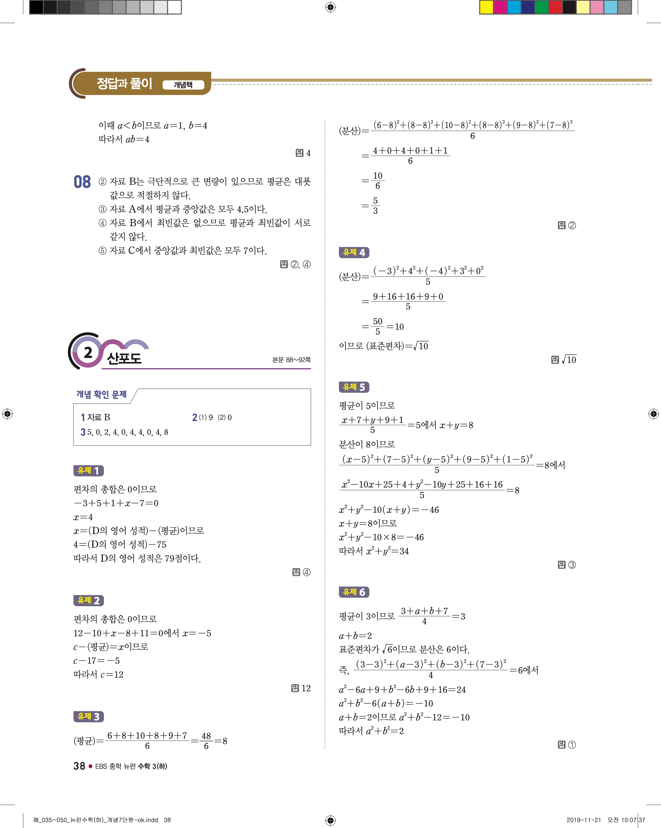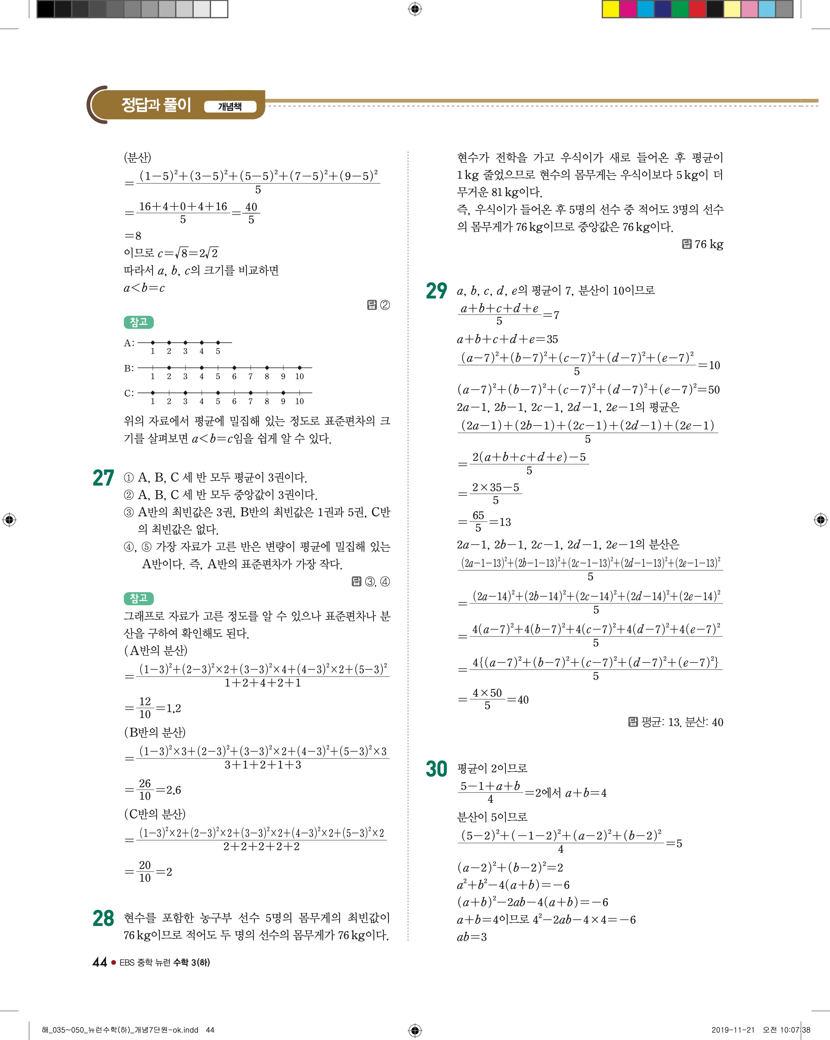 ebs중학뉴런 수학3하 3-2 답지 해설 바로보는 사진답지 빠른답지 모바일최적화