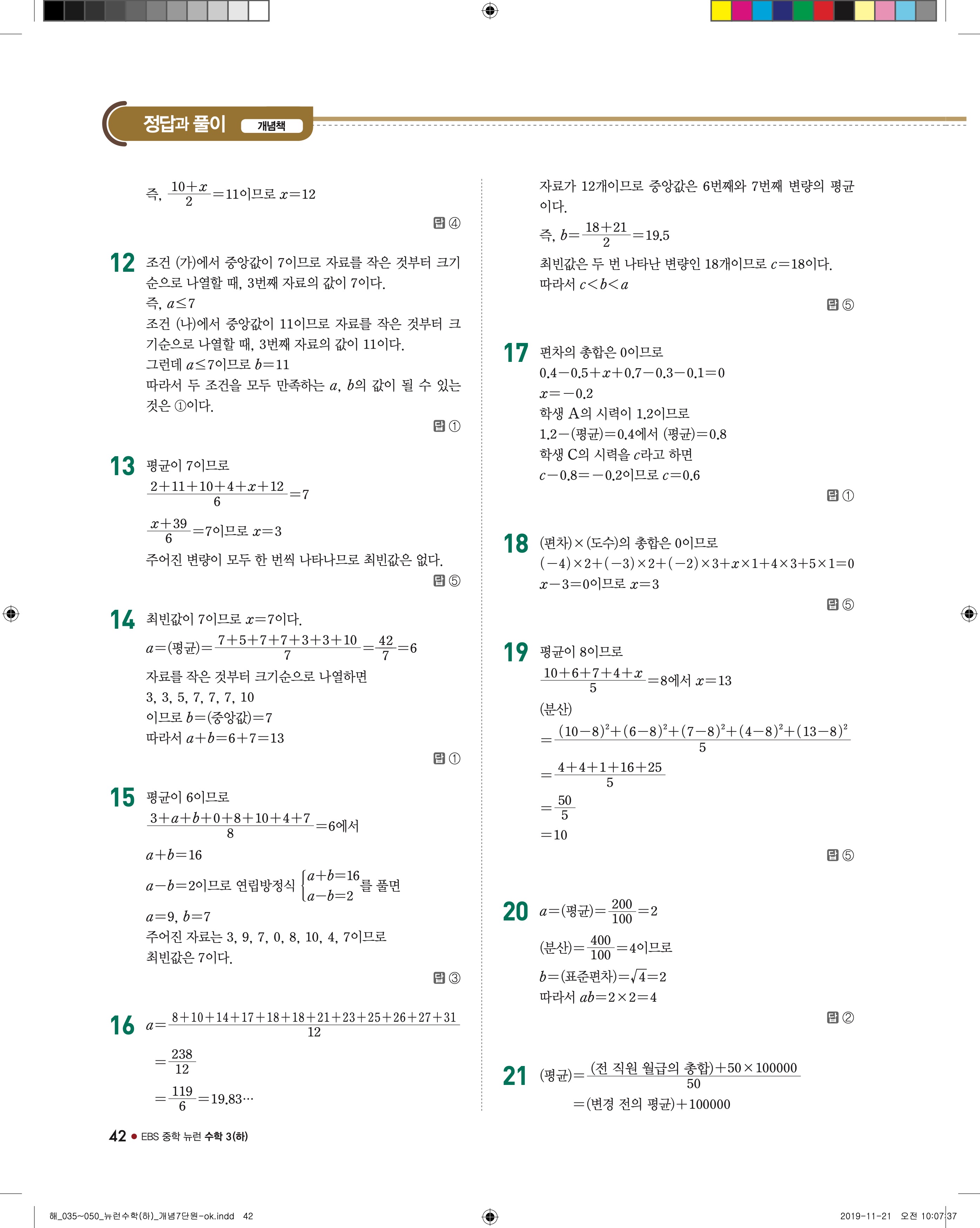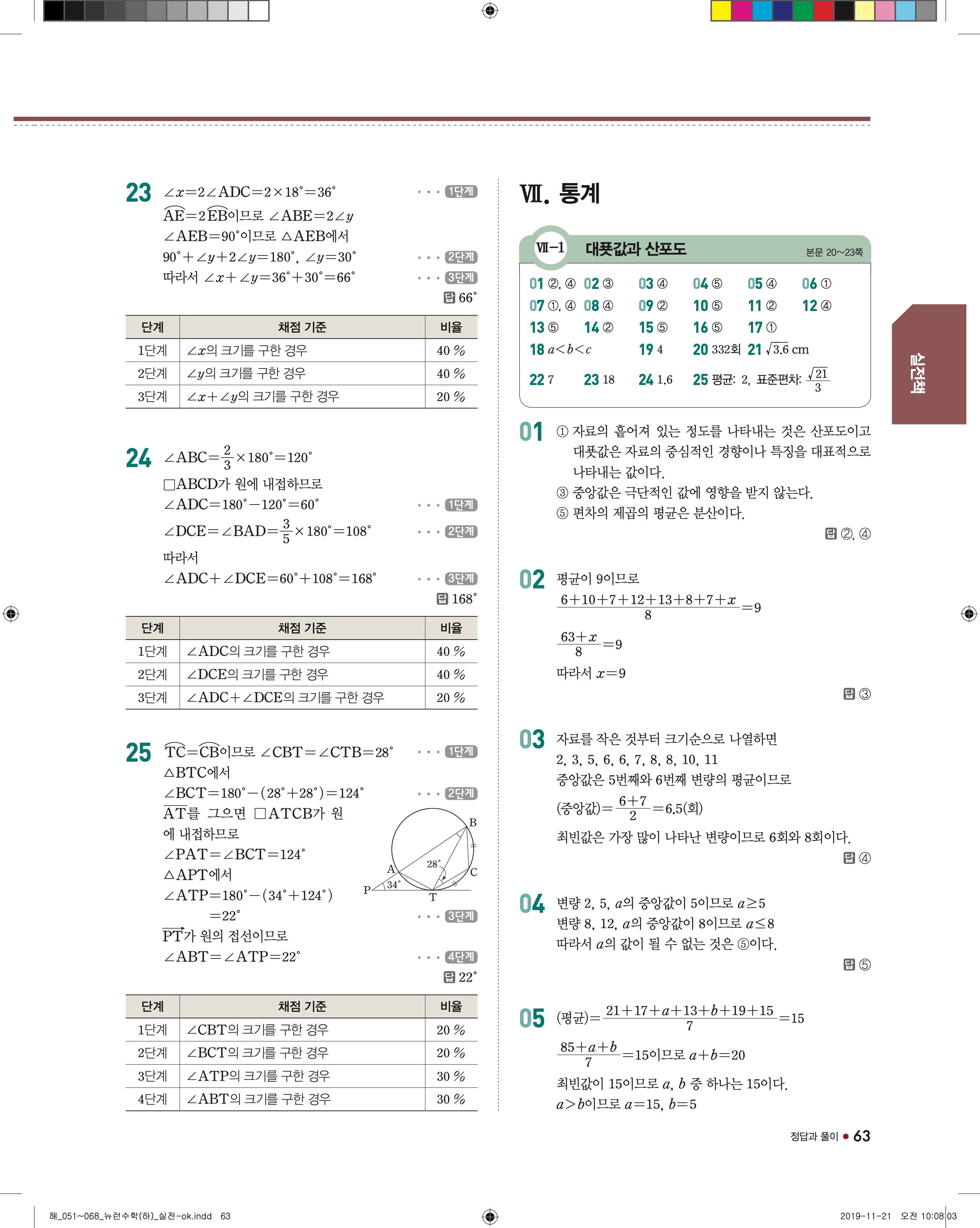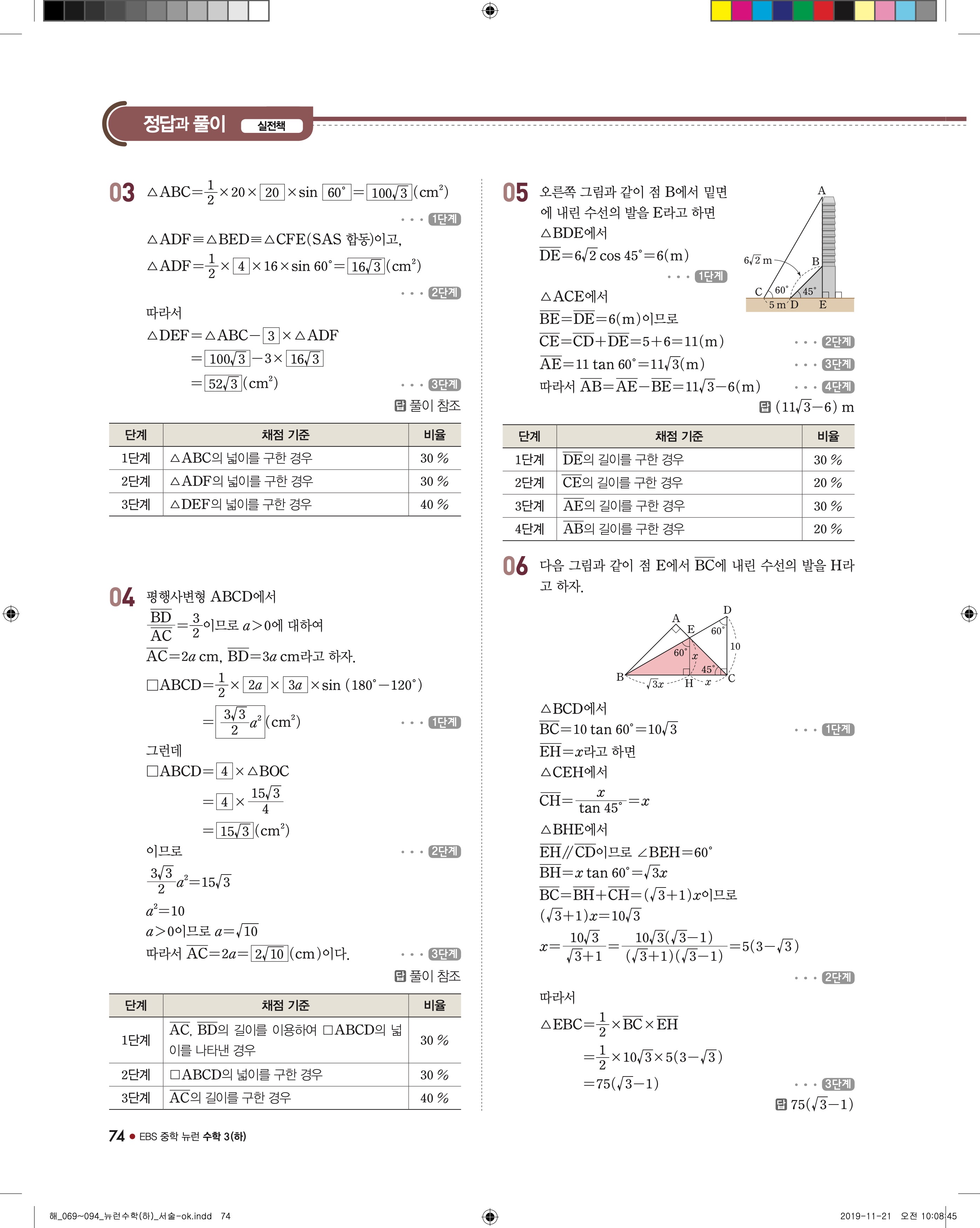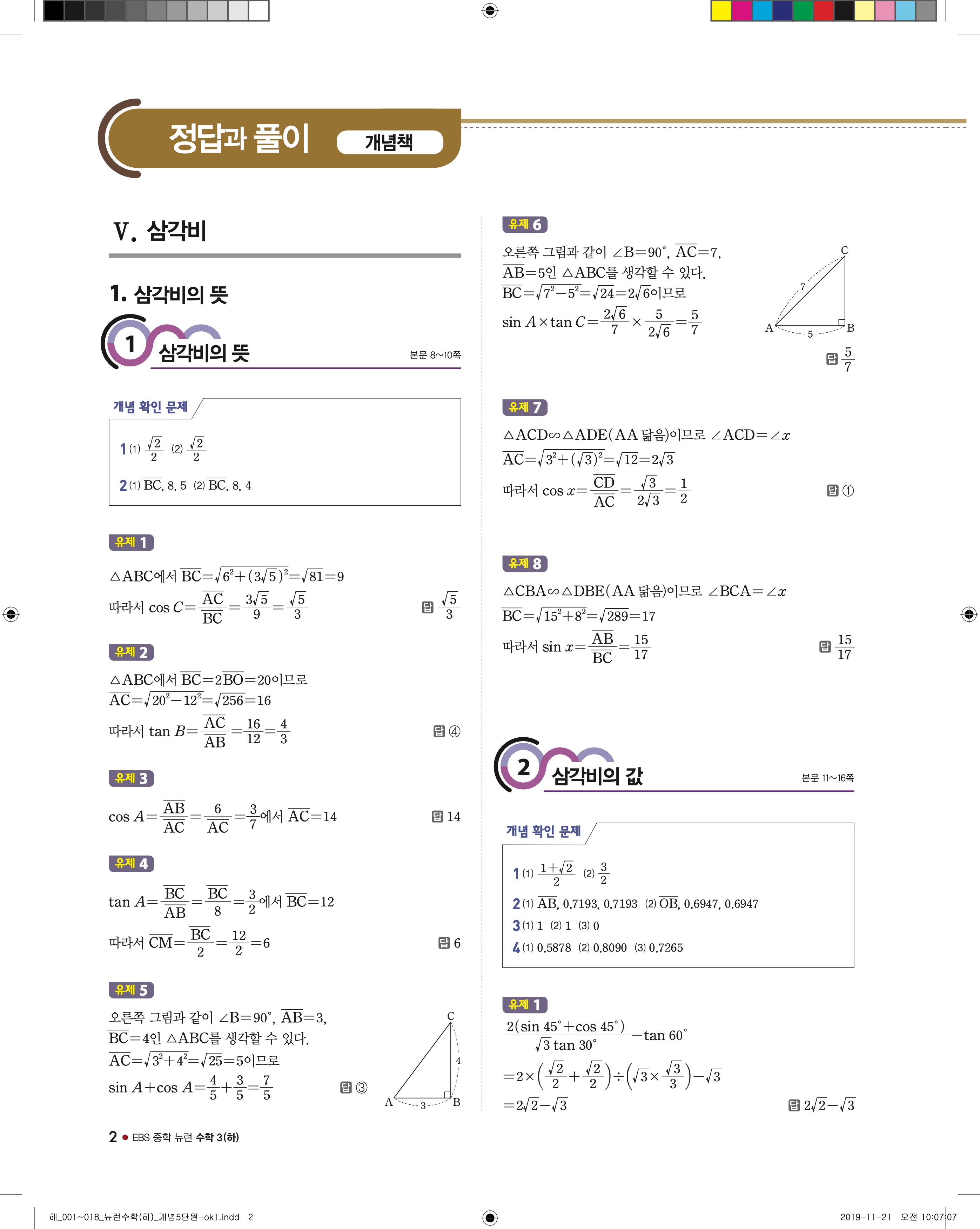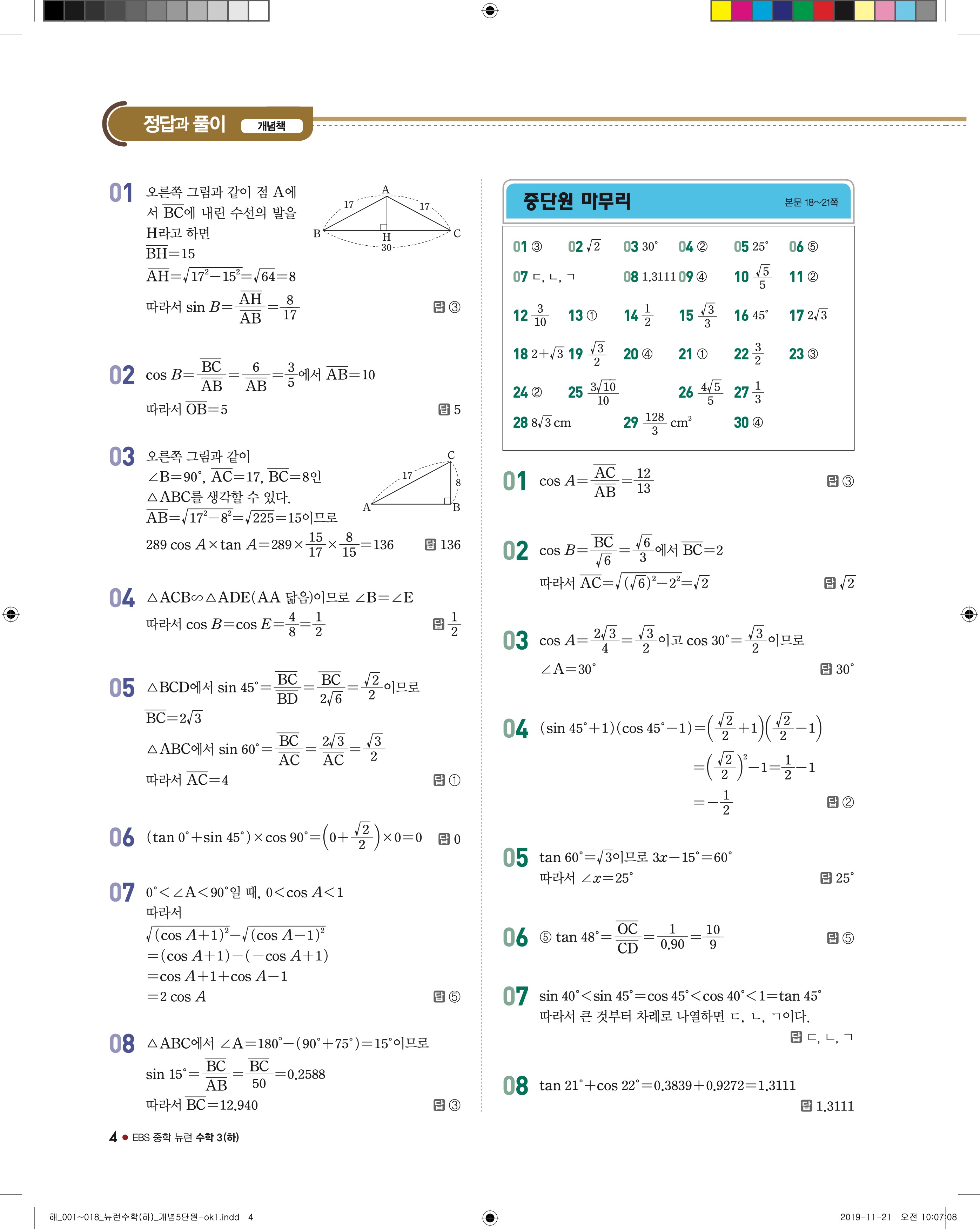 ebs중학뉴런 수학3하 3-2 답지 해설 바로보는 사진답지 빠른답지 모바일최적화