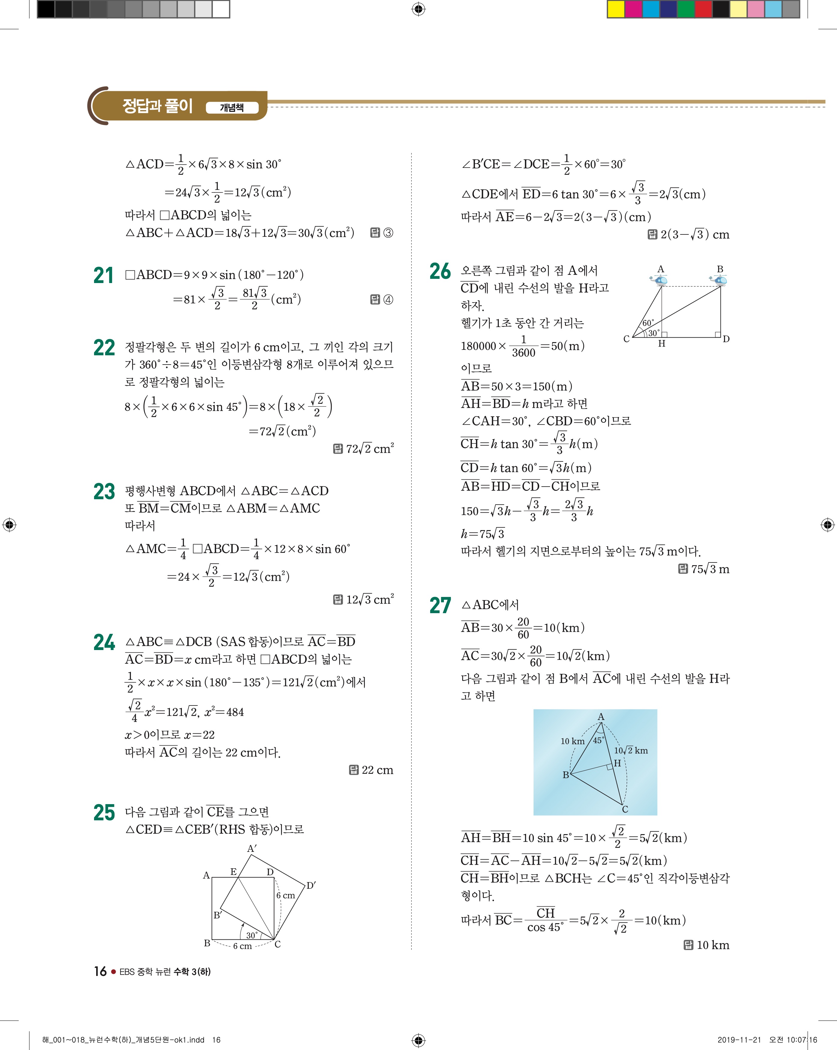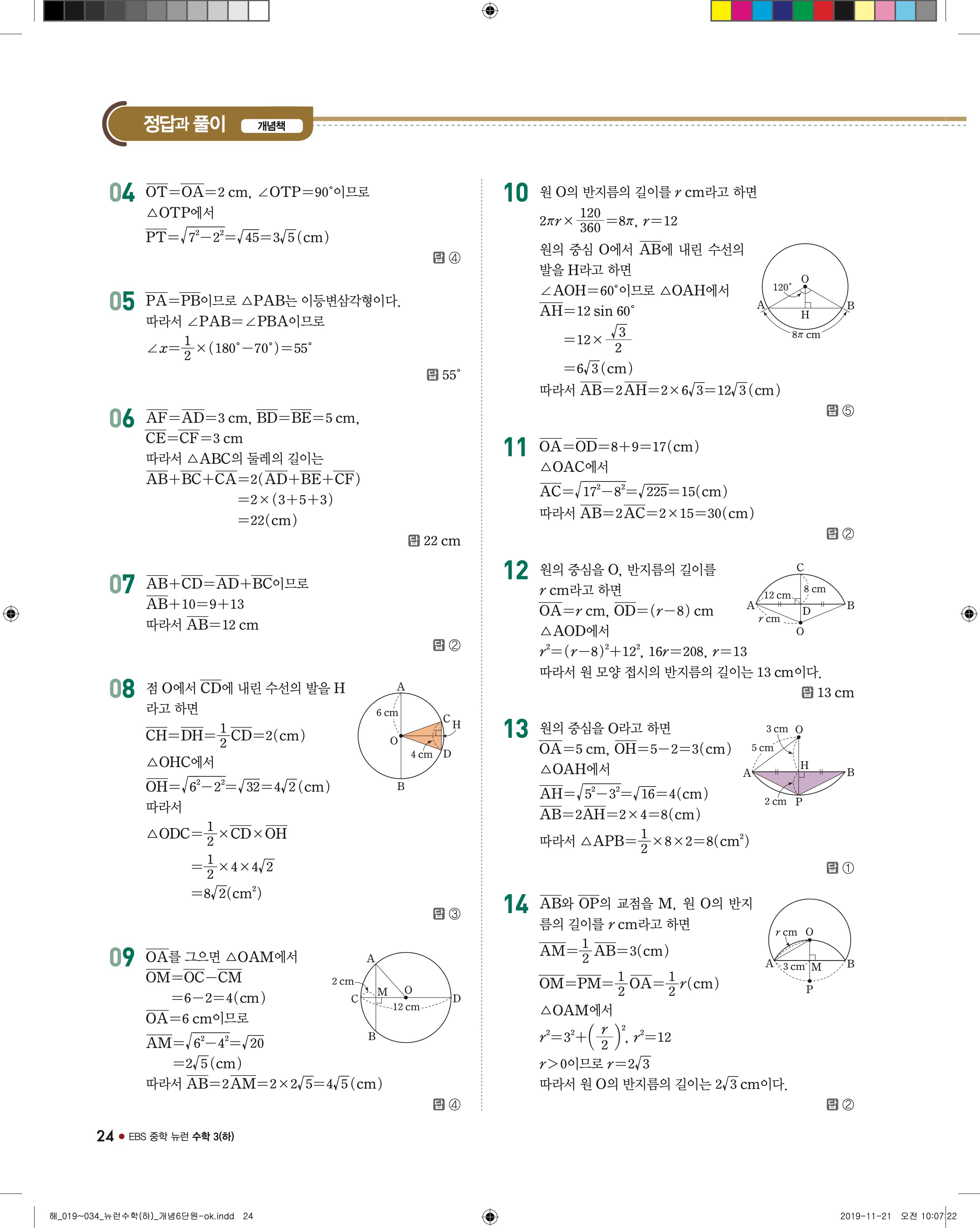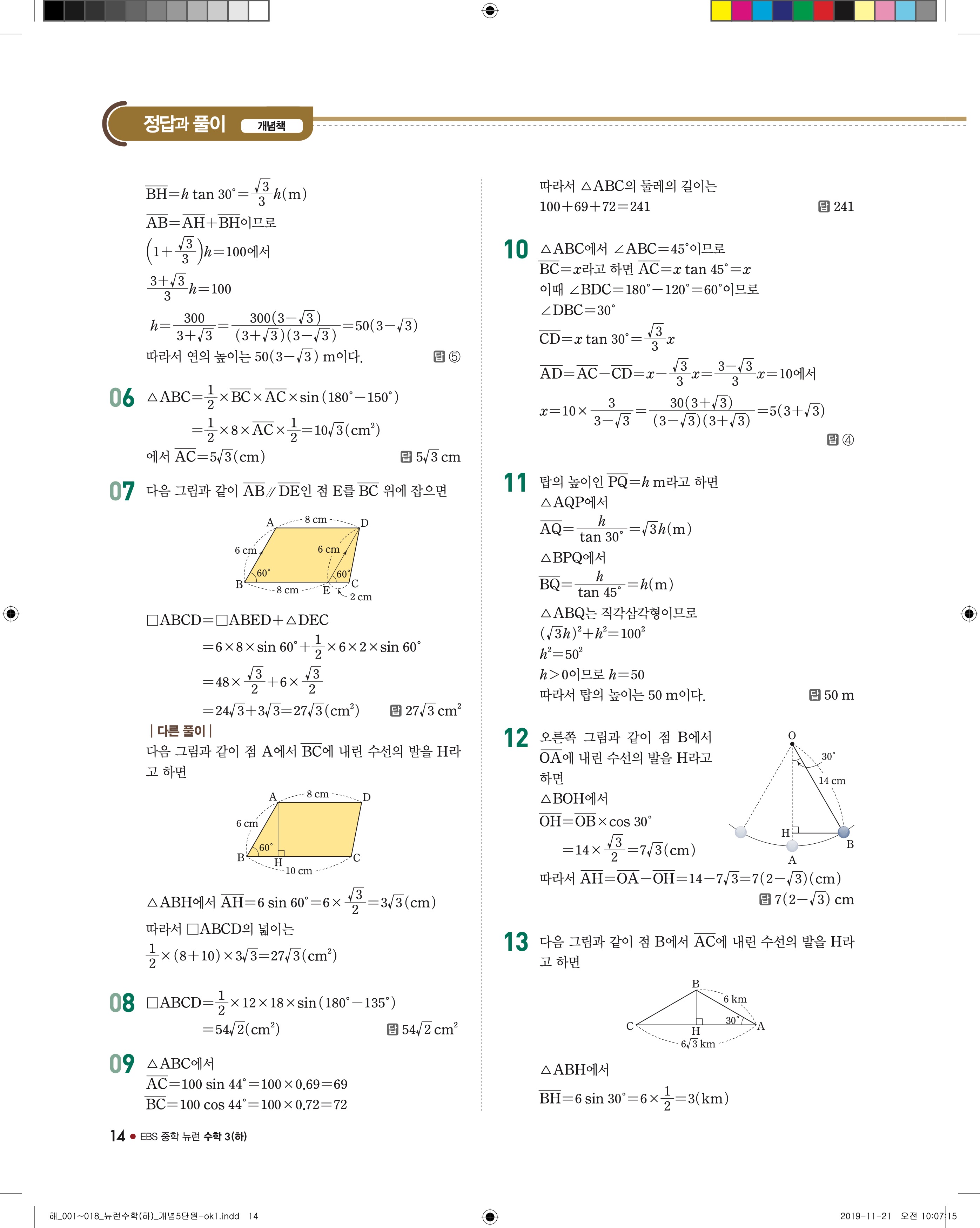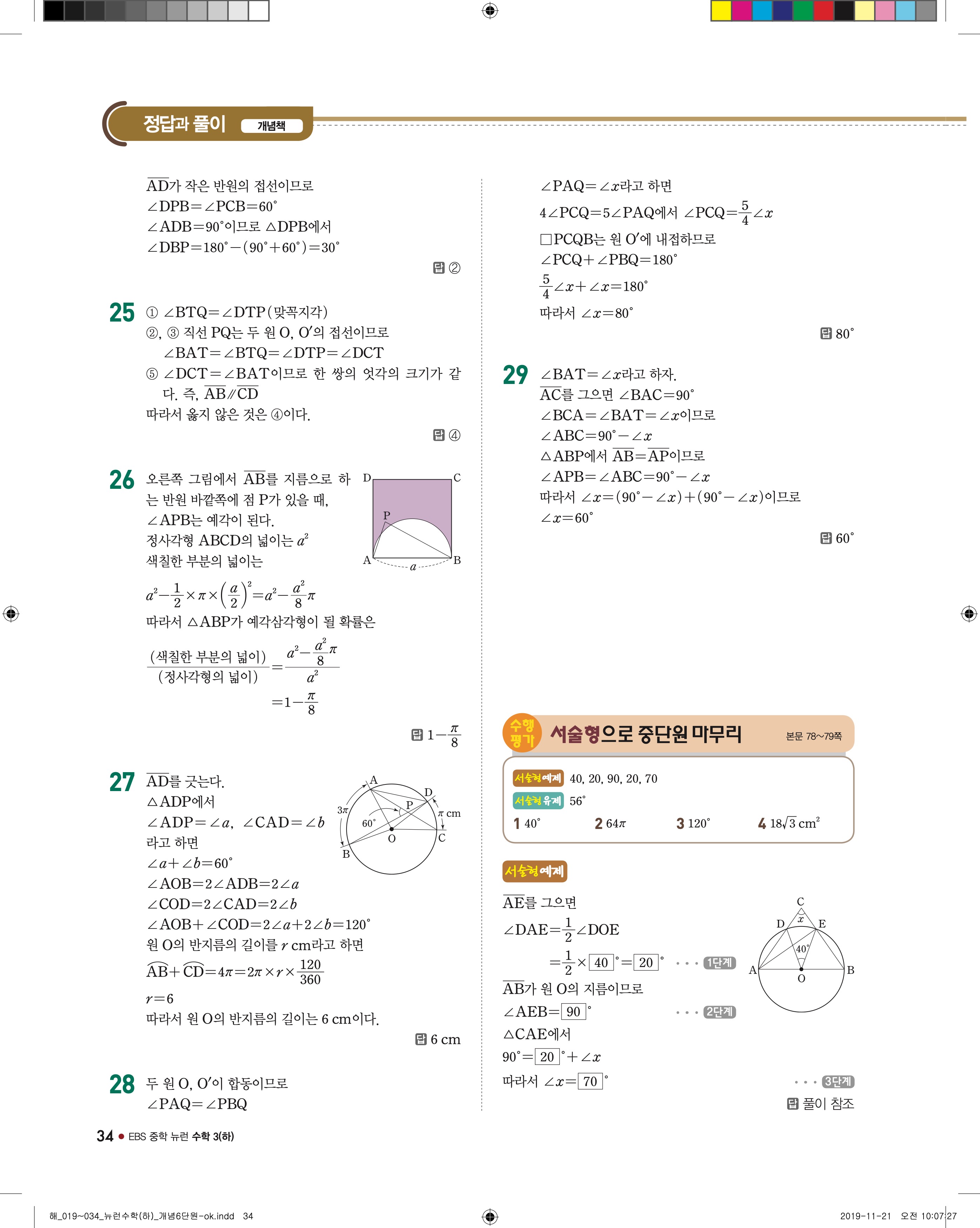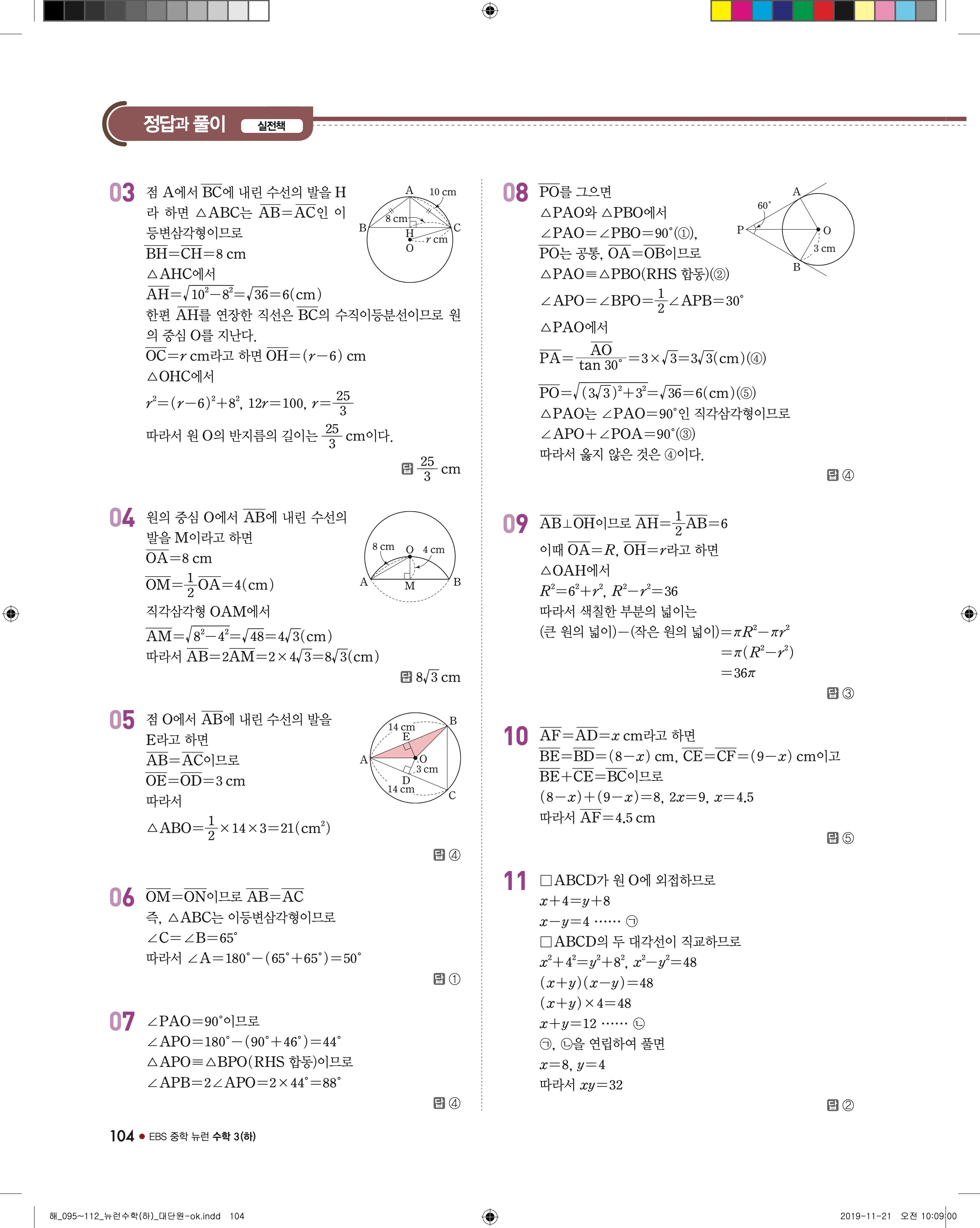 ebs중학뉴런 수학3하 3-2 답지 해설 바로보는 사진답지 빠른답지 모바일최적화