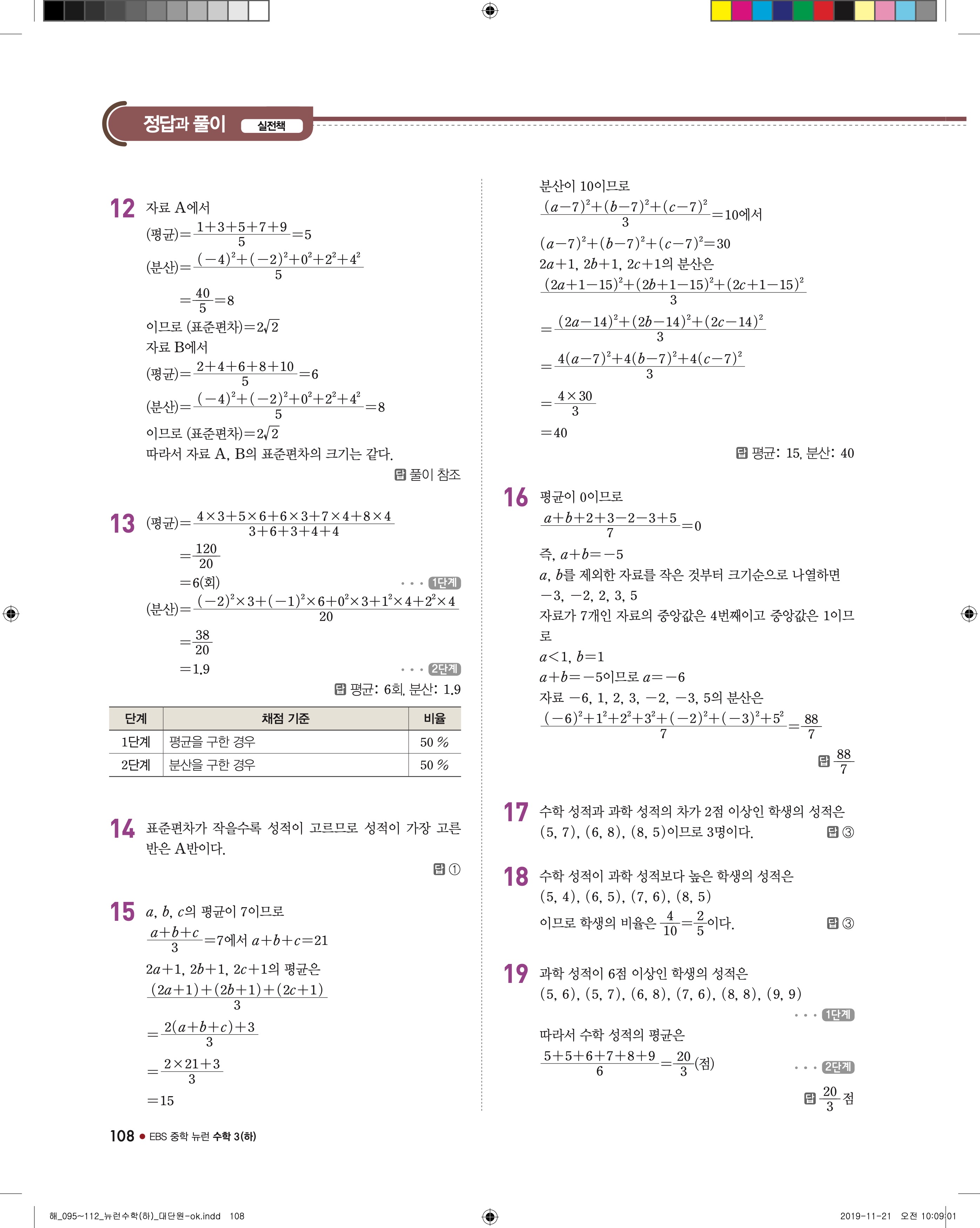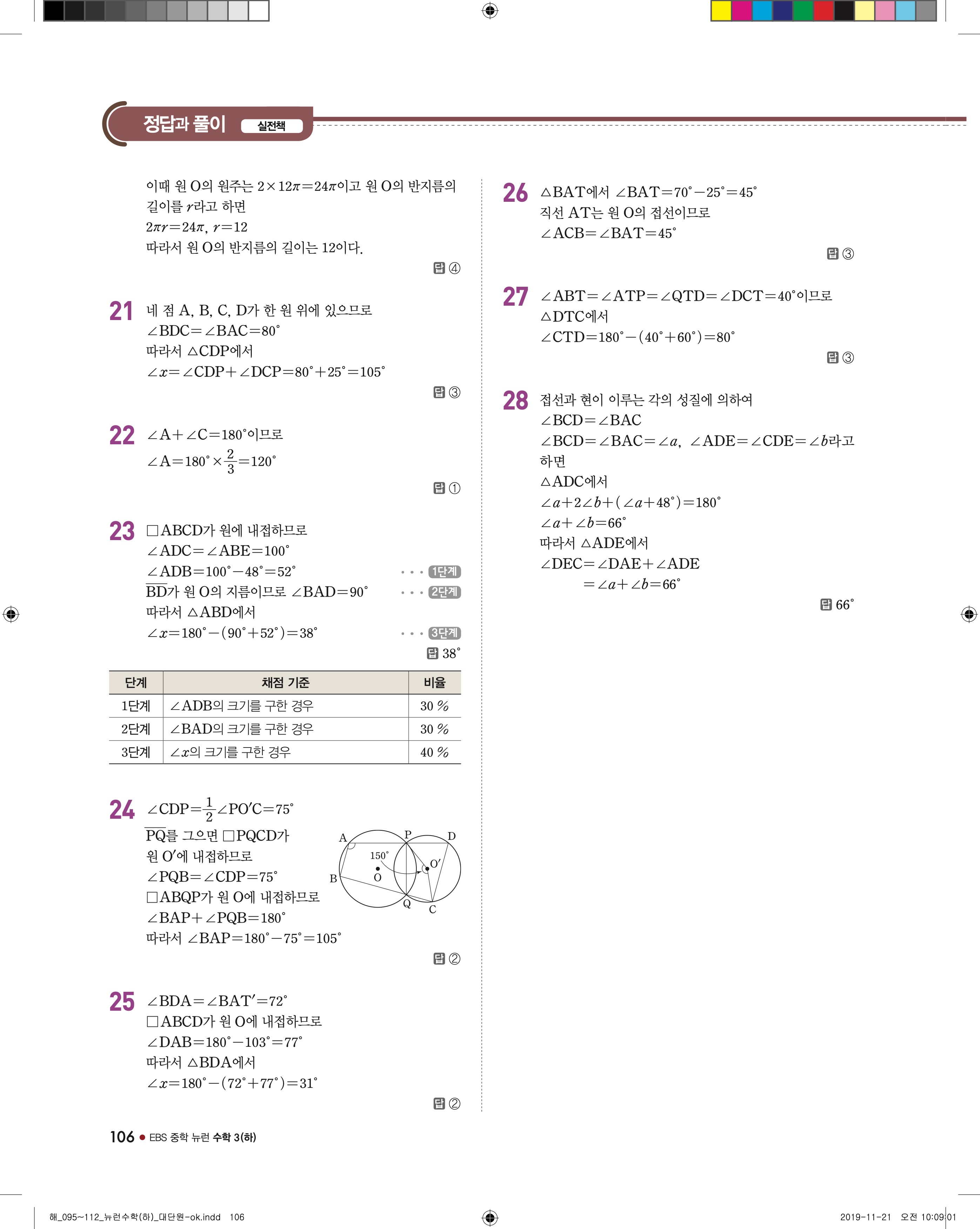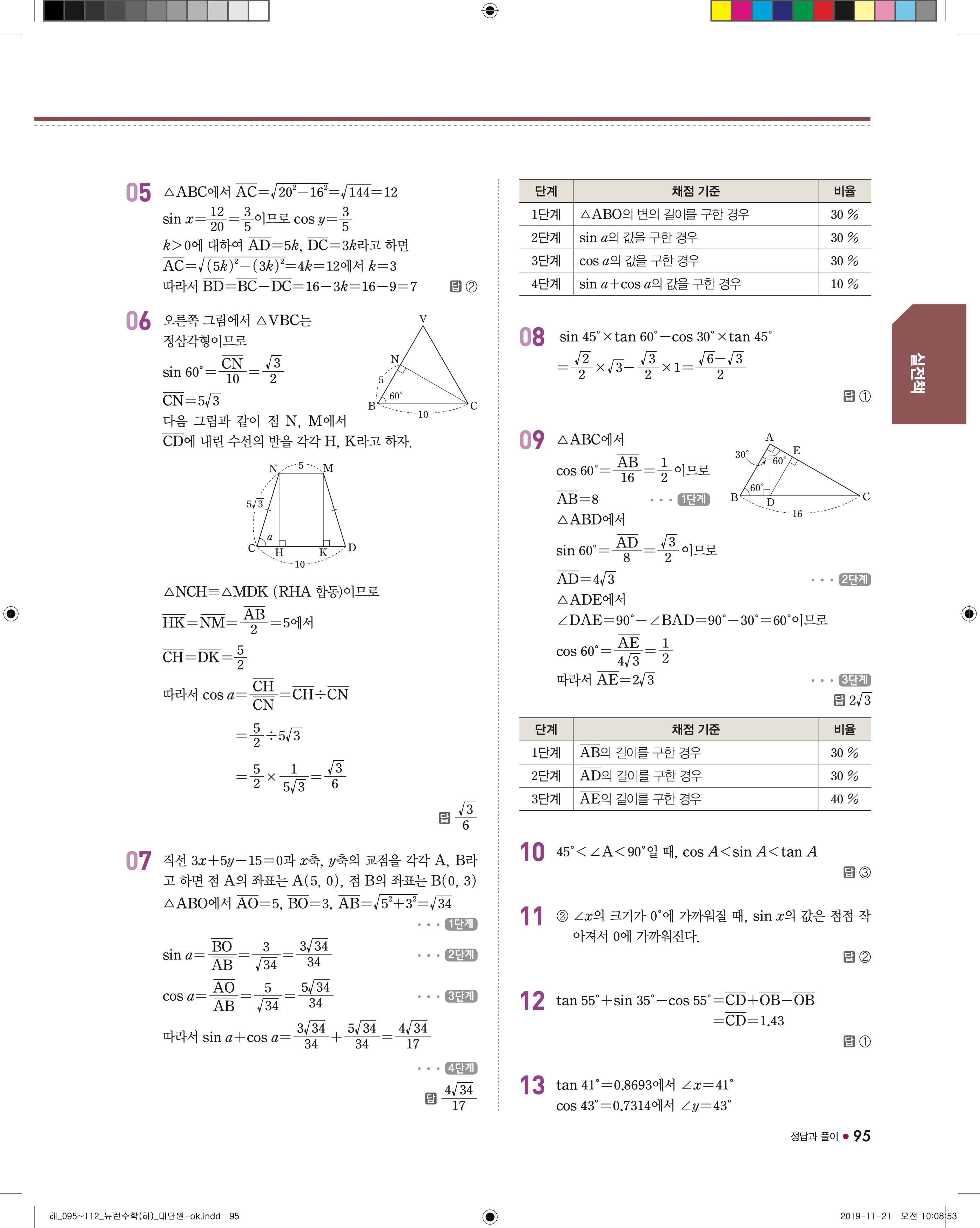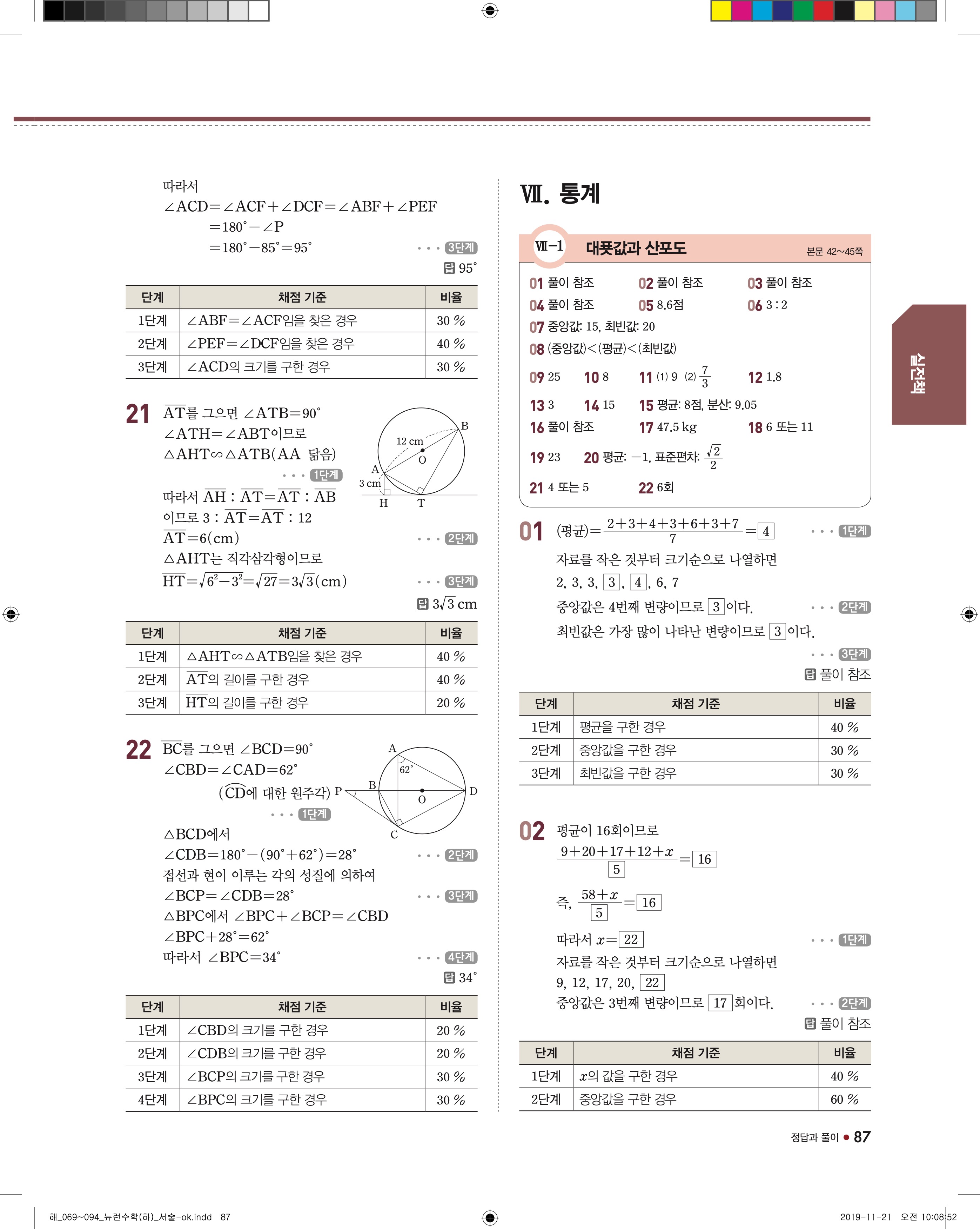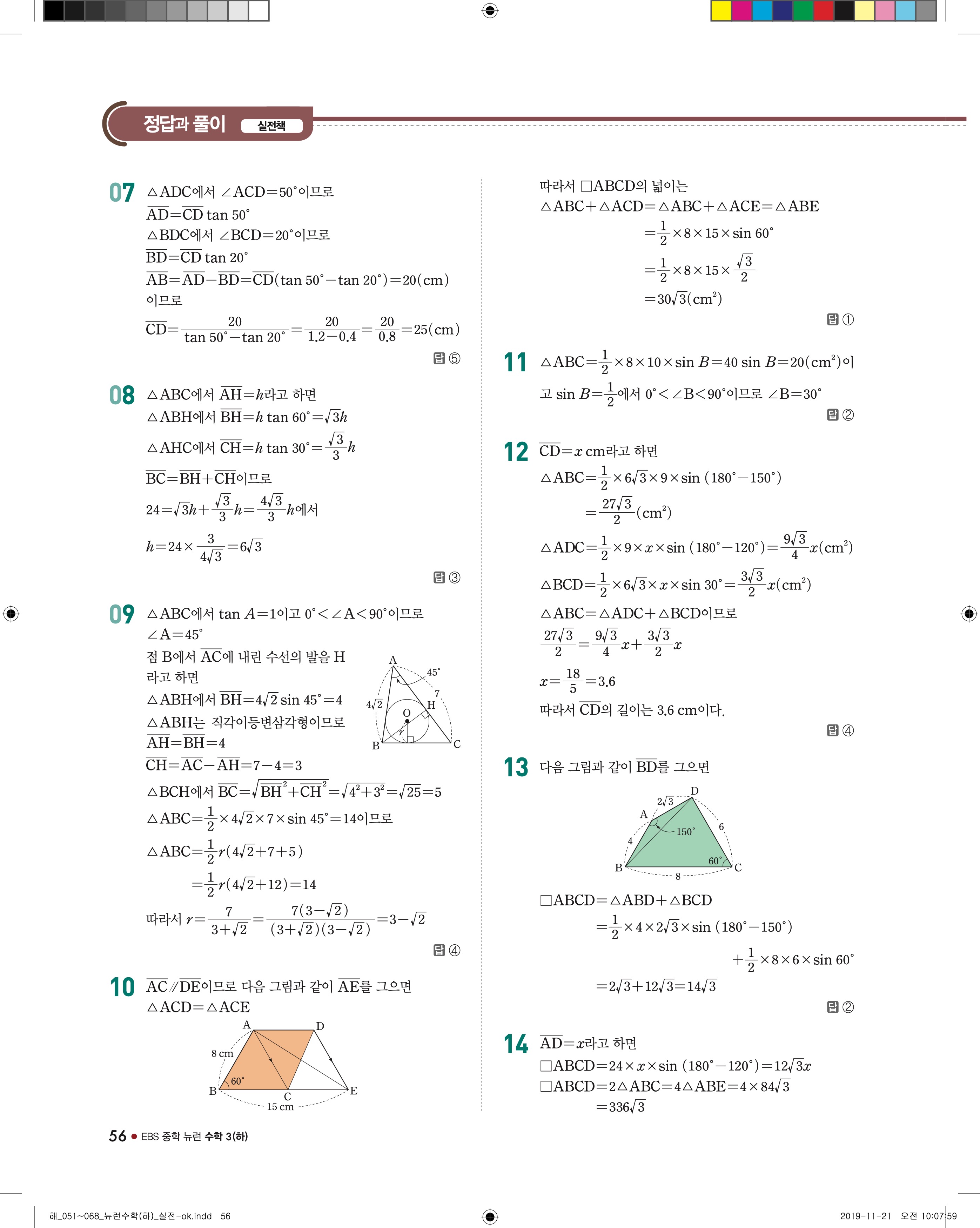 ebs중학뉴런 수학3하 3-2 답지 해설 바로보는 사진답지 빠른답지 모바일최적화