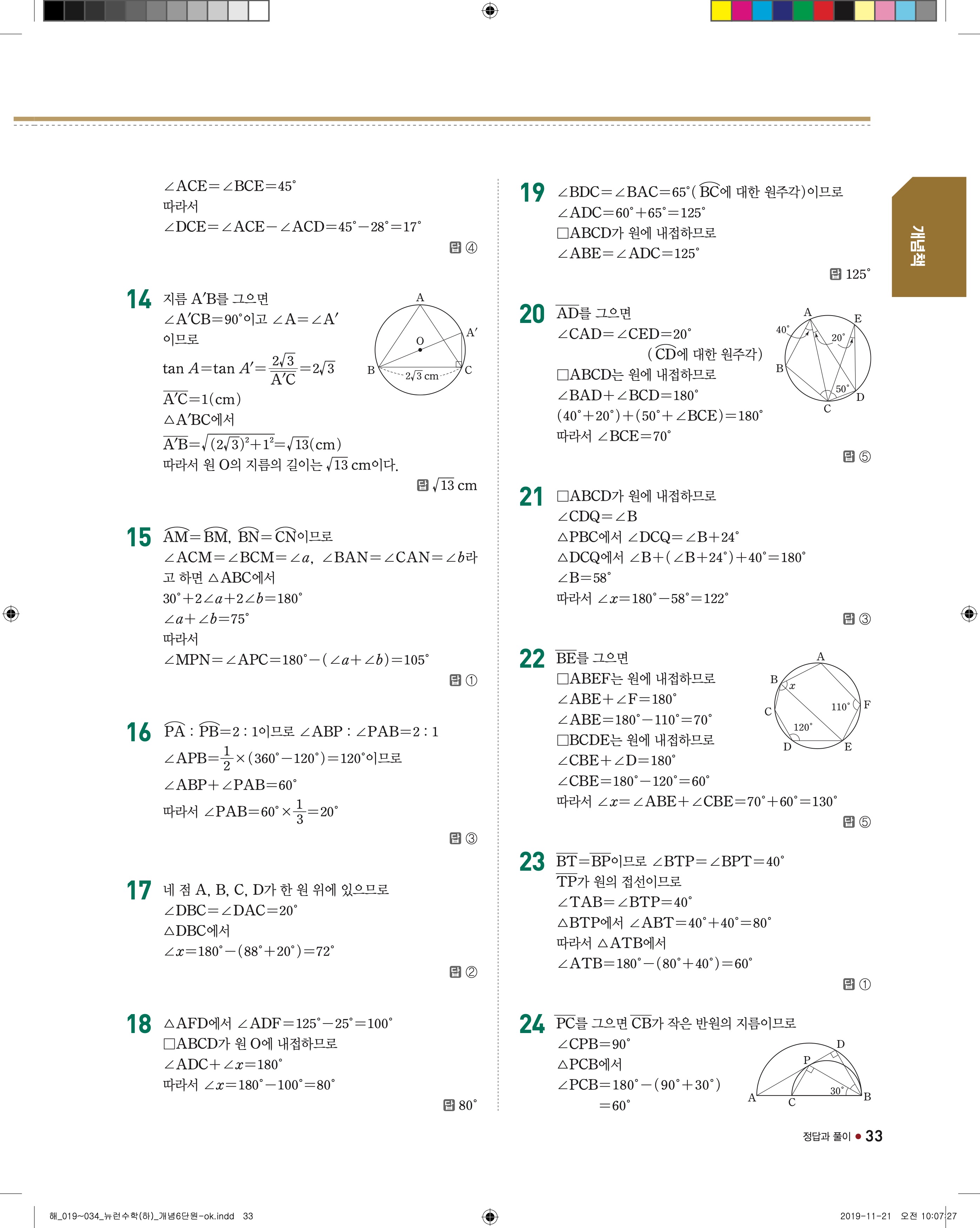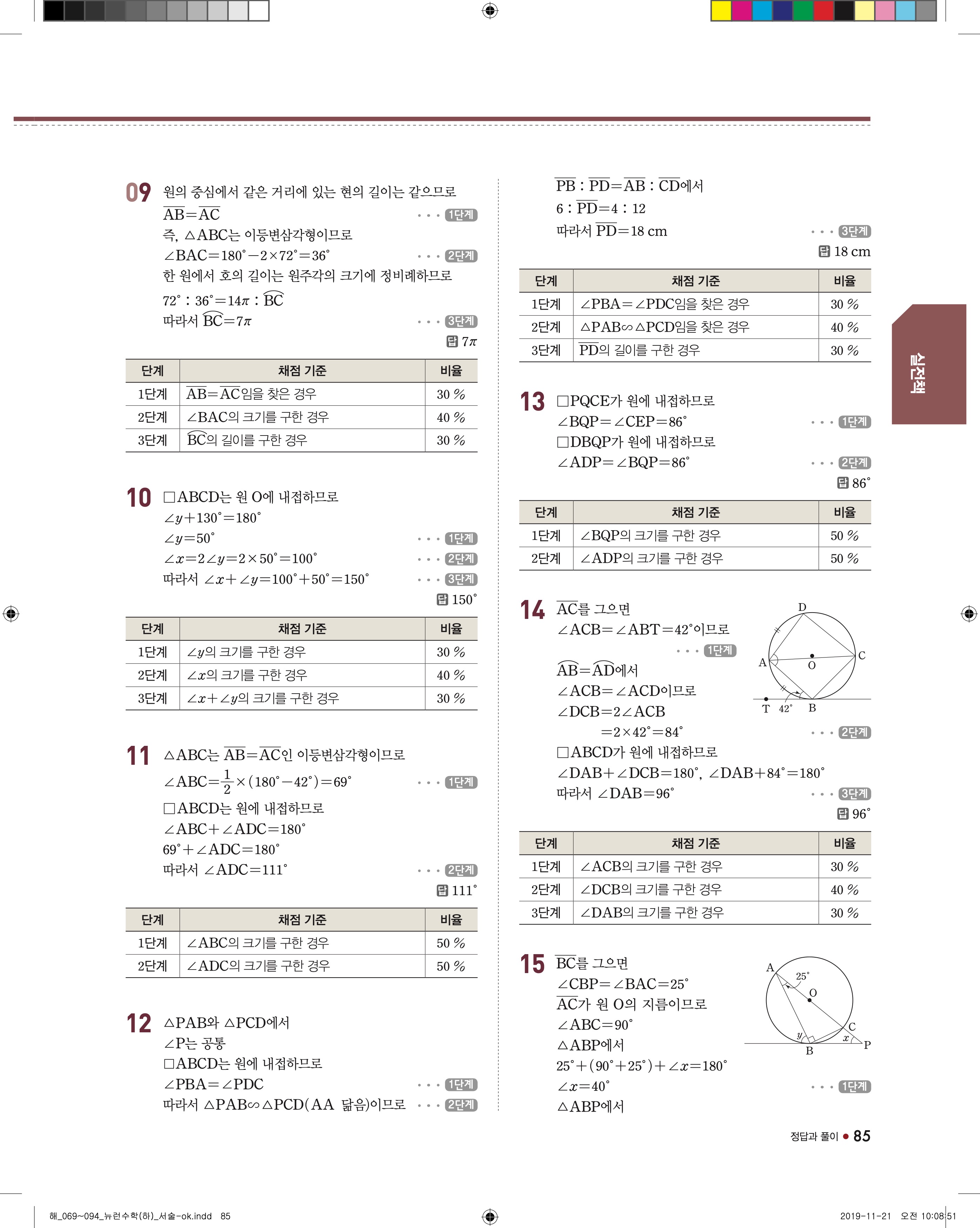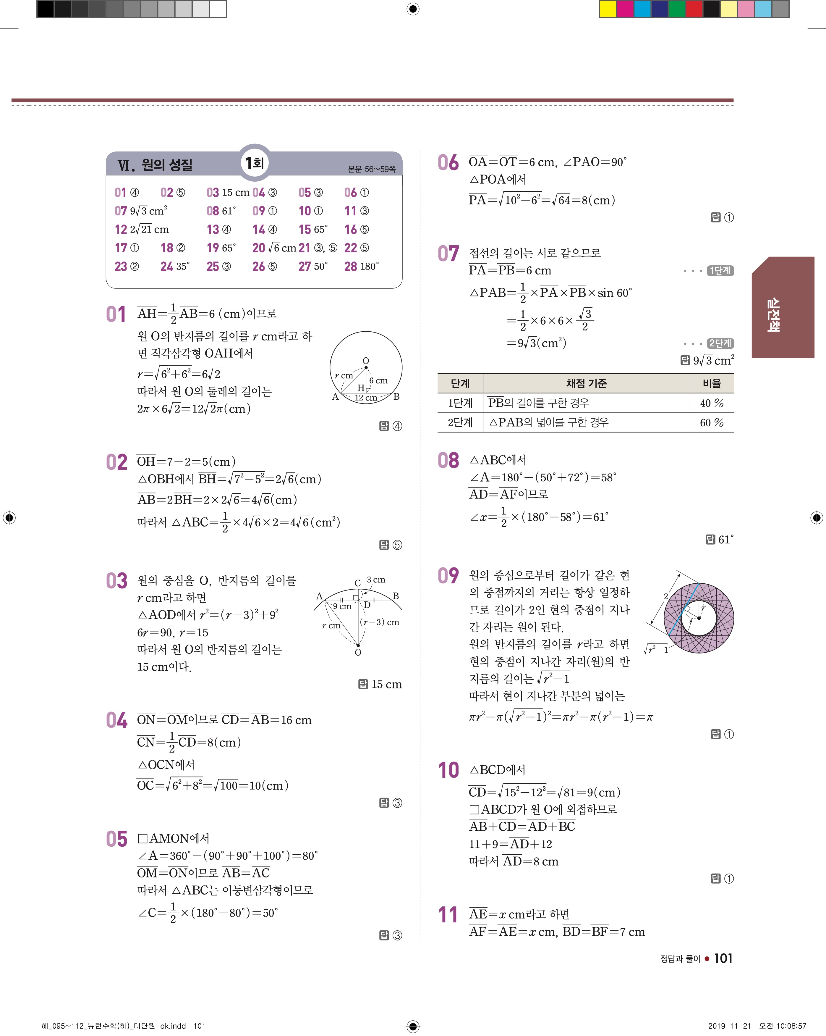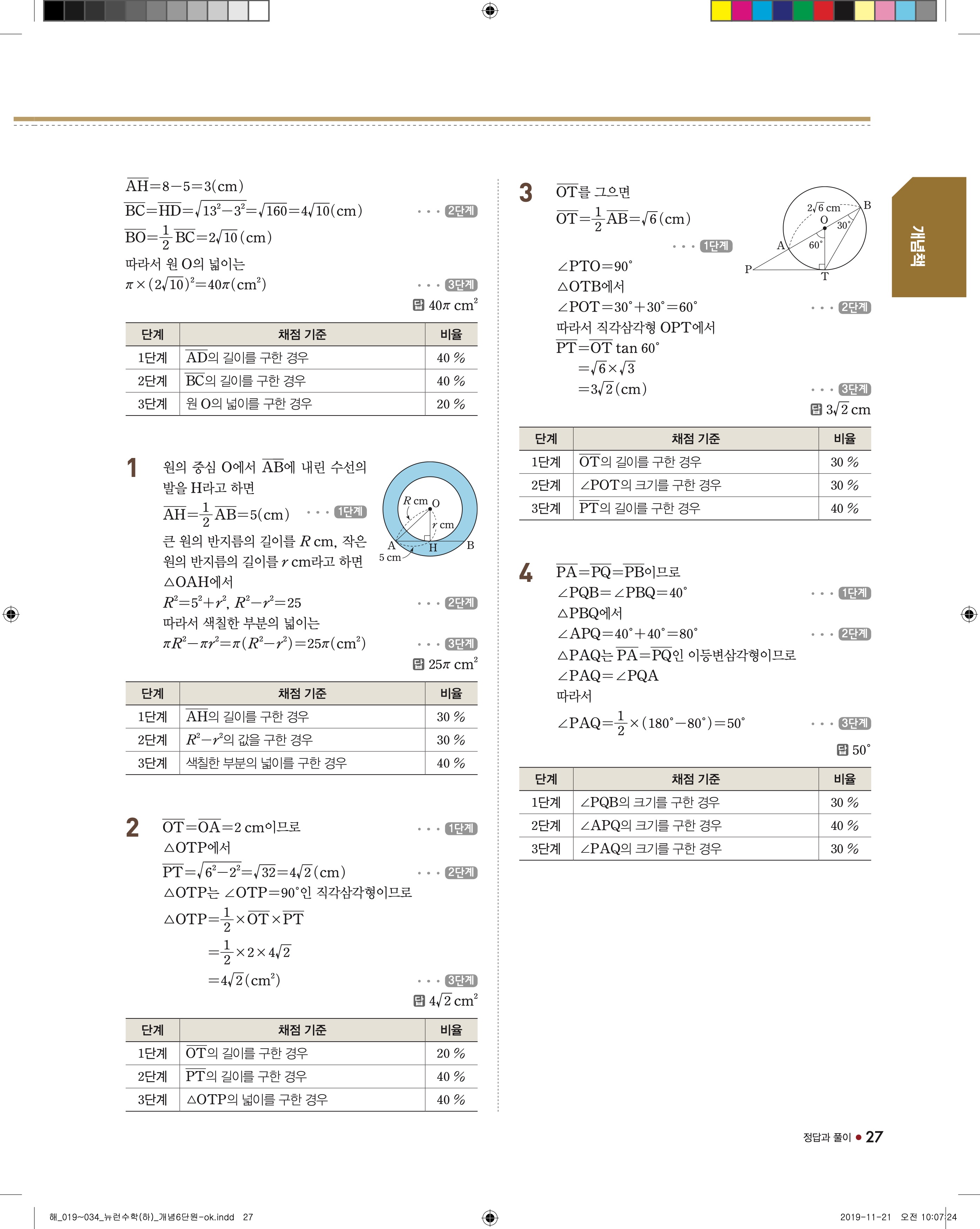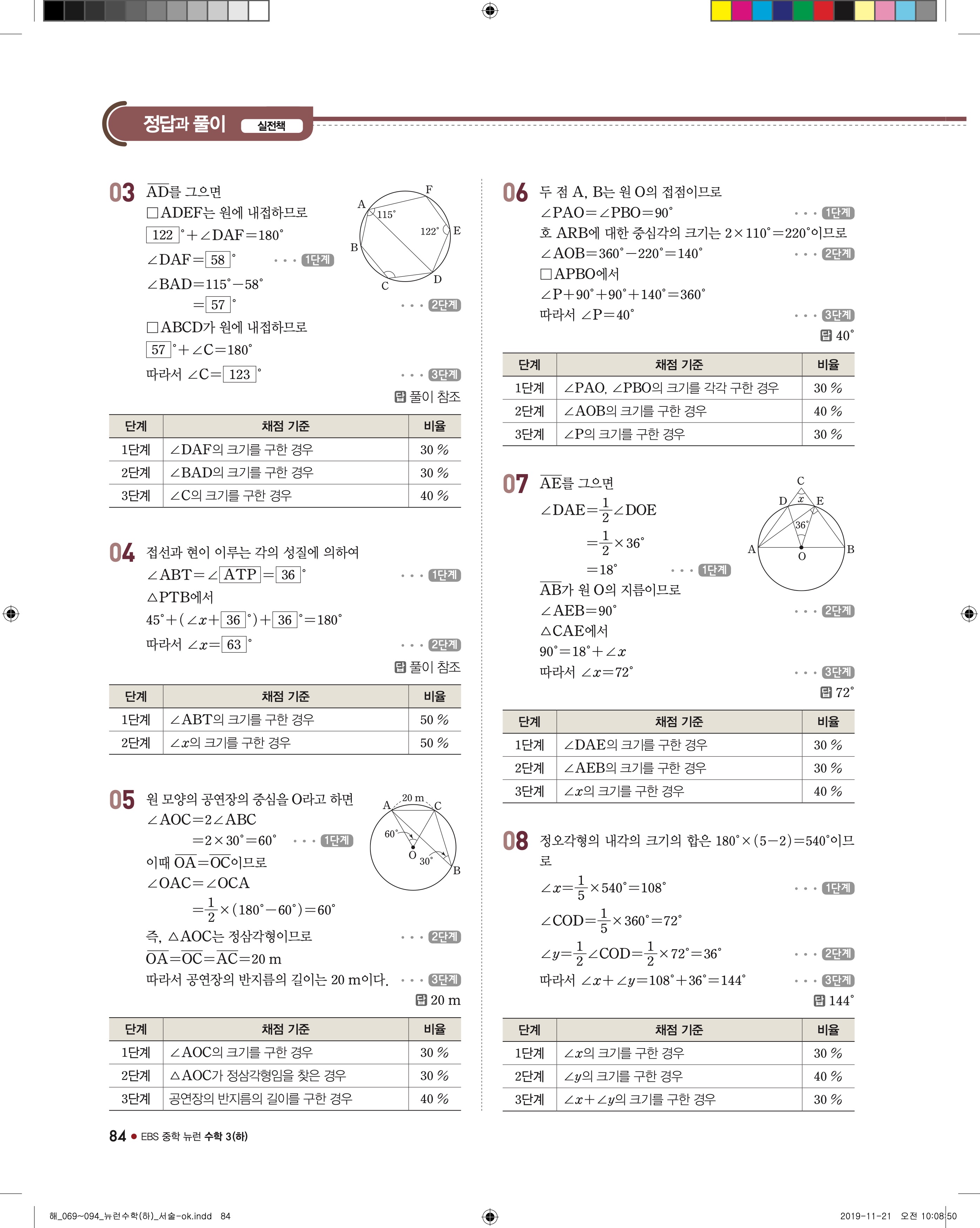 ebs중학뉴런 수학3하 3-2 답지 해설 바로보는 사진답지 빠른답지 모바일최적화
