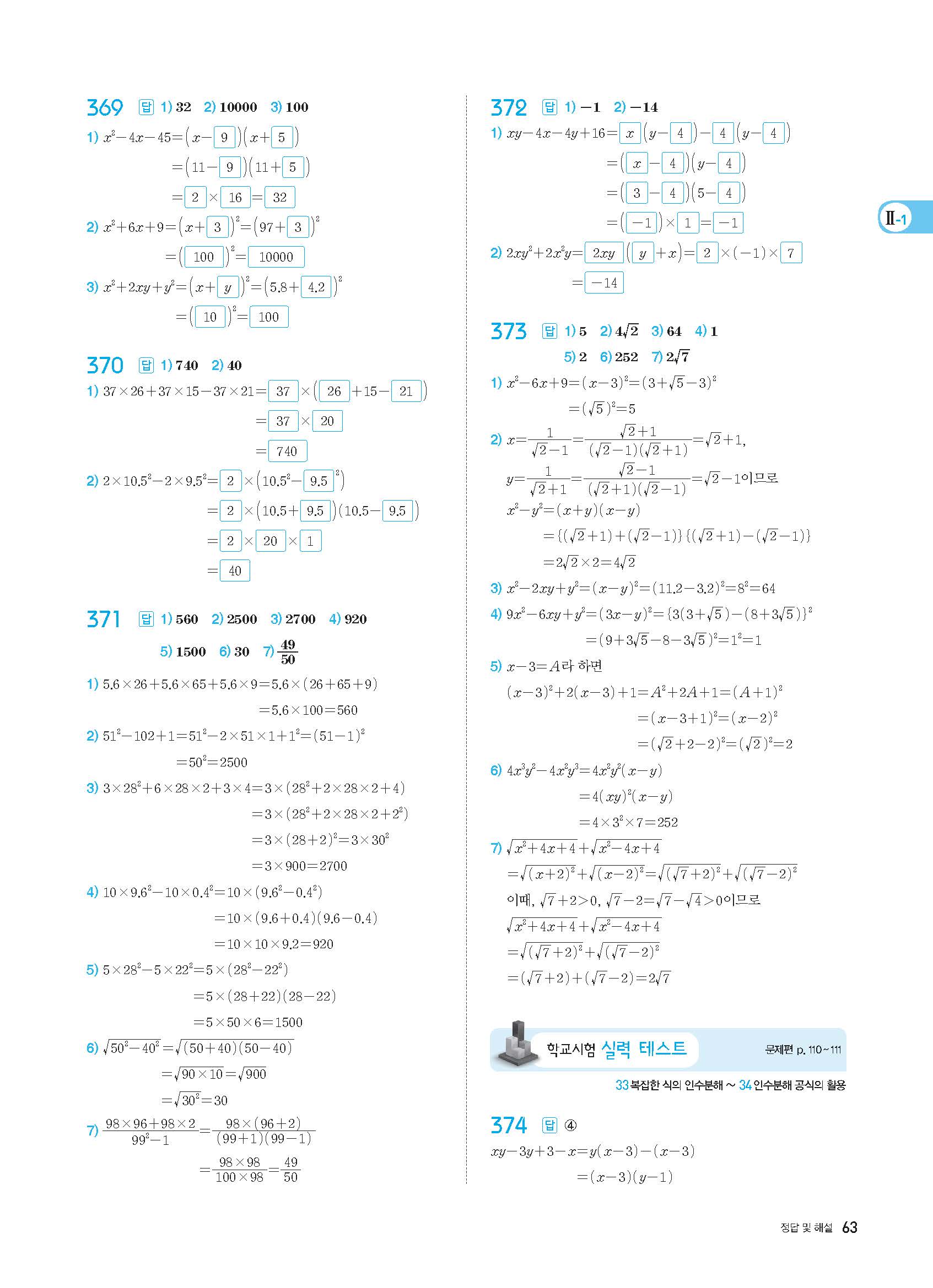| 천재교육 류희찬 중3 수학교과서 답지 | |