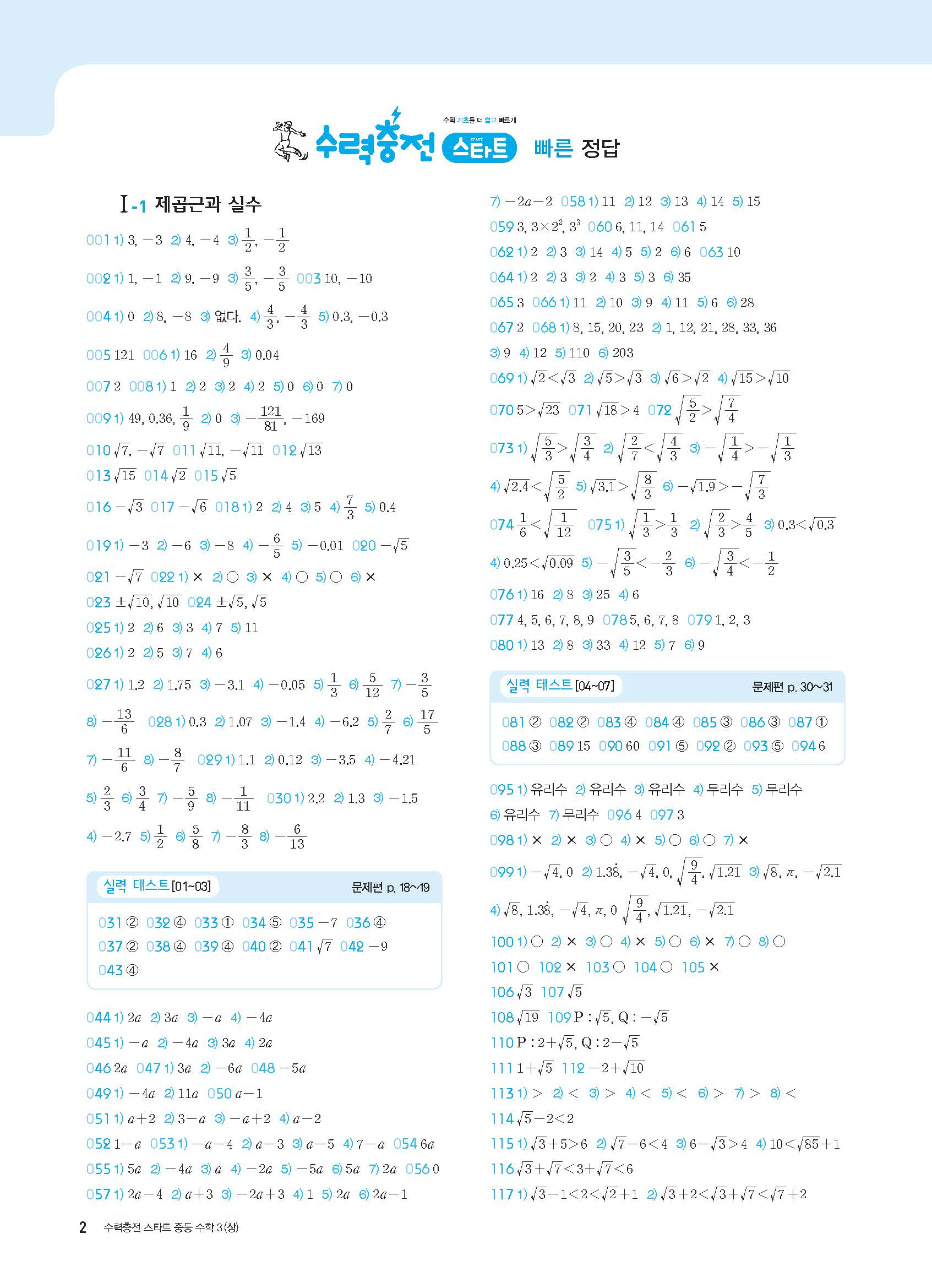 수력충전스타트 중3상 3-1 답지 사진답지 빠른답지 모바일최적화