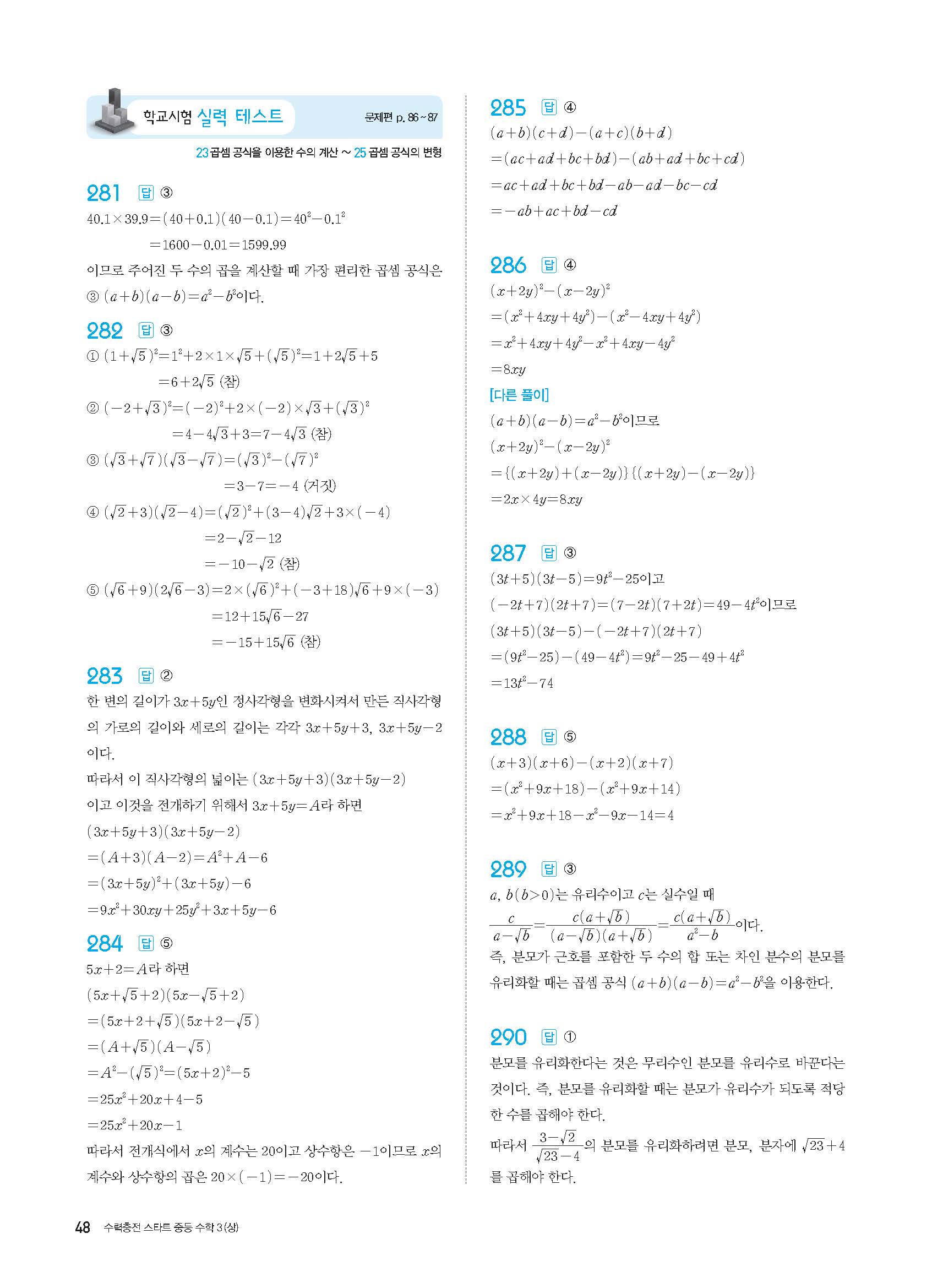 | 천재교육 이준열 중3 수학교과서 답지 | |