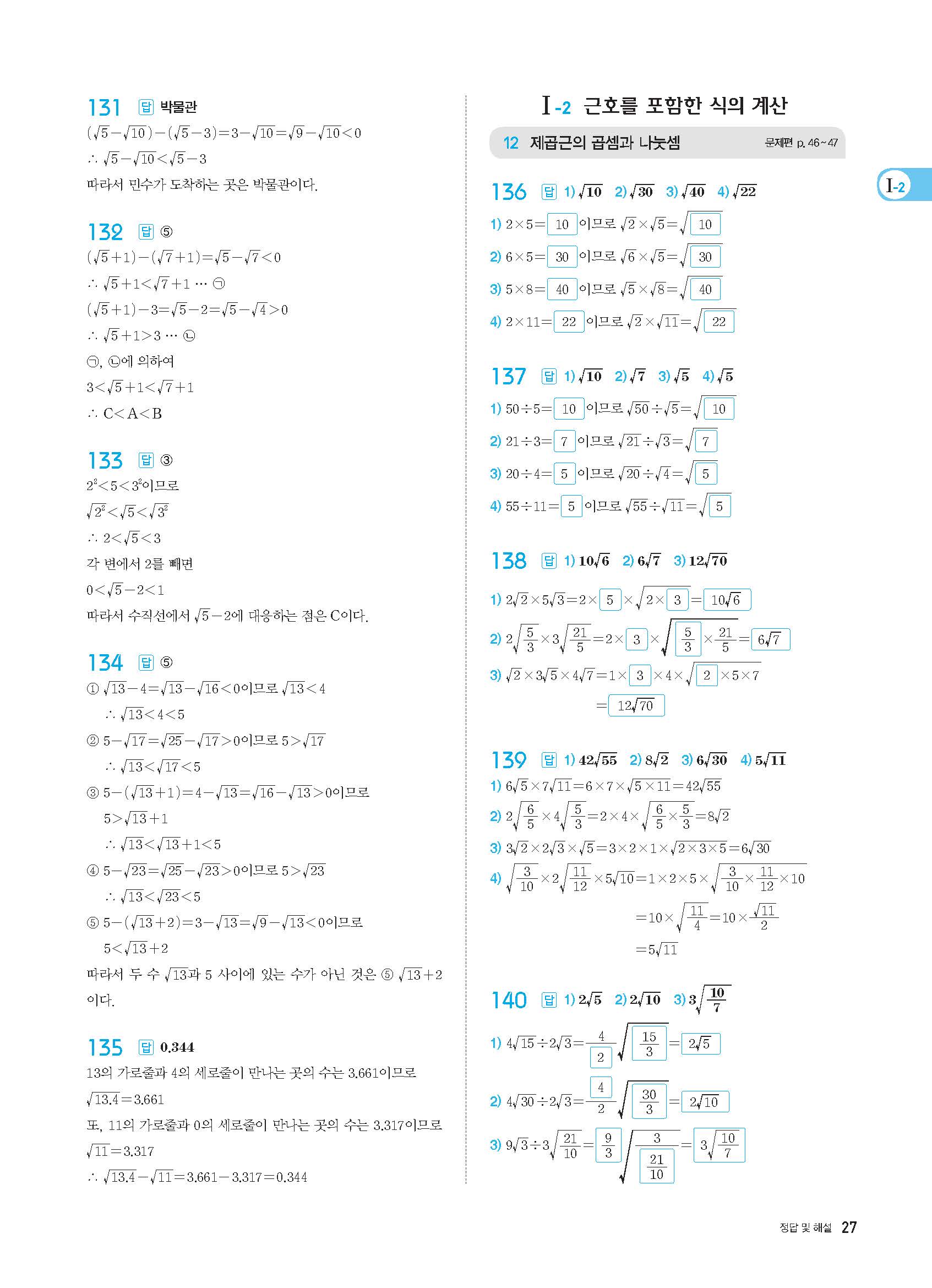 | 교학사 고호경 중3 수학교과서 답지 | |