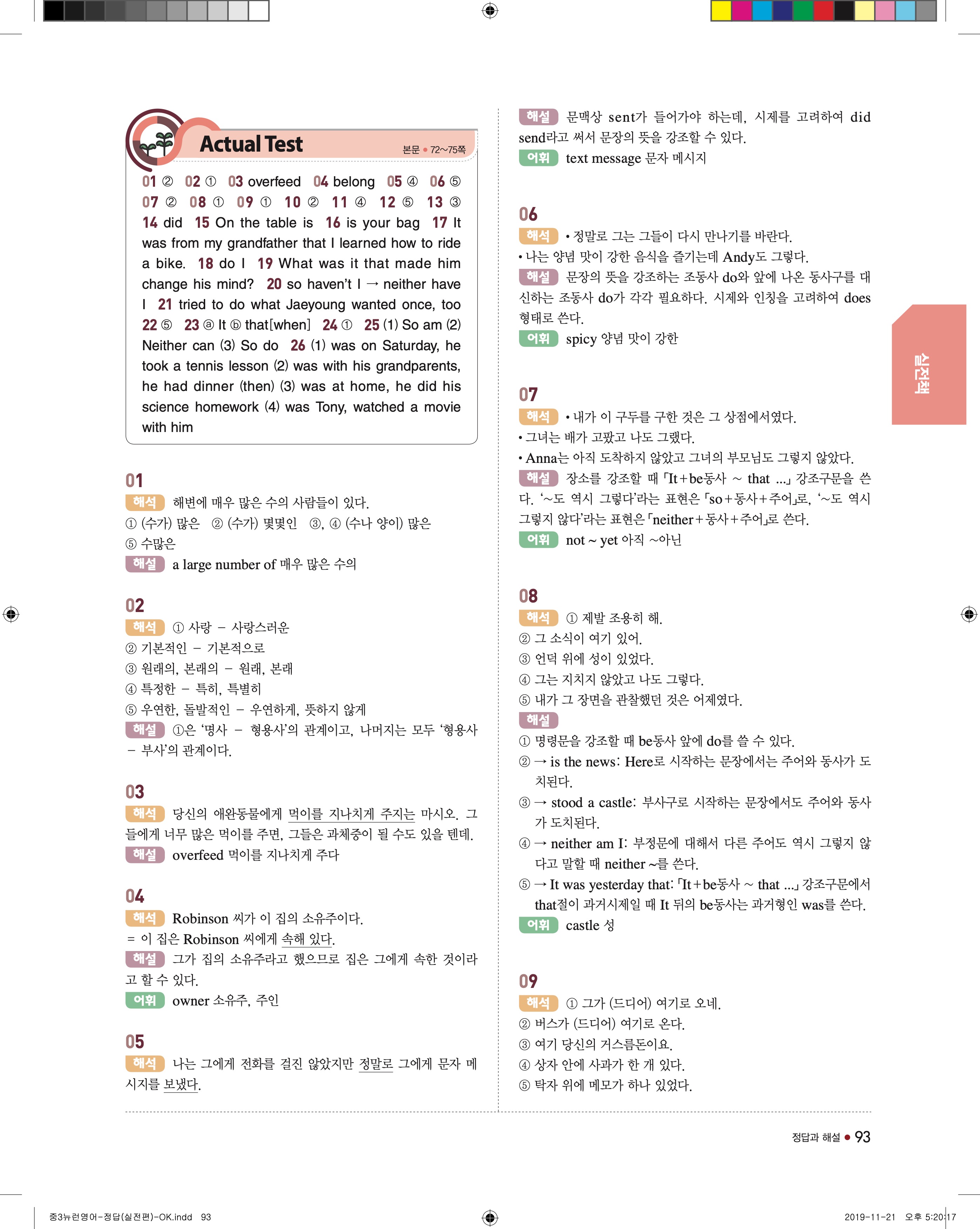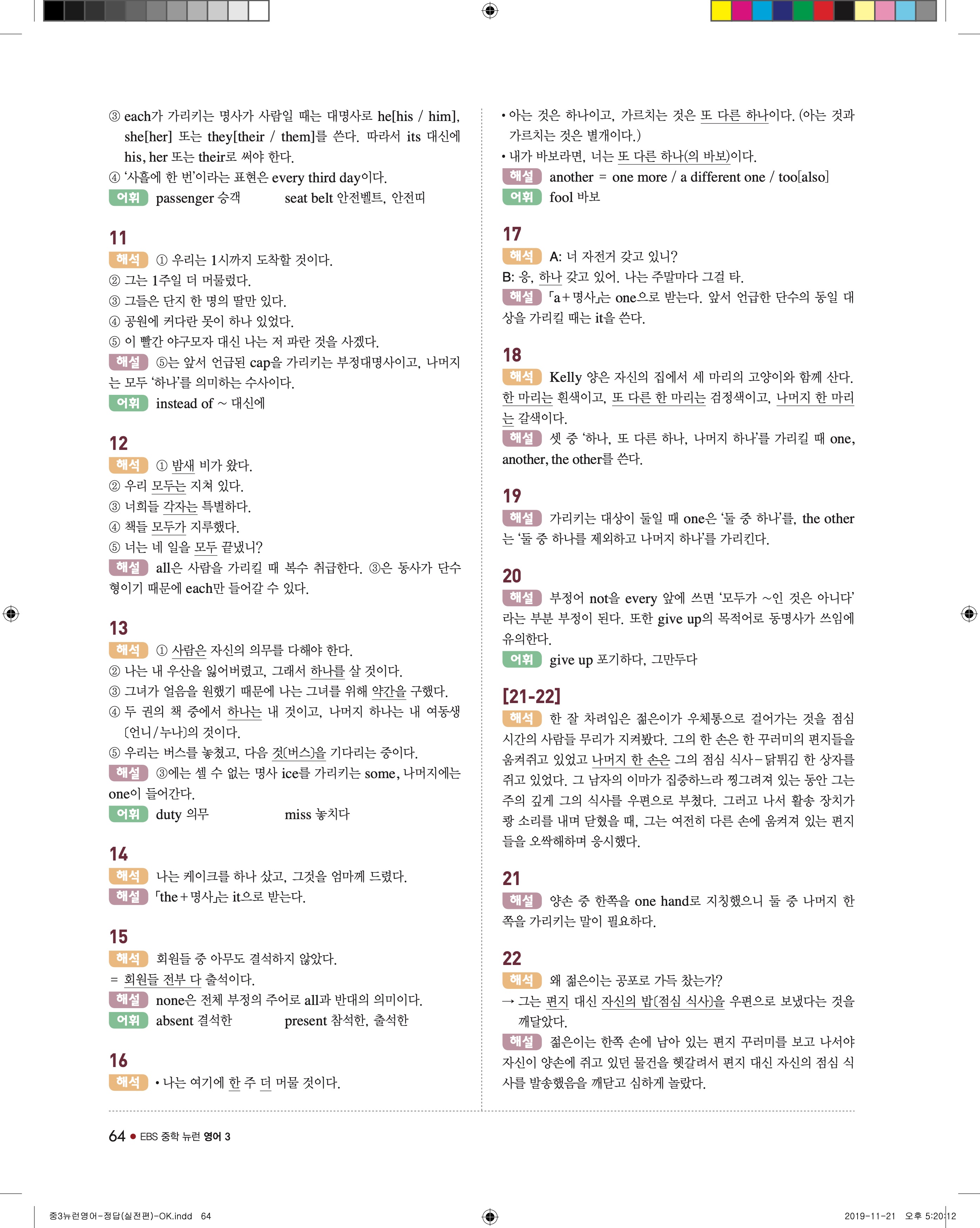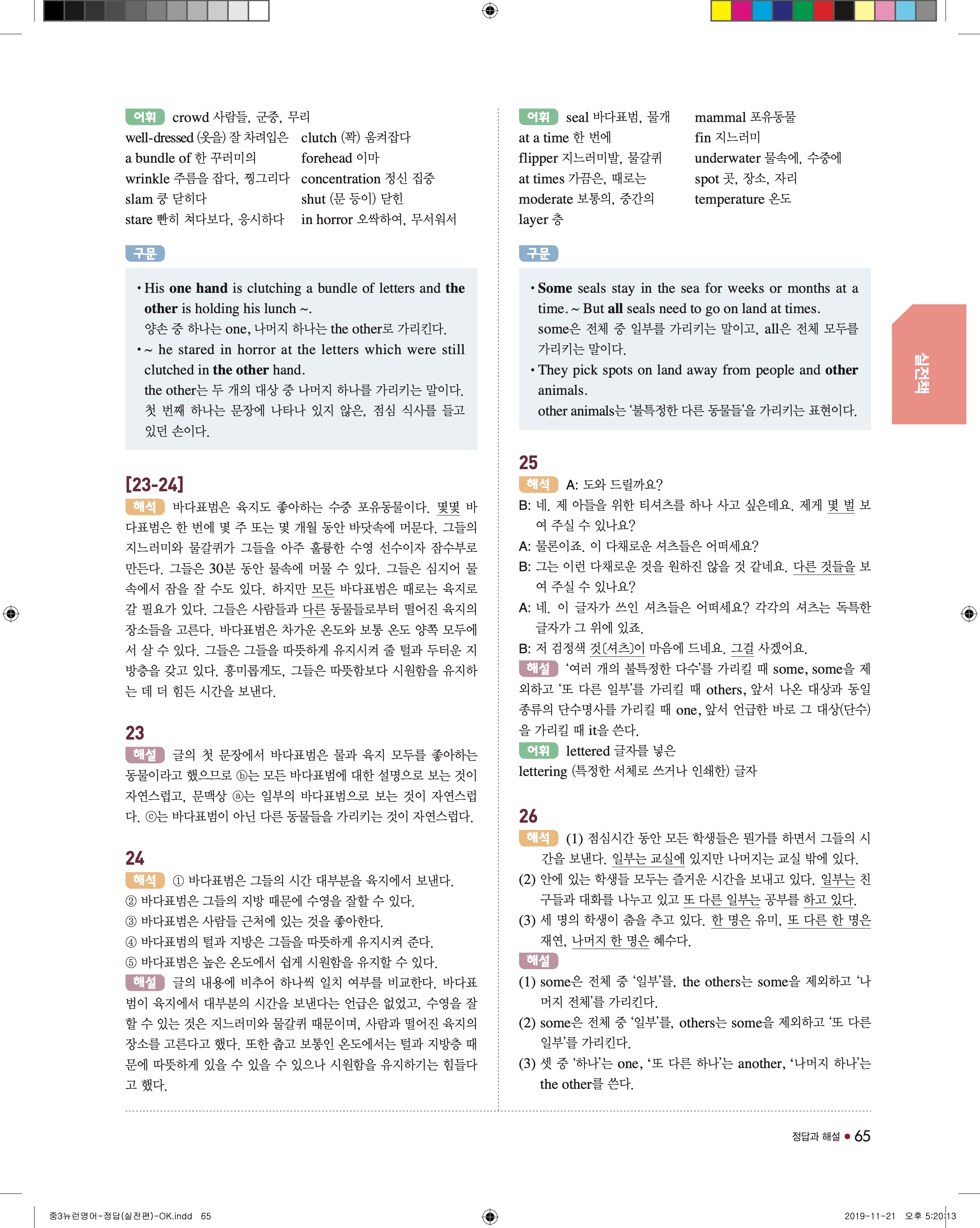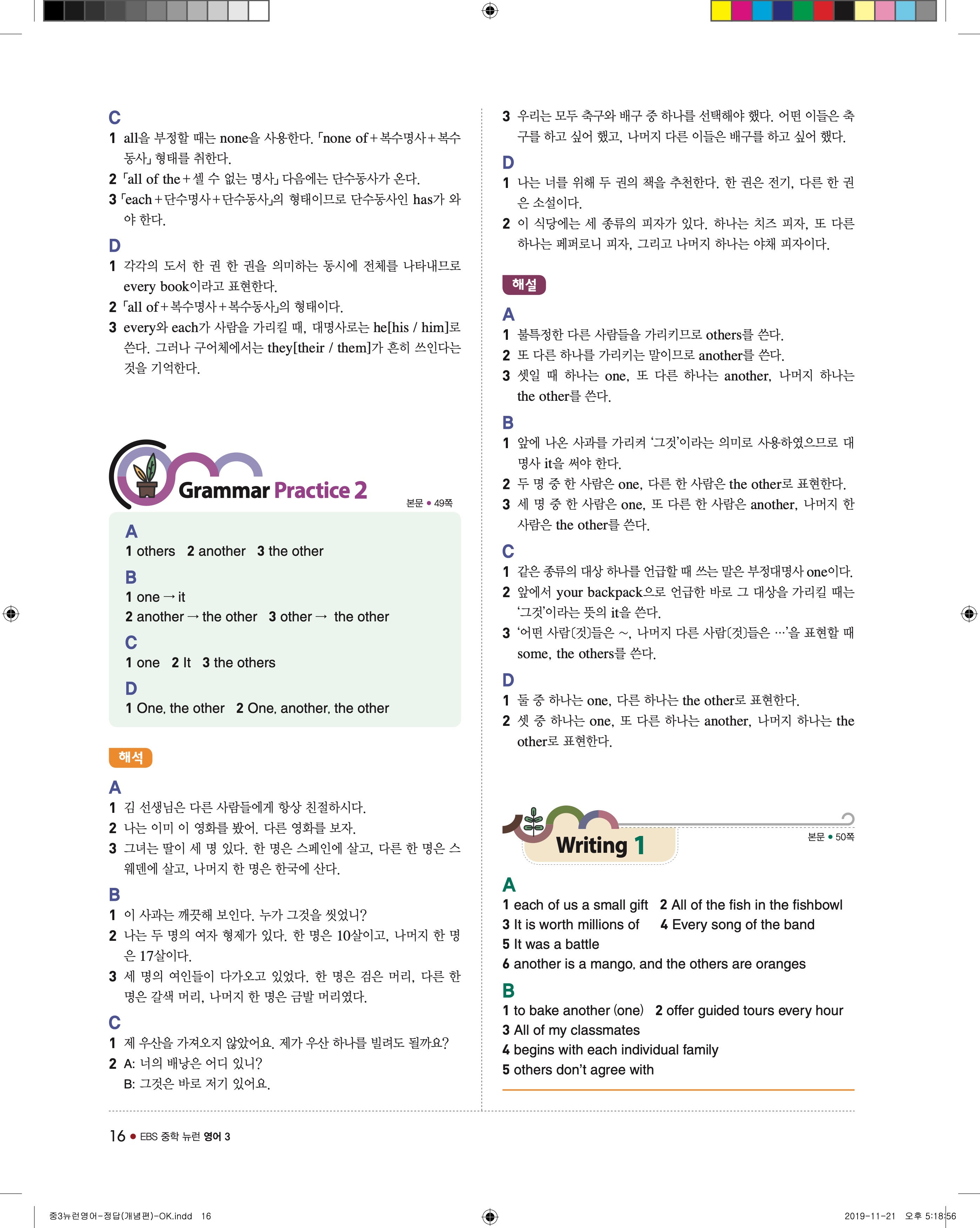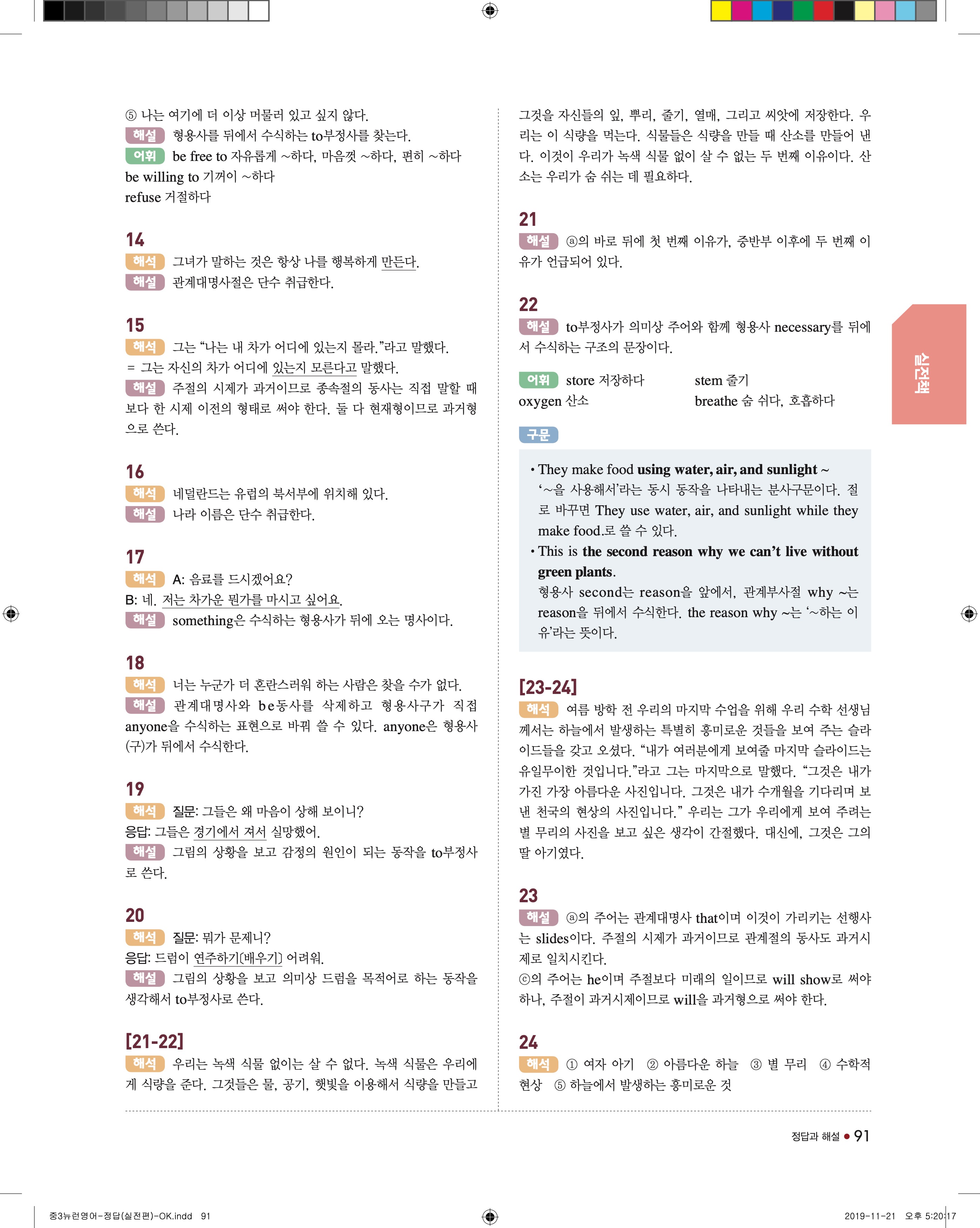 EBS 중학뉴런 영어3 답지 해설 바로보는 사진답지 빠른답지 모바일최적화