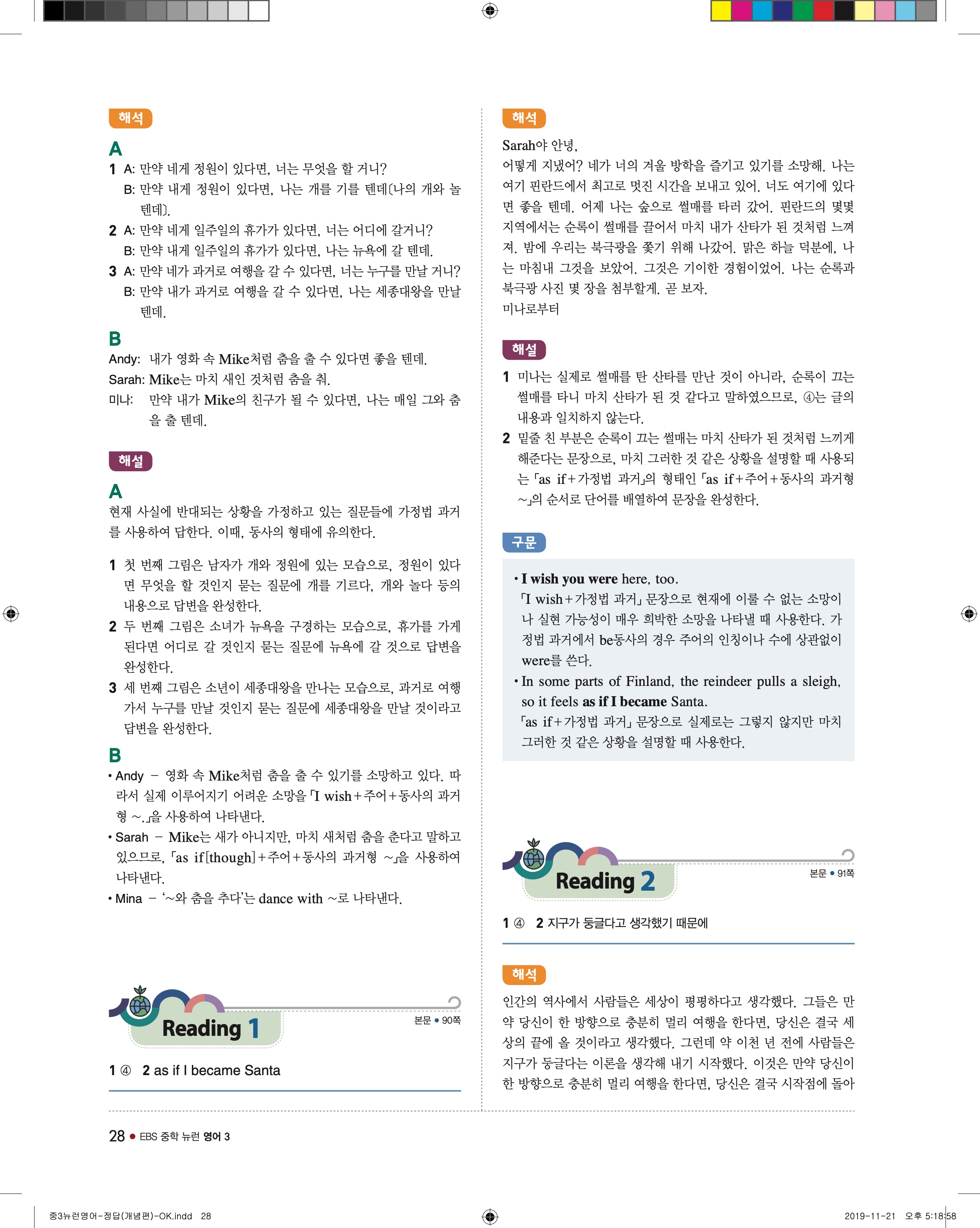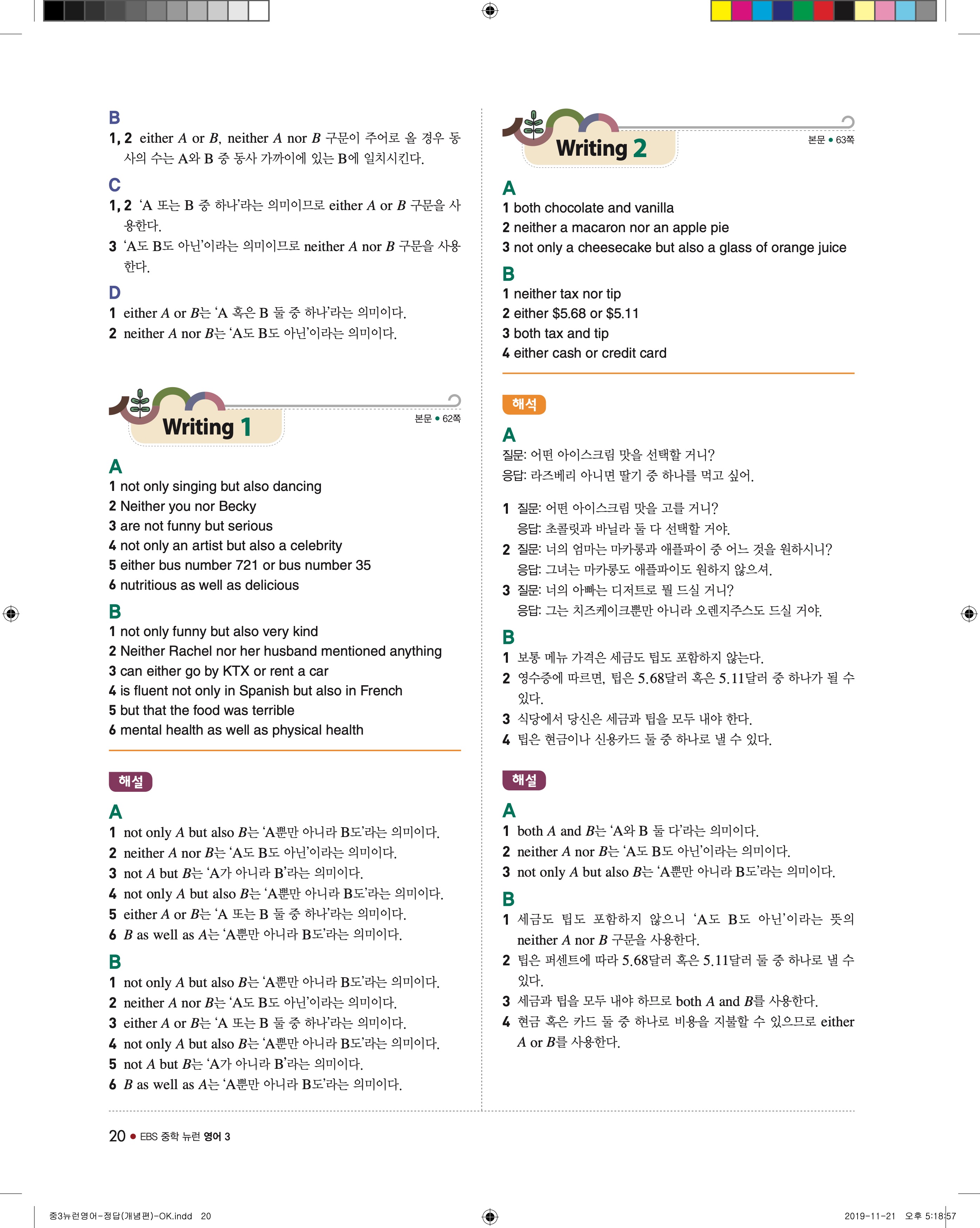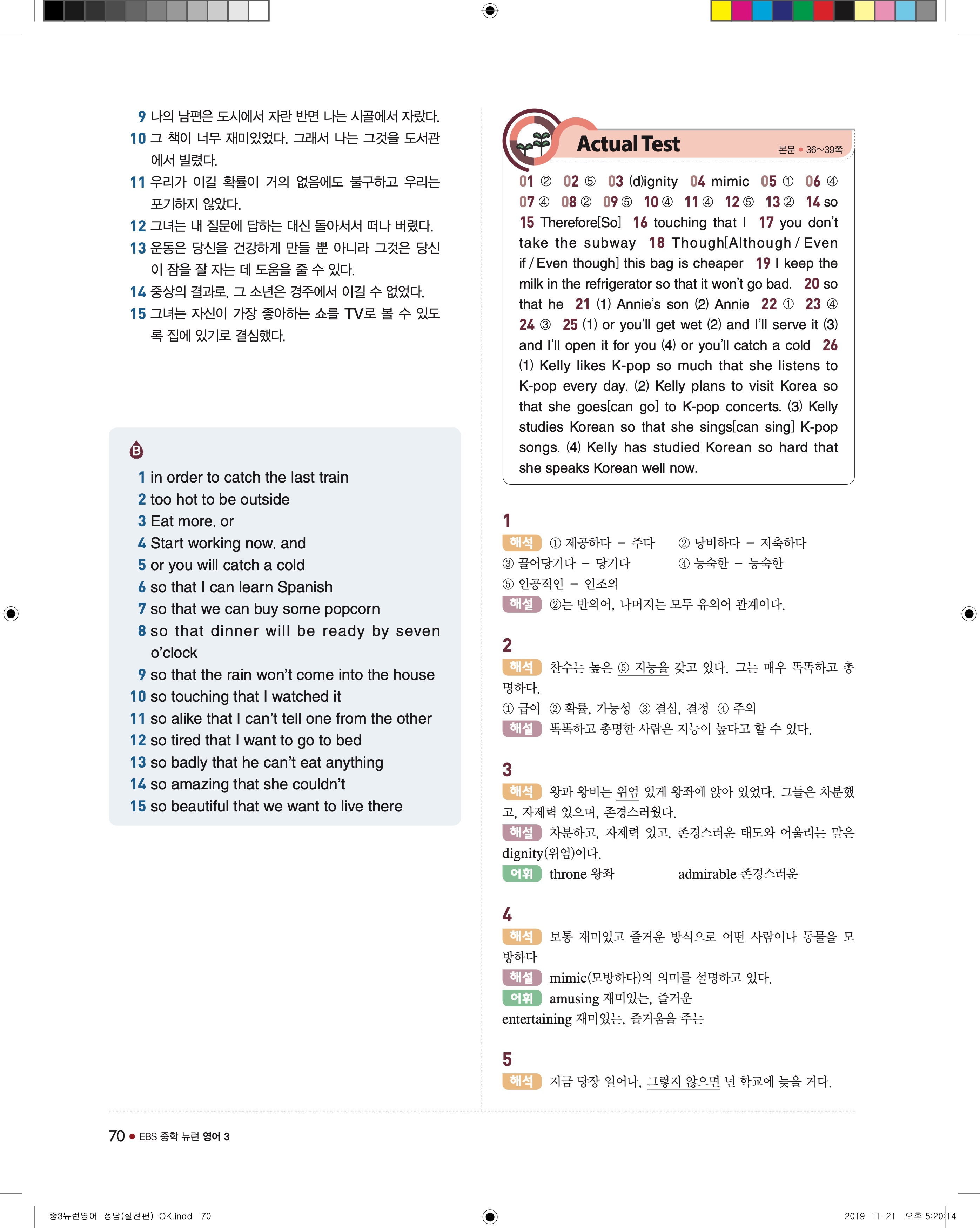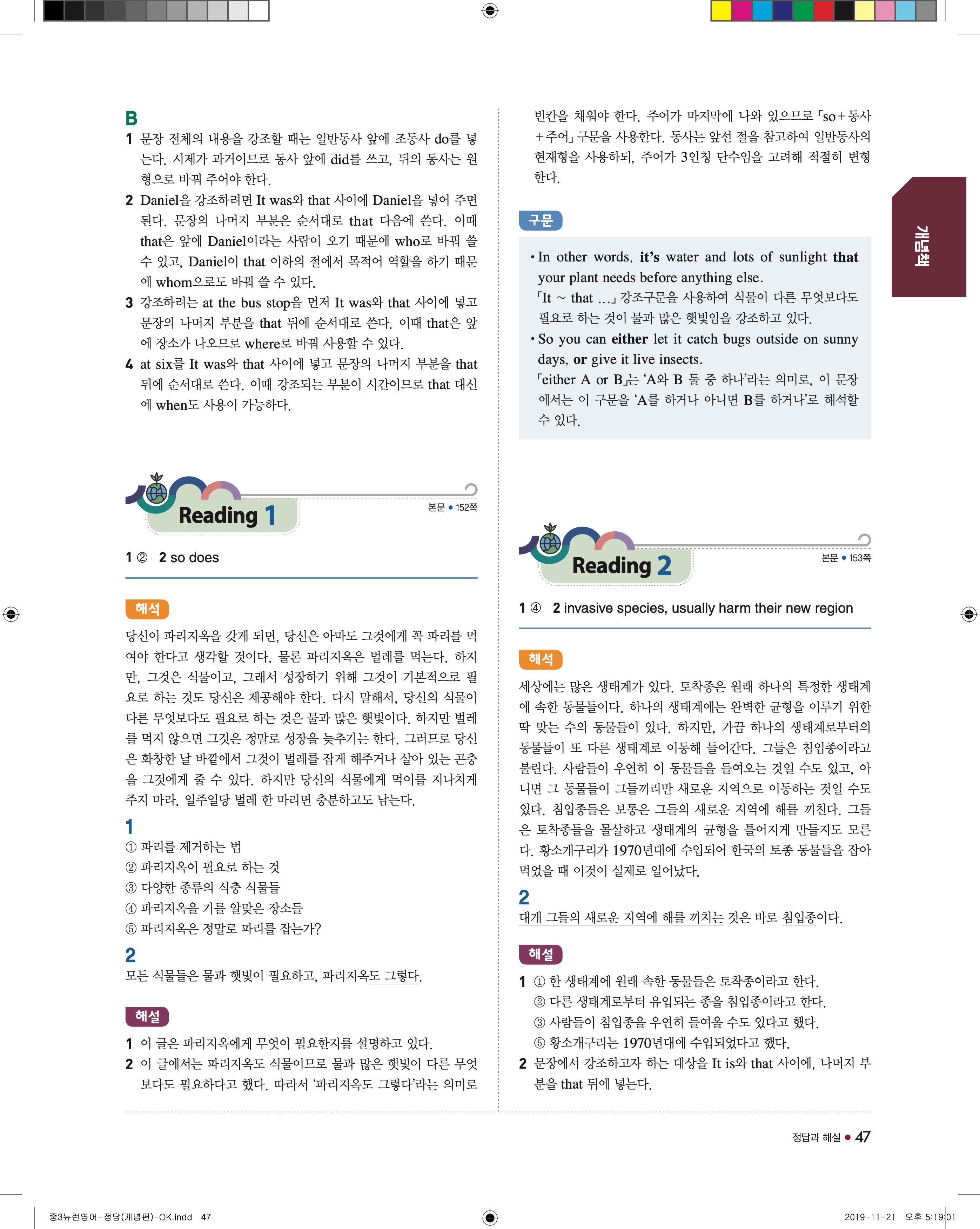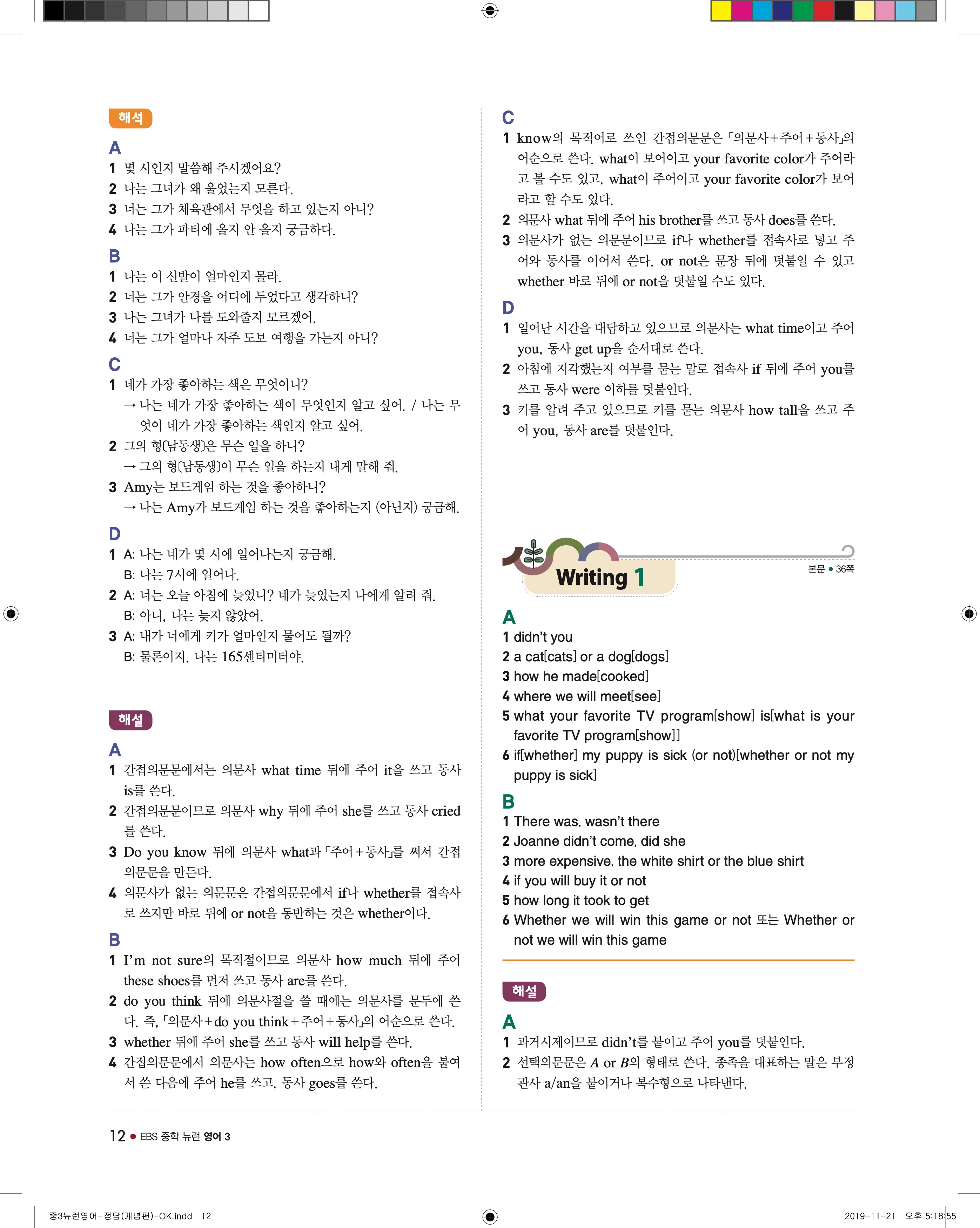 EBS 중학뉴런 영어3 답지 해설 바로보는 사진답지 빠른답지 모바일최적화