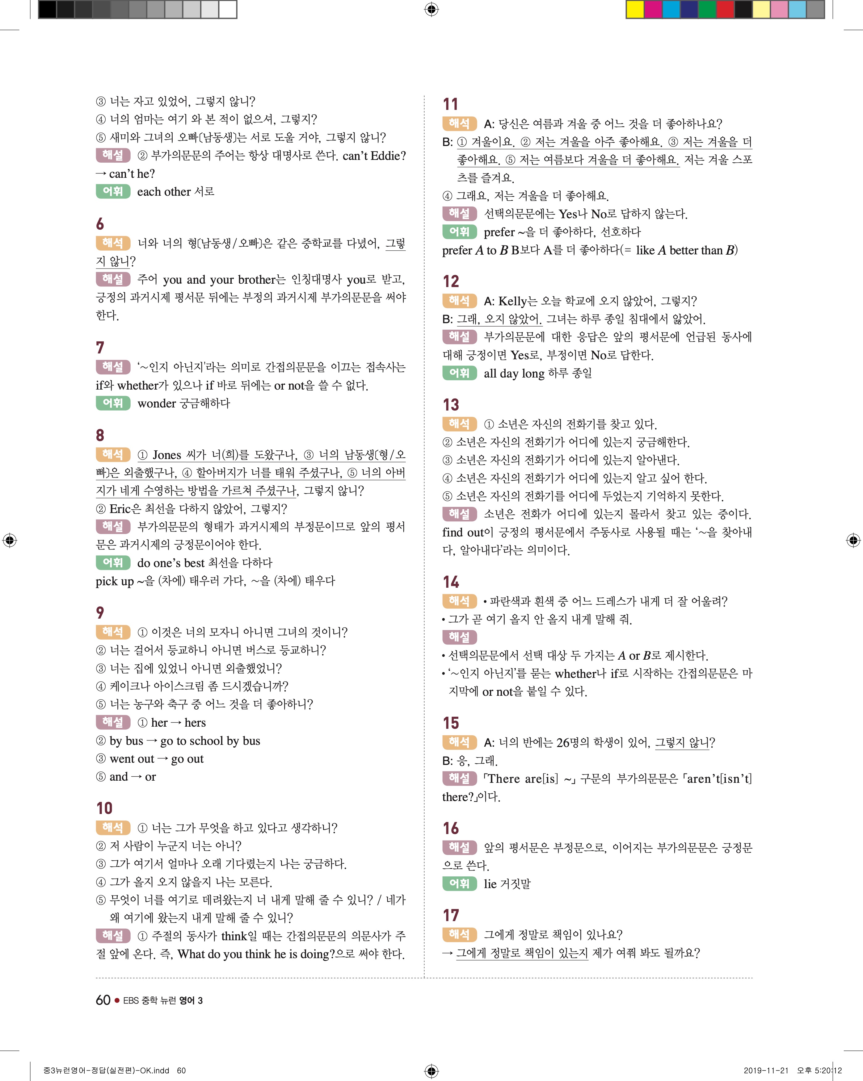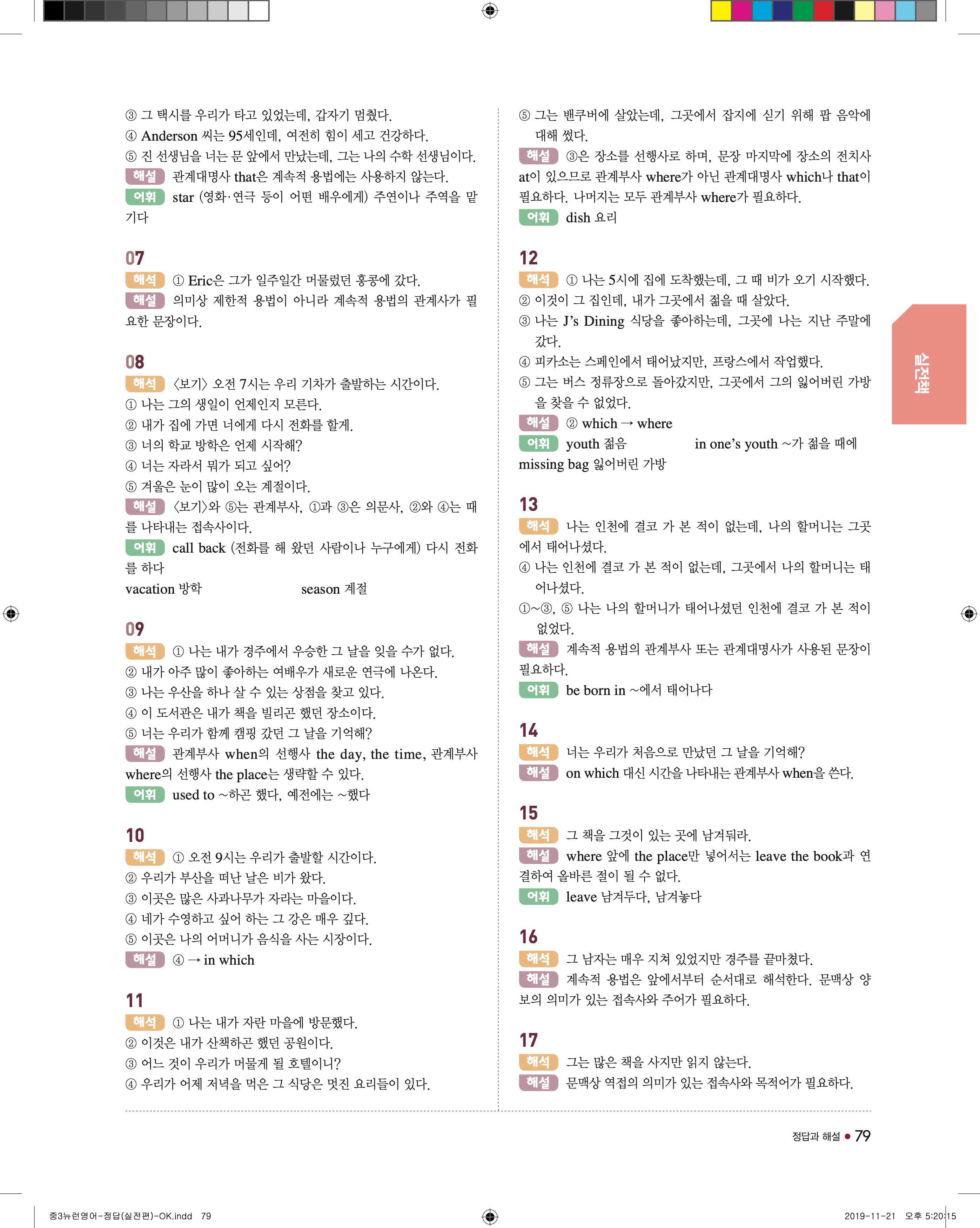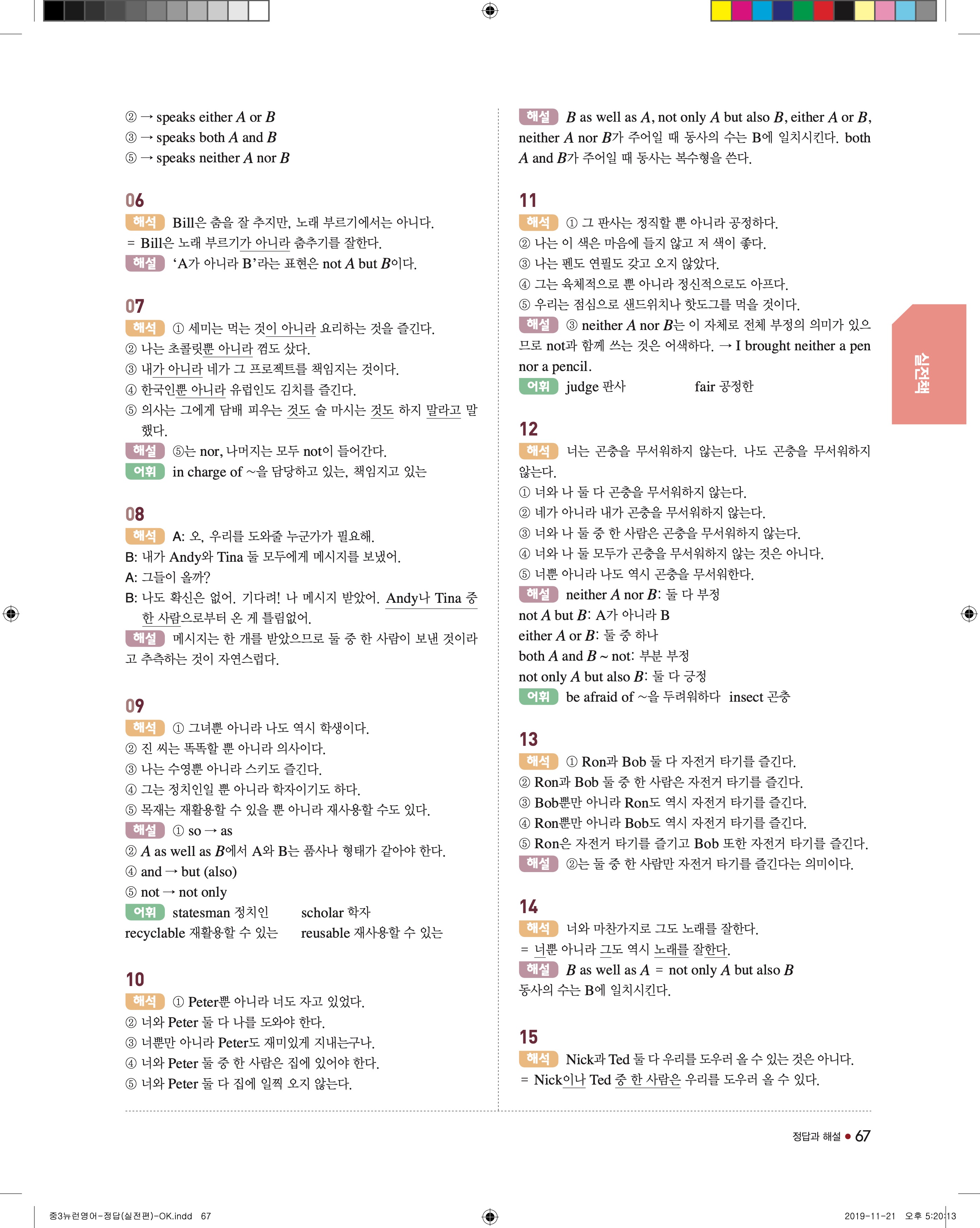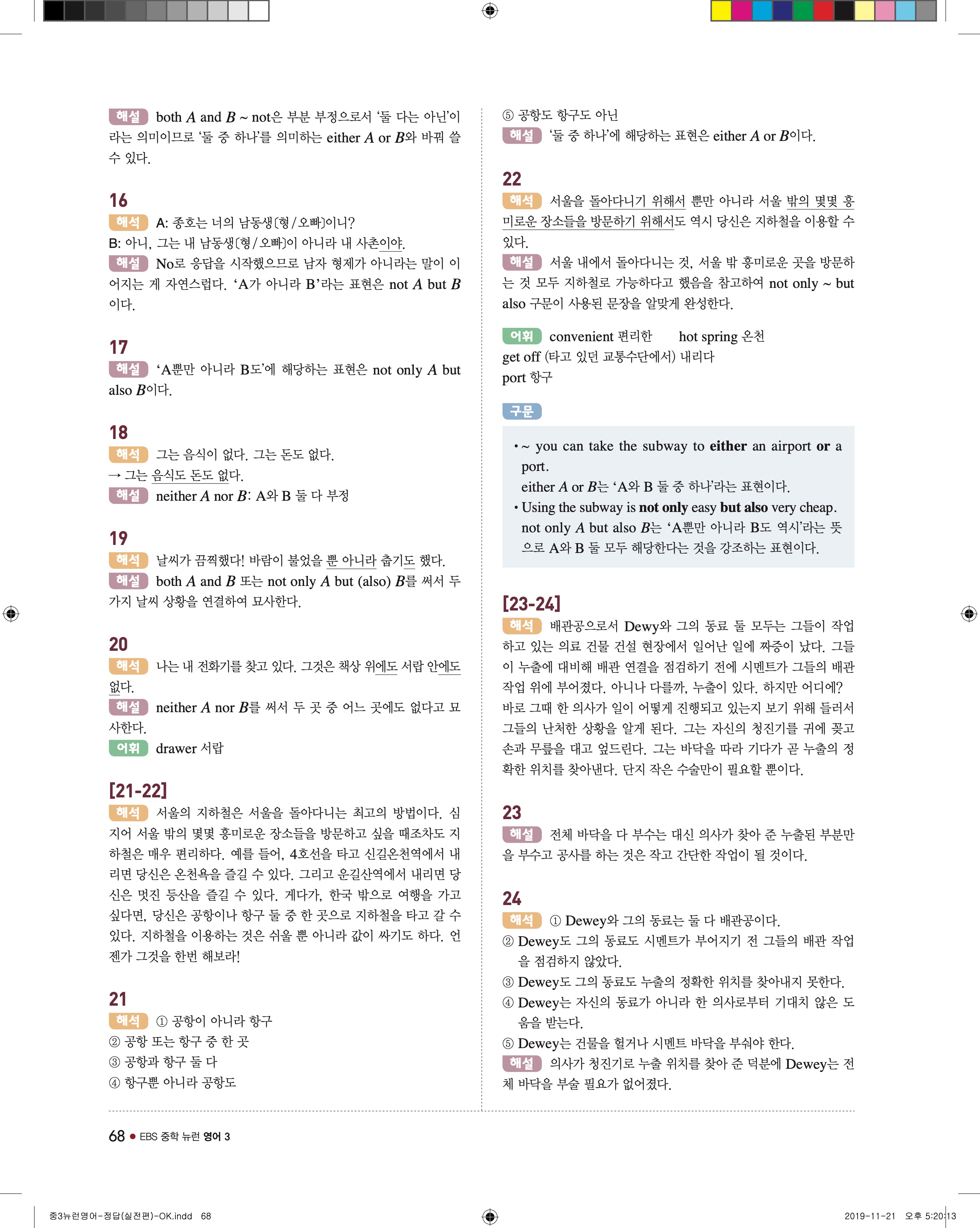 EBS 중학뉴런 영어3 답지 해설 바로보는 사진답지 빠른답지 모바일최적화