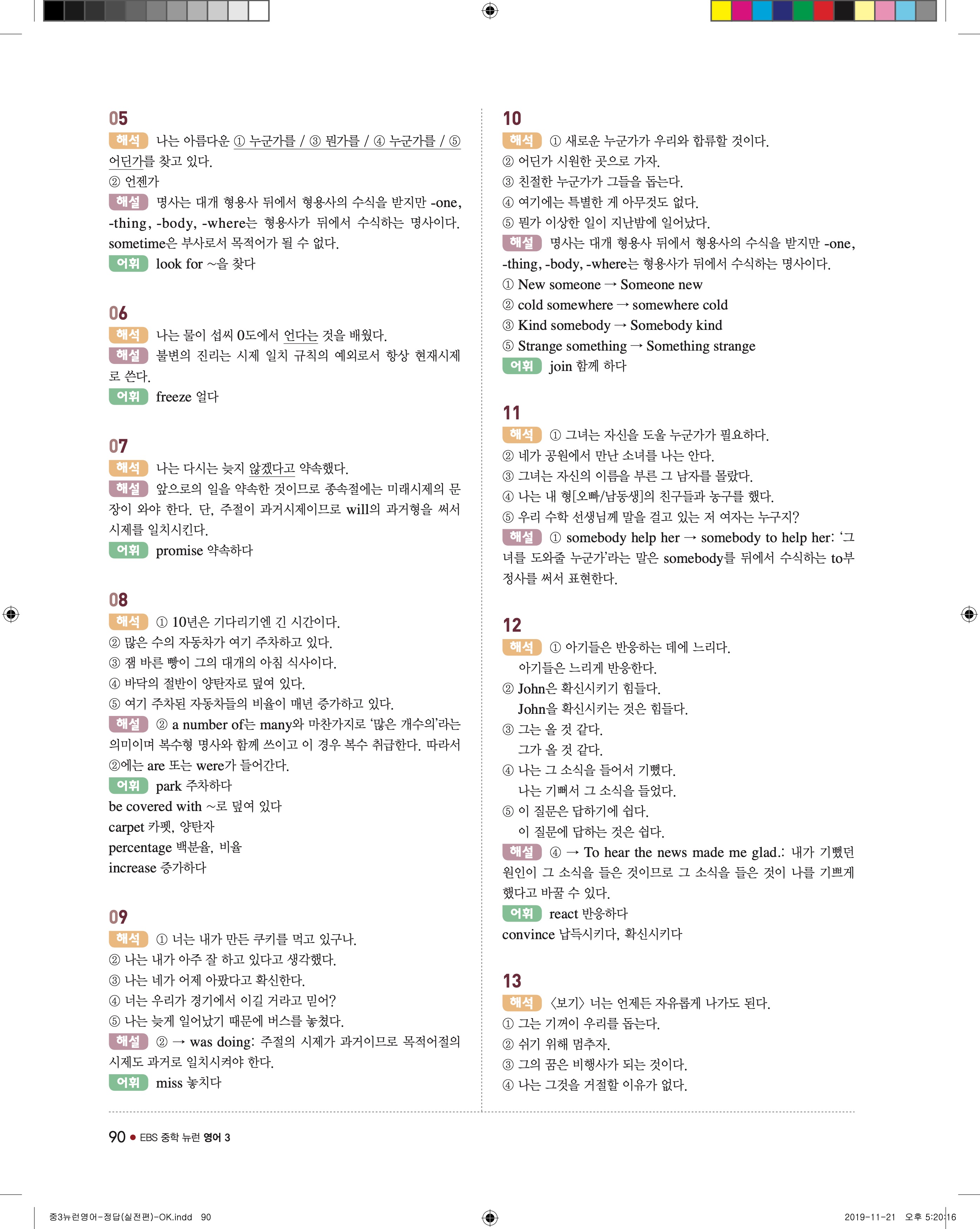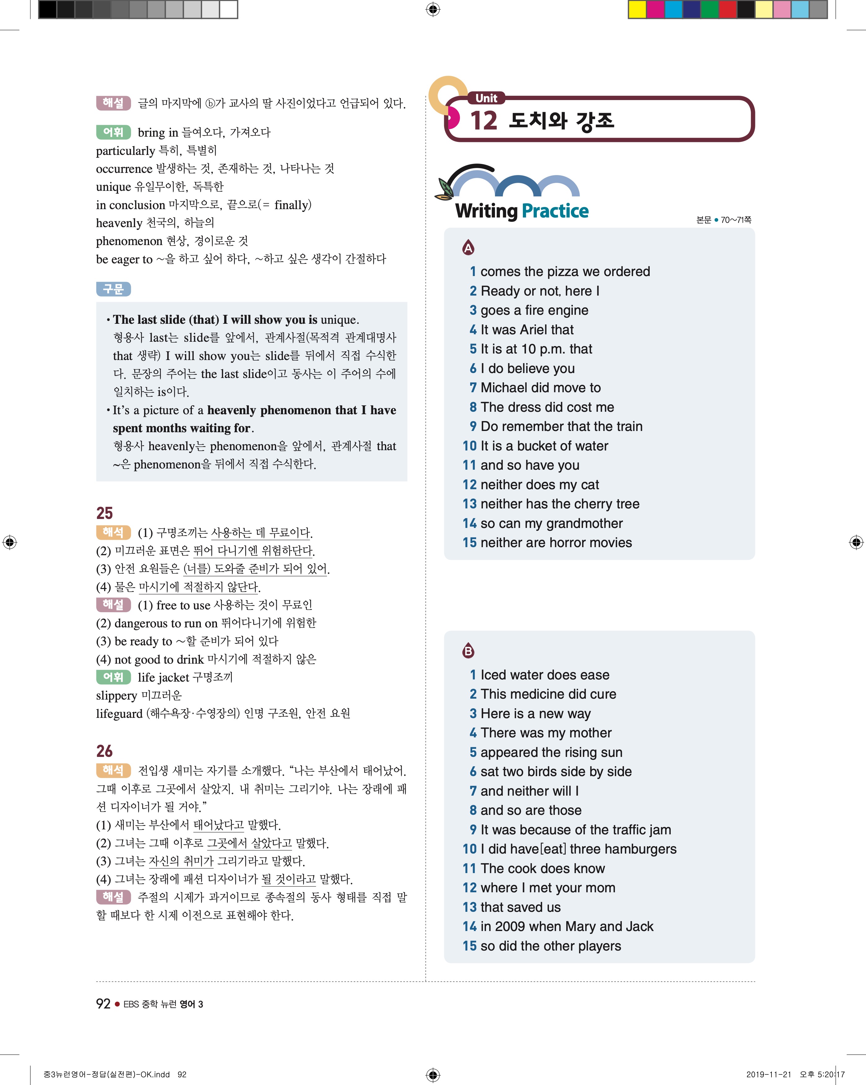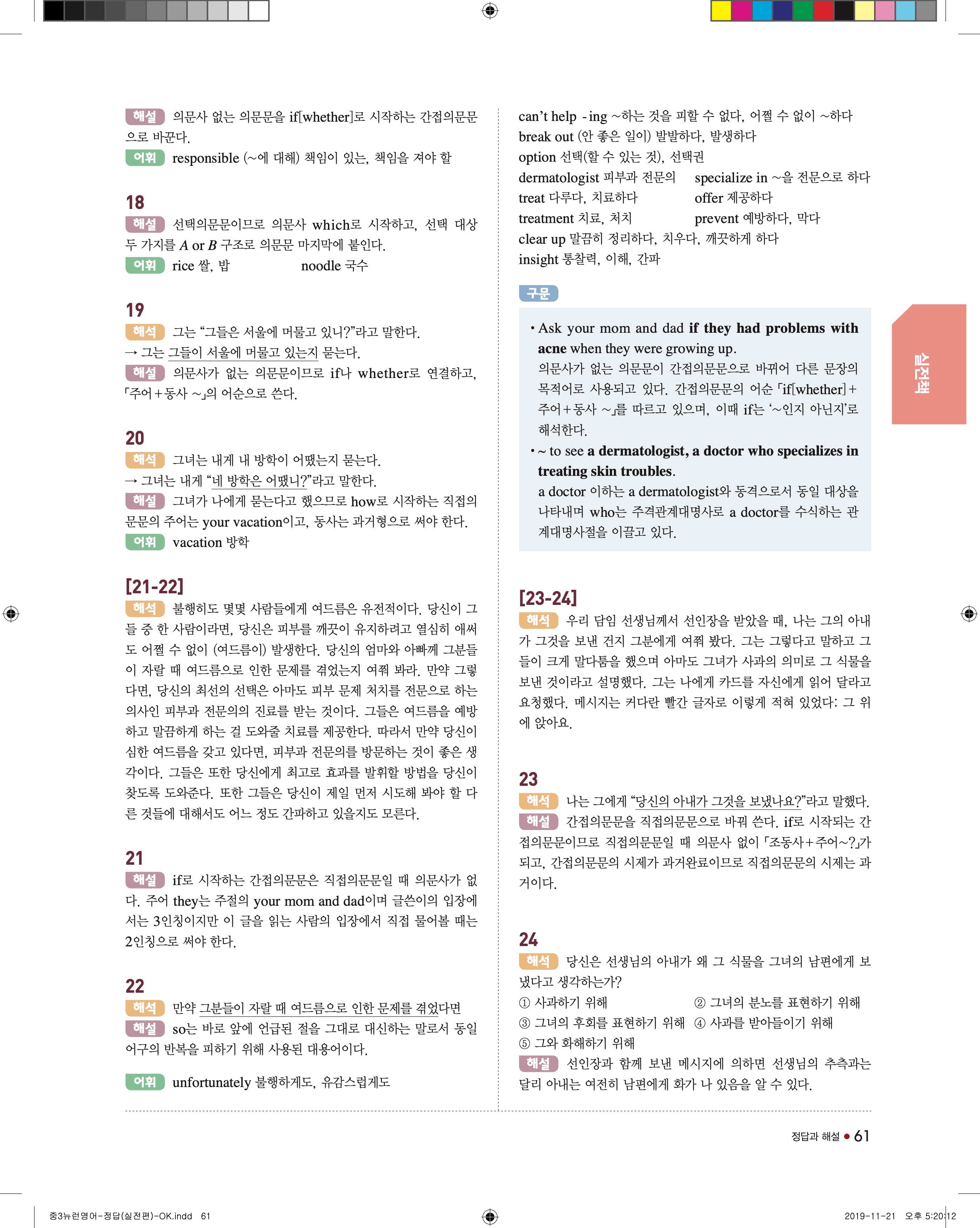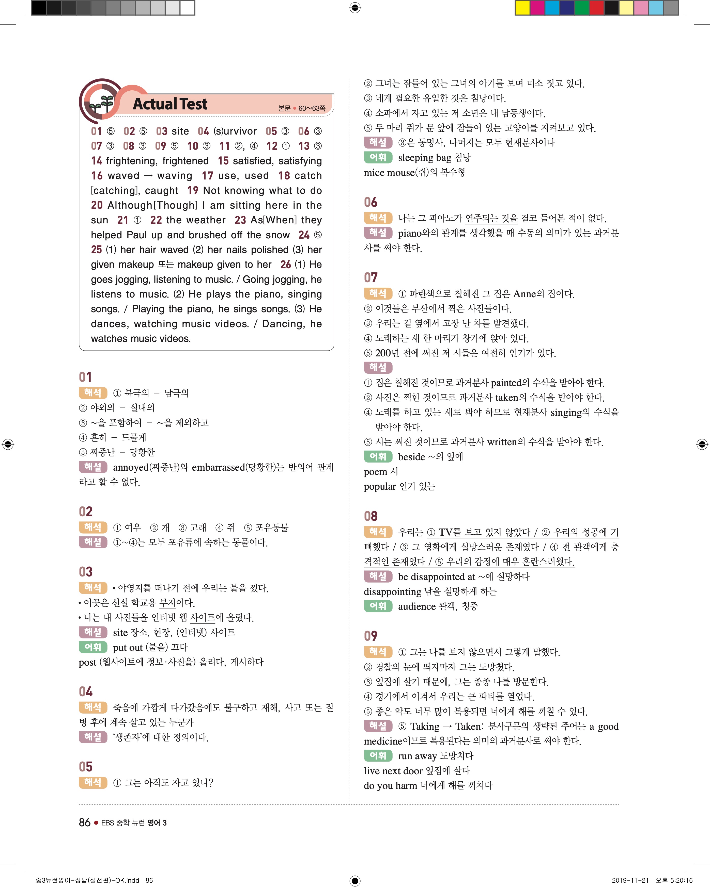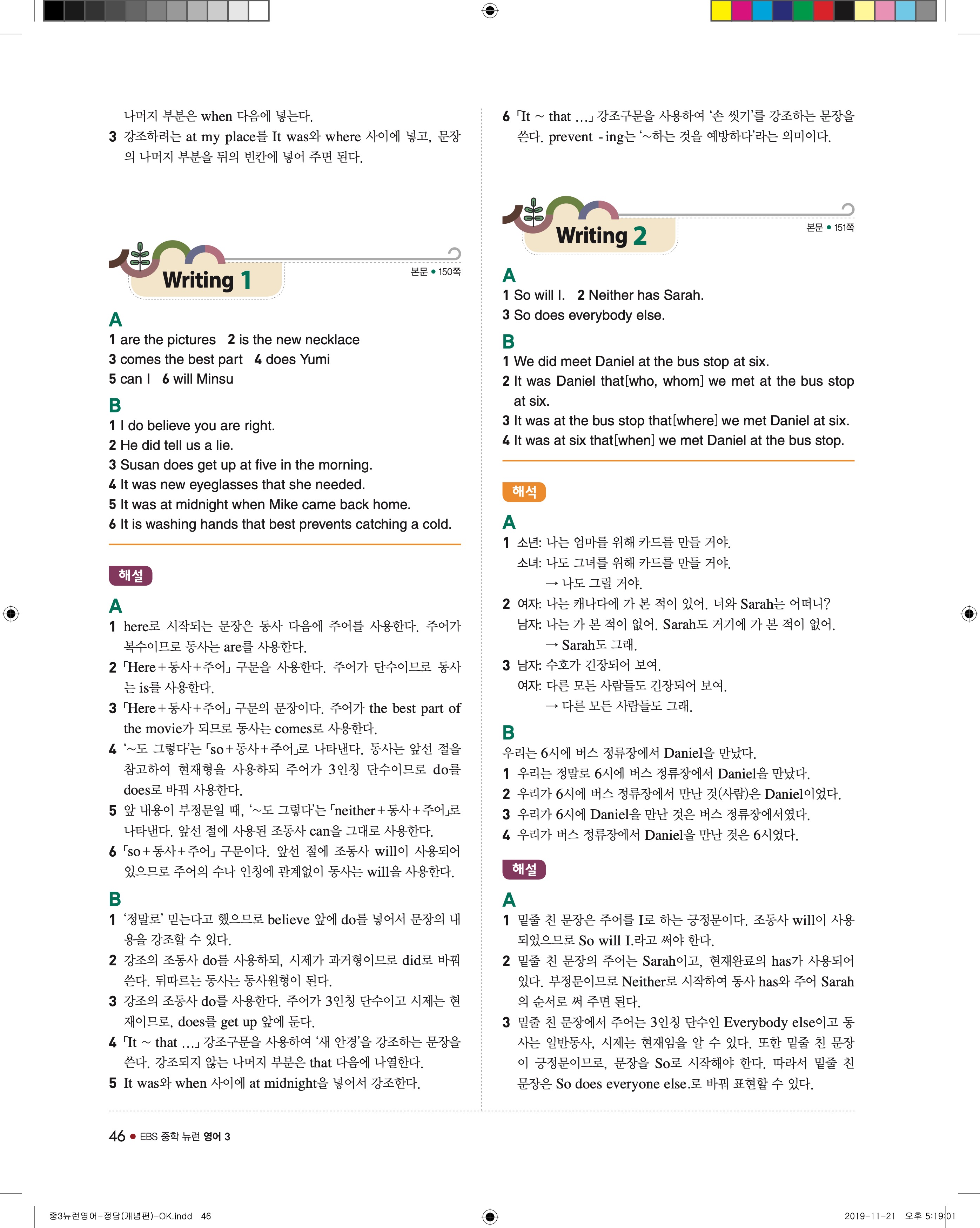 EBS 중학뉴런 영어3 답지 해설 바로보는 사진답지 빠른답지 모바일최적화