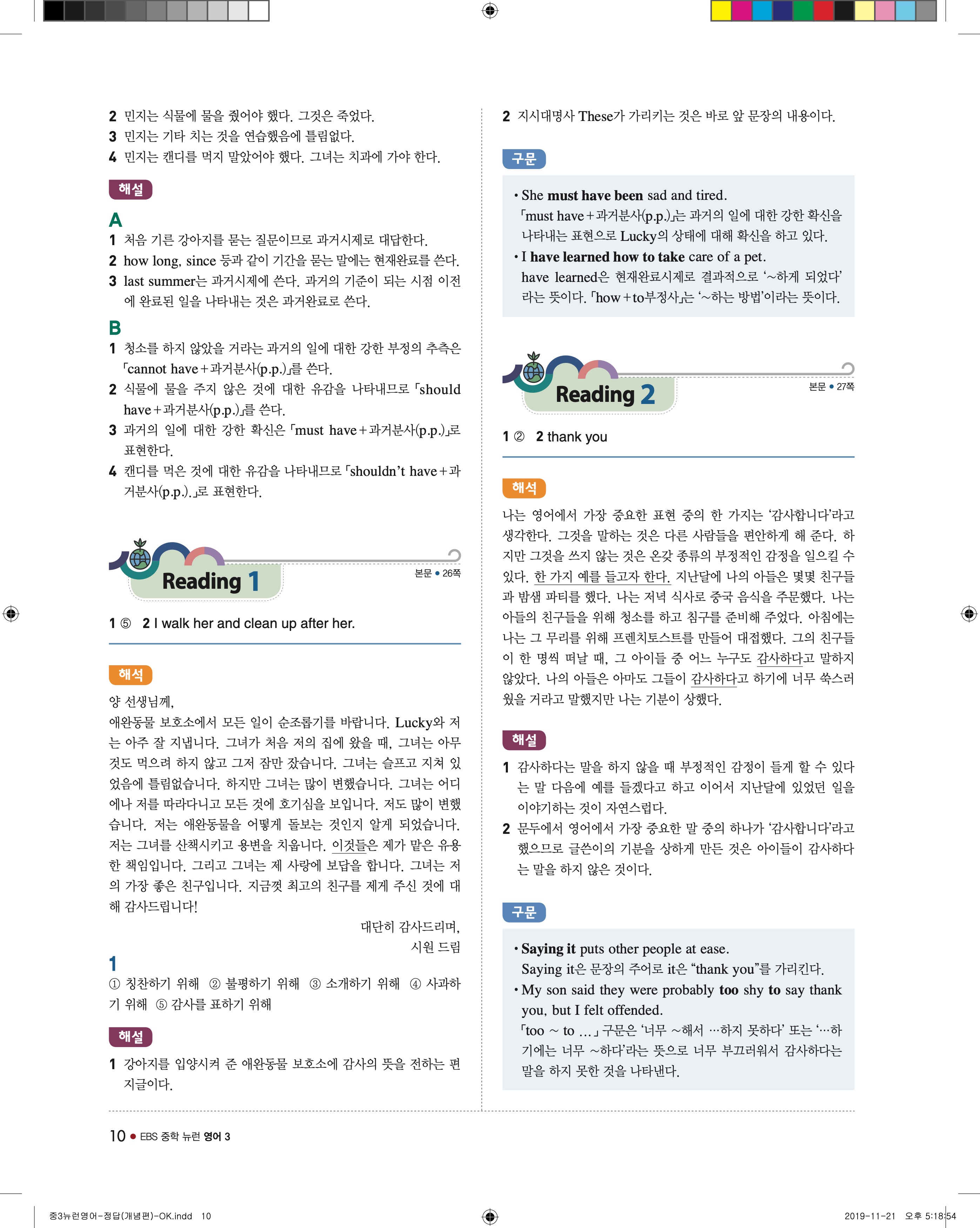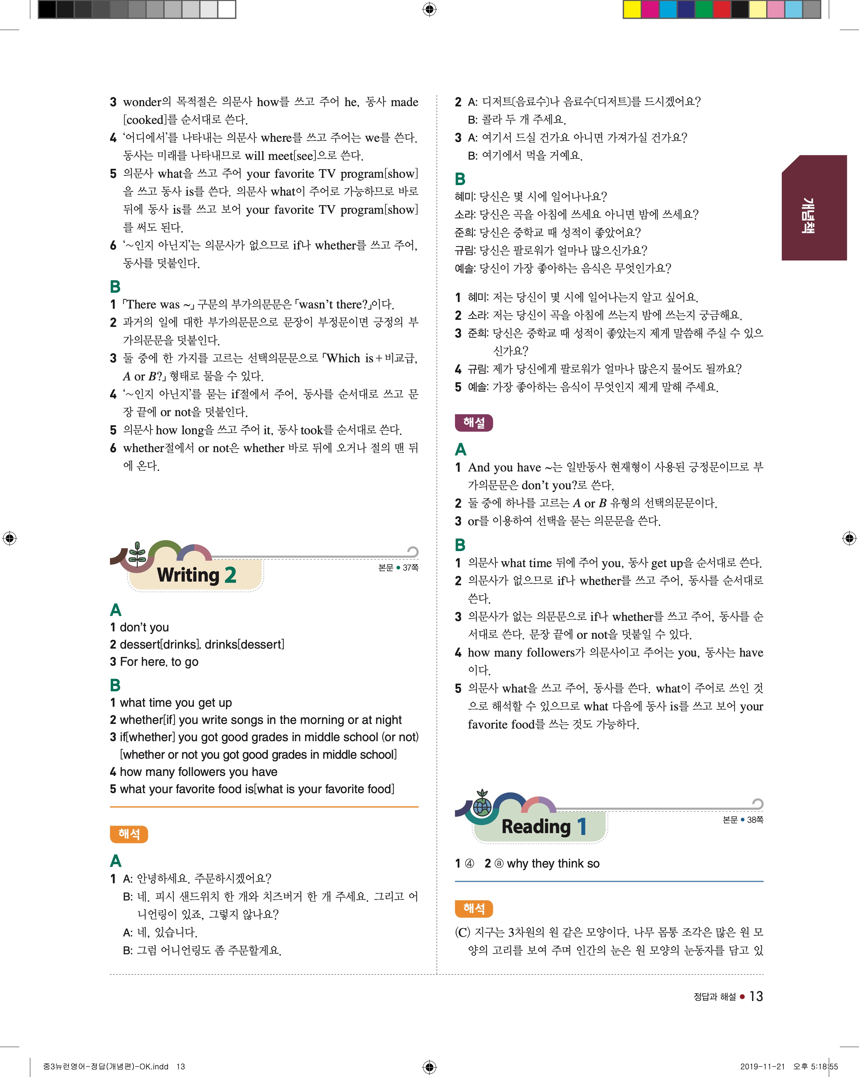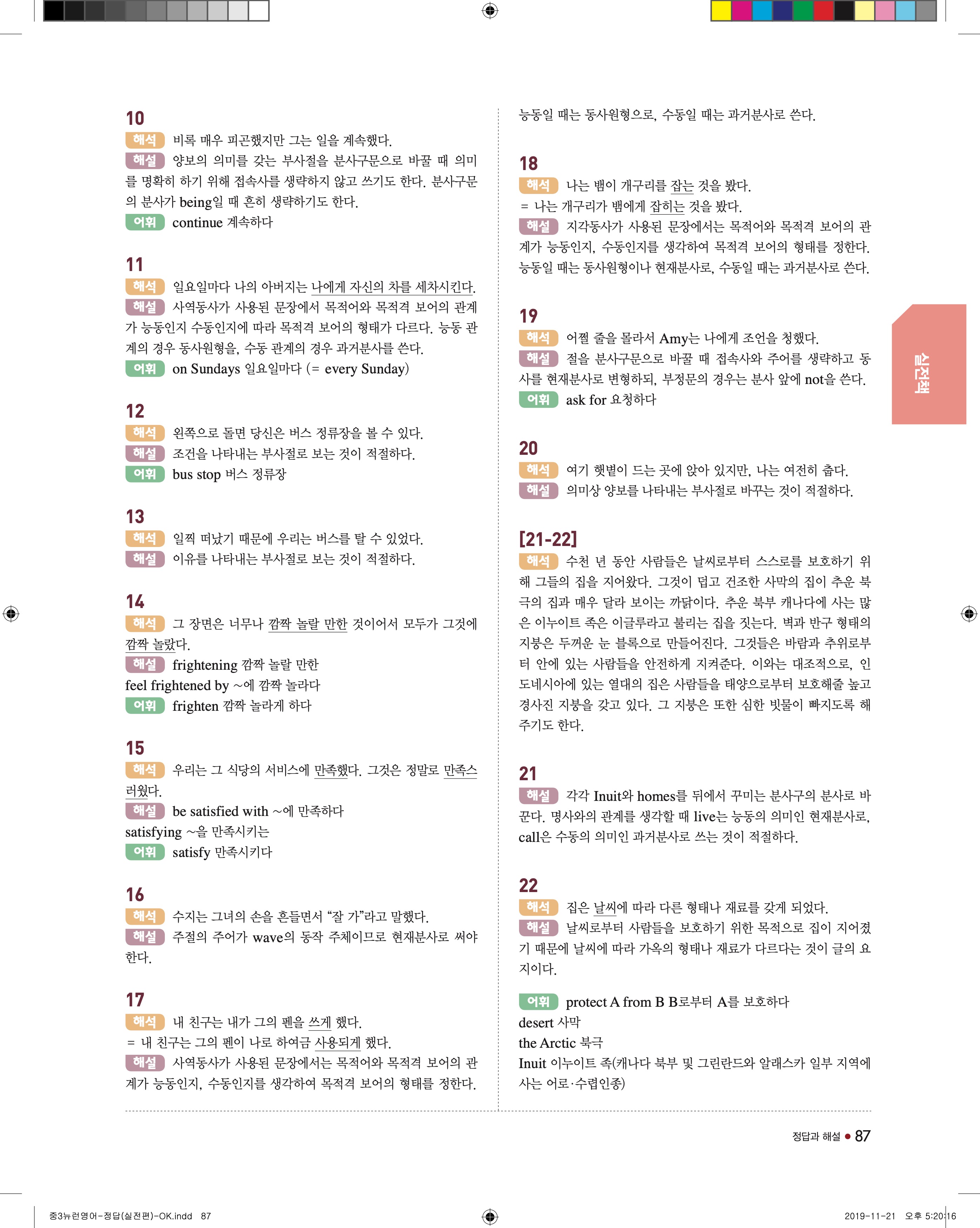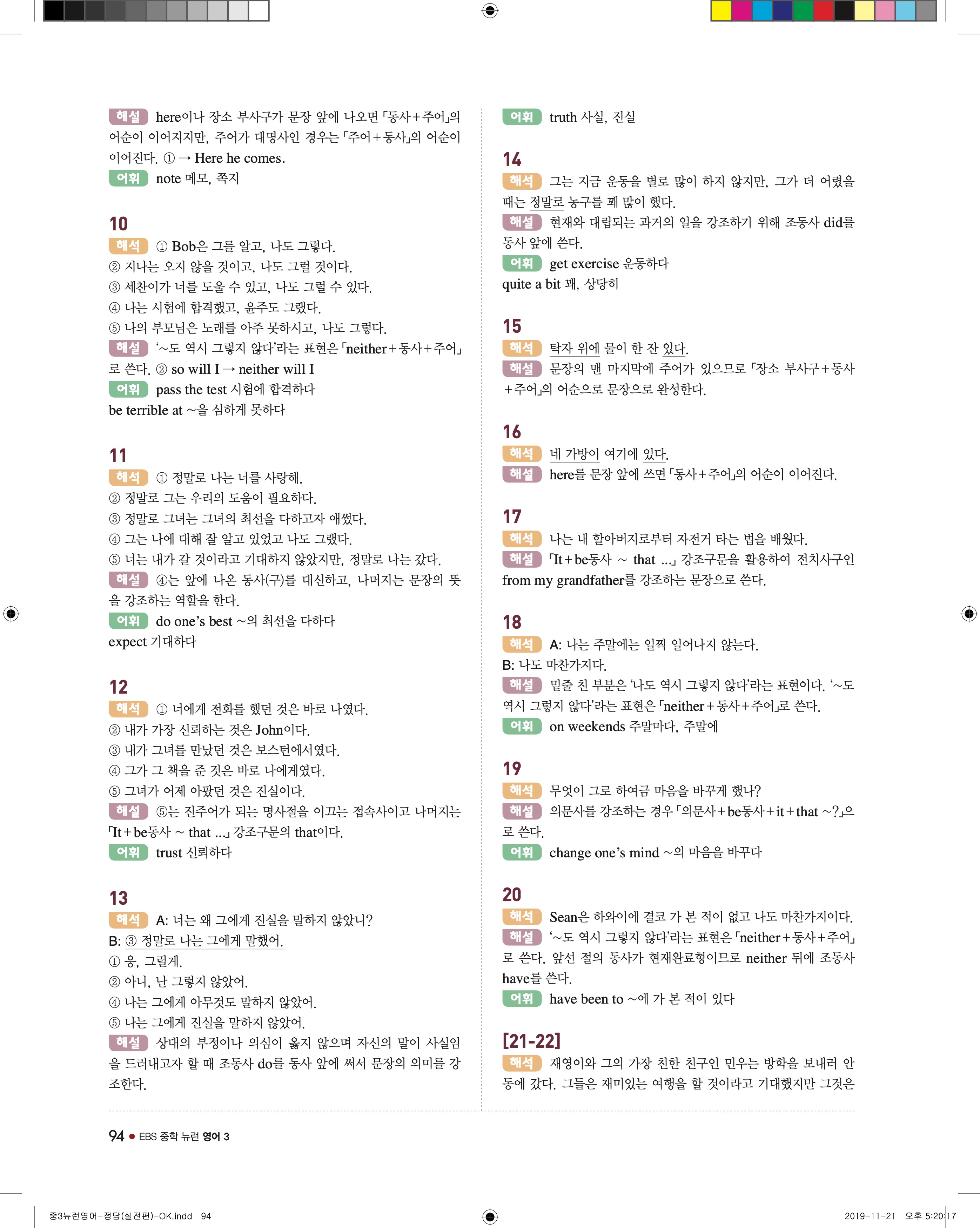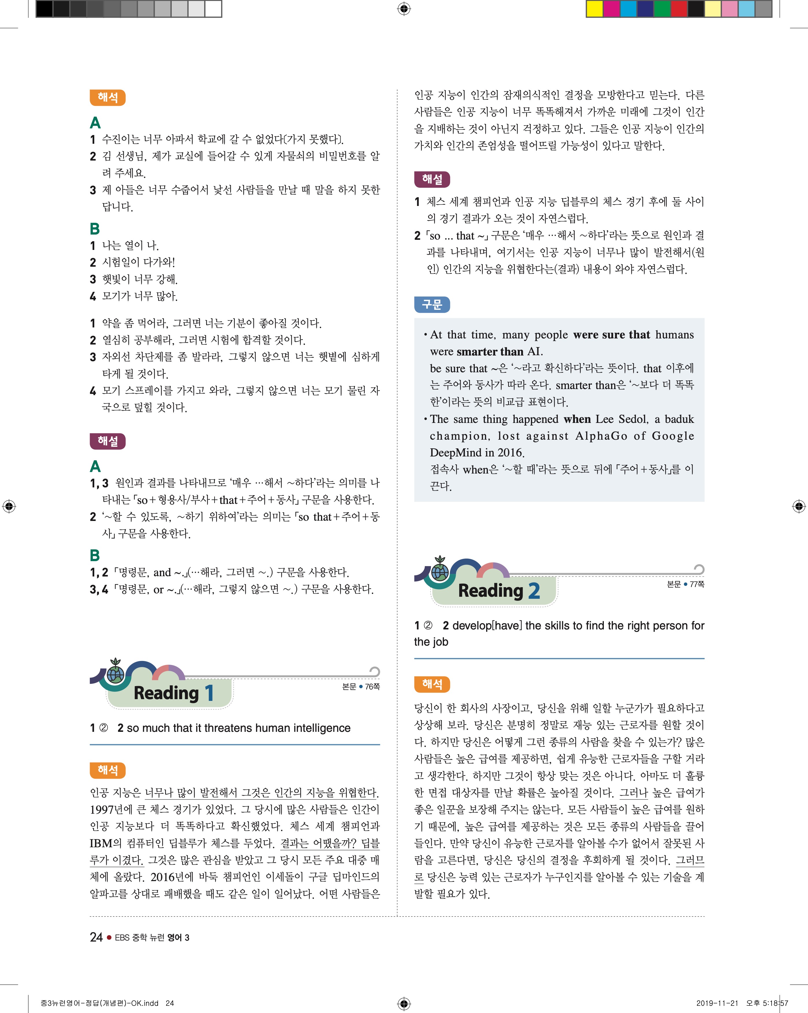 EBS 중학뉴런 영어3 답지 해설 바로보는 사진답지 빠른답지 모바일최적화