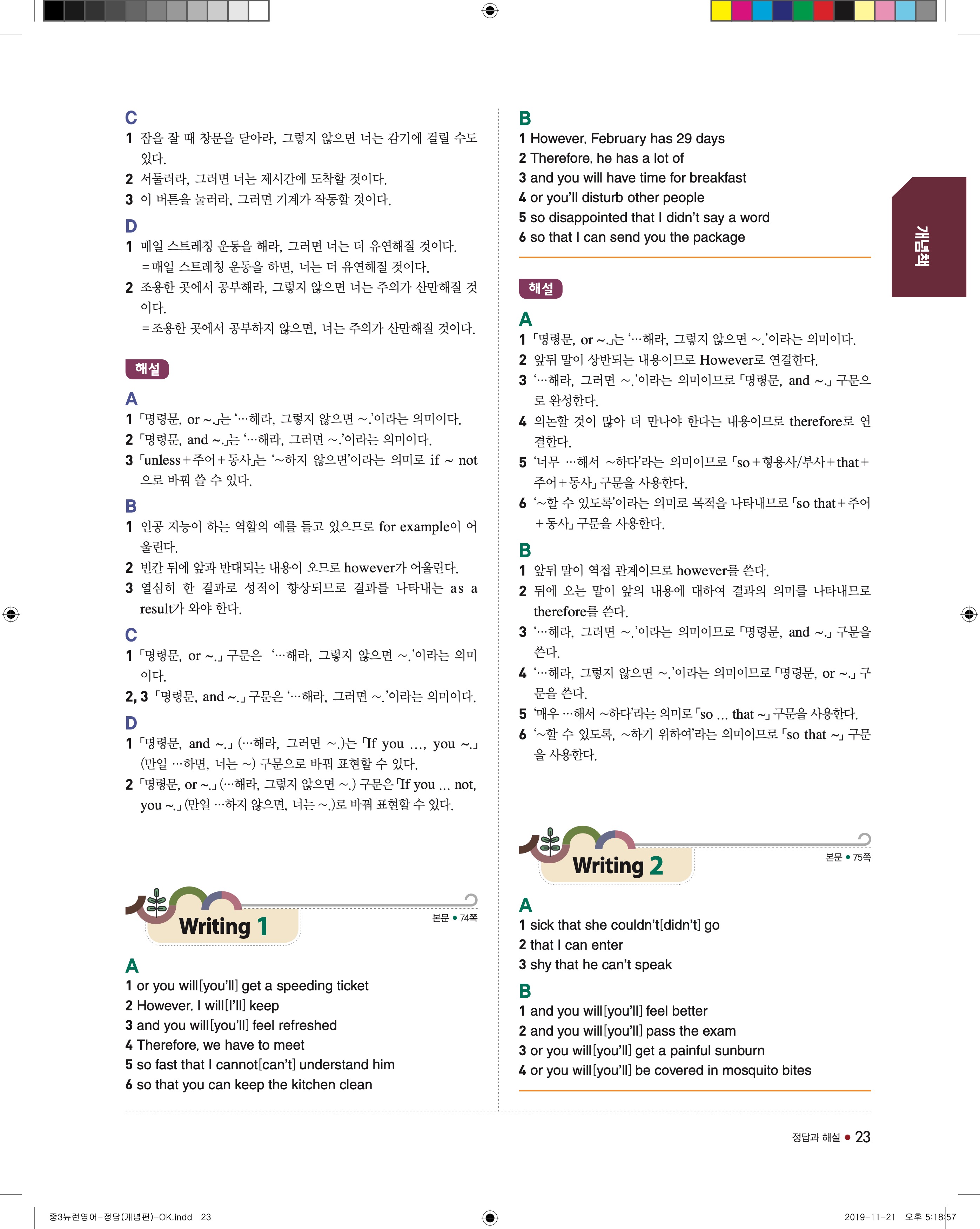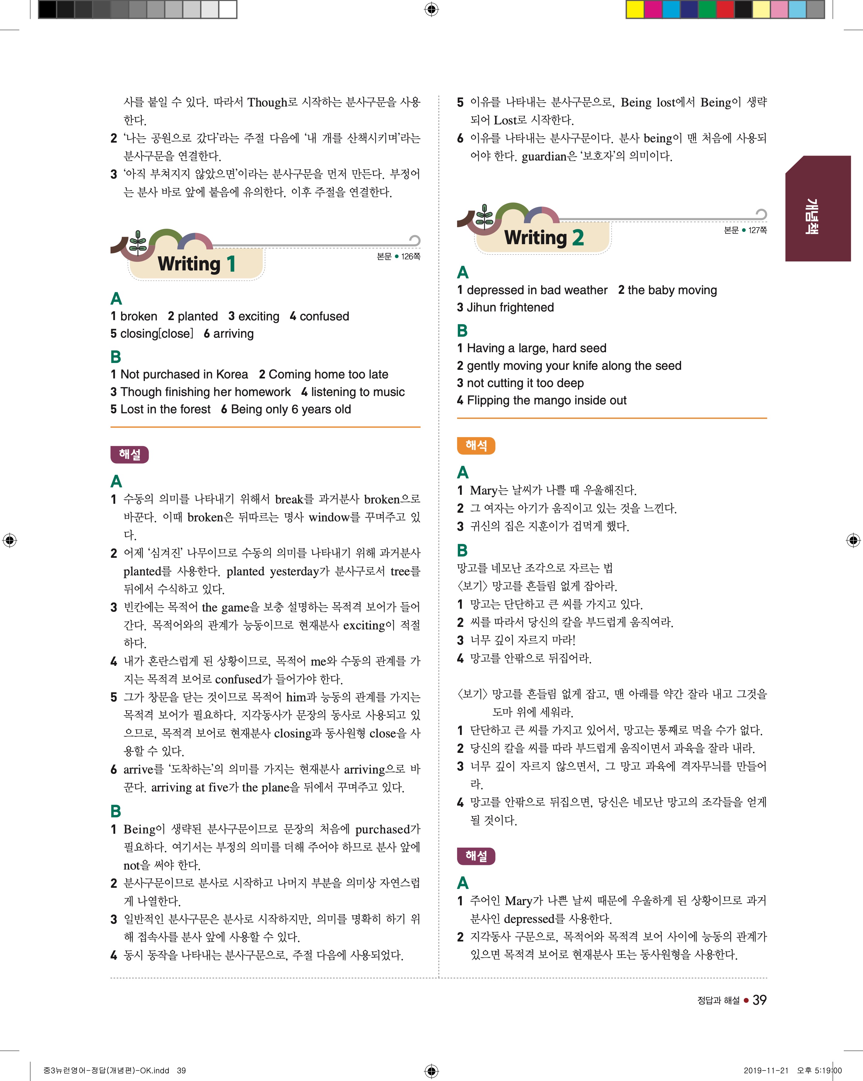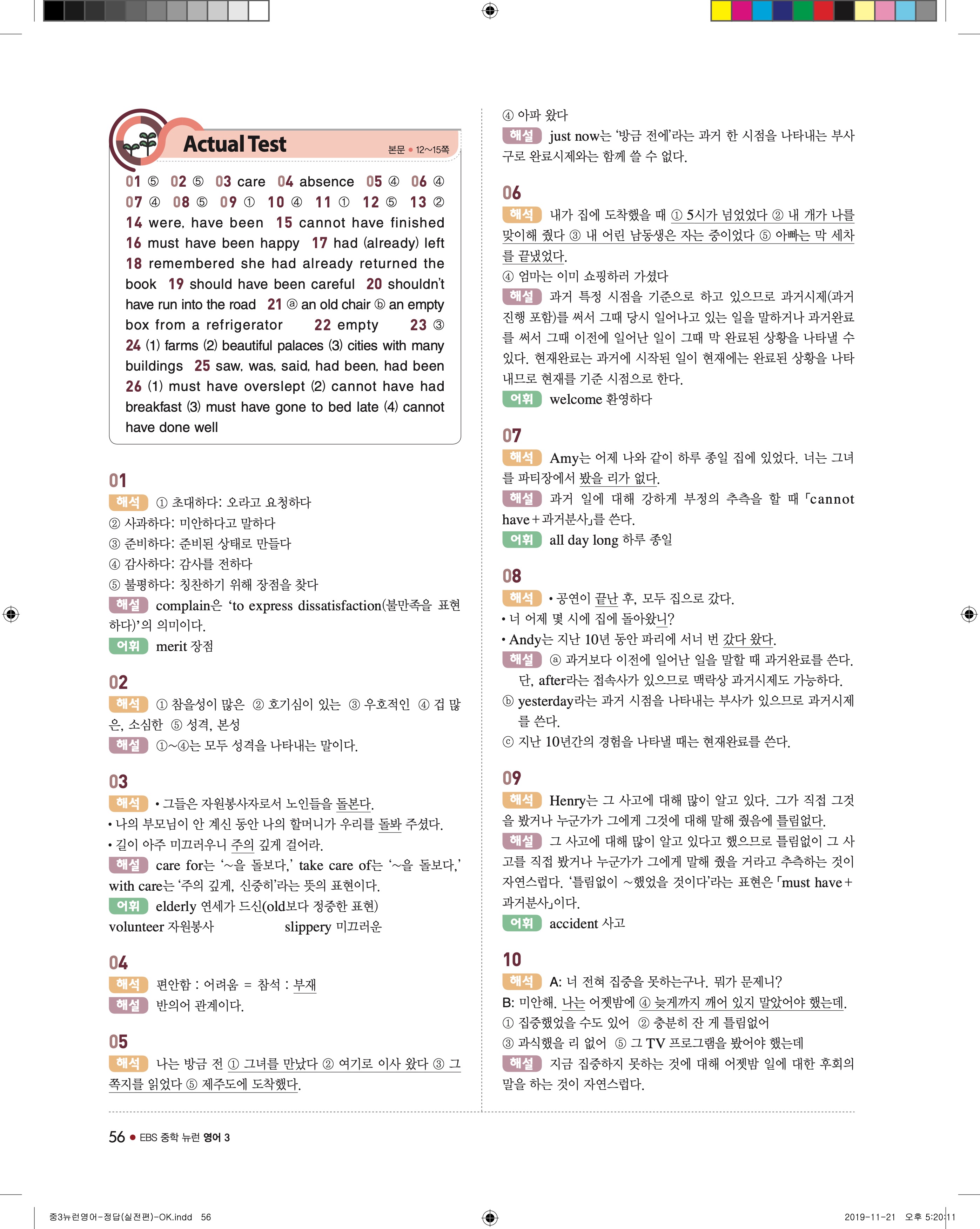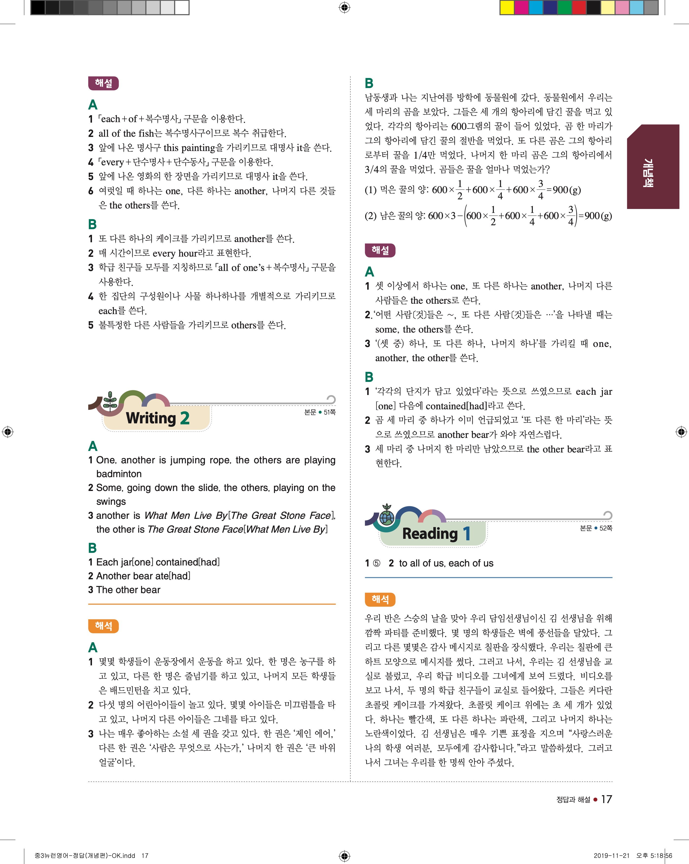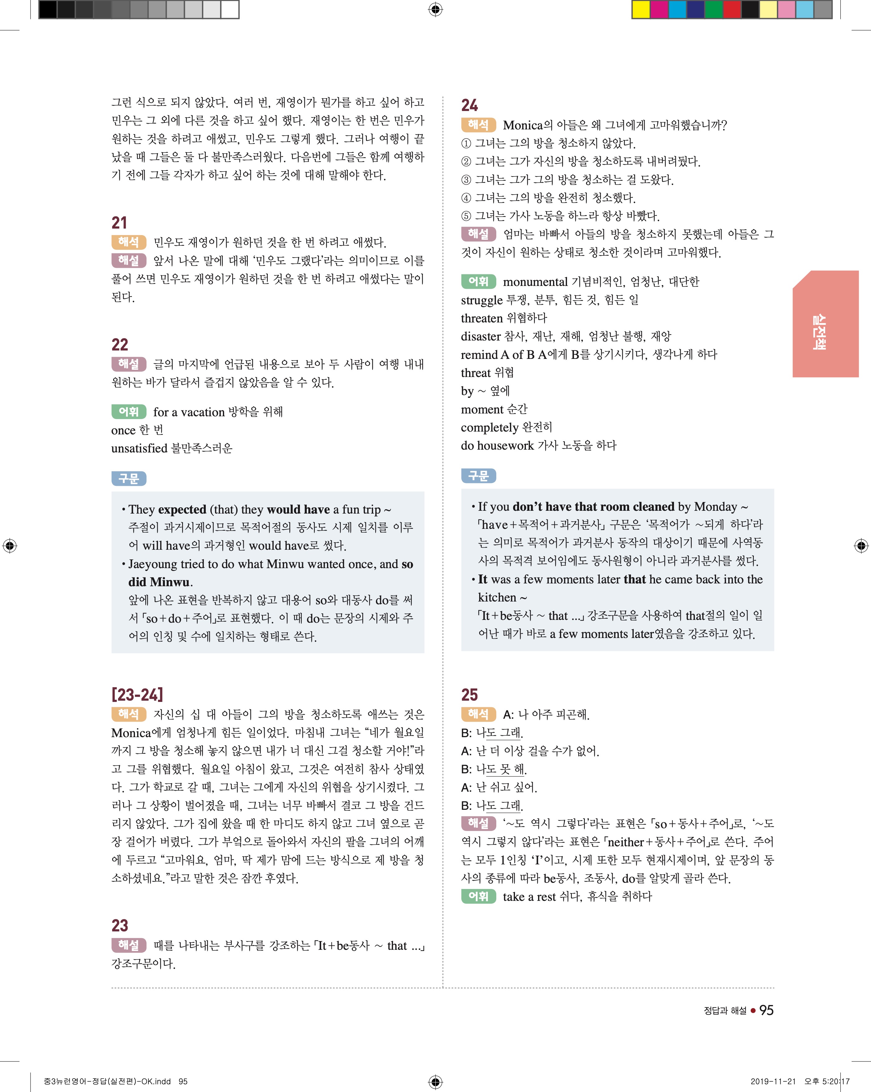 EBS 중학뉴런 영어3 답지 해설 바로보는 사진답지 빠른답지 모바일최적화