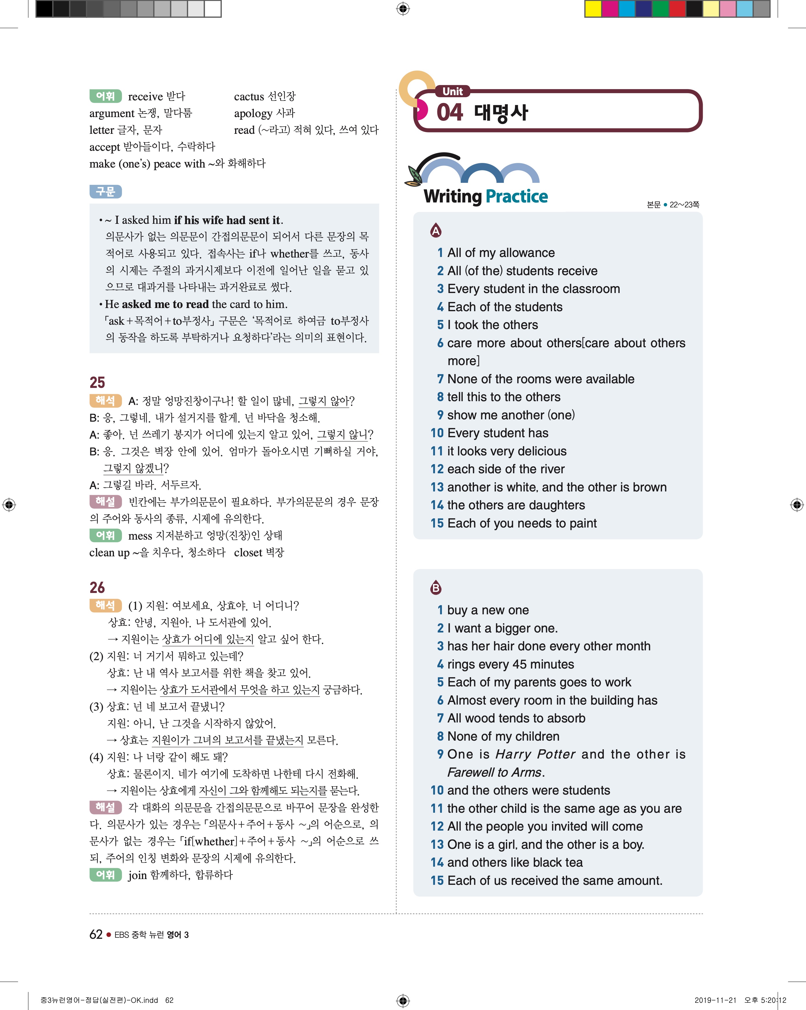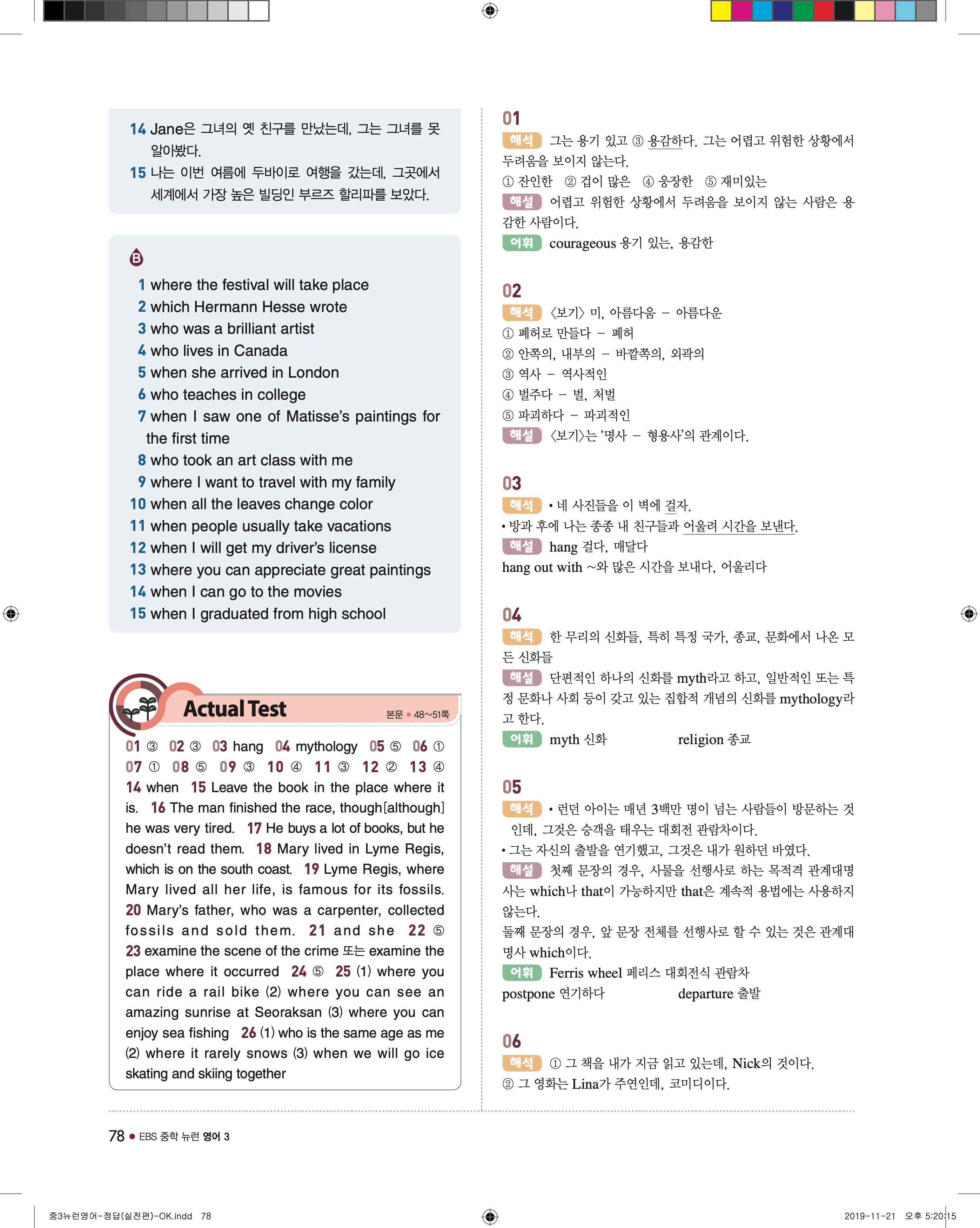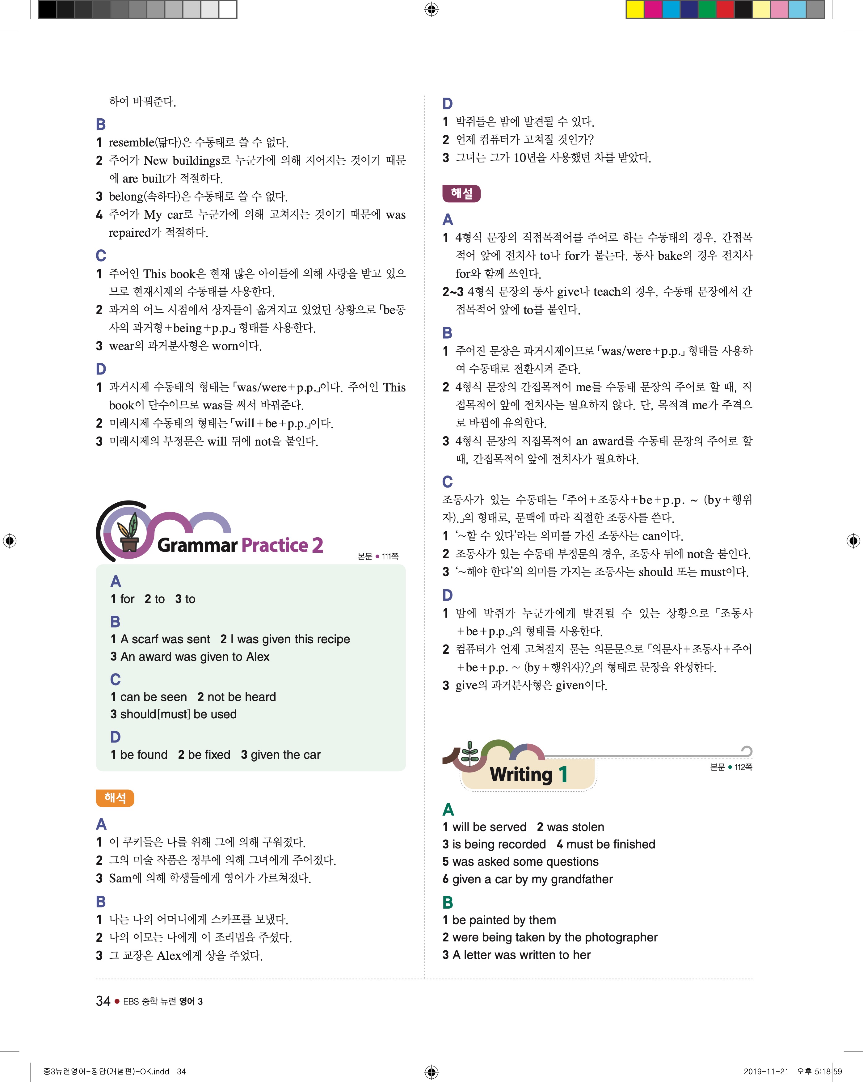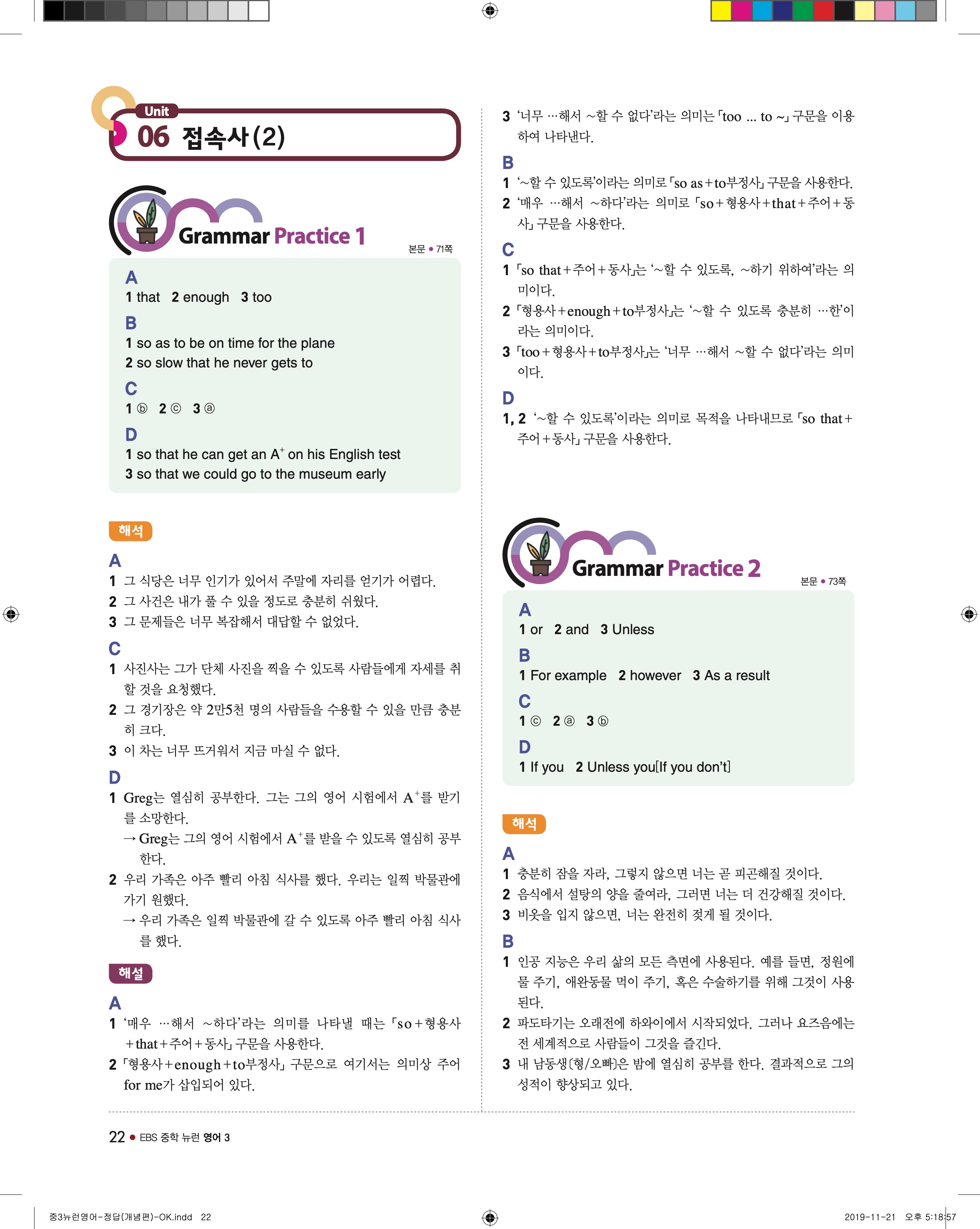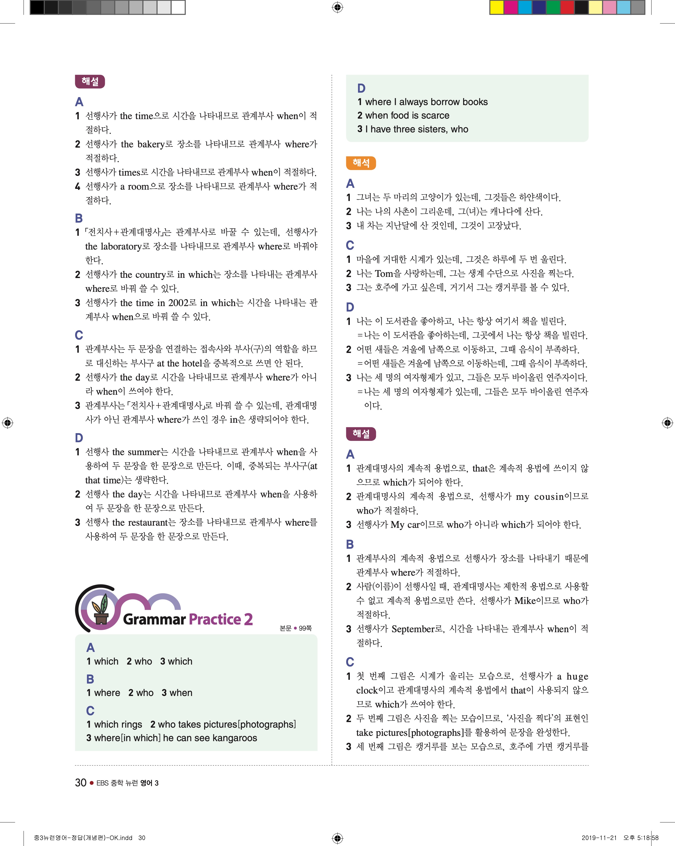 EBS 중학뉴런 영어3 답지 해설 바로보는 사진답지 빠른답지 모바일최적화