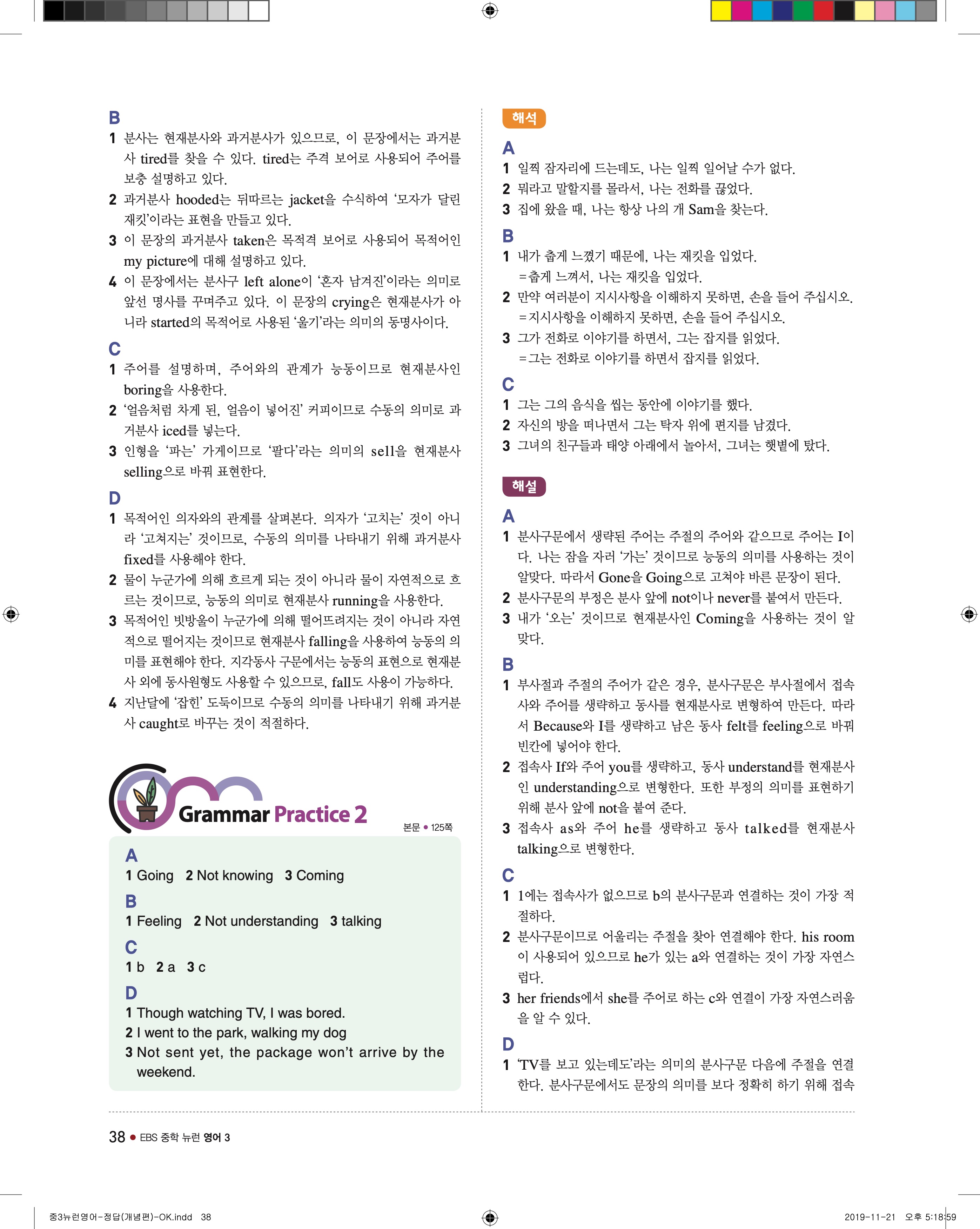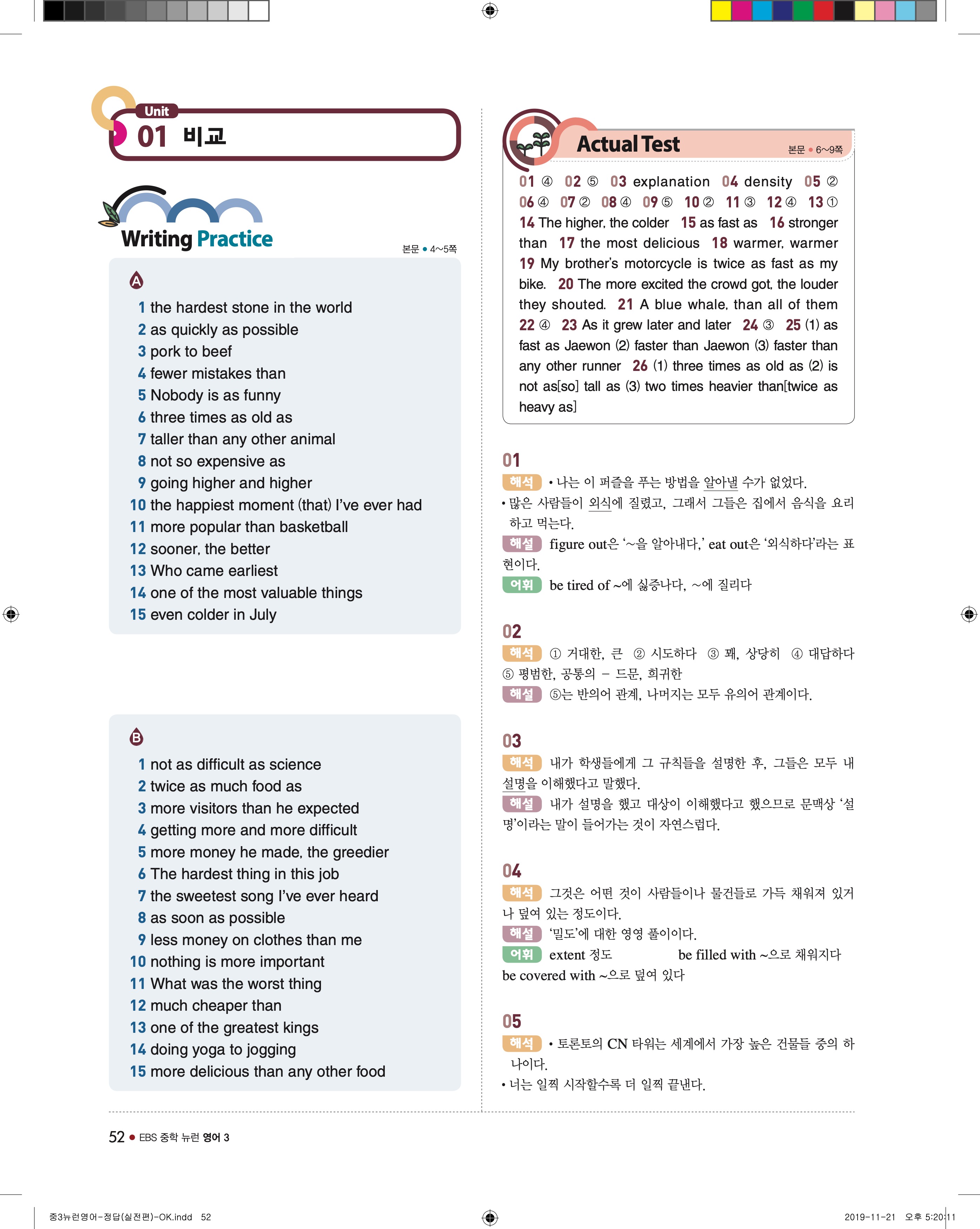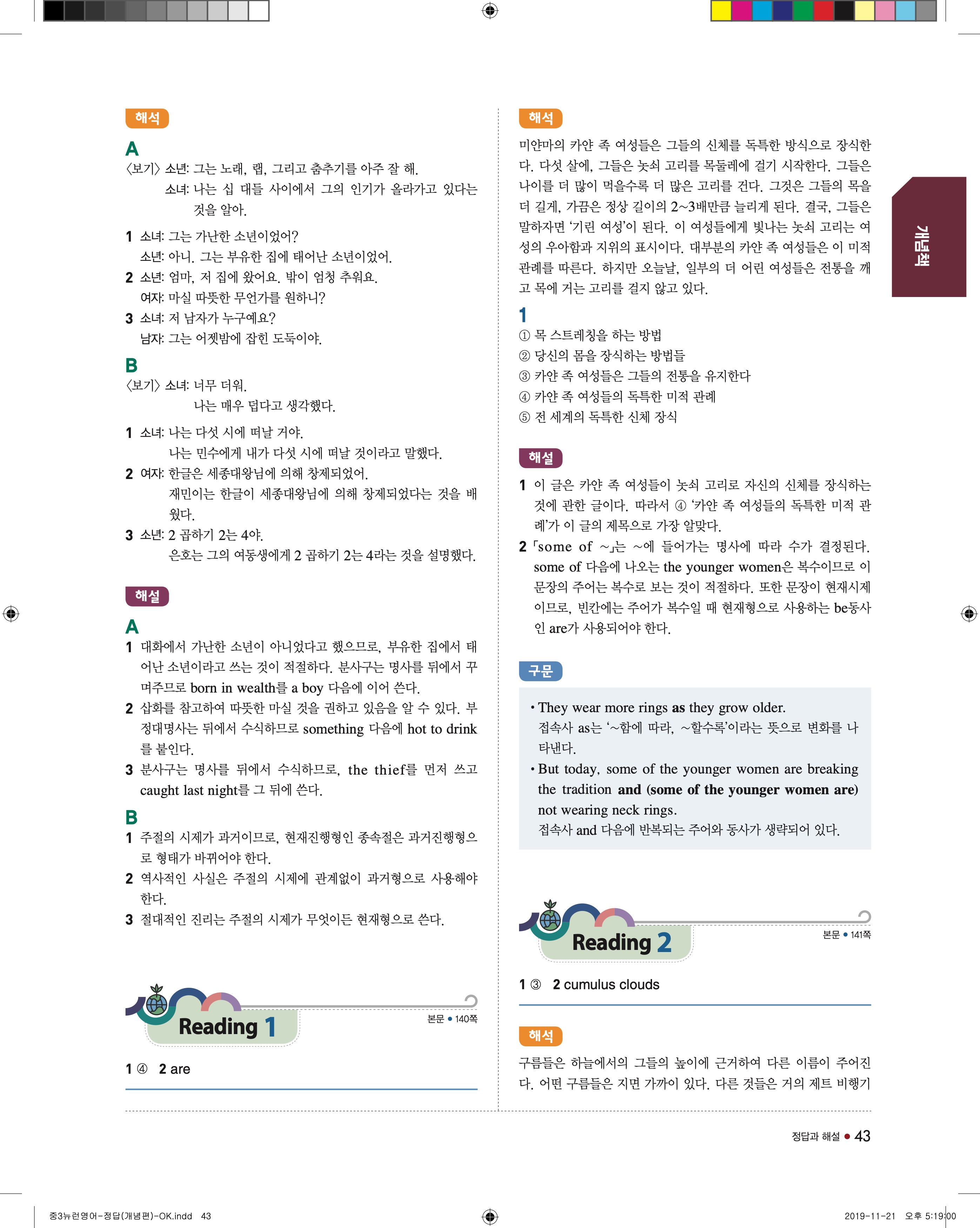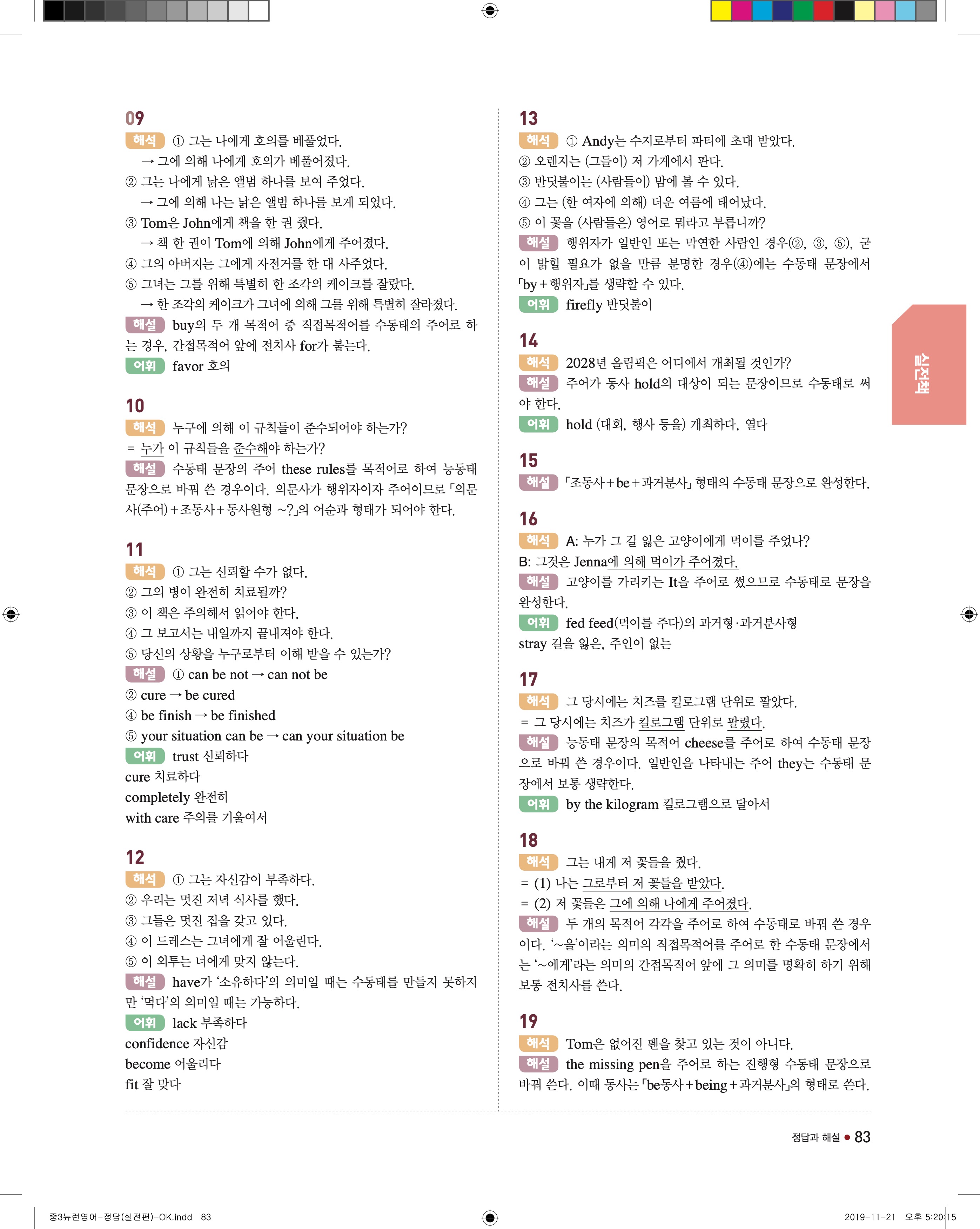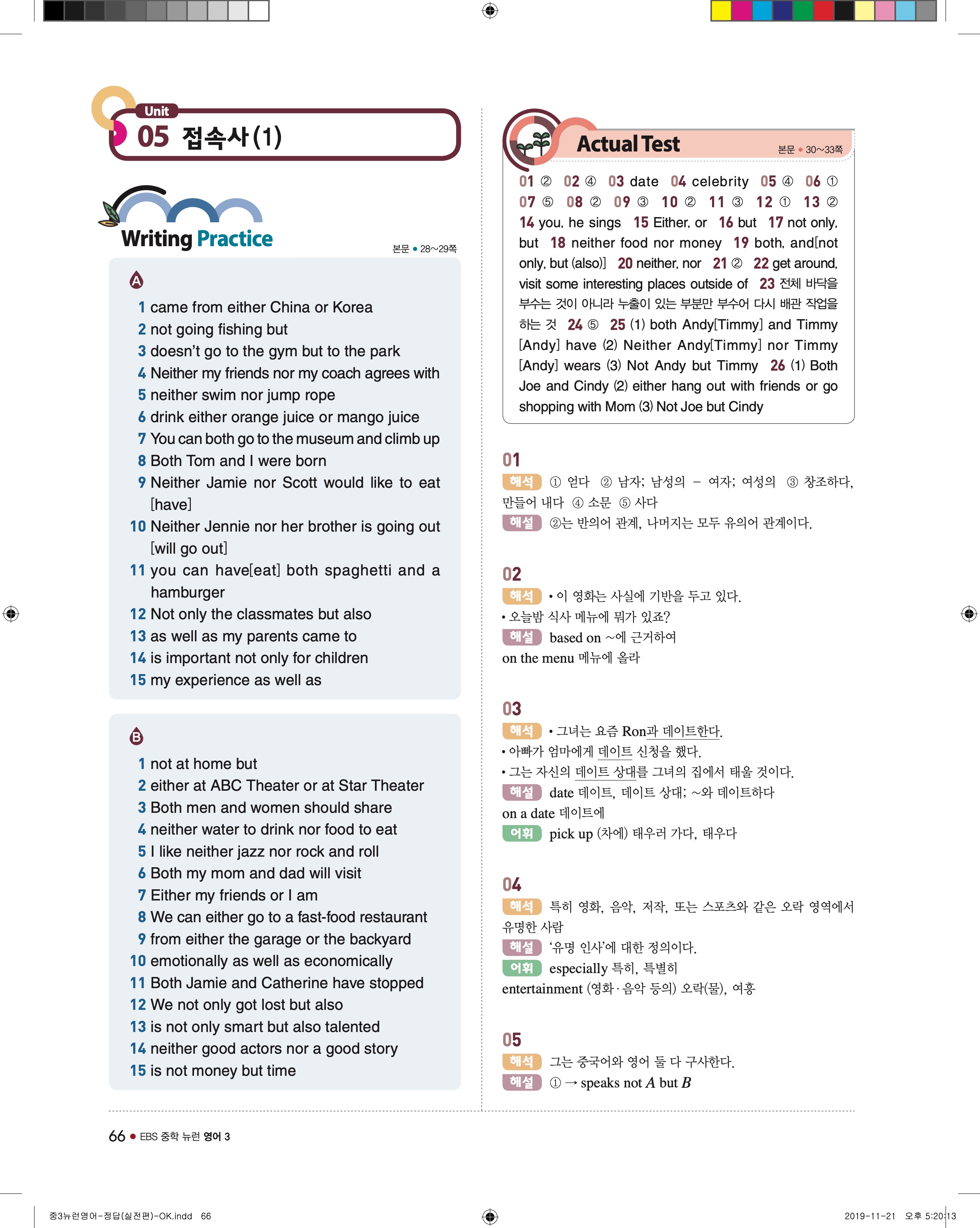 EBS 중학뉴런 영어3 답지 해설 바로보는 사진답지 빠른답지 모바일최적화