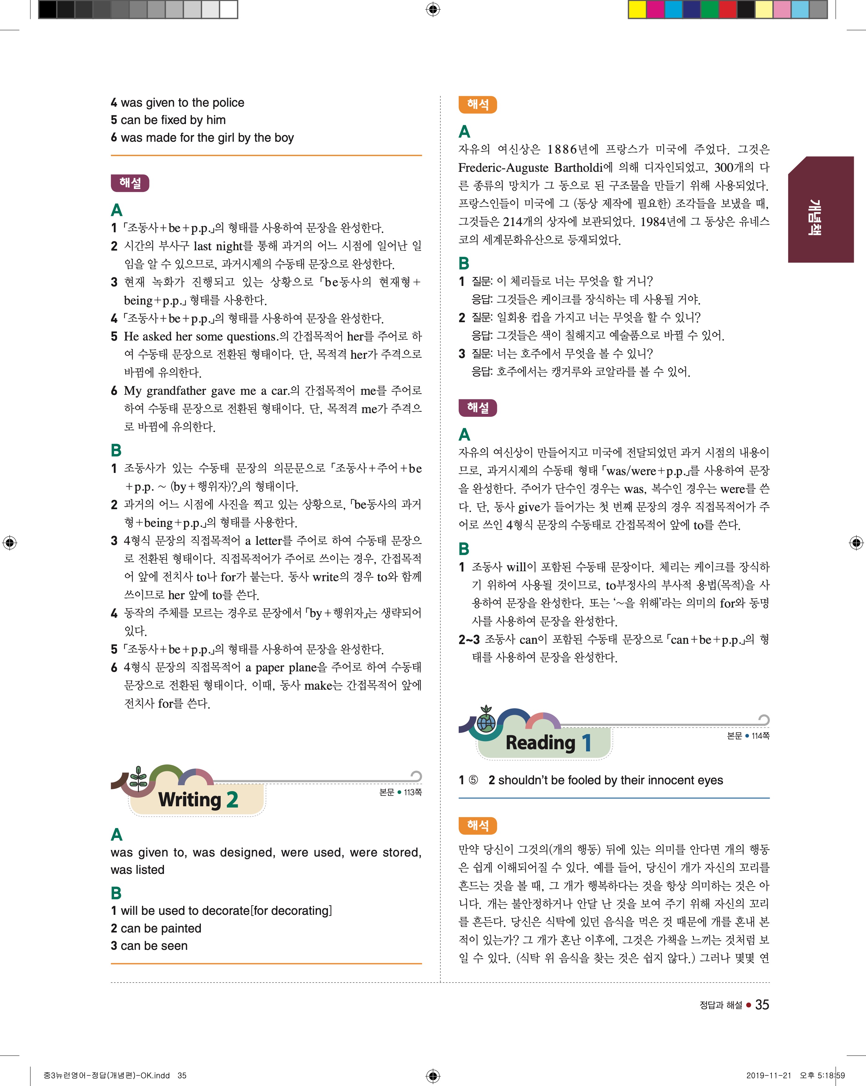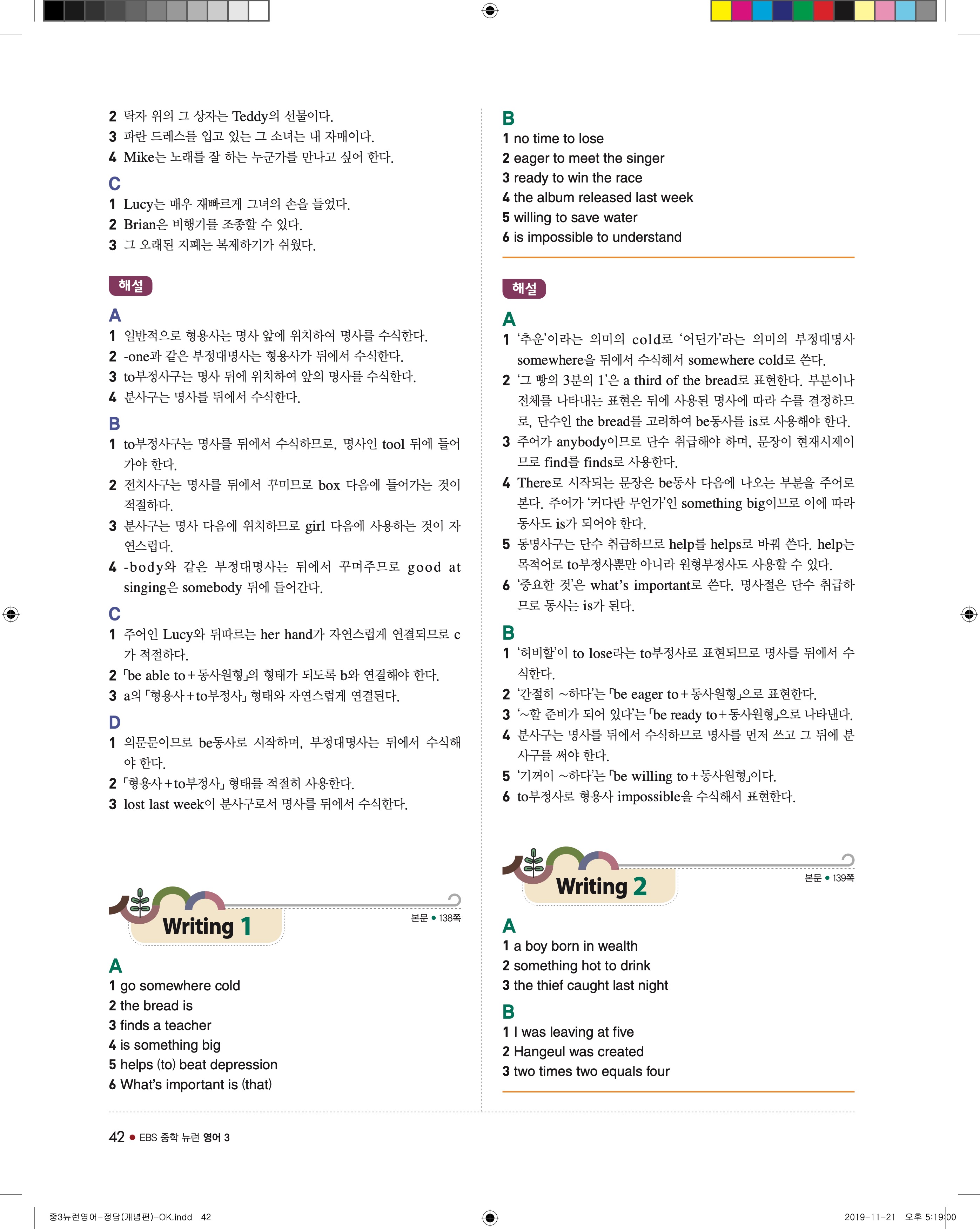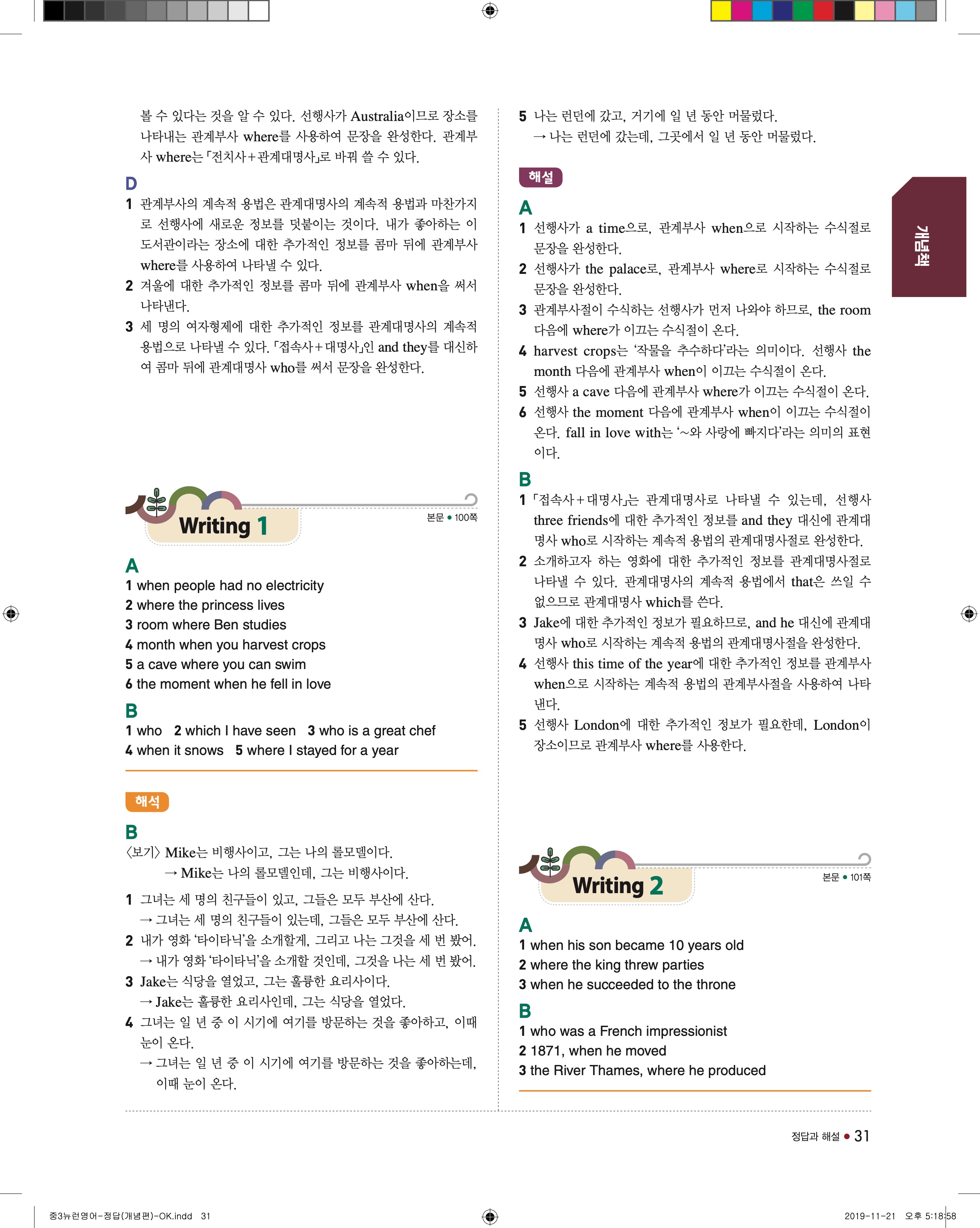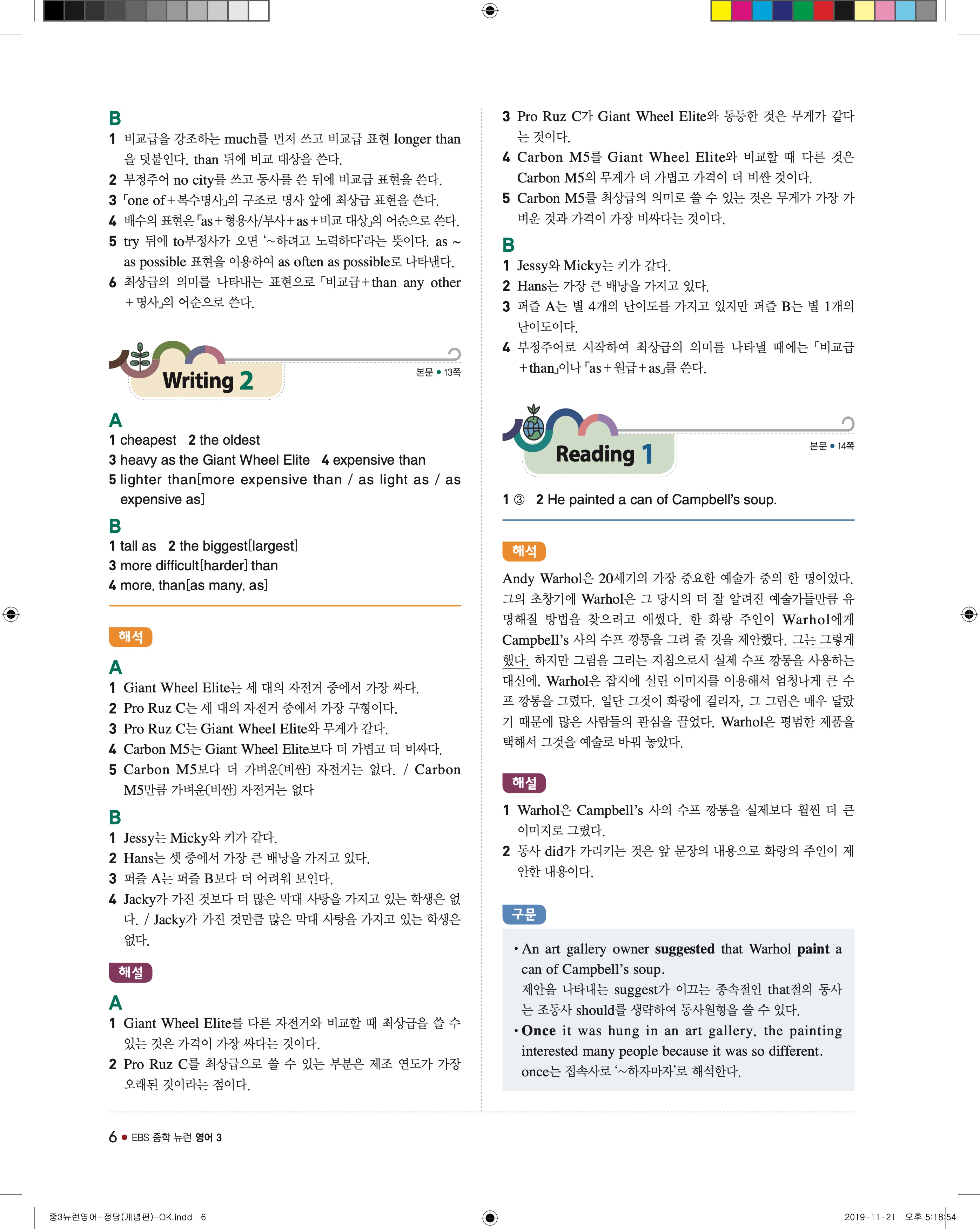 EBS 중학뉴런 영어3 답지 해설 바로보는 사진답지 빠른답지 모바일최적화