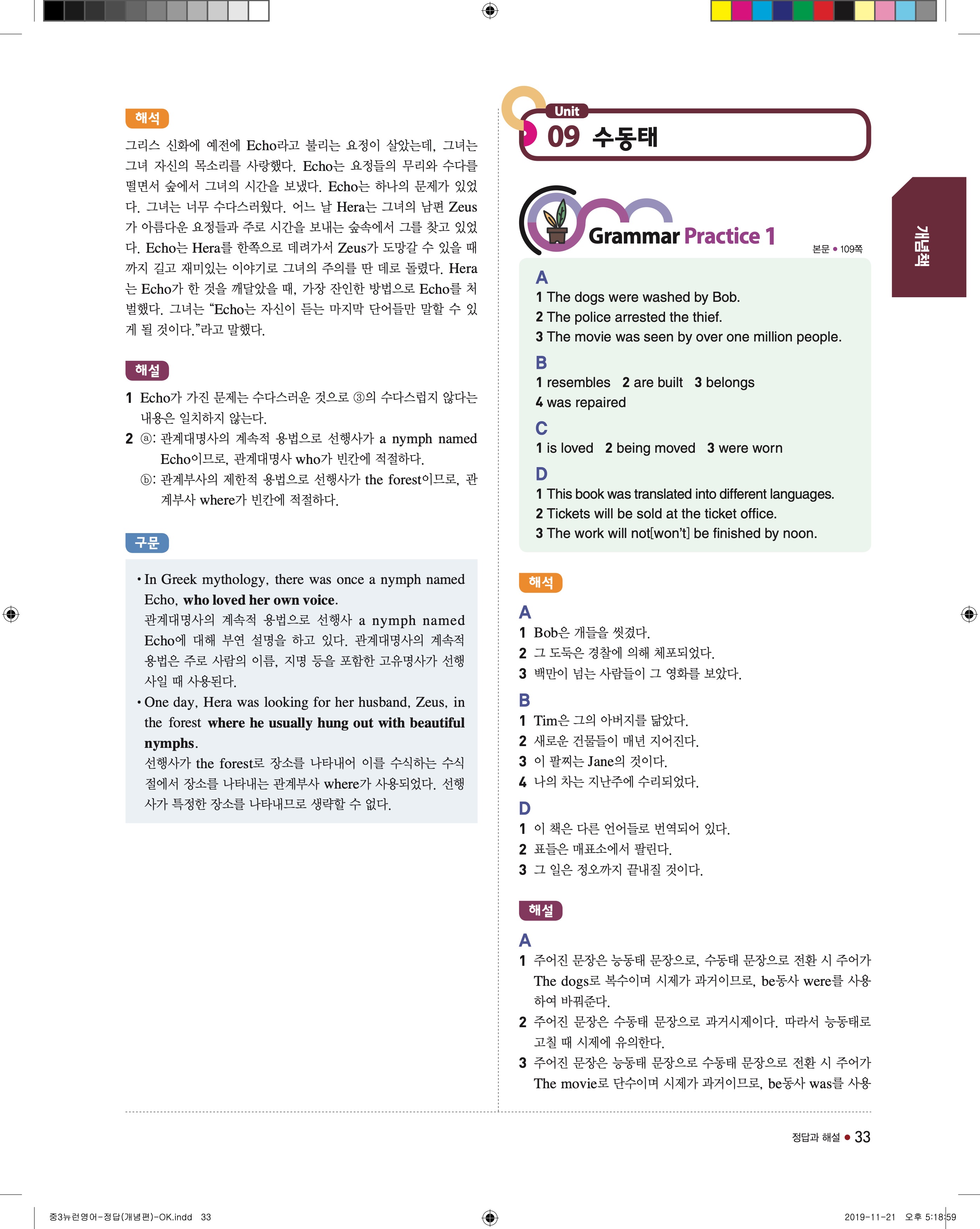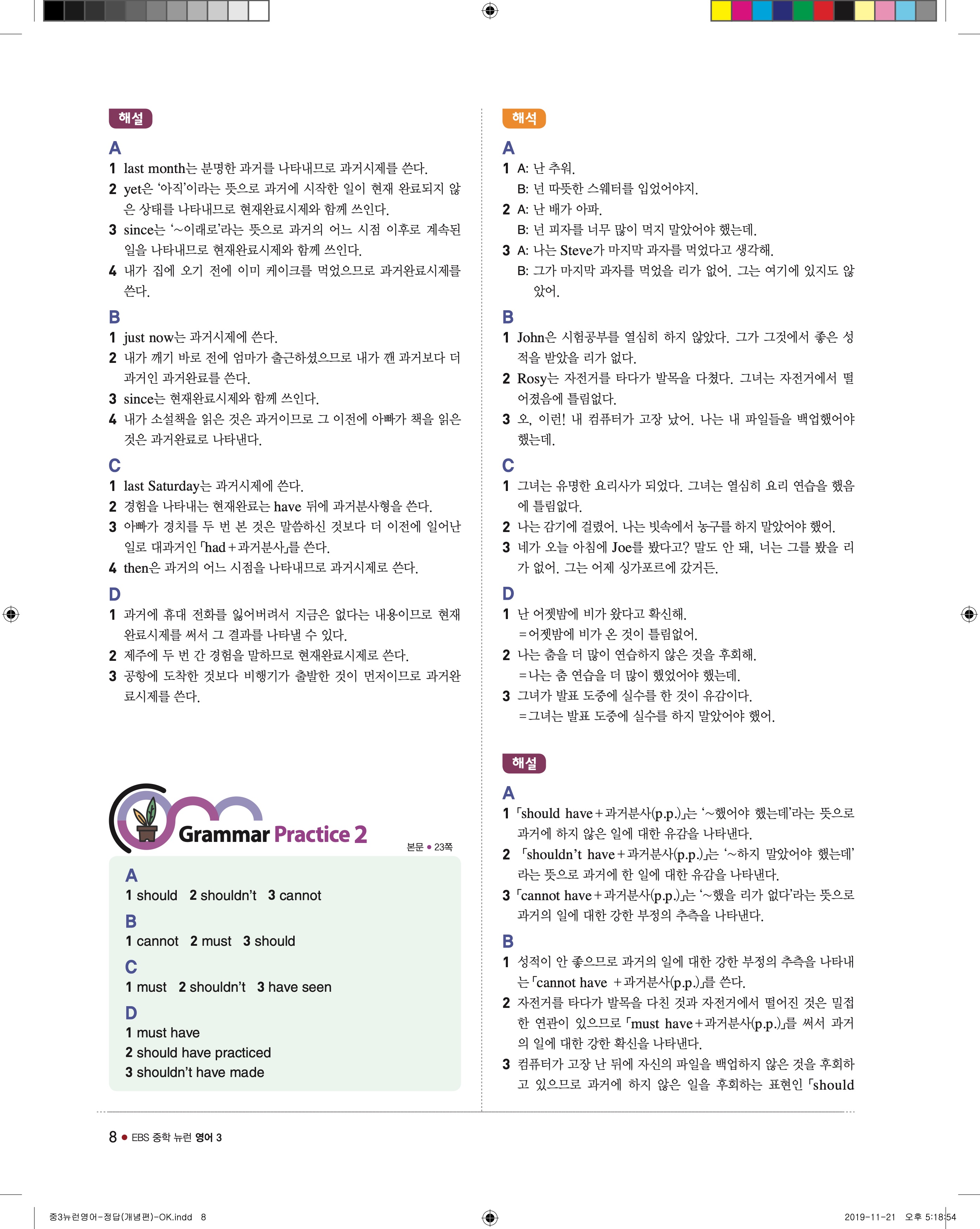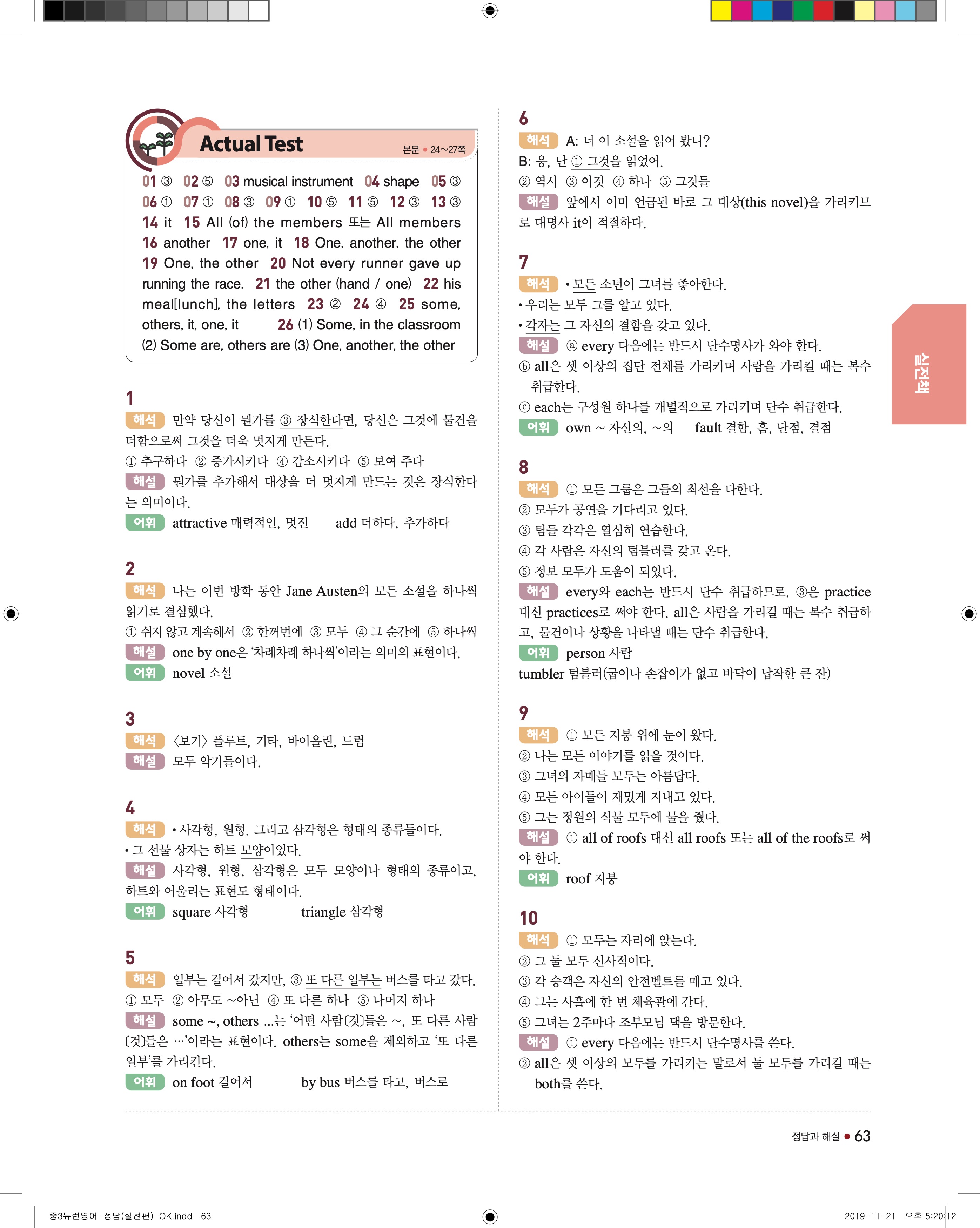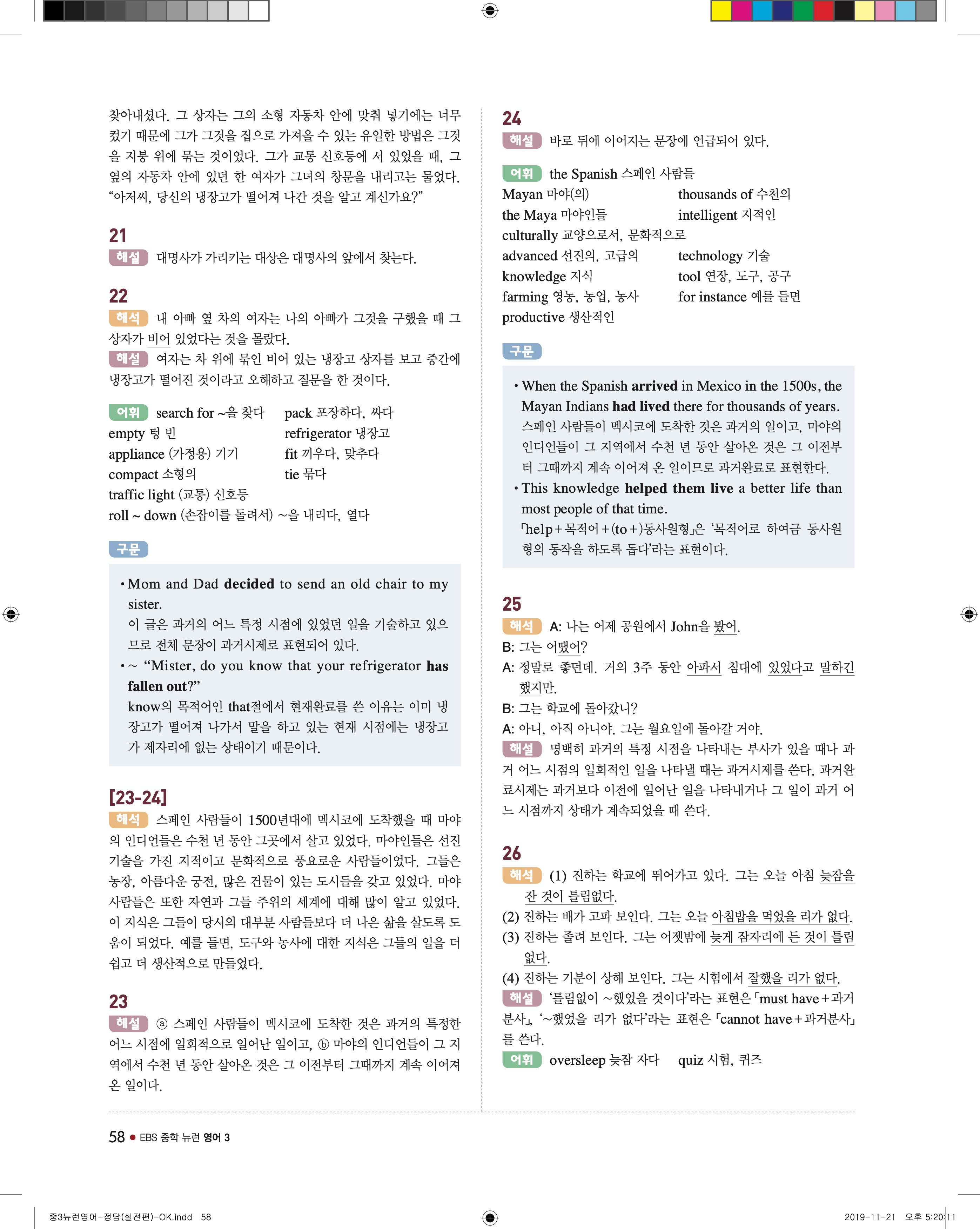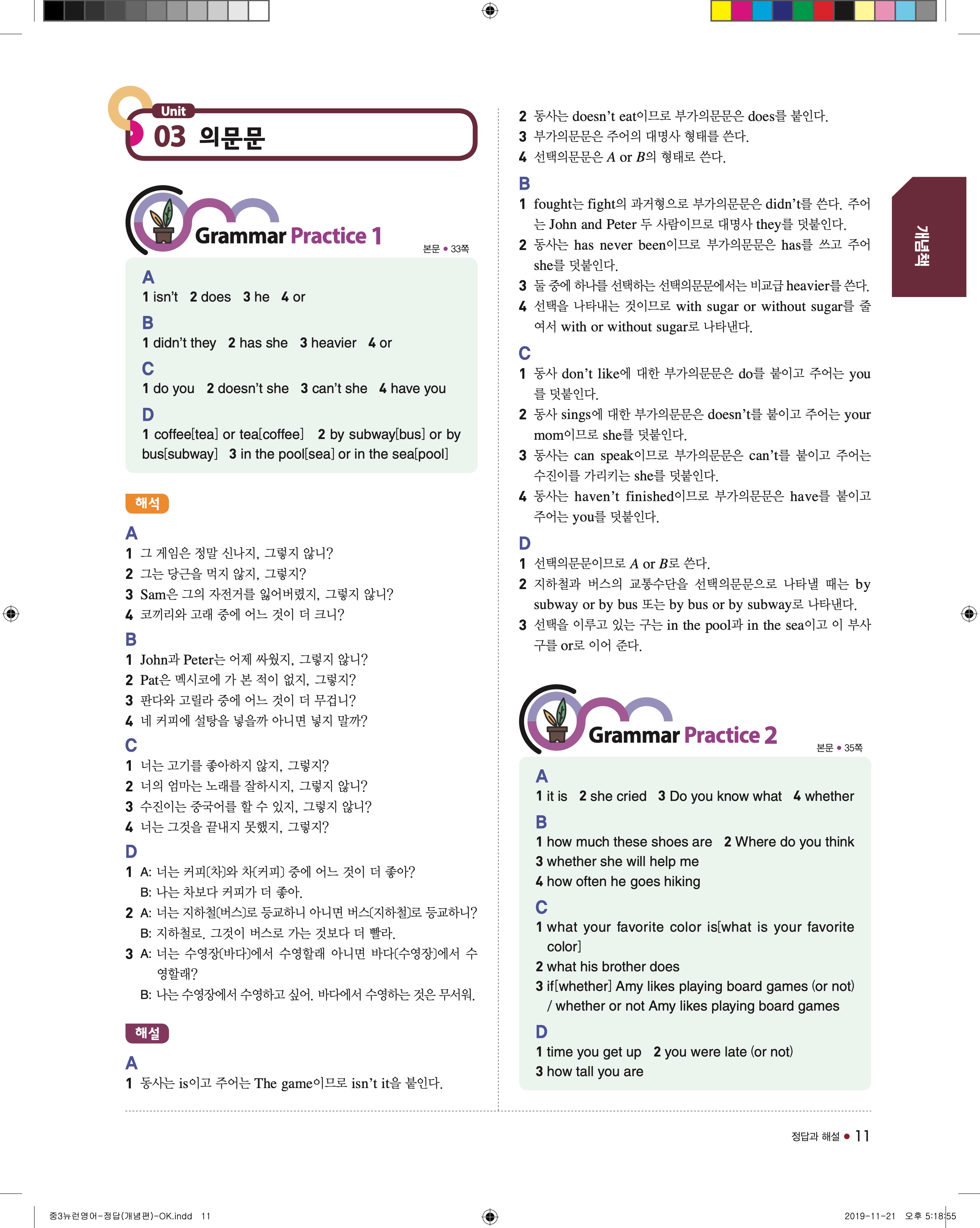 EBS 중학뉴런 영어3 답지 해설 바로보는 사진답지 빠른답지 모바일최적화