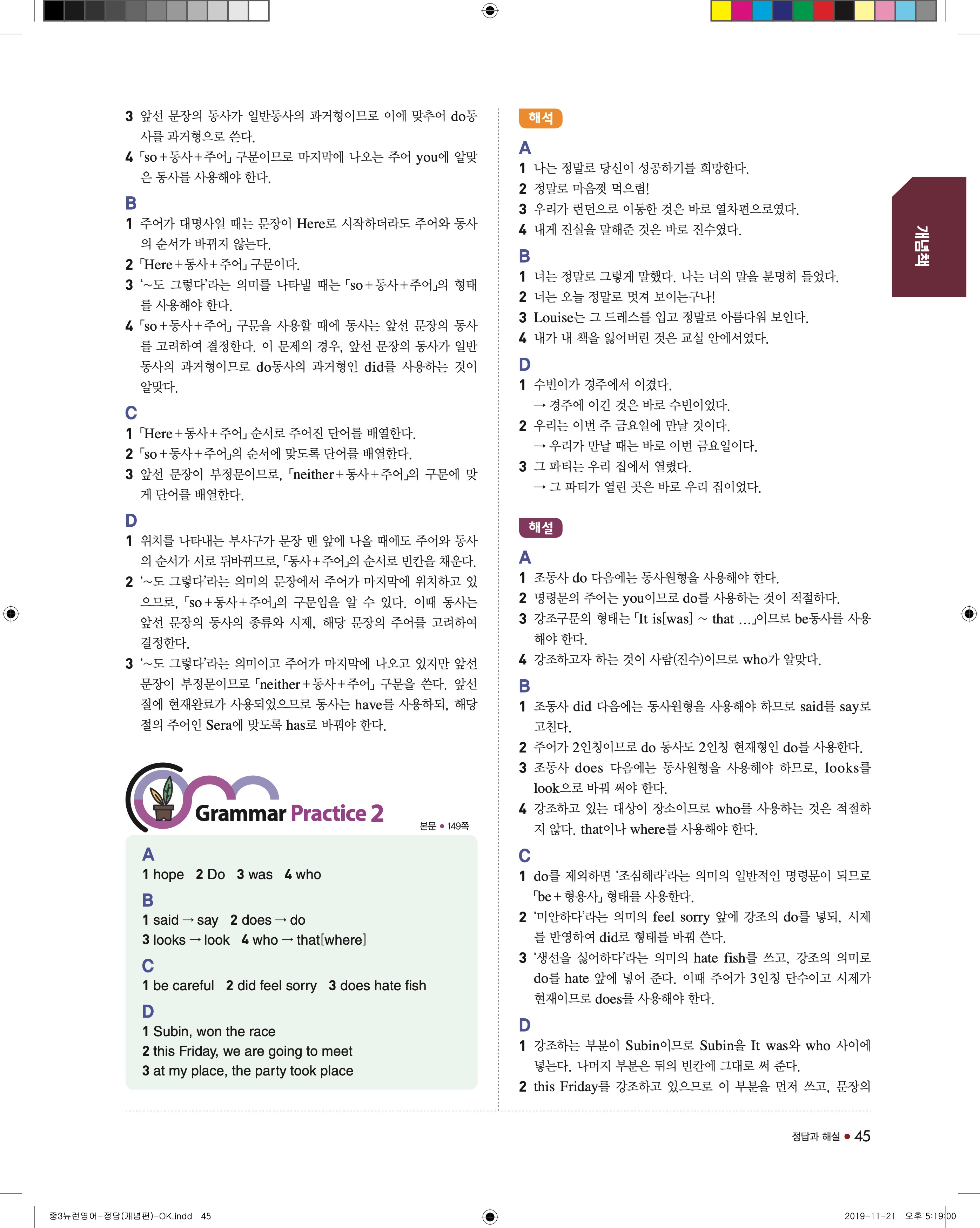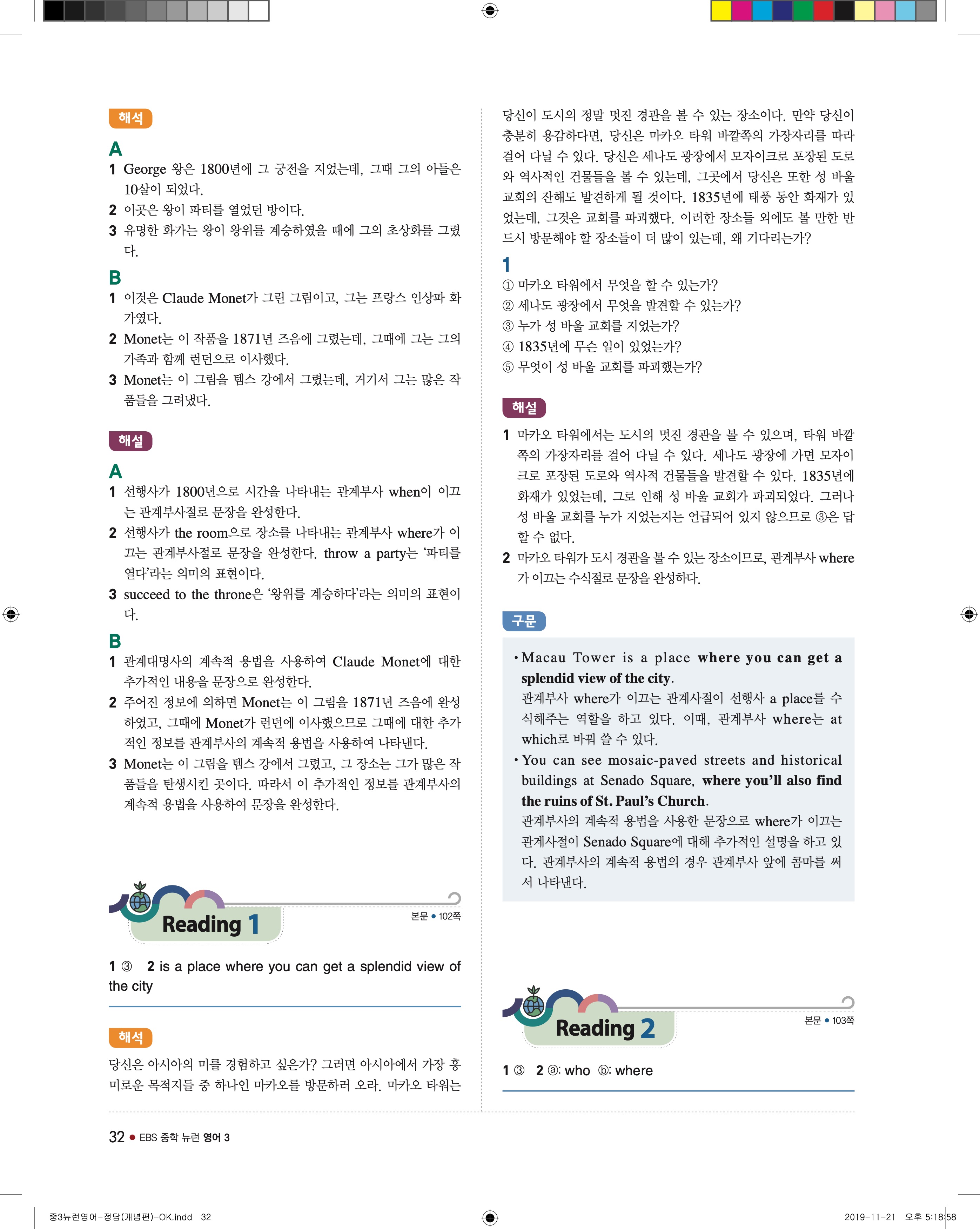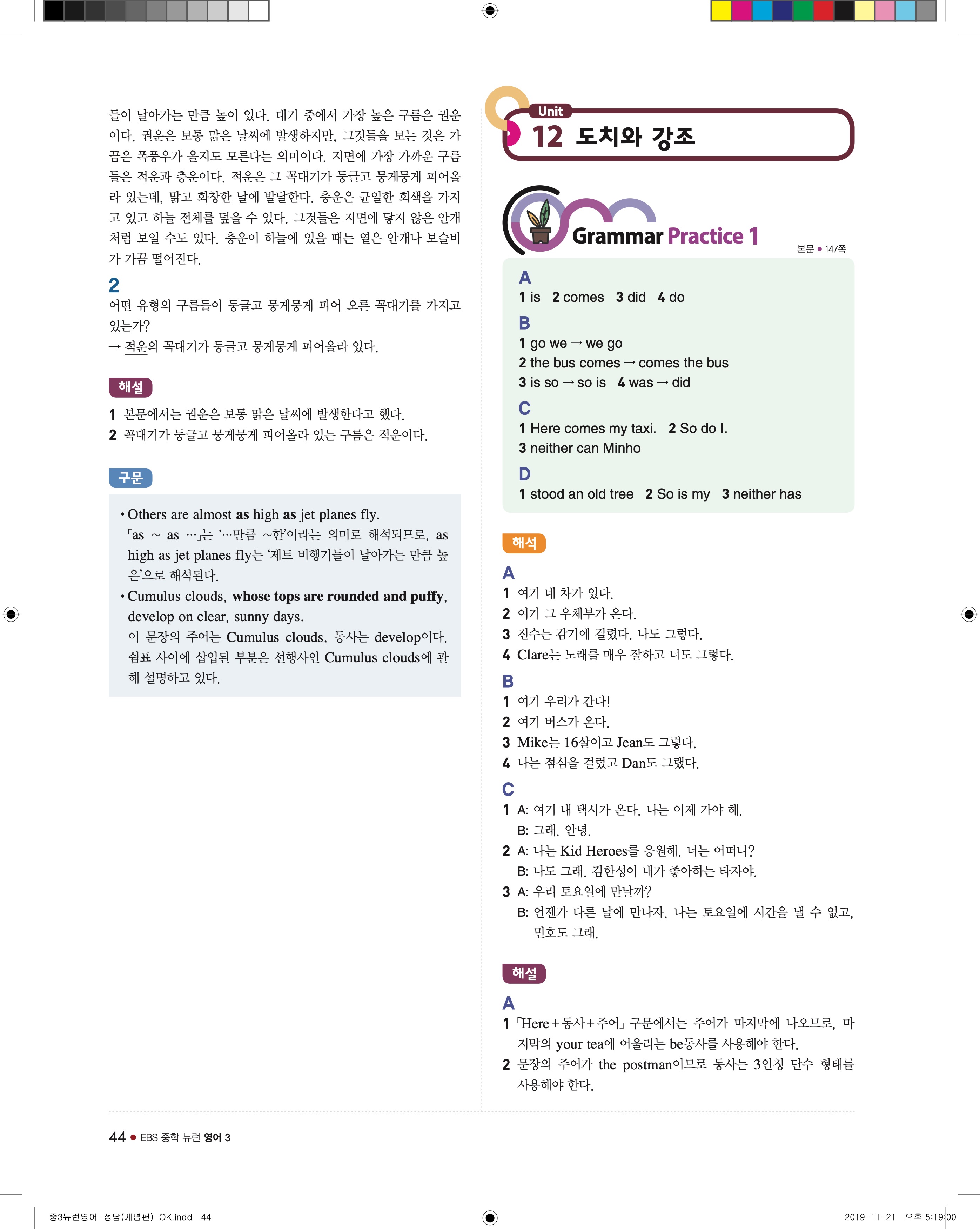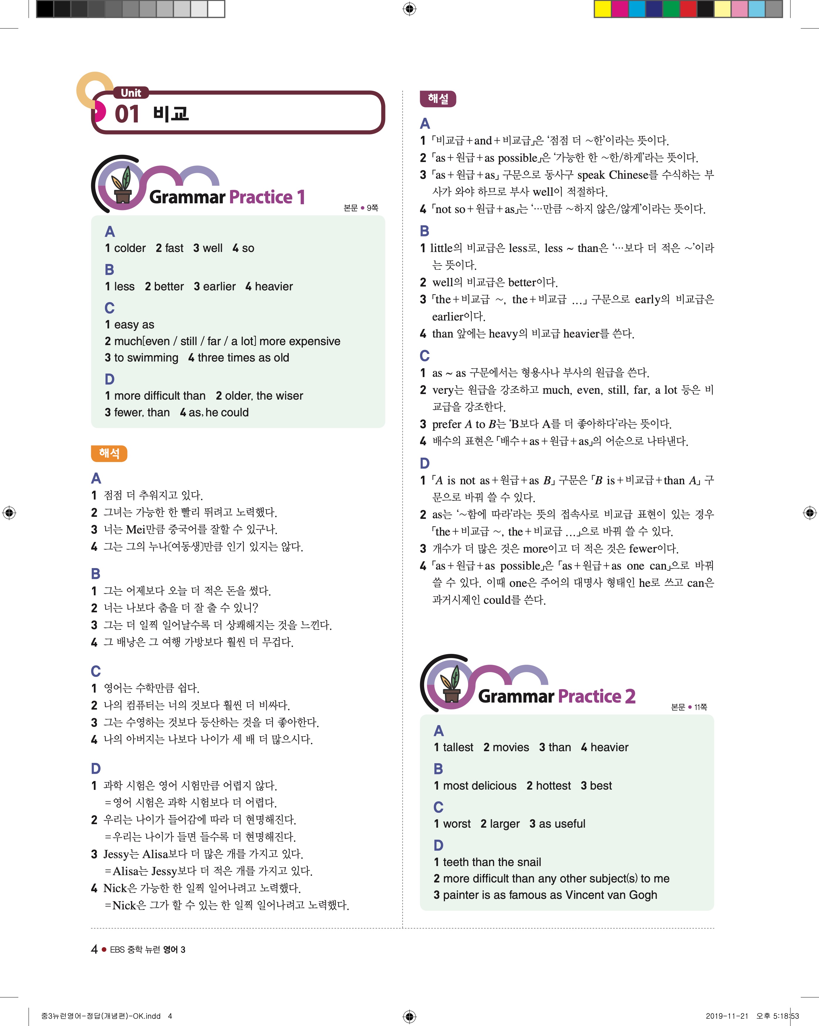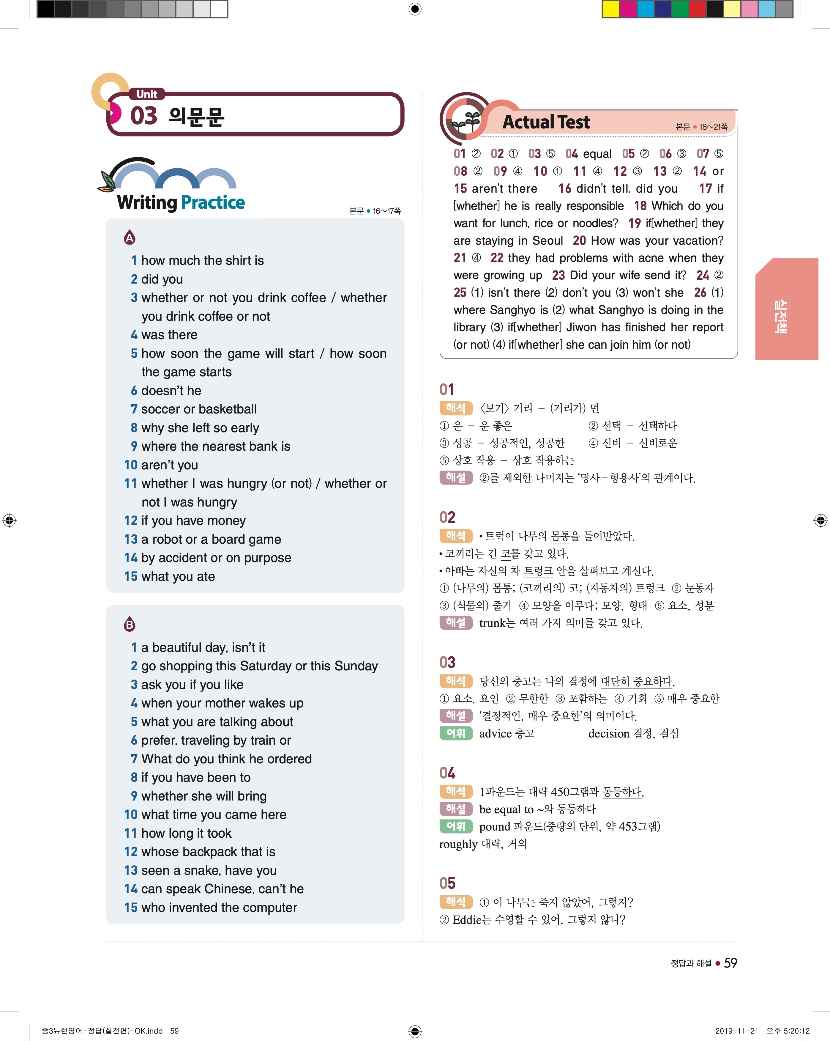 EBS 중학뉴런 영어3 답지 해설 바로보는 사진답지 빠른답지 모바일최적화
