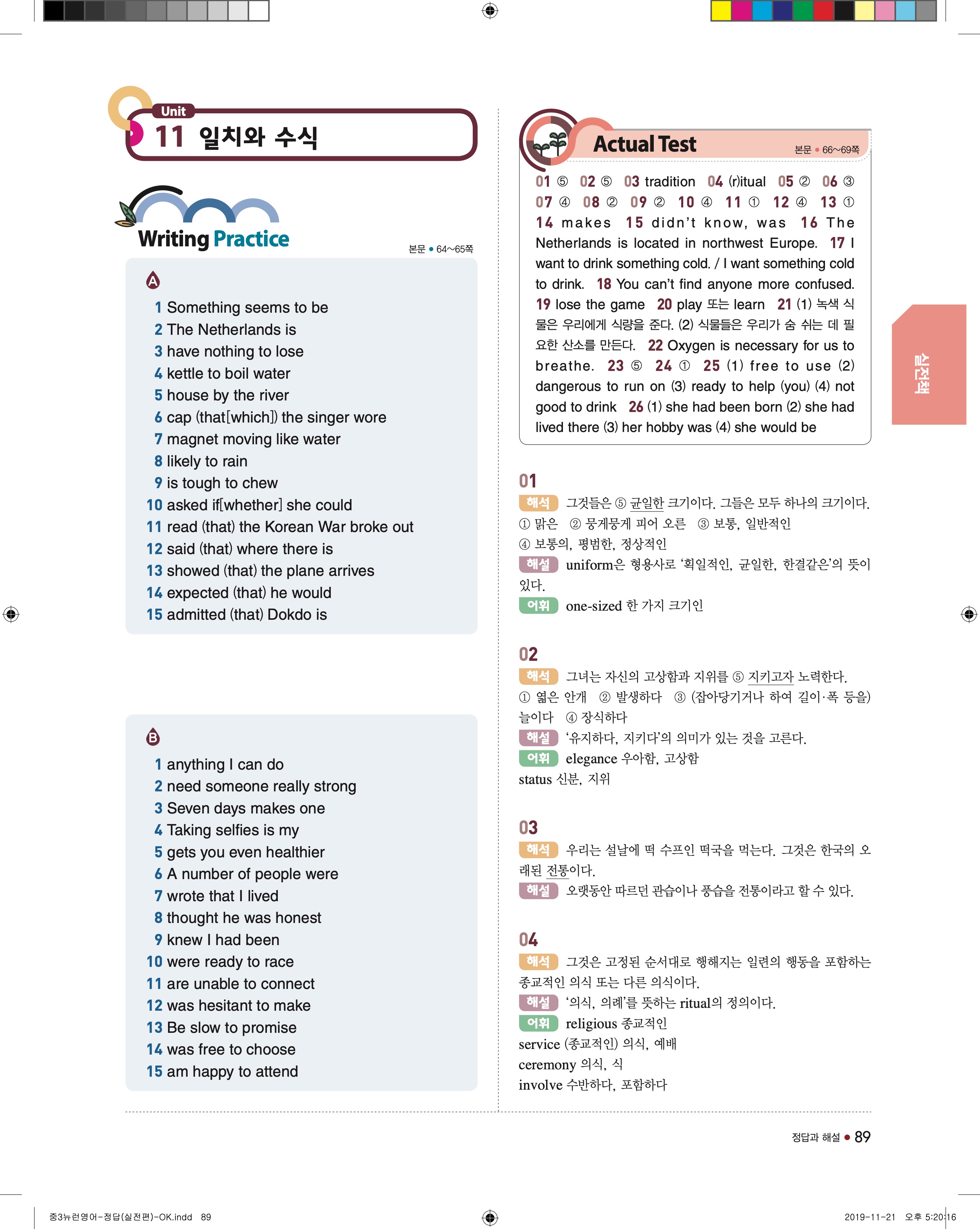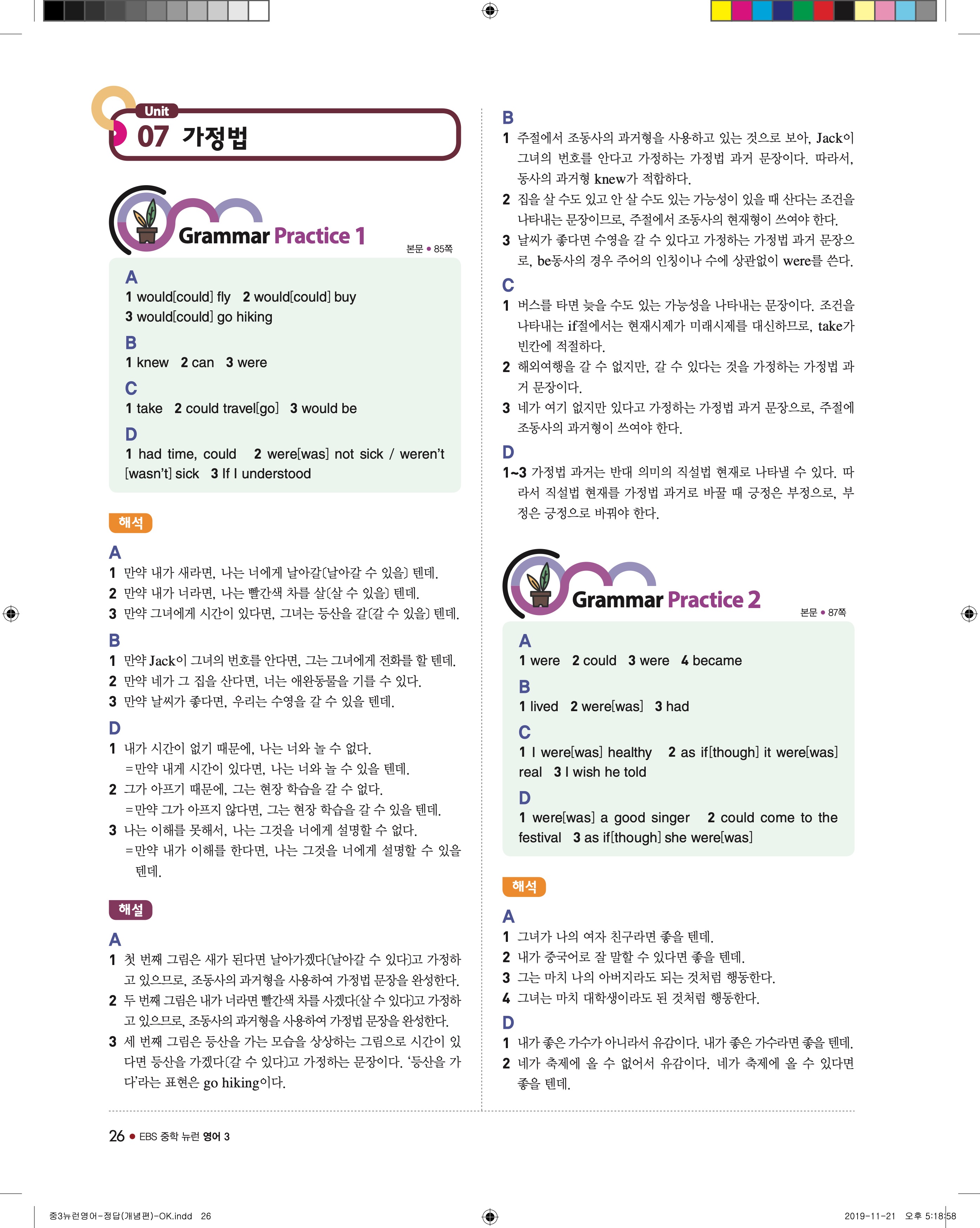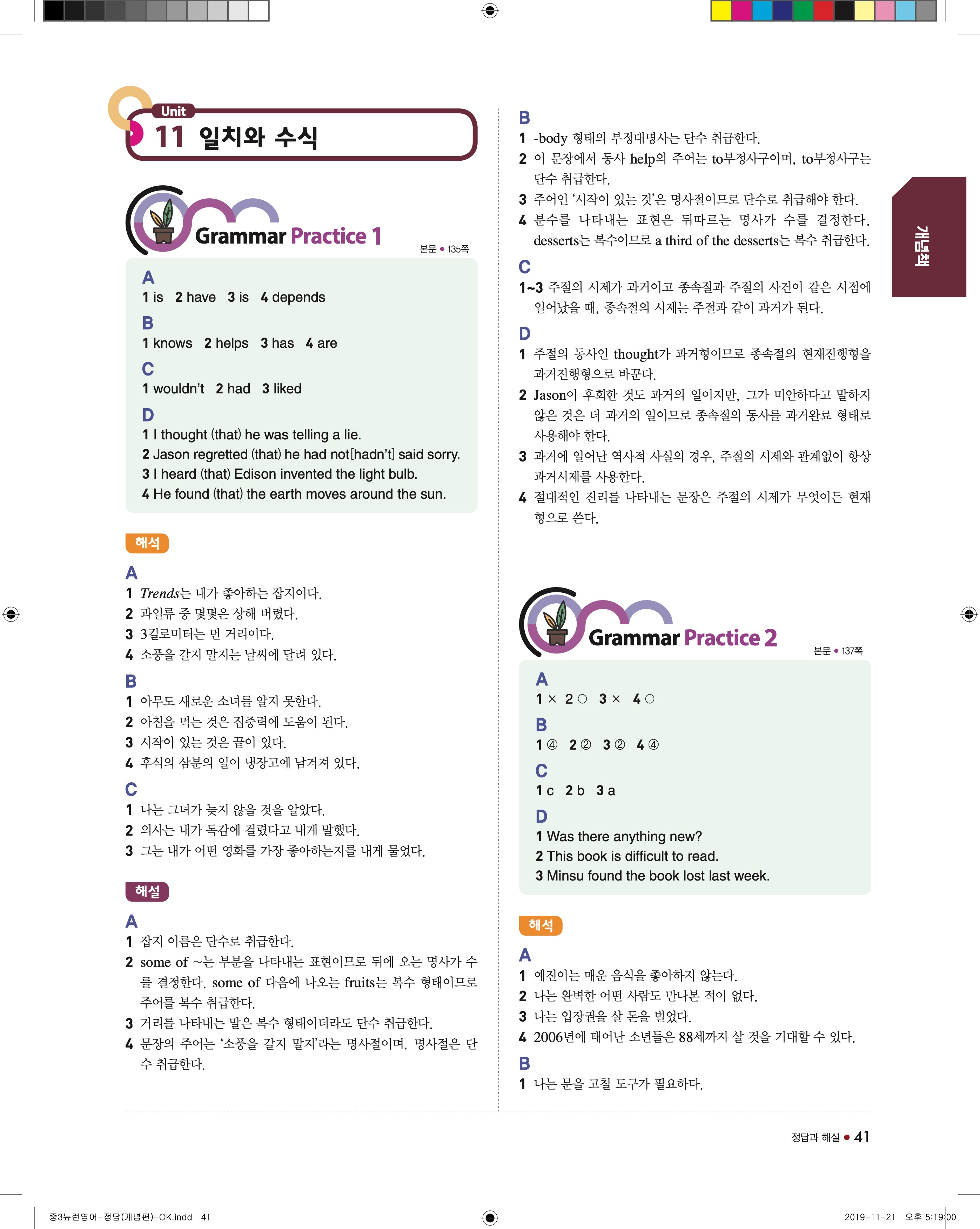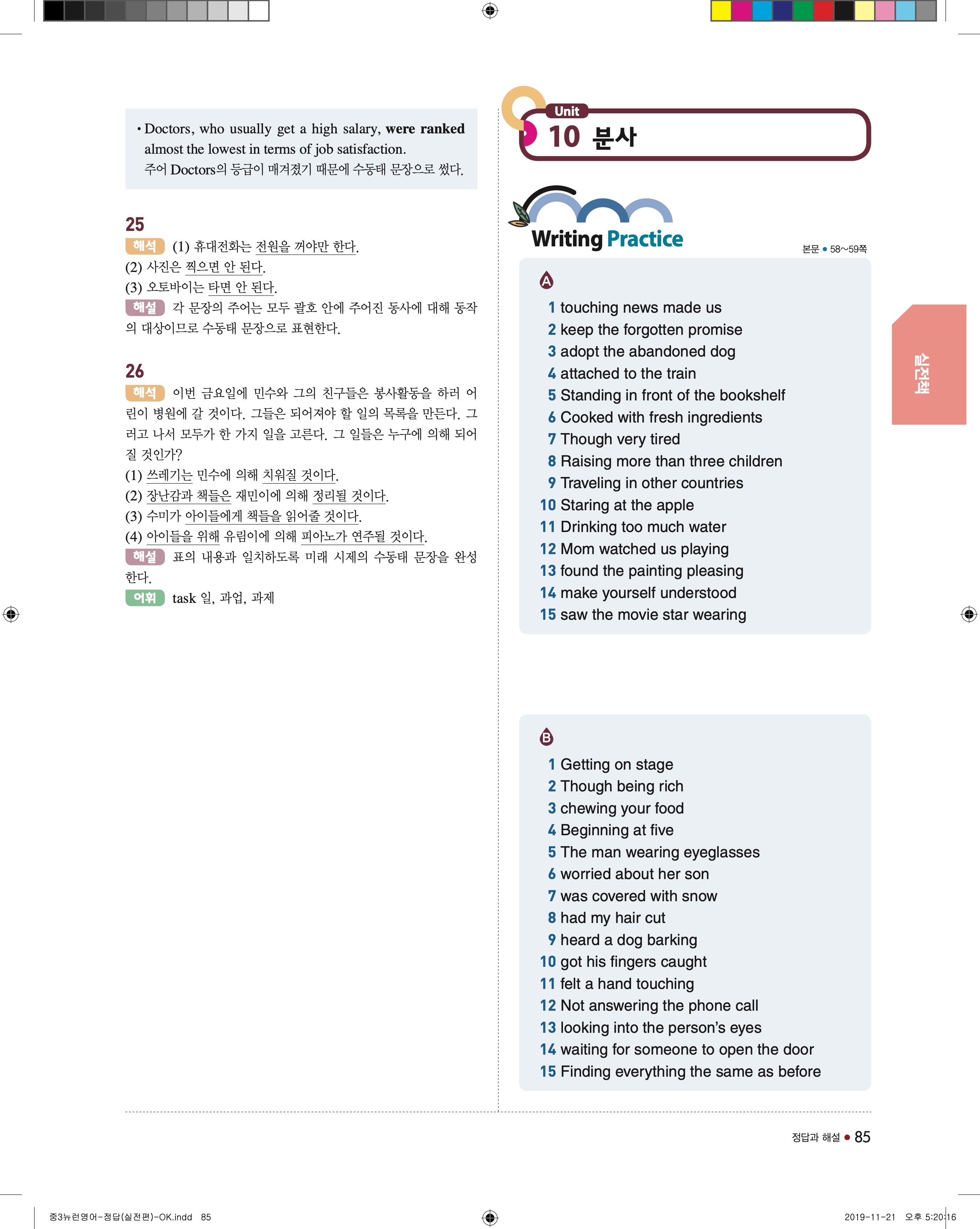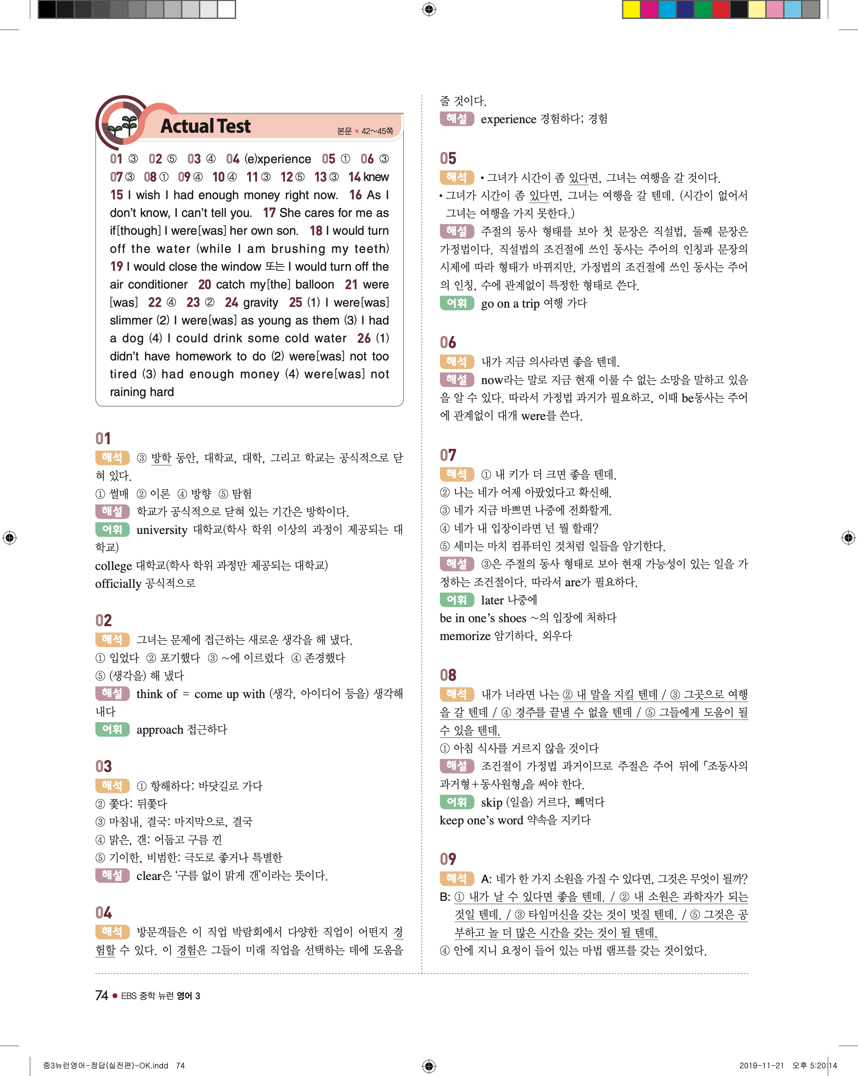 EBS 중학뉴런 영어3 답지 해설 바로보는 사진답지 빠른답지 모바일최적화