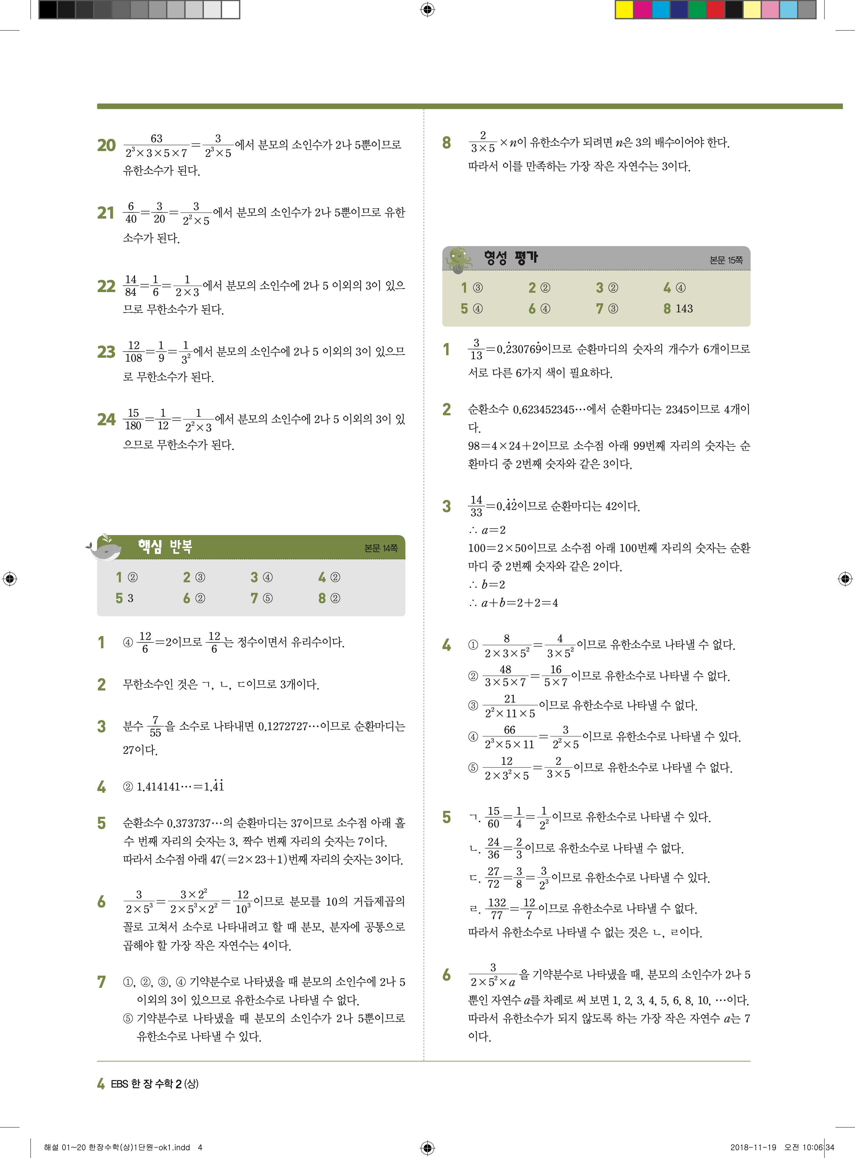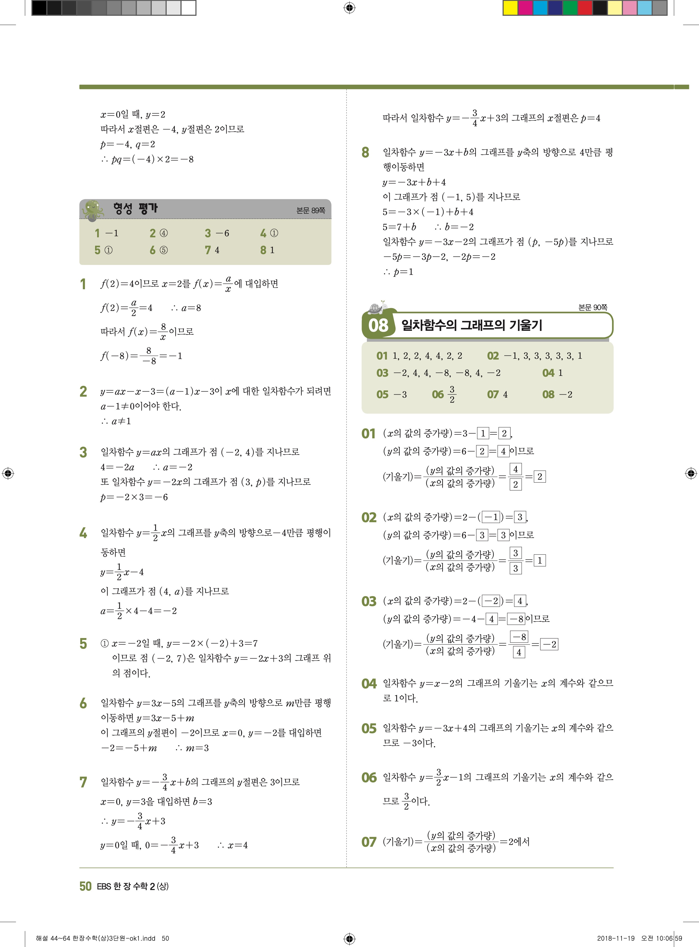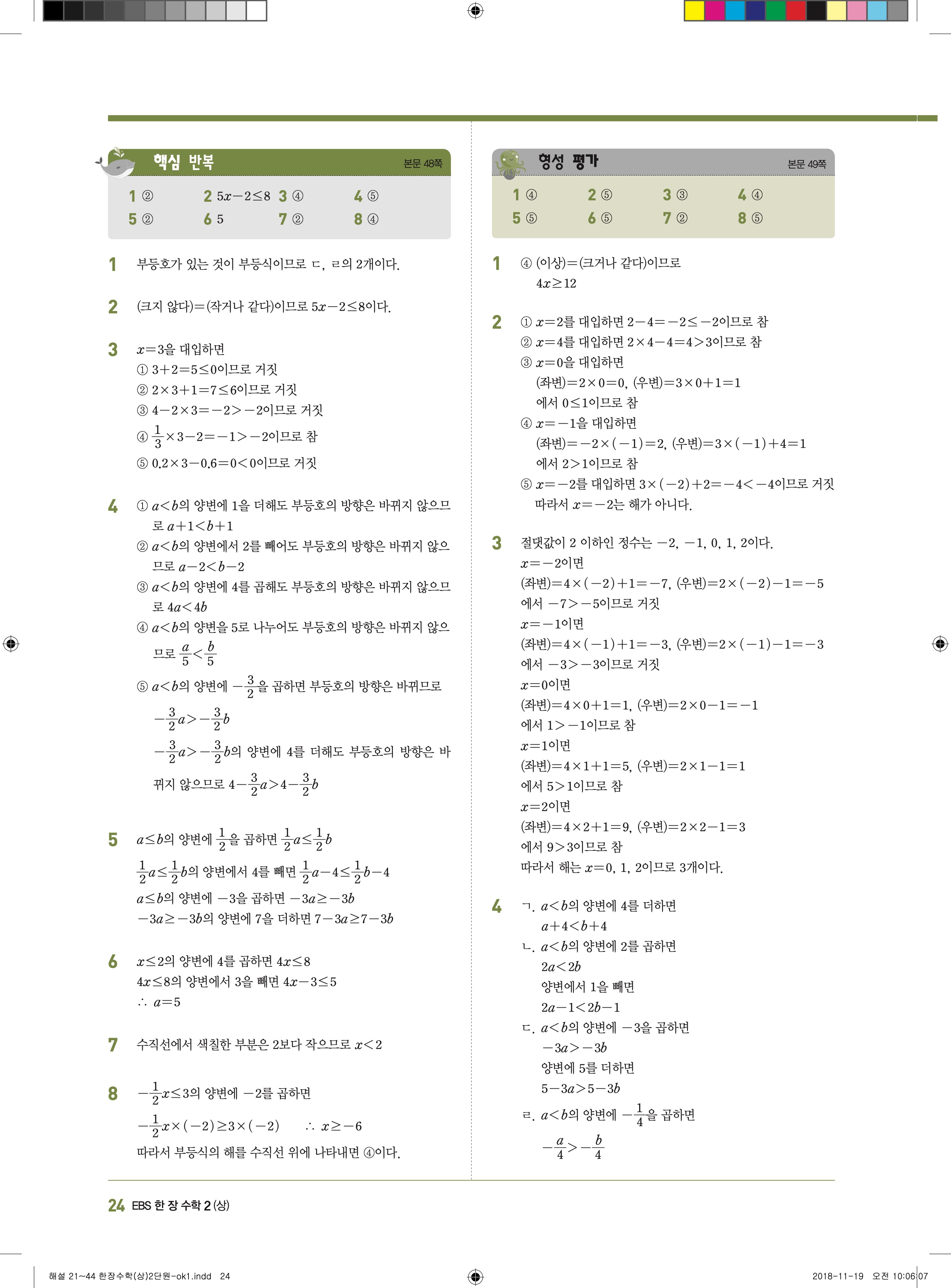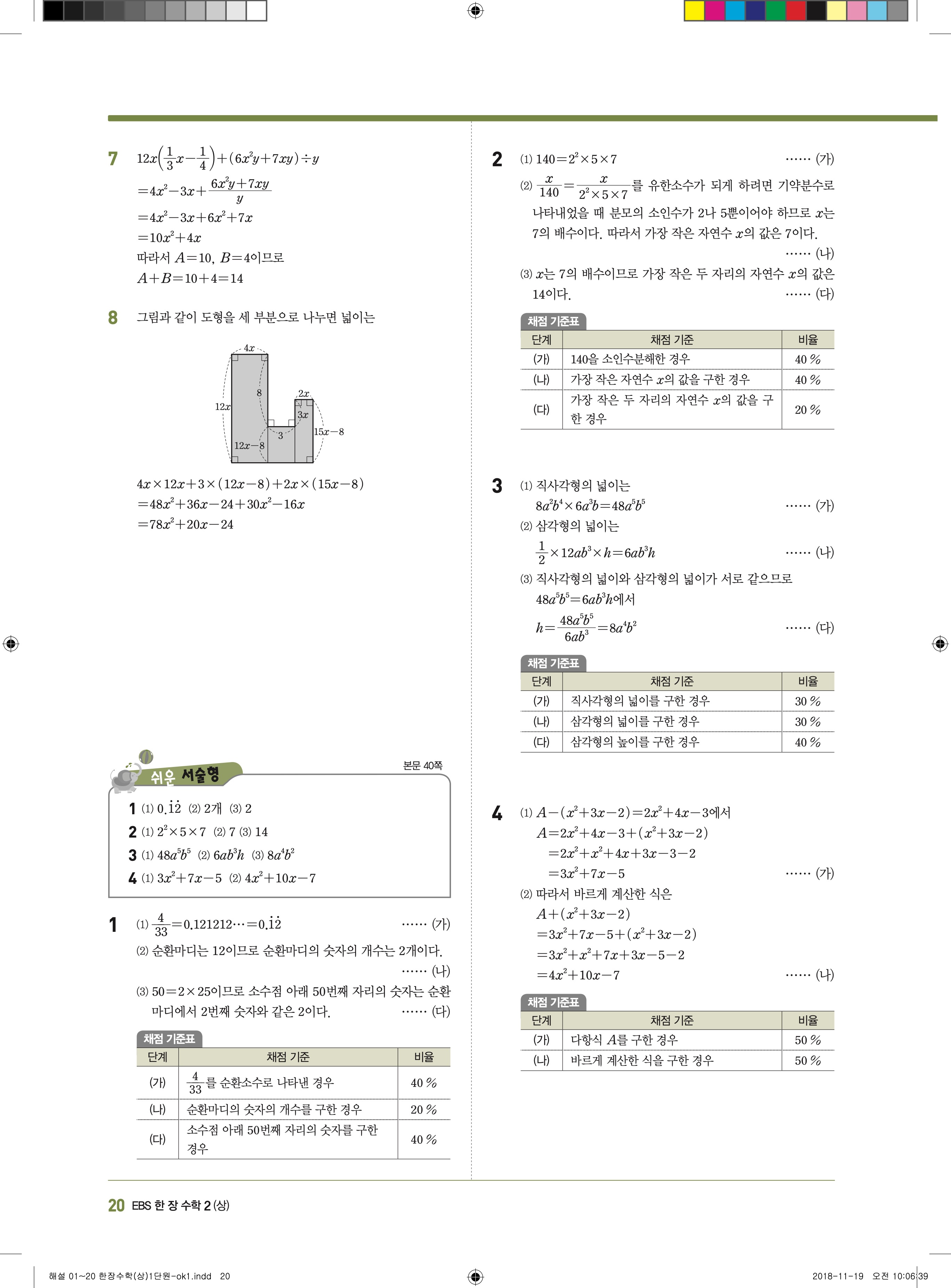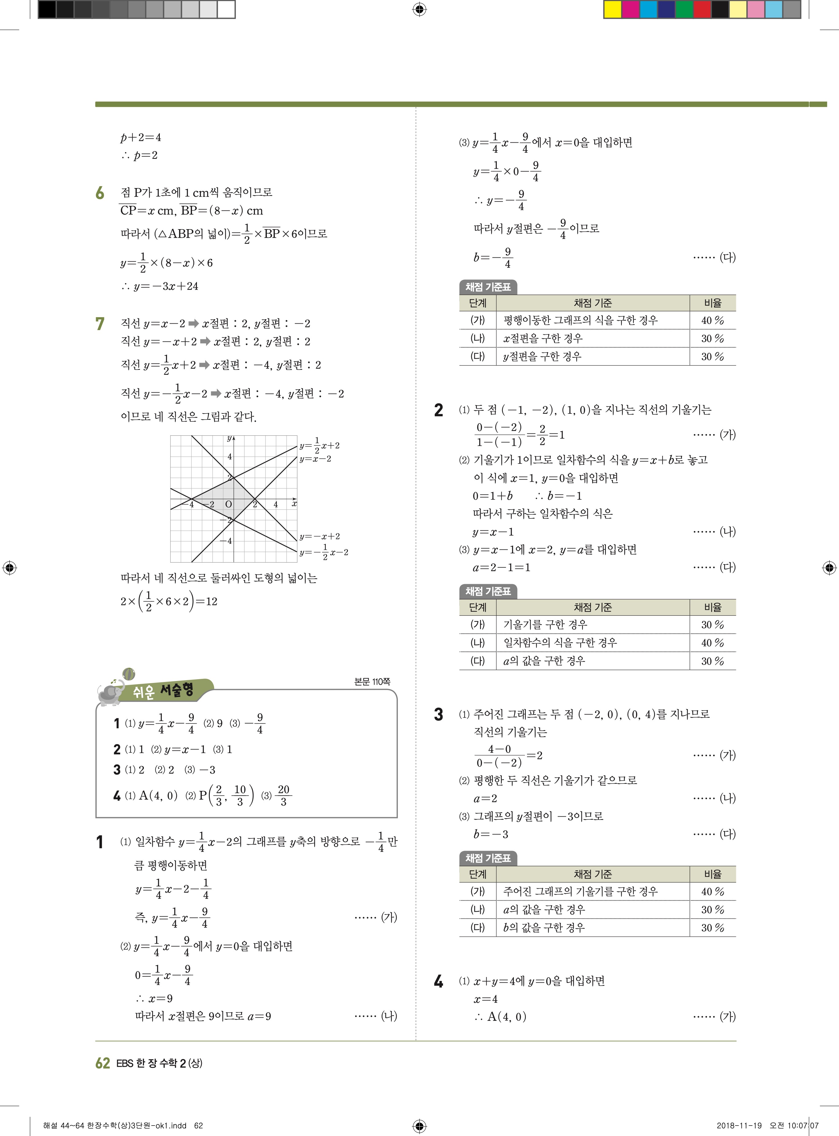 EBS 한장수학 중2상 2-1 답지 해설 바로보는 사진답지 빠른답지 모바일최적화