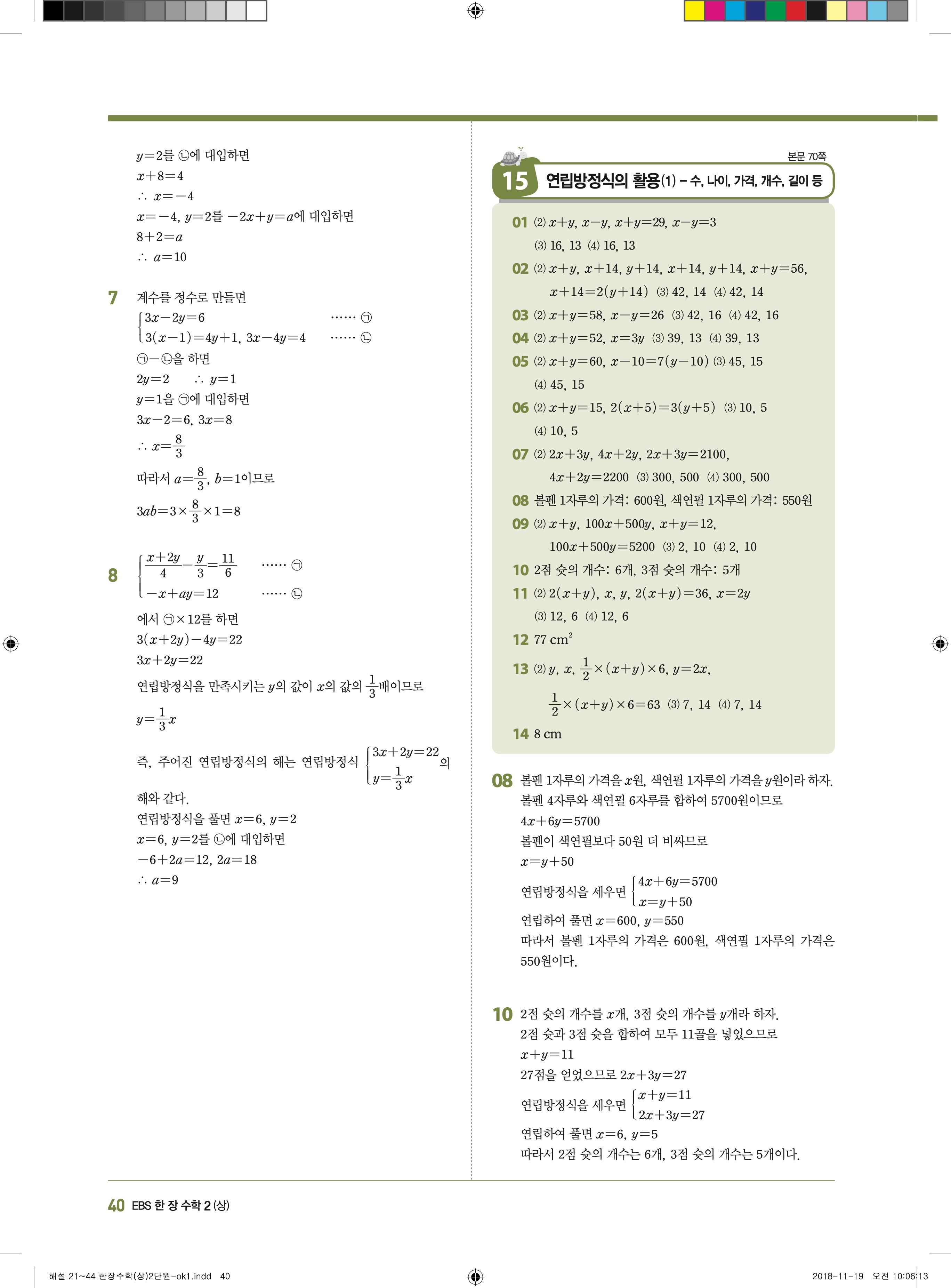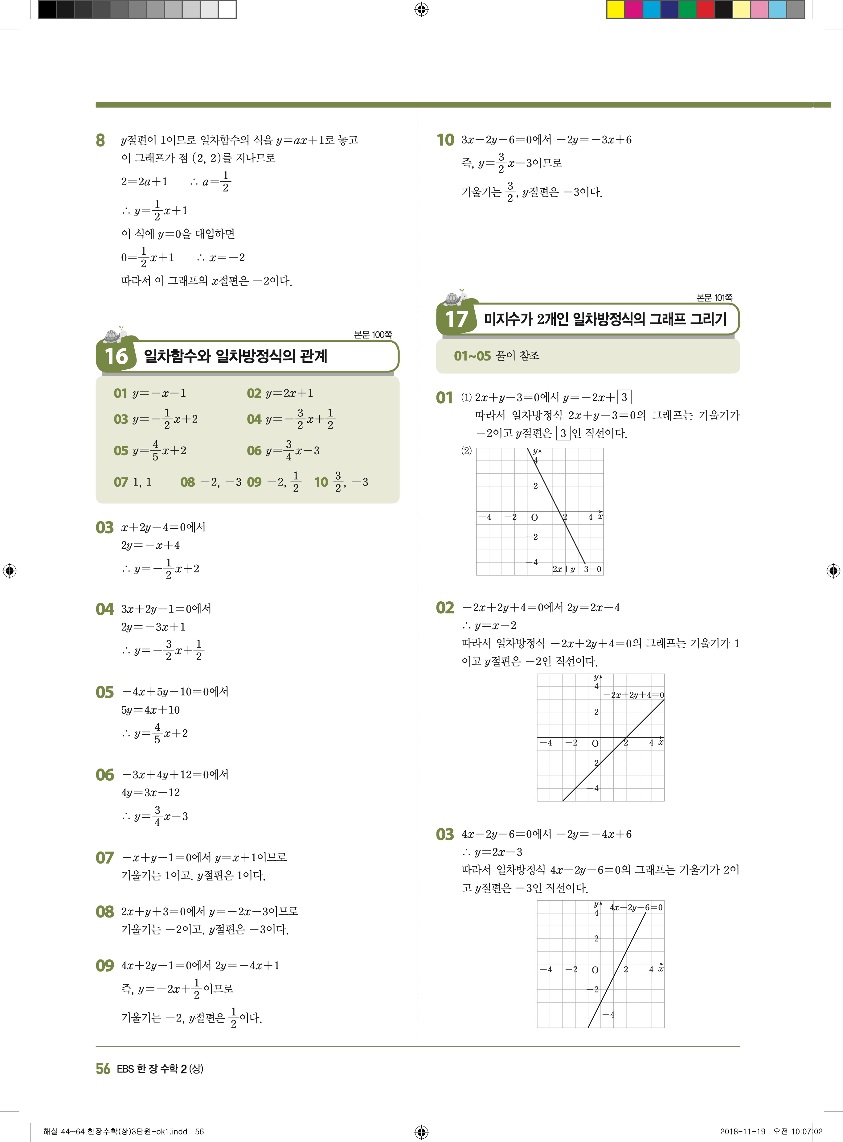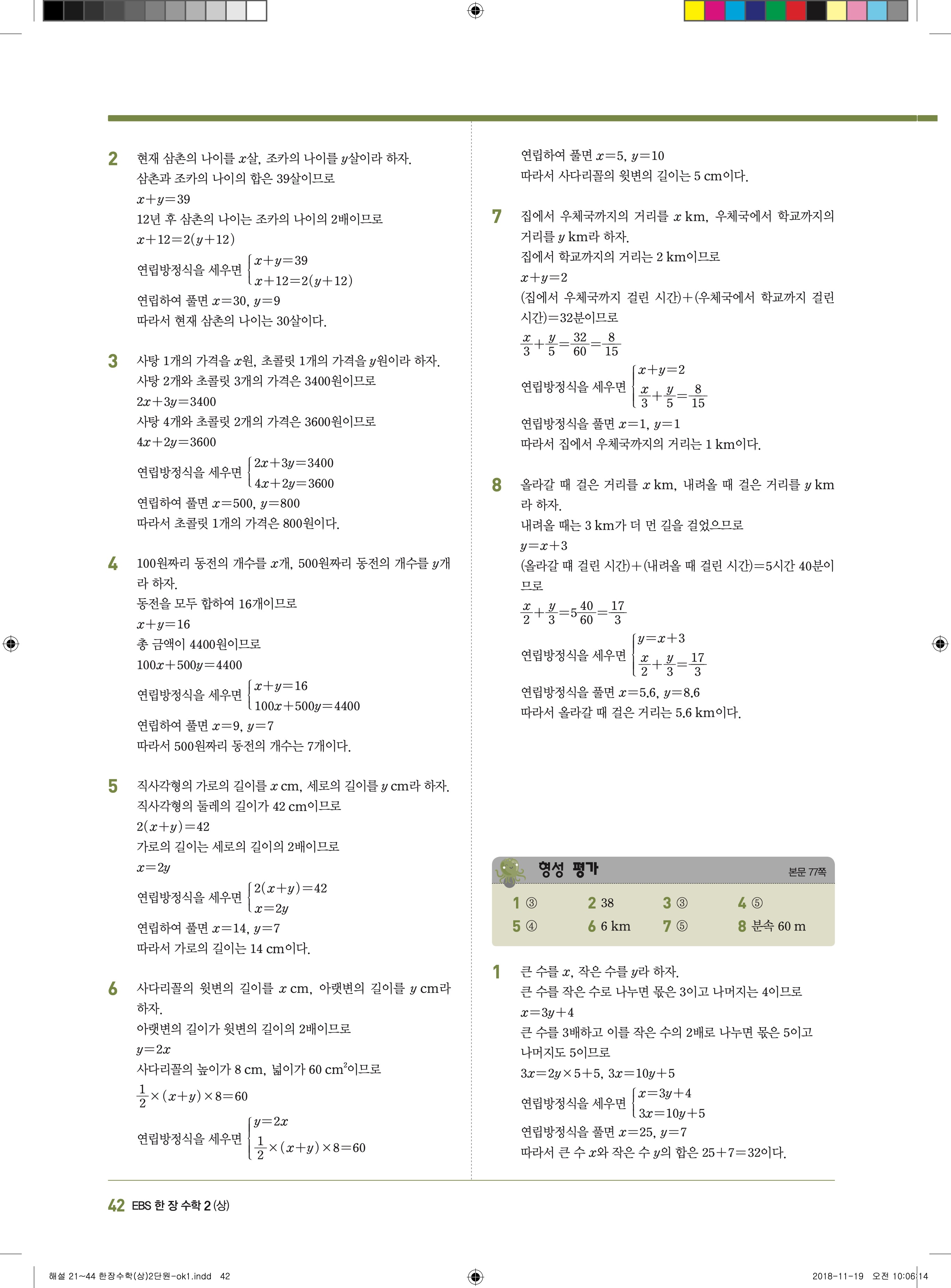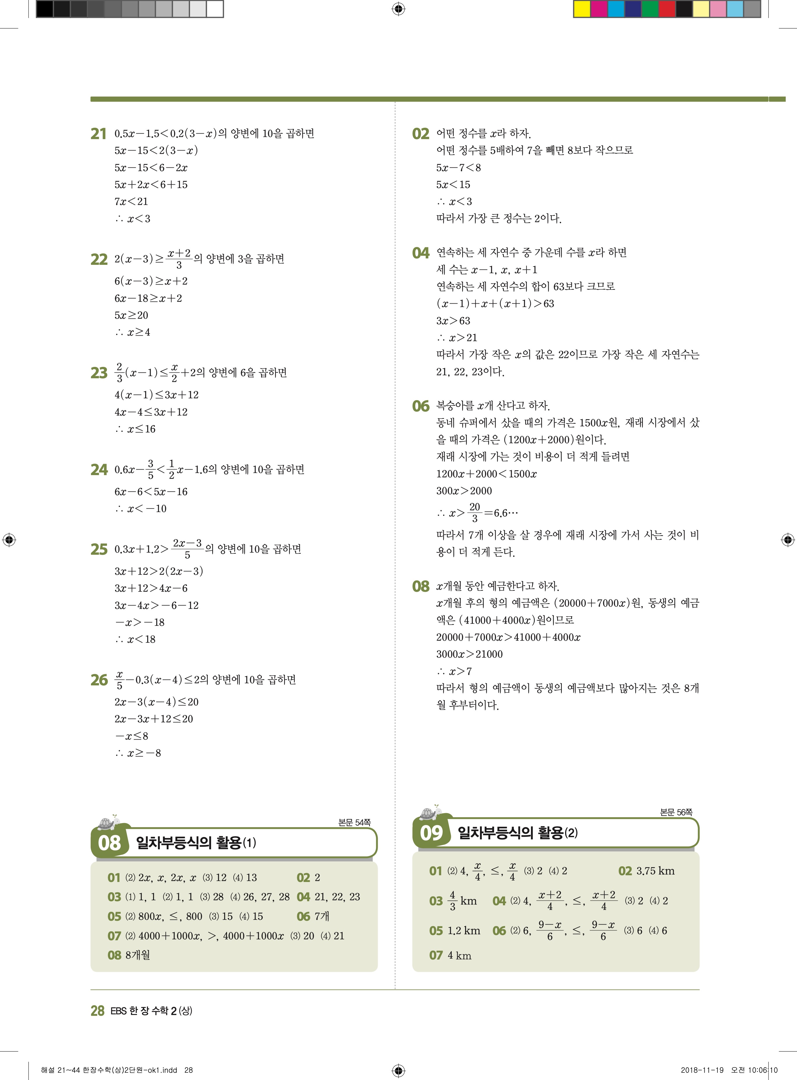 EBS 한장수학 중2상 2-1 답지 해설 바로보는 사진답지 빠른답지 모바일최적화