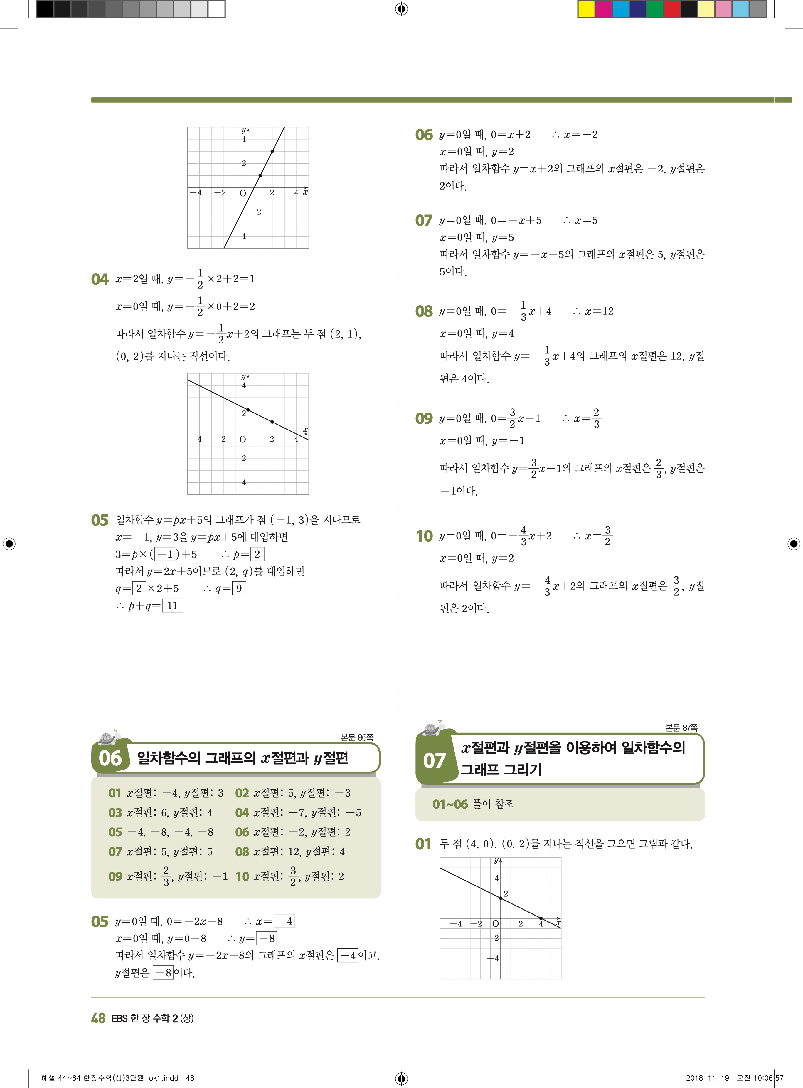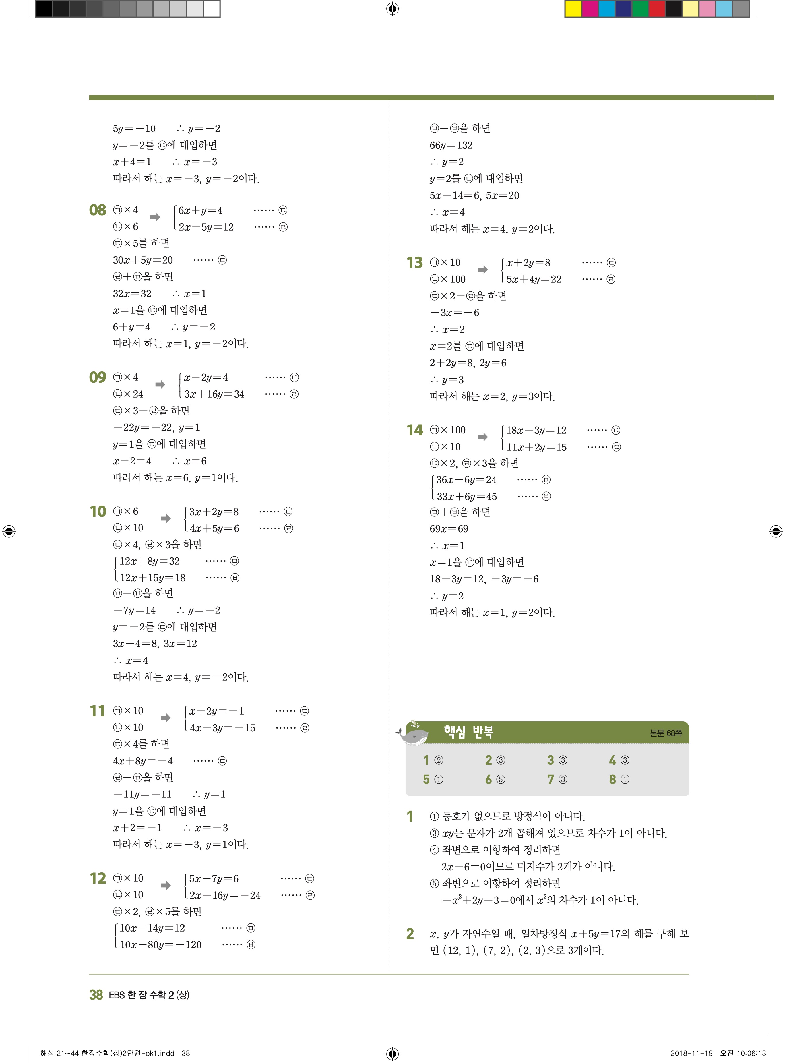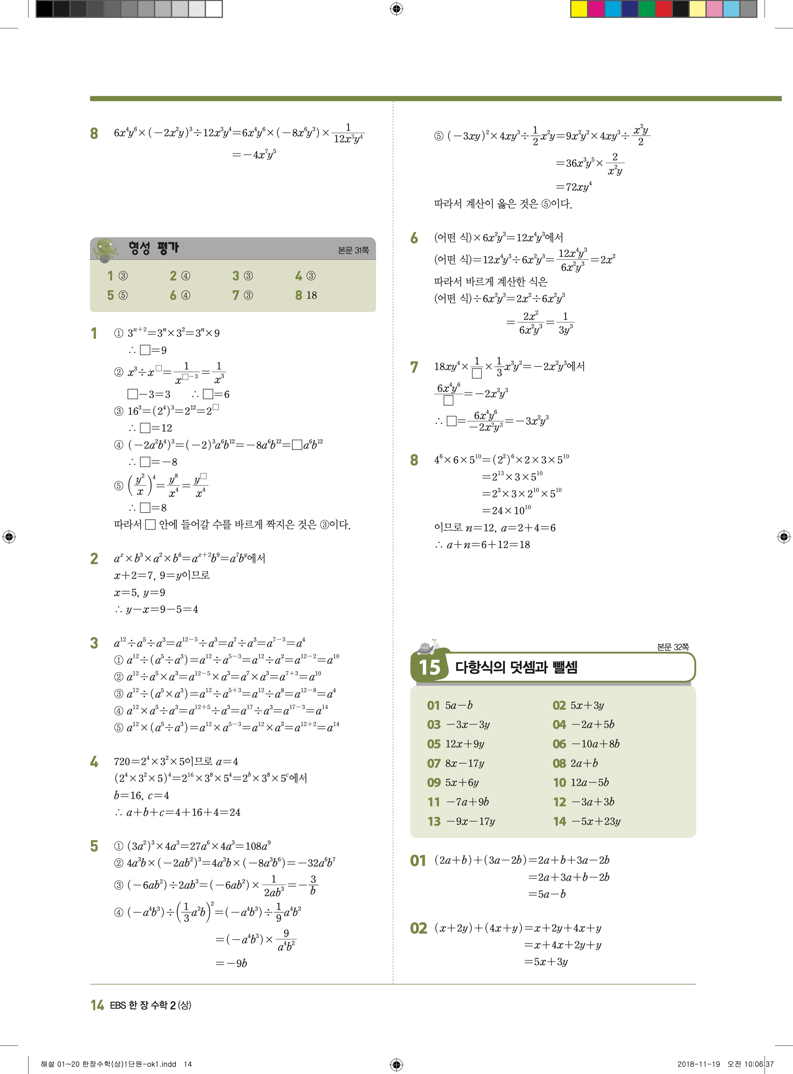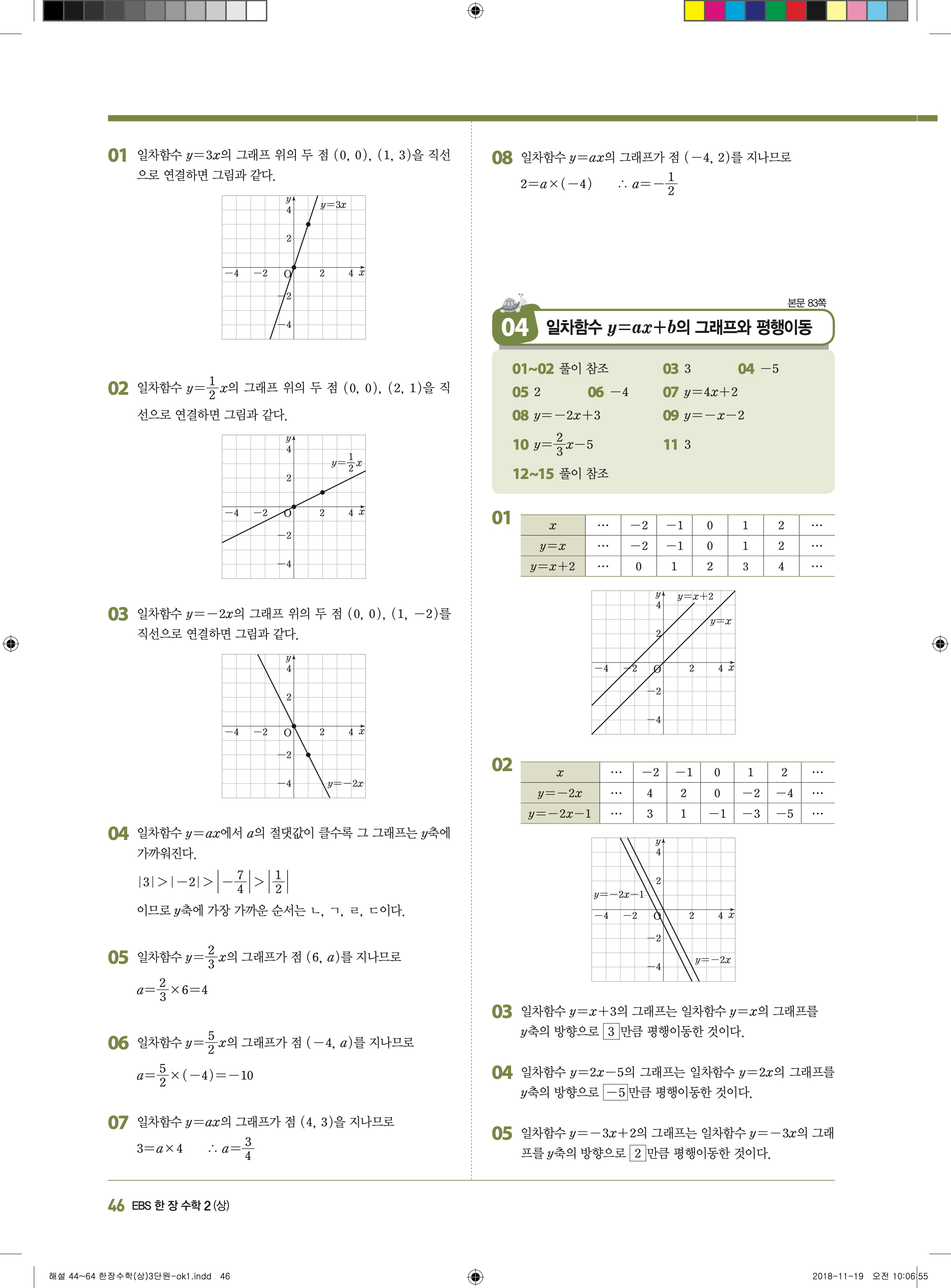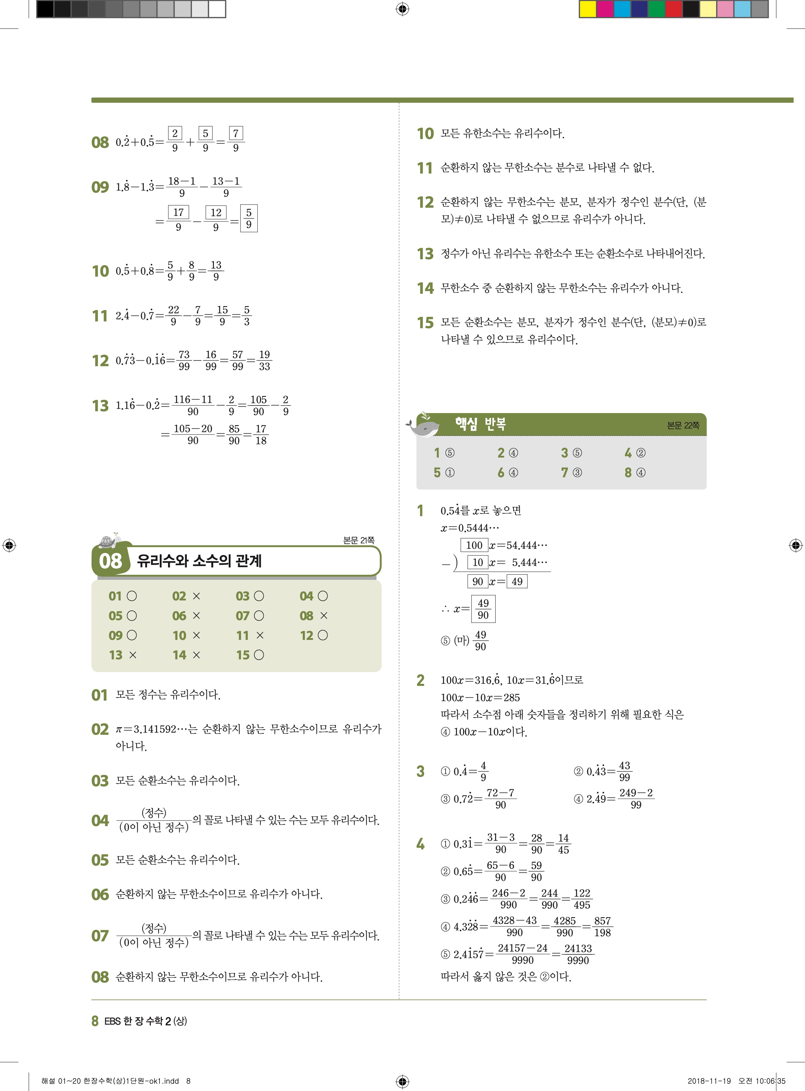 EBS 한장수학 중2상 2-1 답지 해설 바로보는 사진답지 빠른답지 모바일최적화