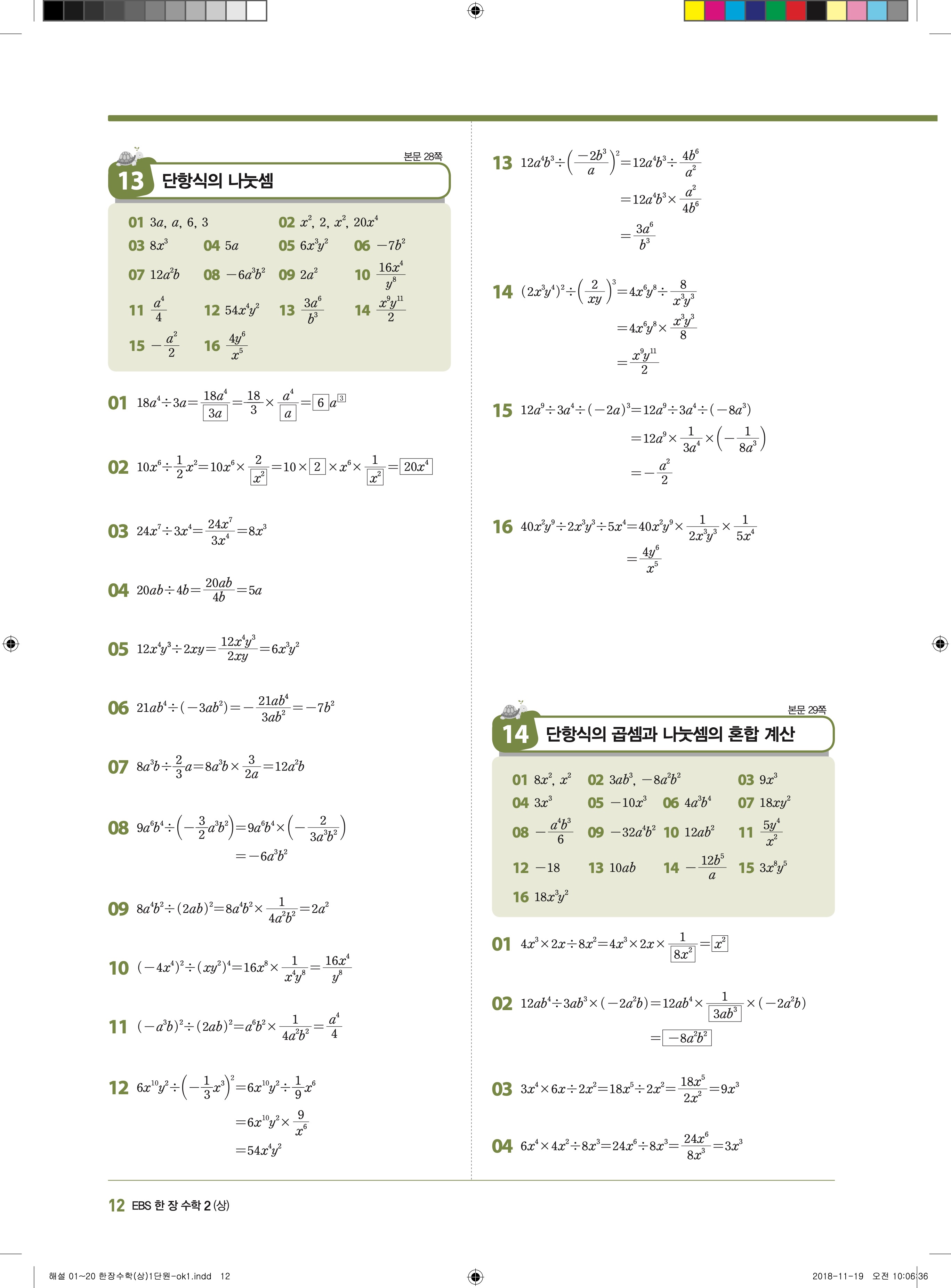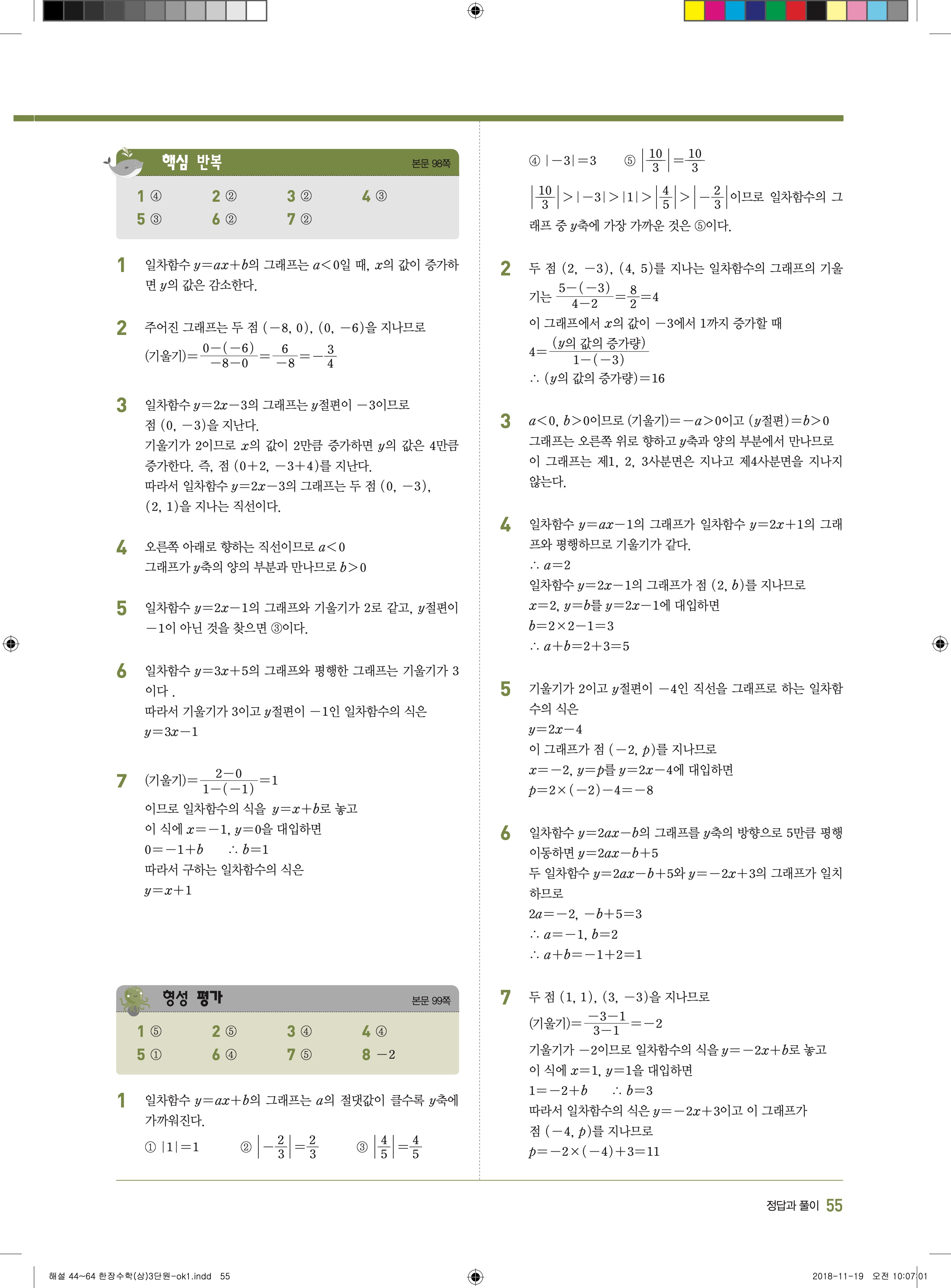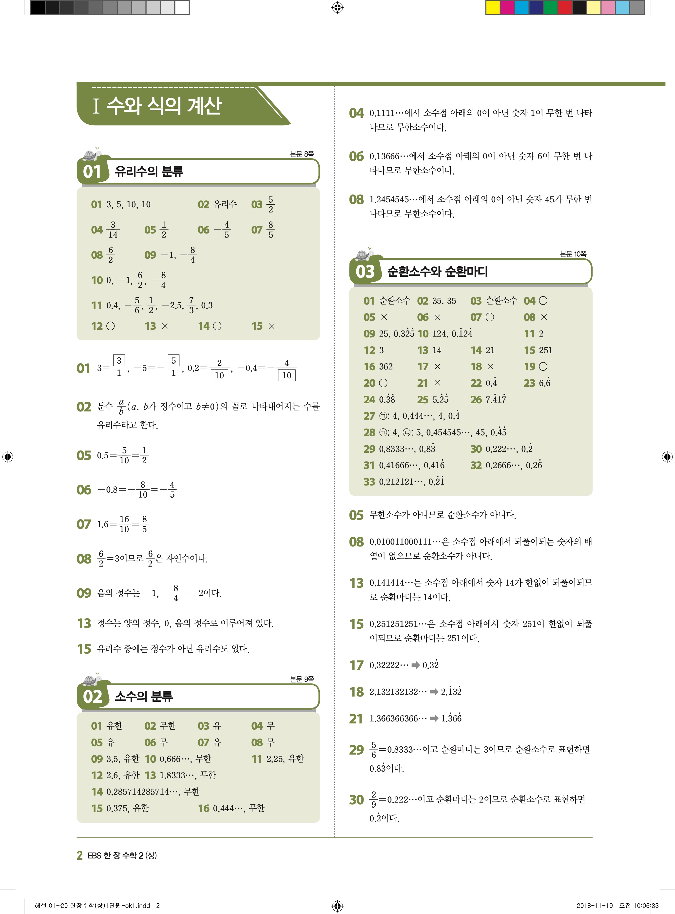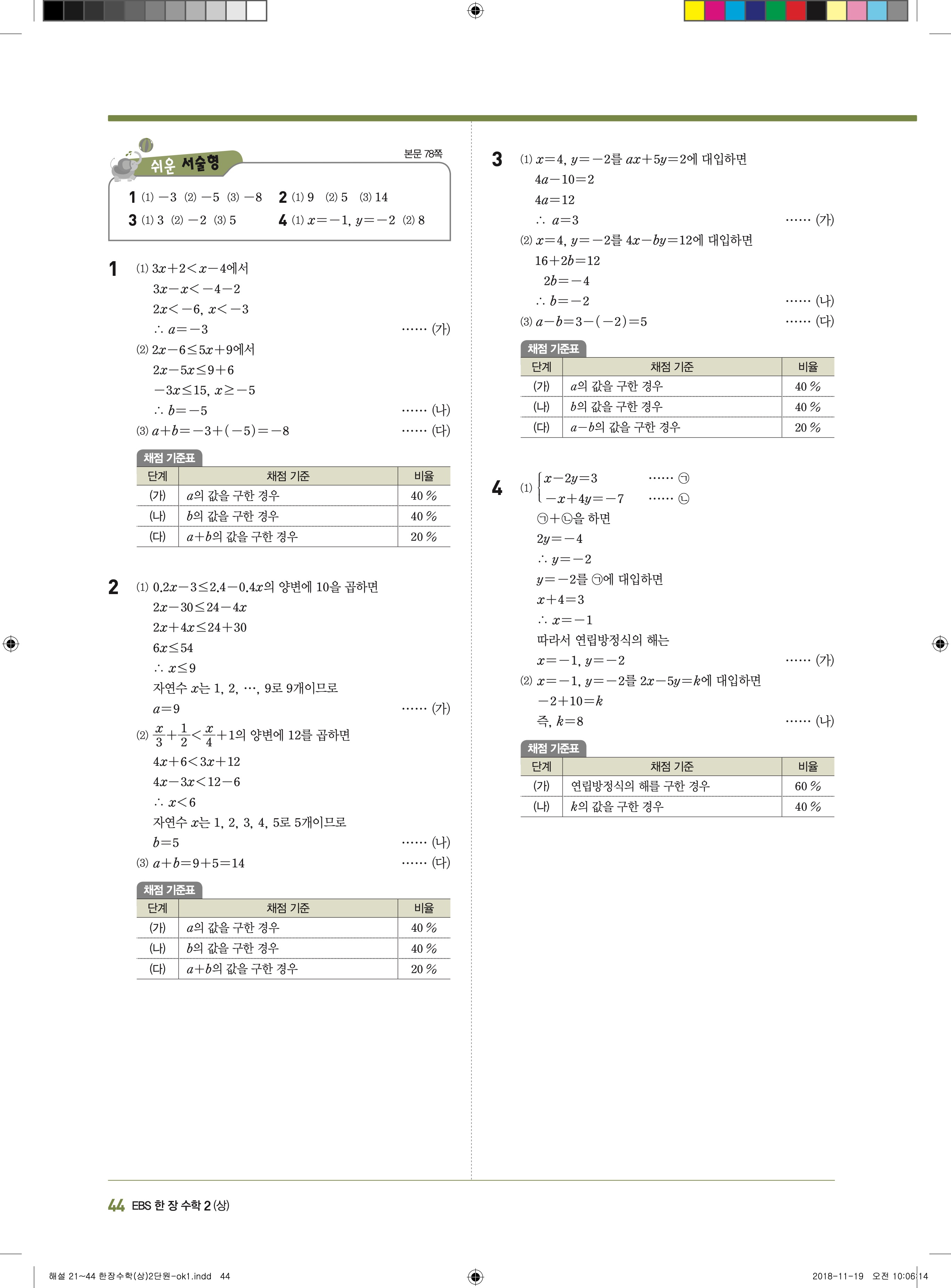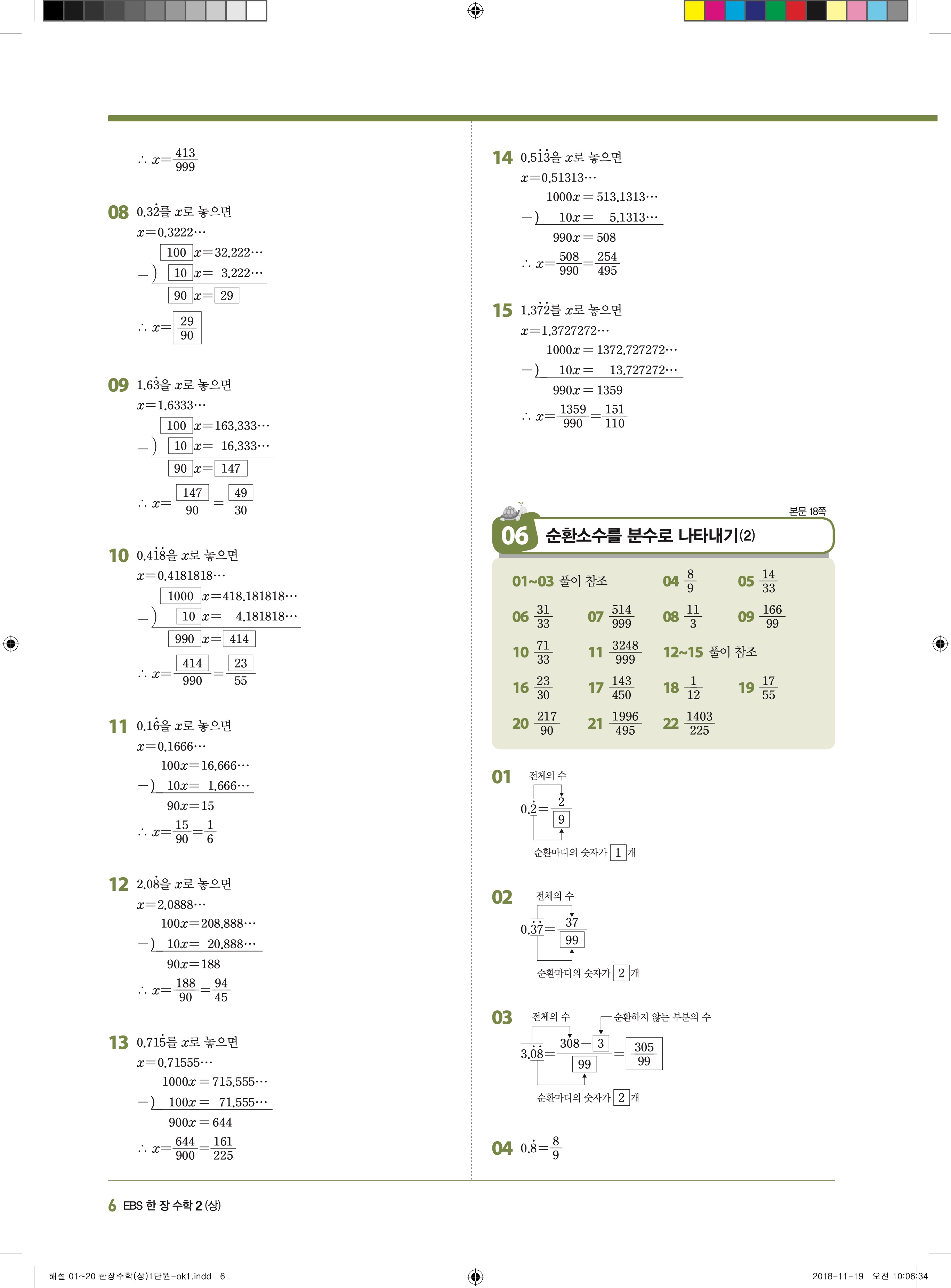 EBS 한장수학 중2상 2-1 답지 해설 바로보는 사진답지 빠른답지 모바일최적화