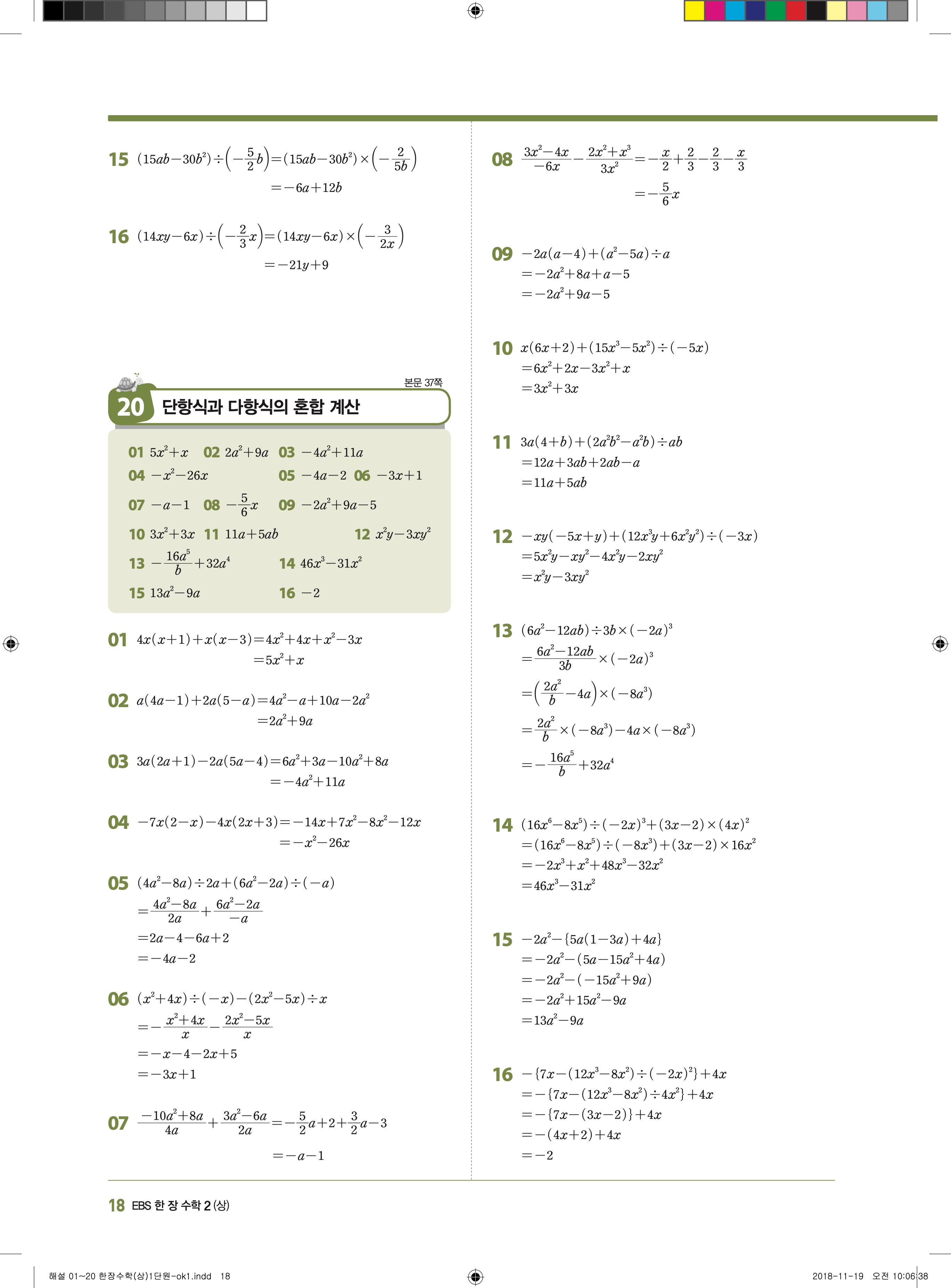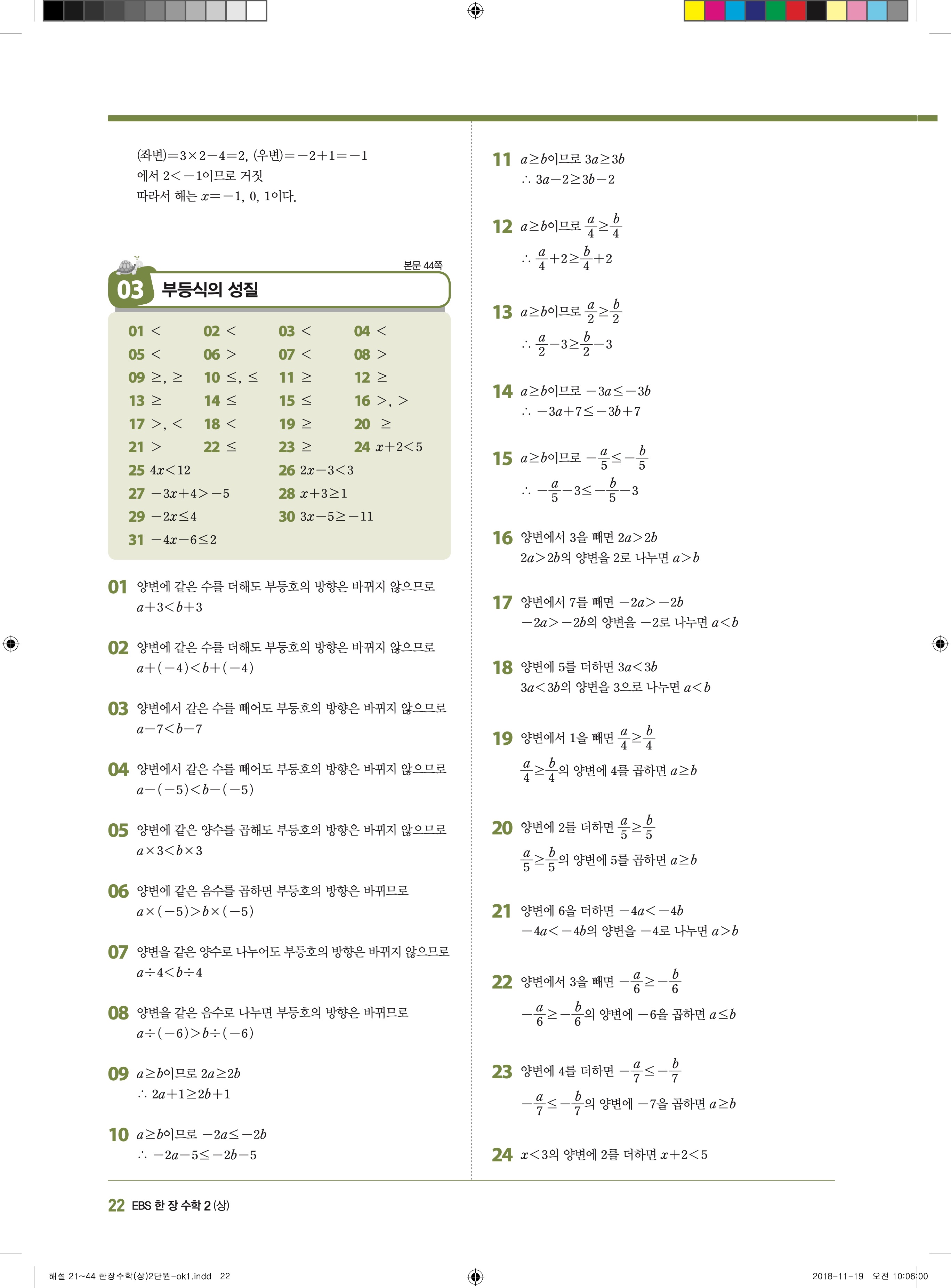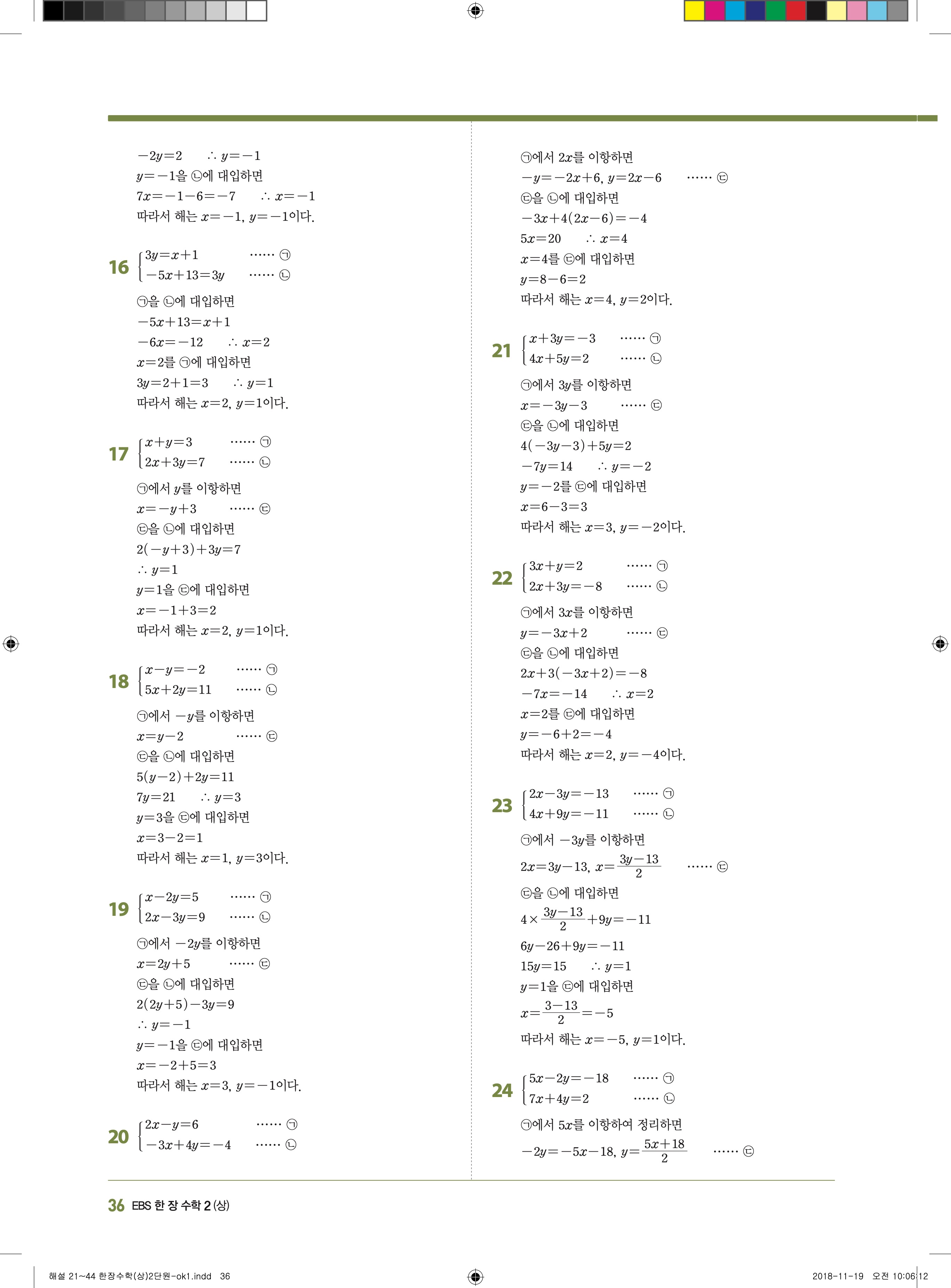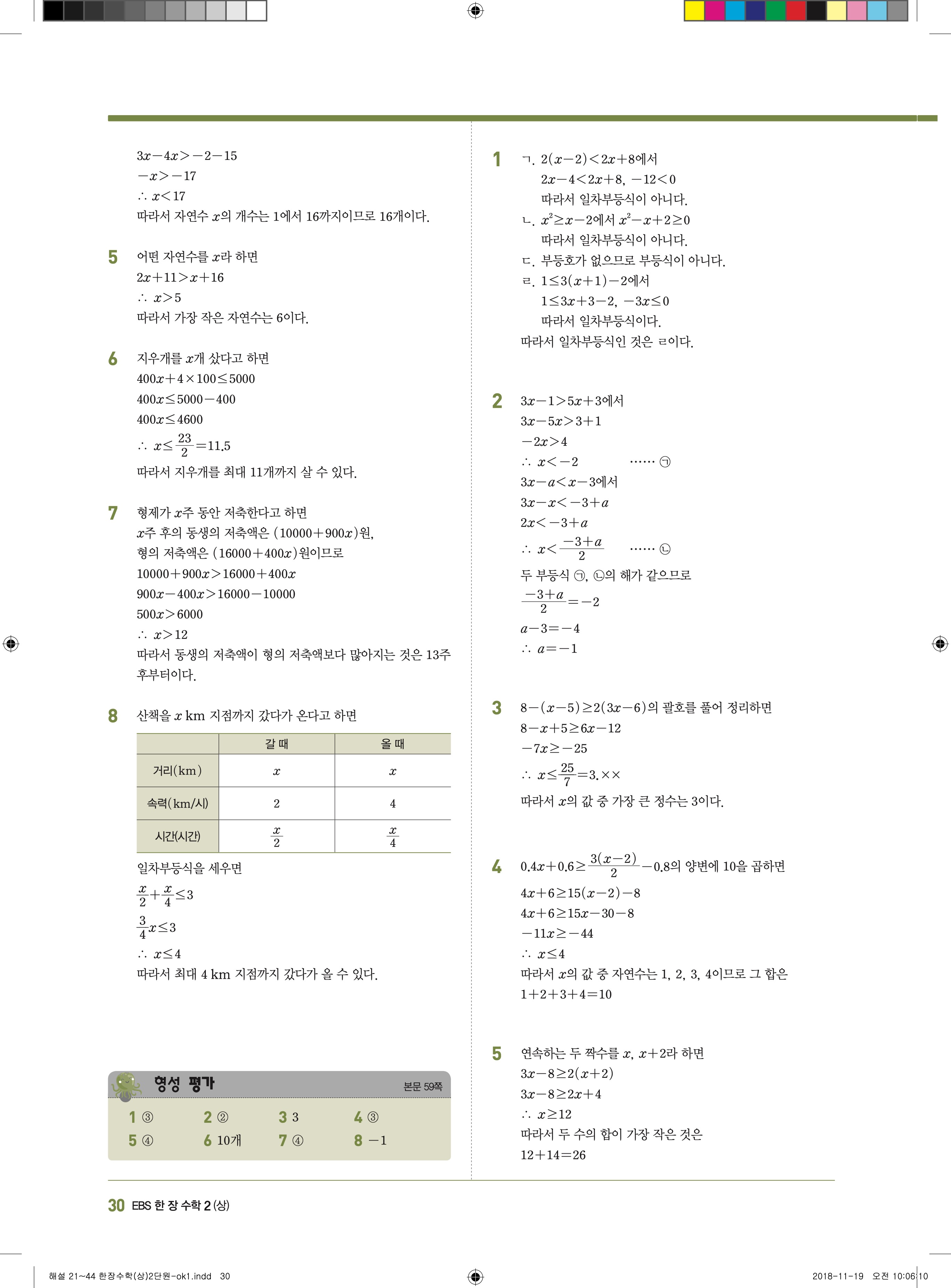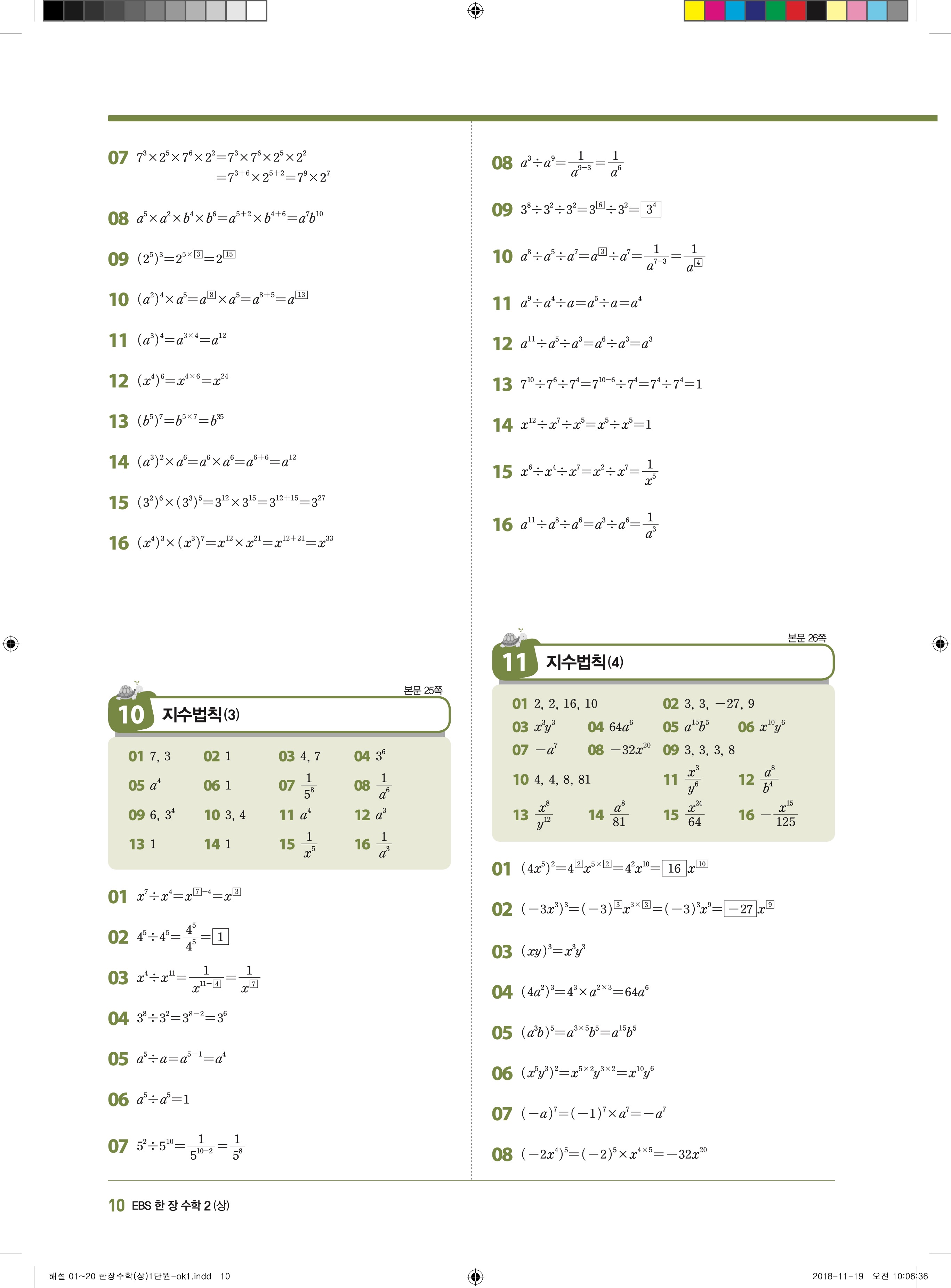 EBS 한장수학 중2상 2-1 답지 해설 바로보는 사진답지 빠른답지 모바일최적화