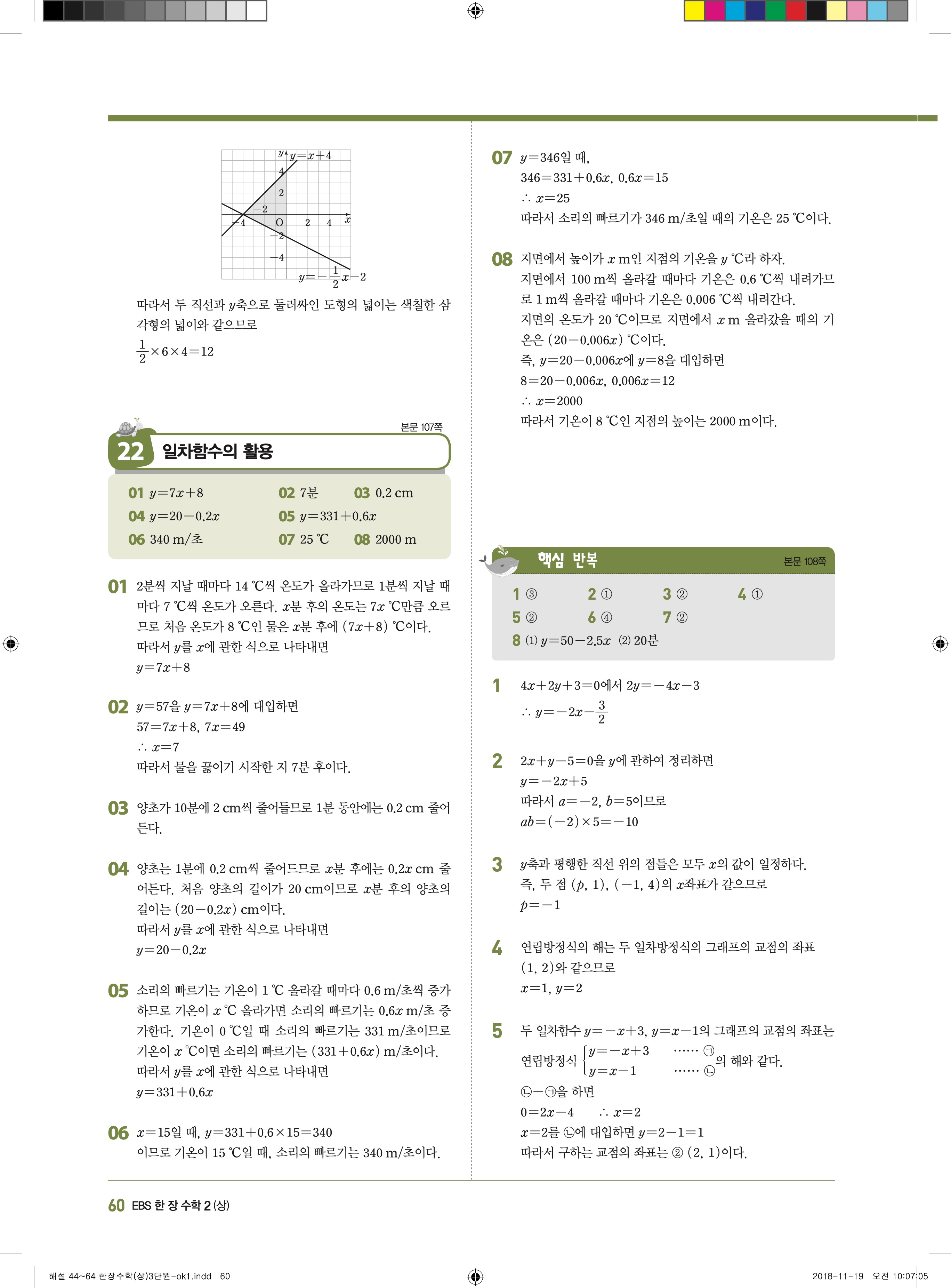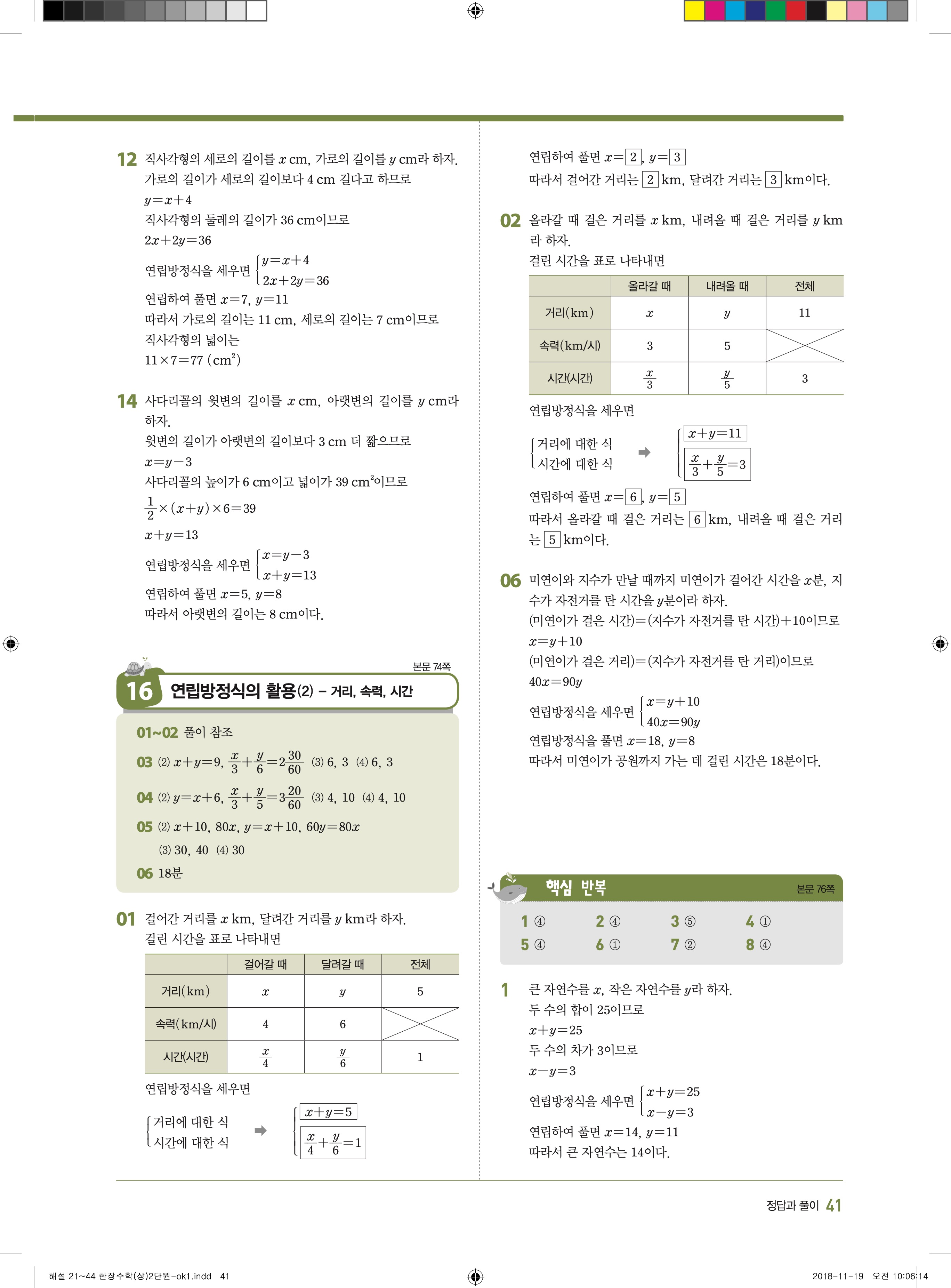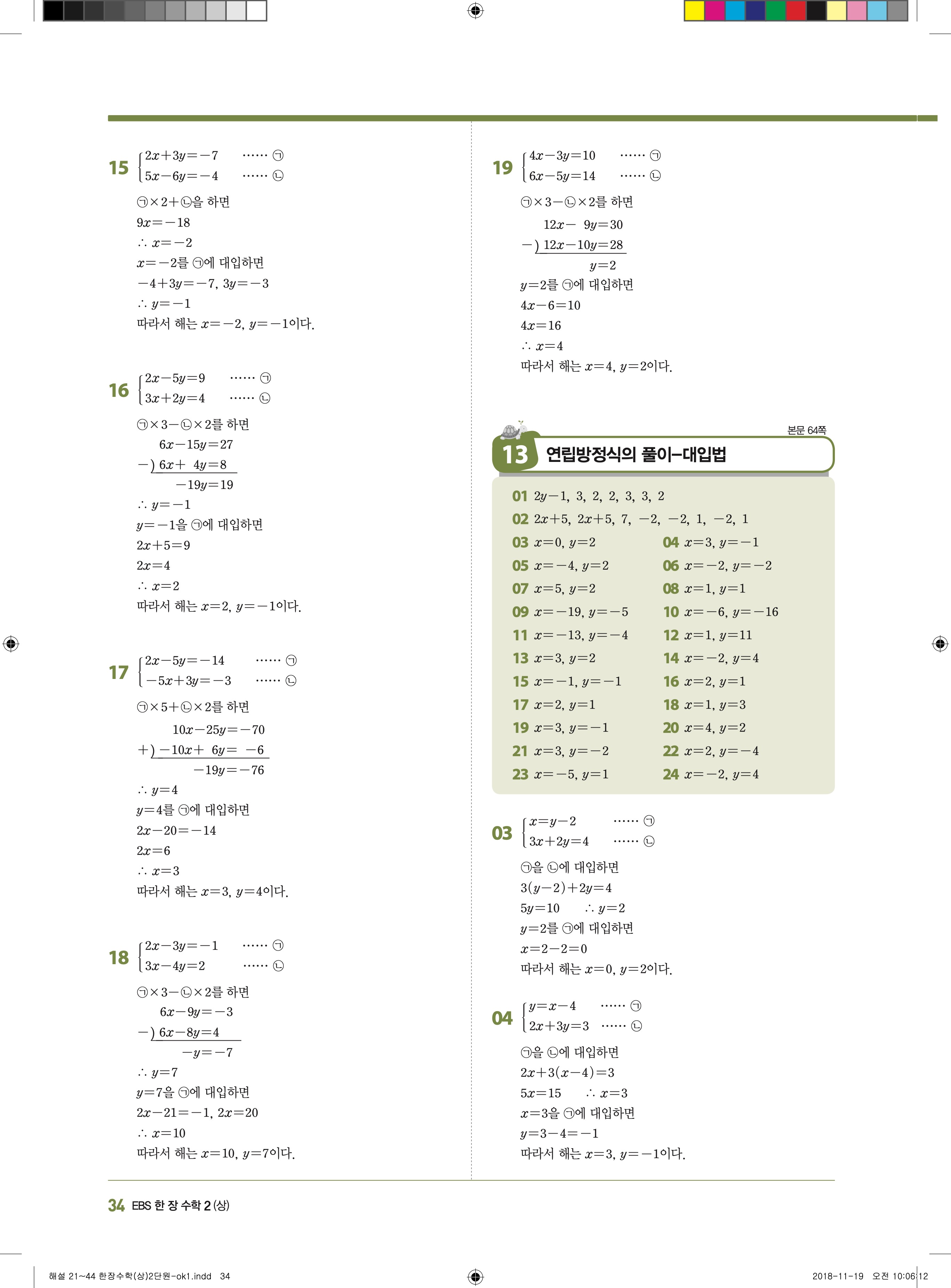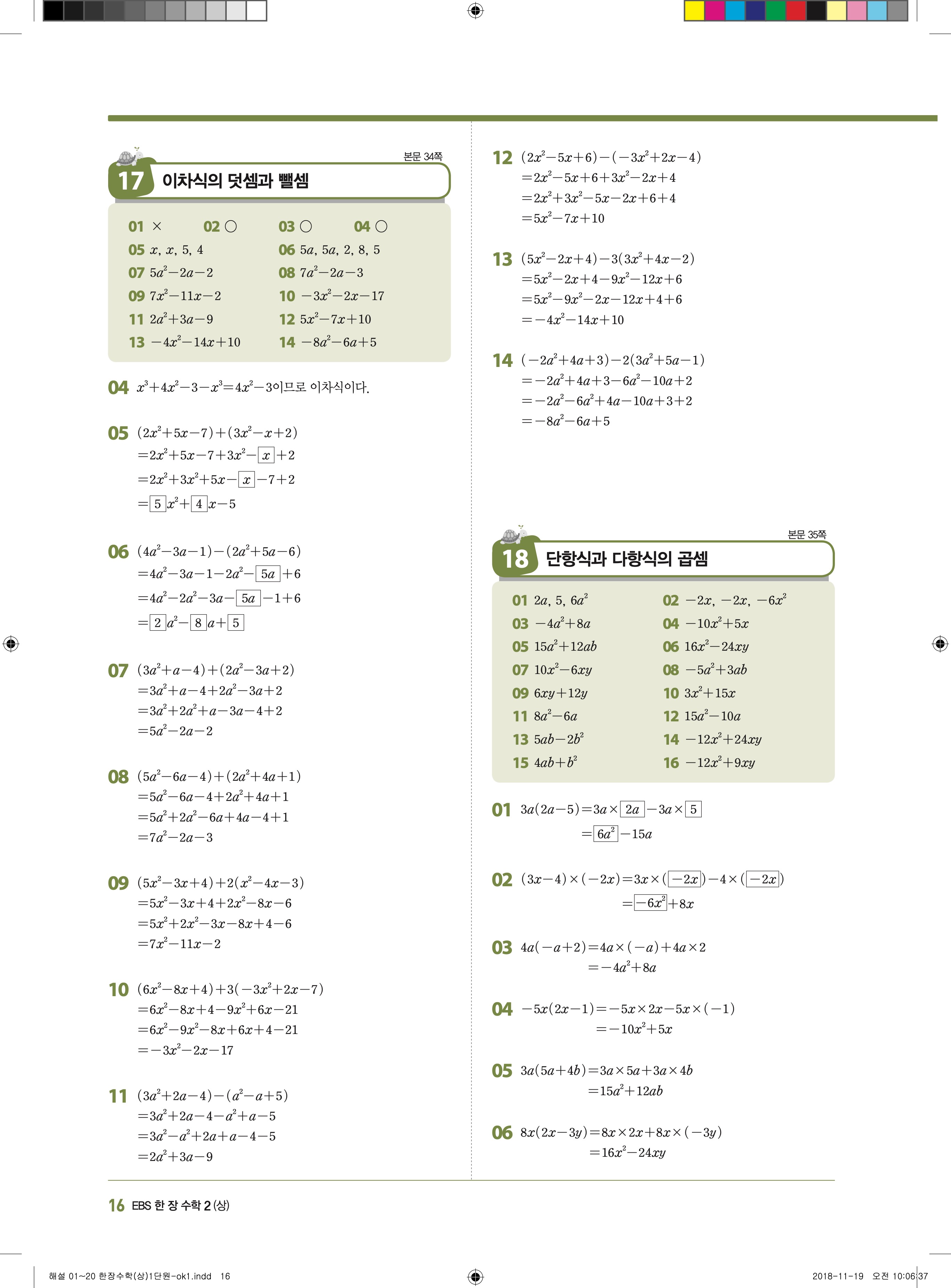 EBS 한장수학 중2상 2-1 답지 해설 바로보는 사진답지 빠른답지 모바일최적화