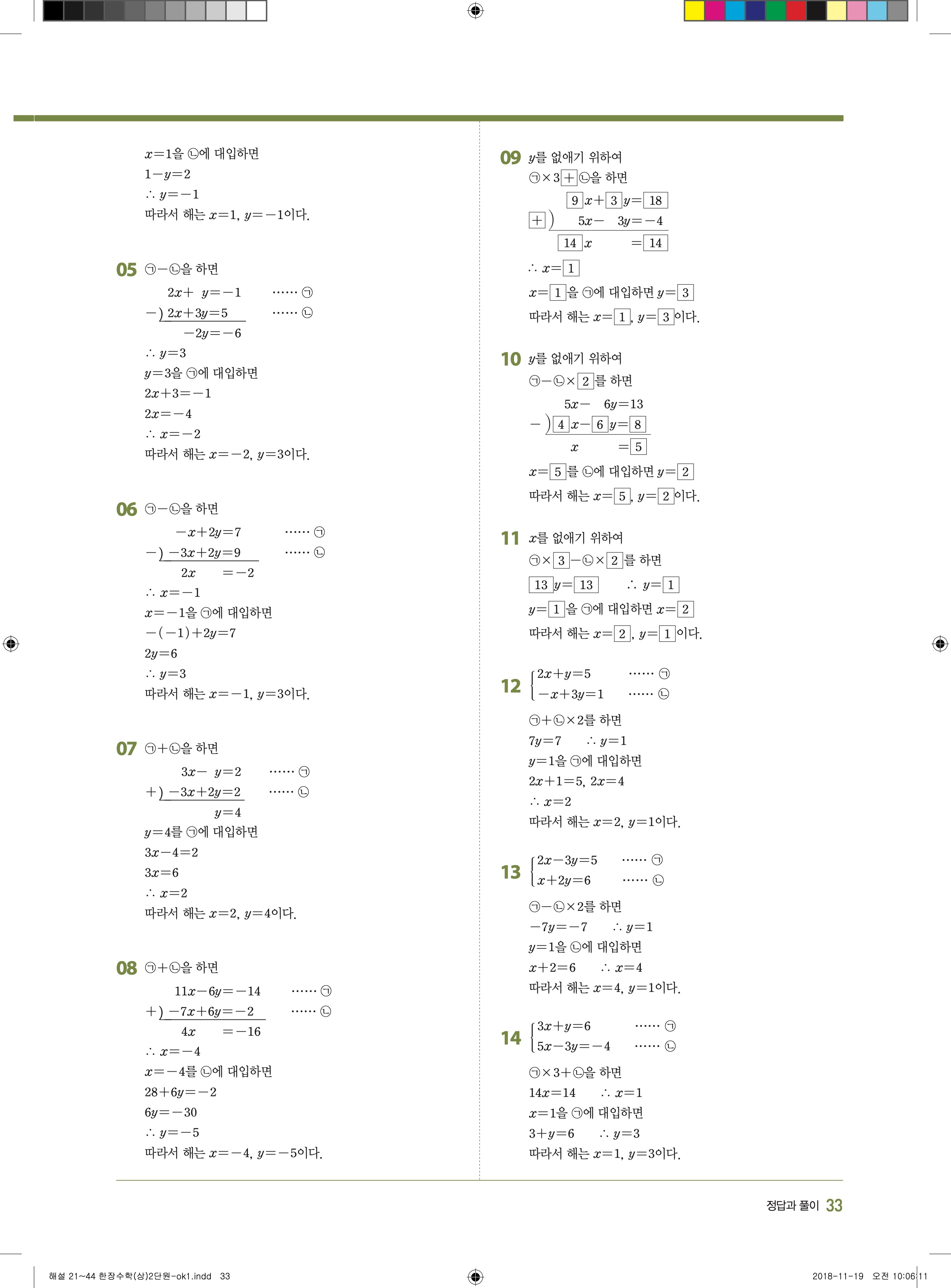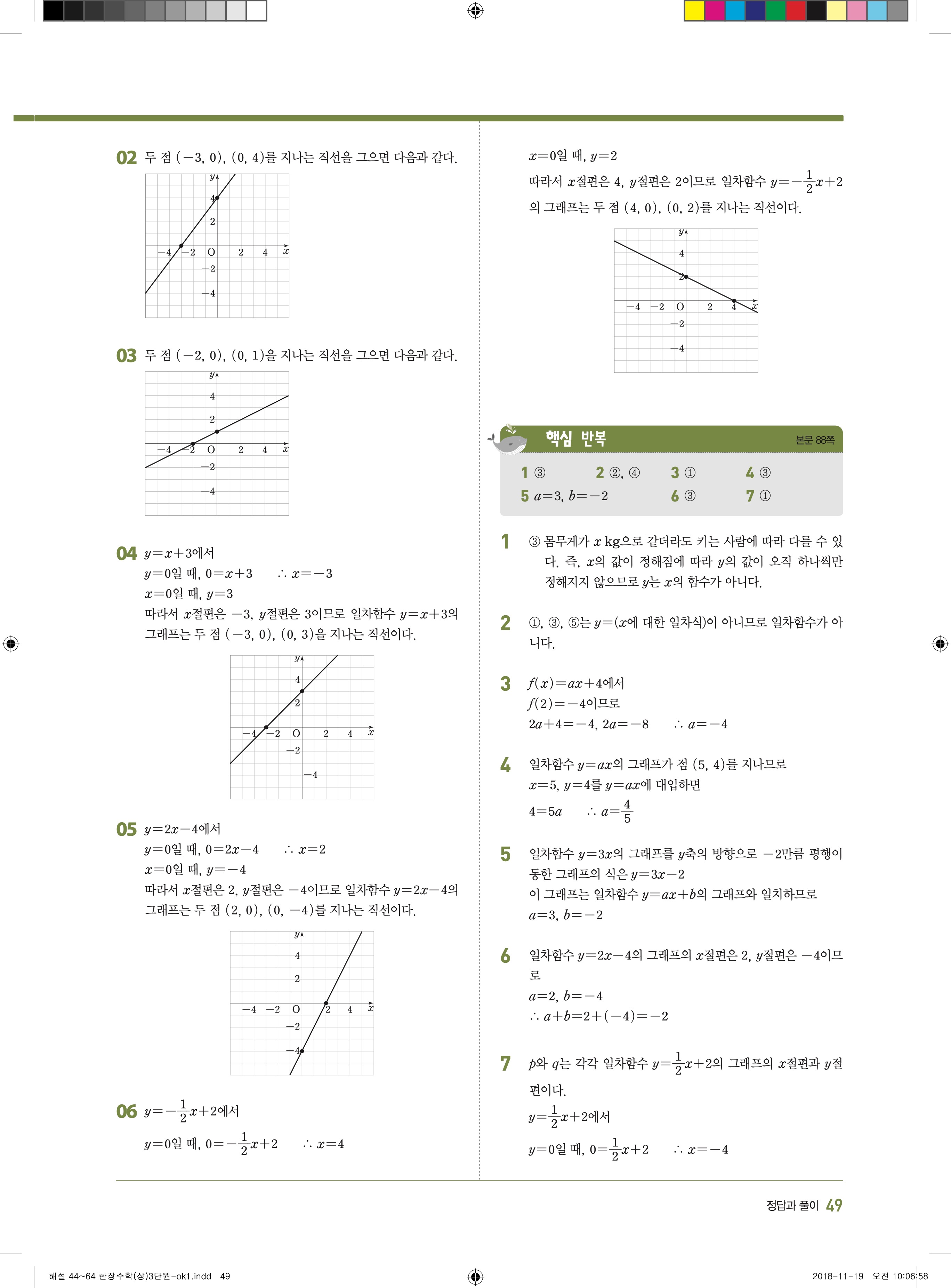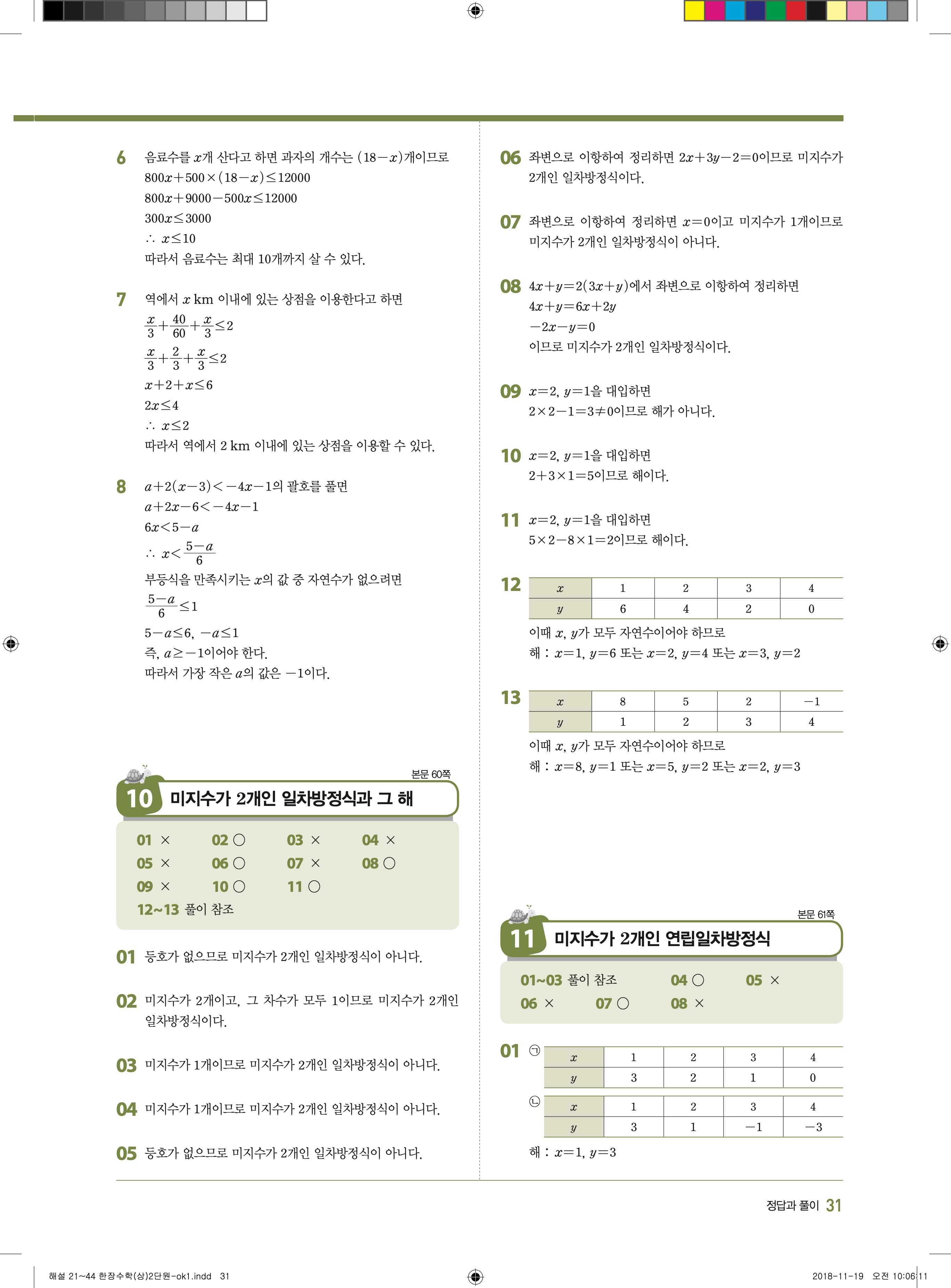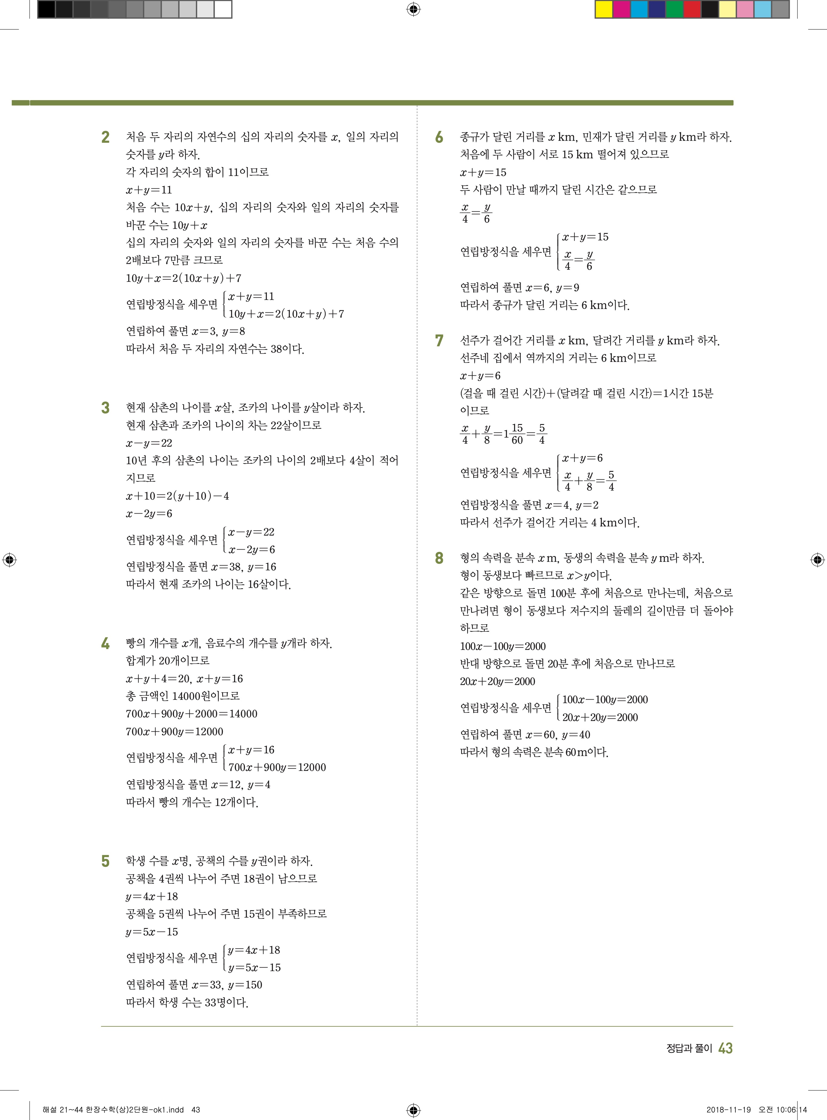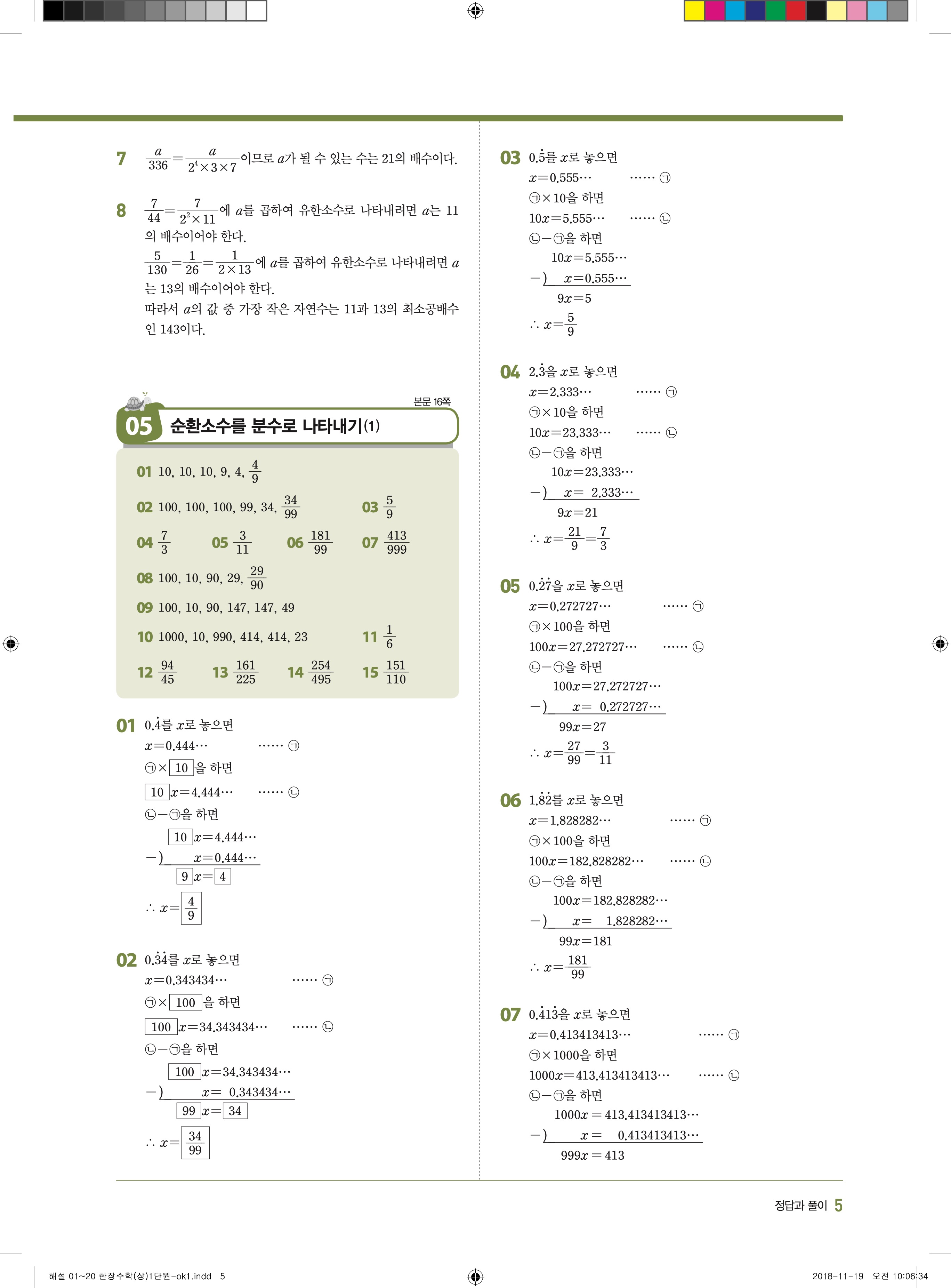 EBS 한장수학 중2상 2-1 답지 해설 바로보는 사진답지 빠른답지 모바일최적화