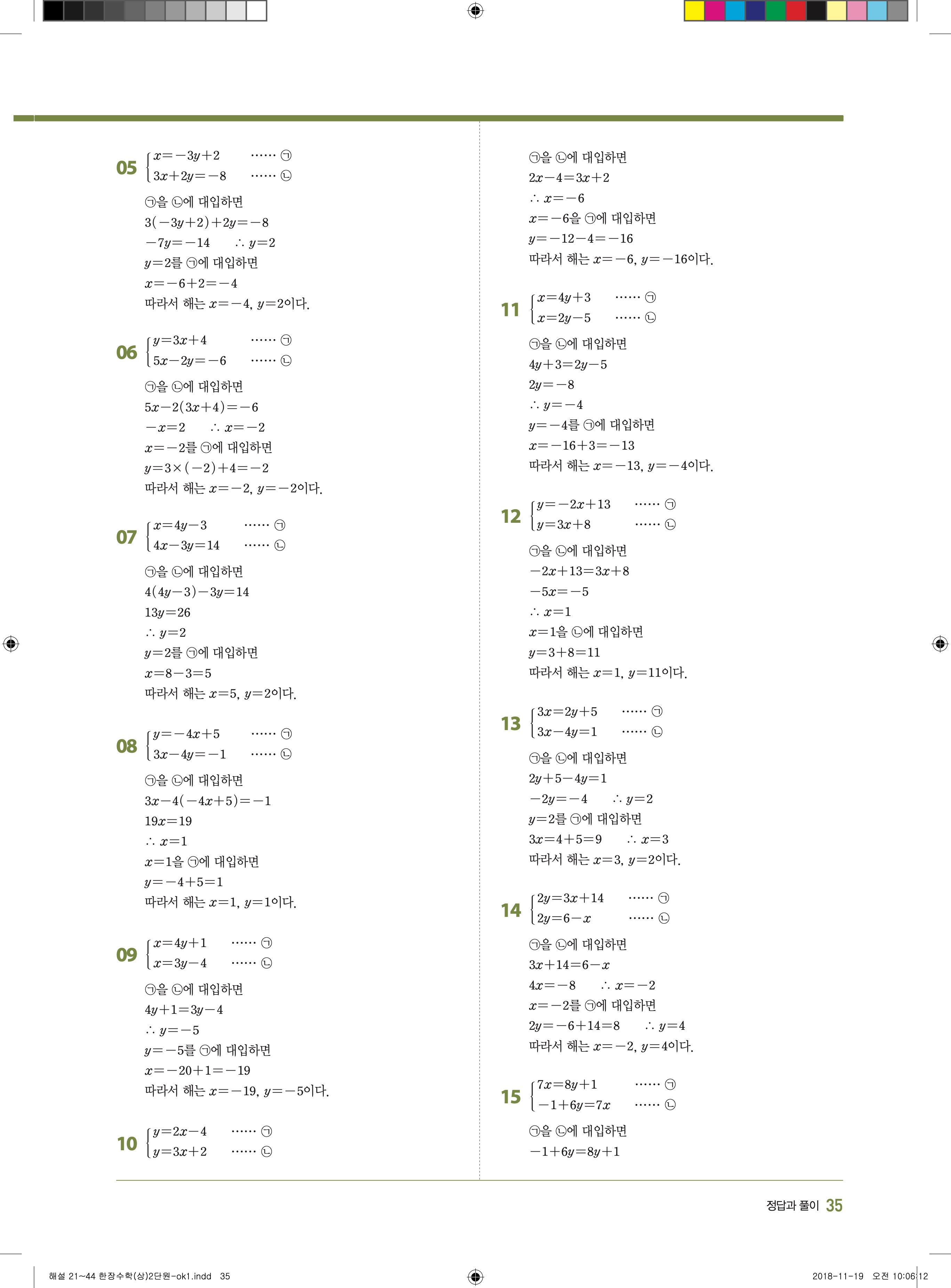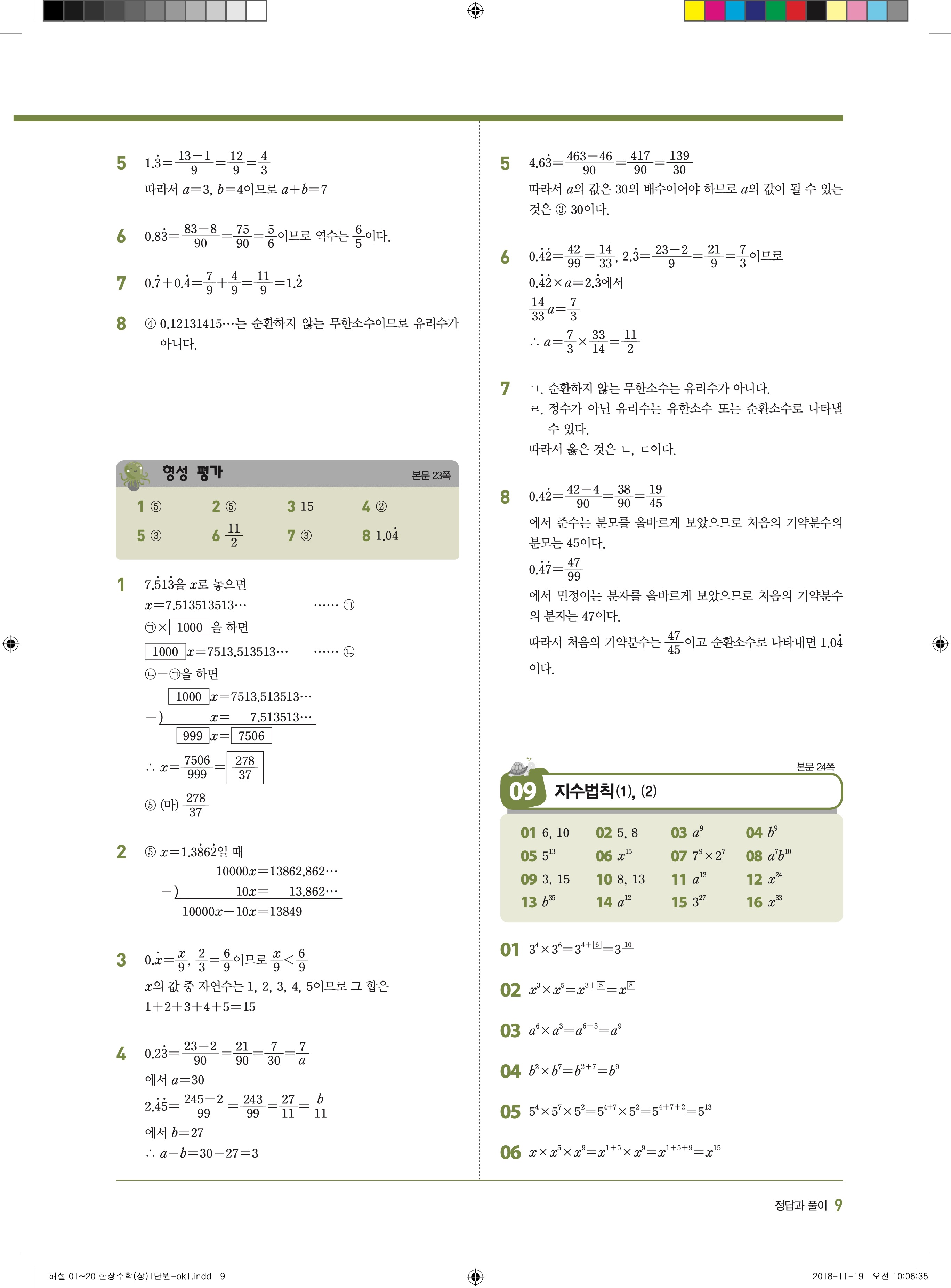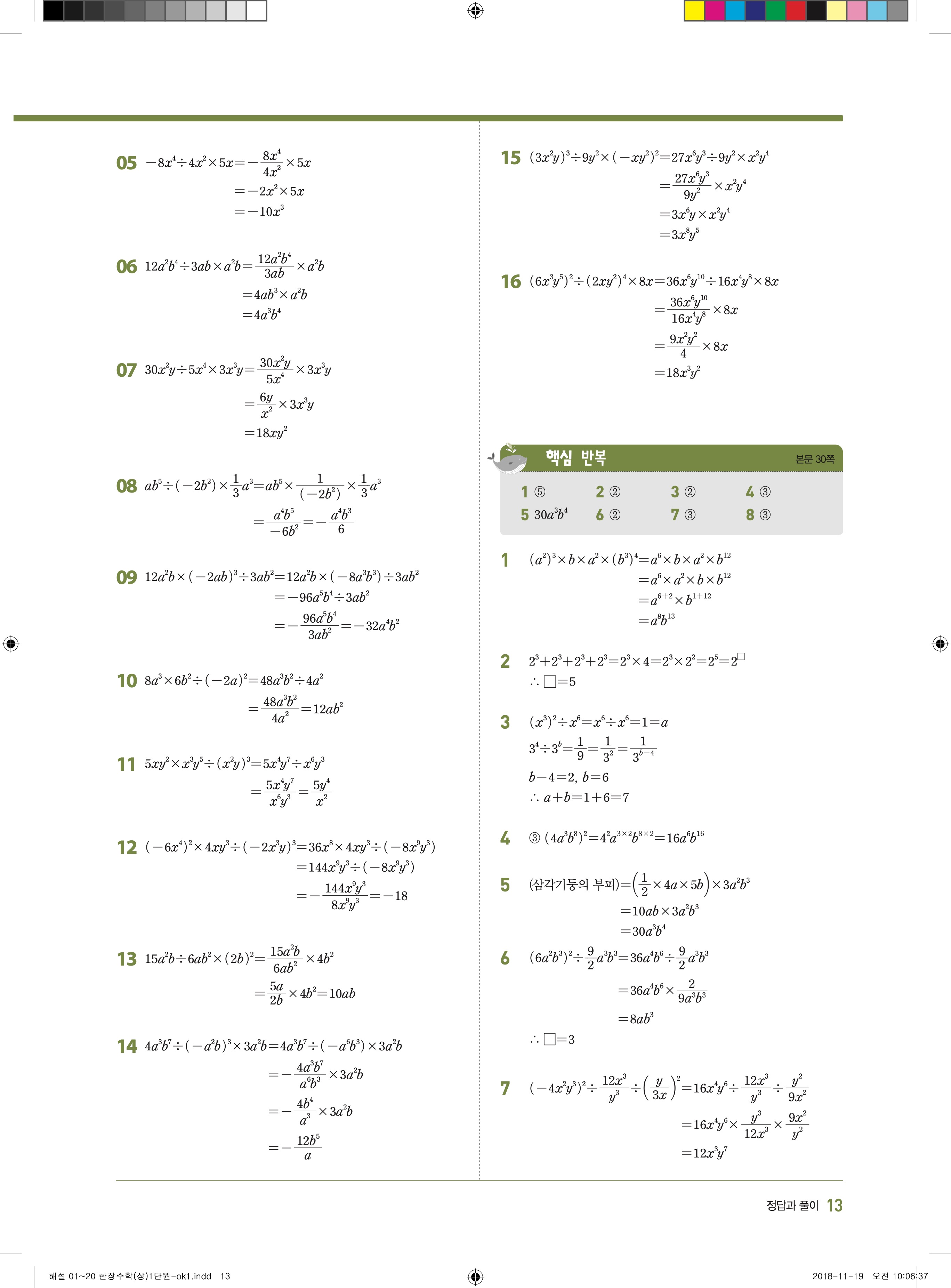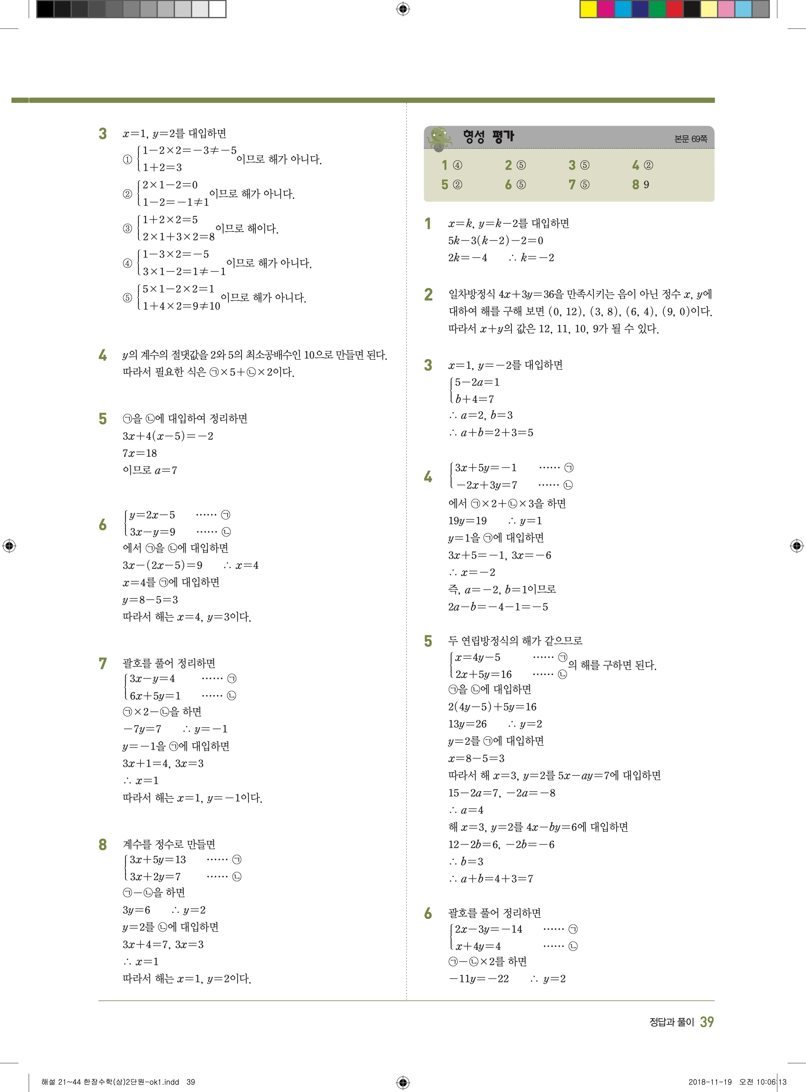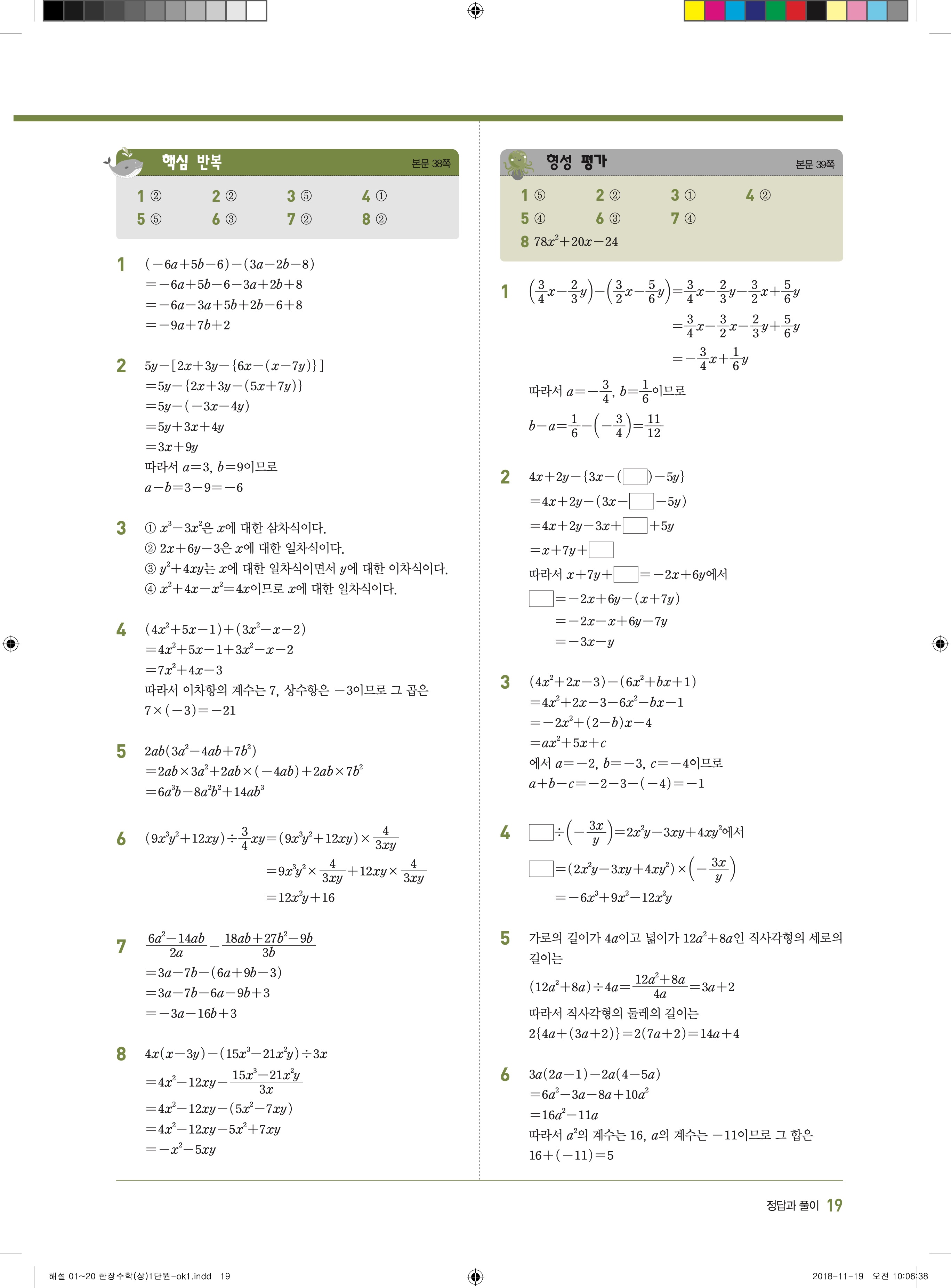EBS 한장수학 중2상 2-1 답지 해설 바로보는 사진답지 빠른답지 모바일최적화
