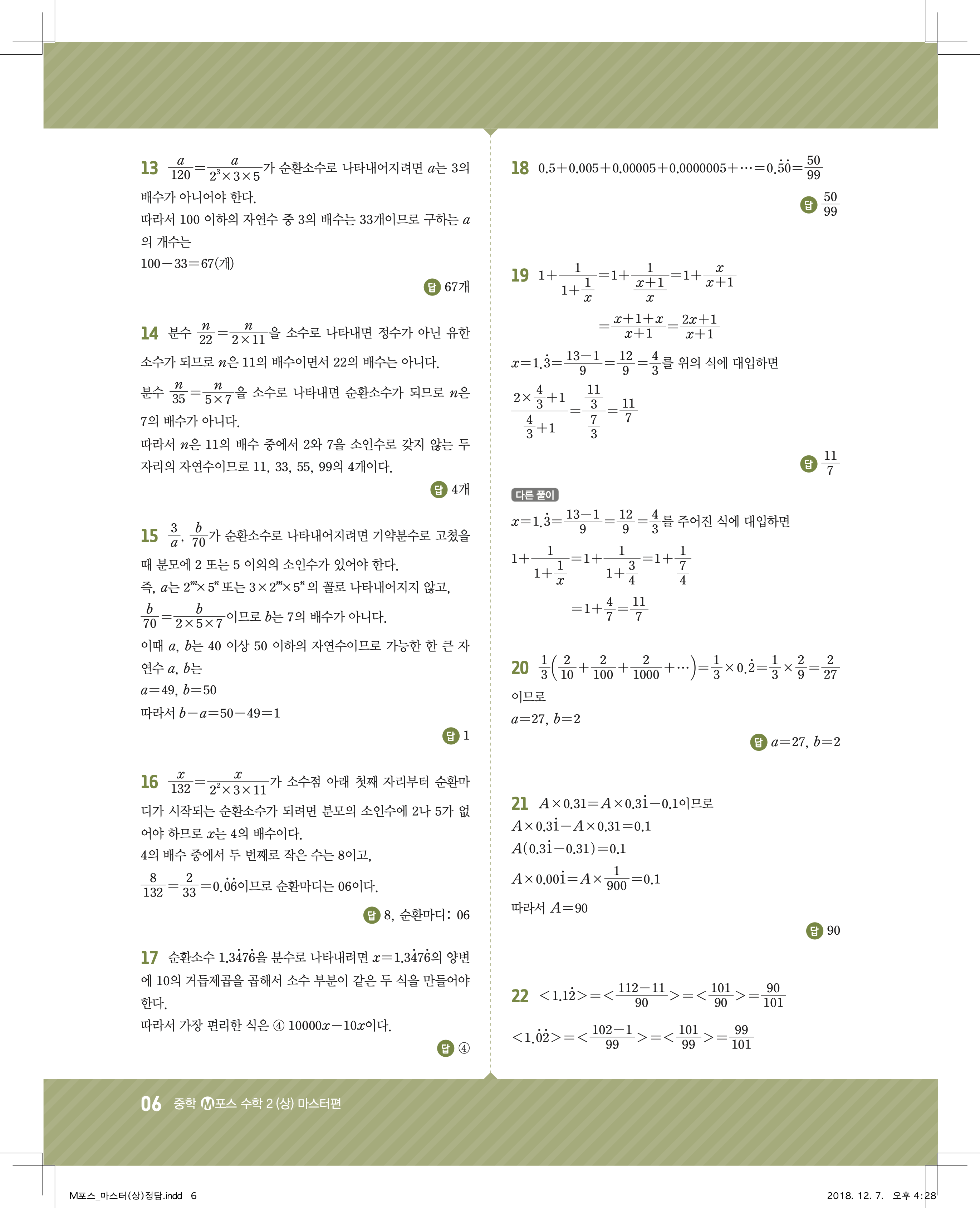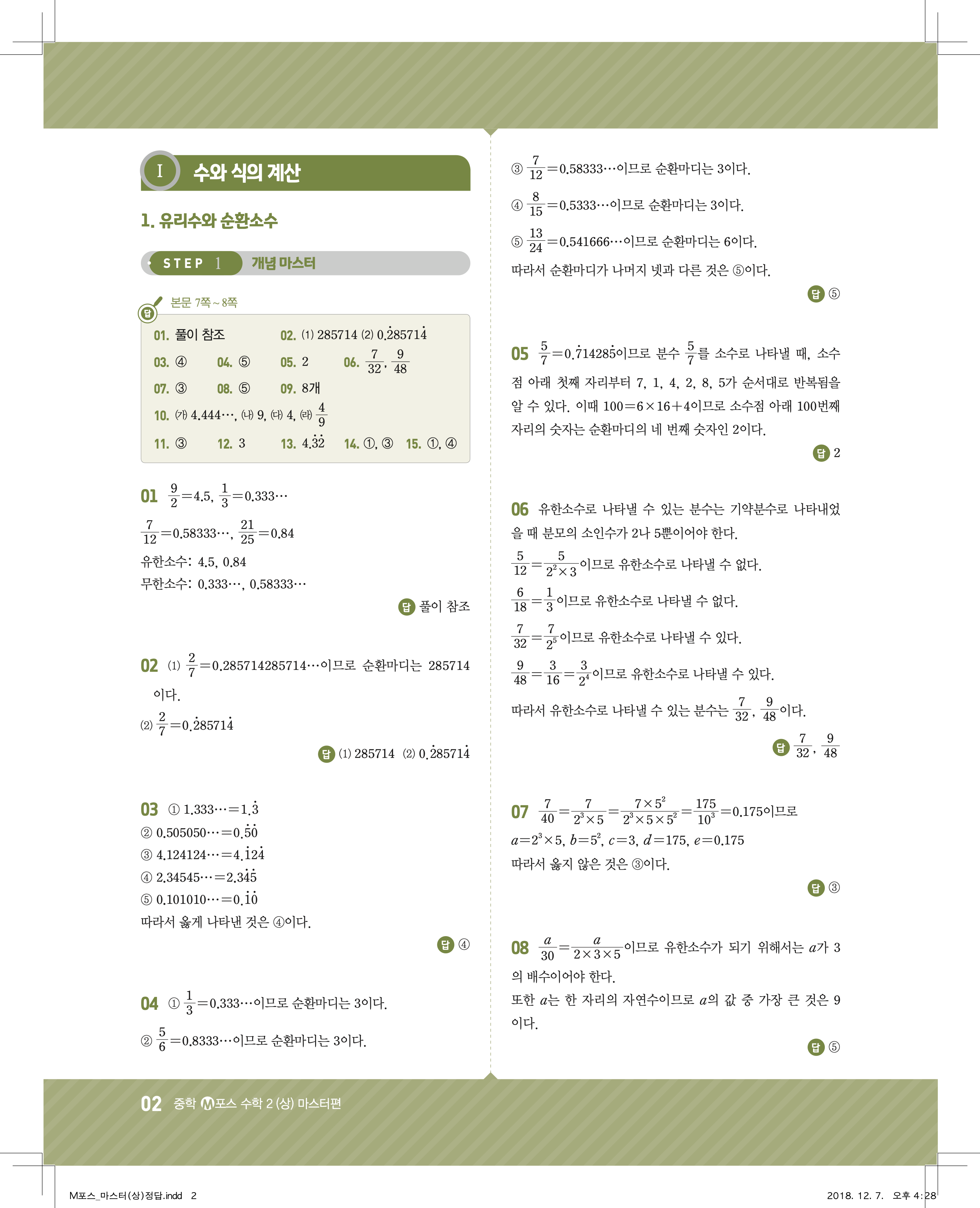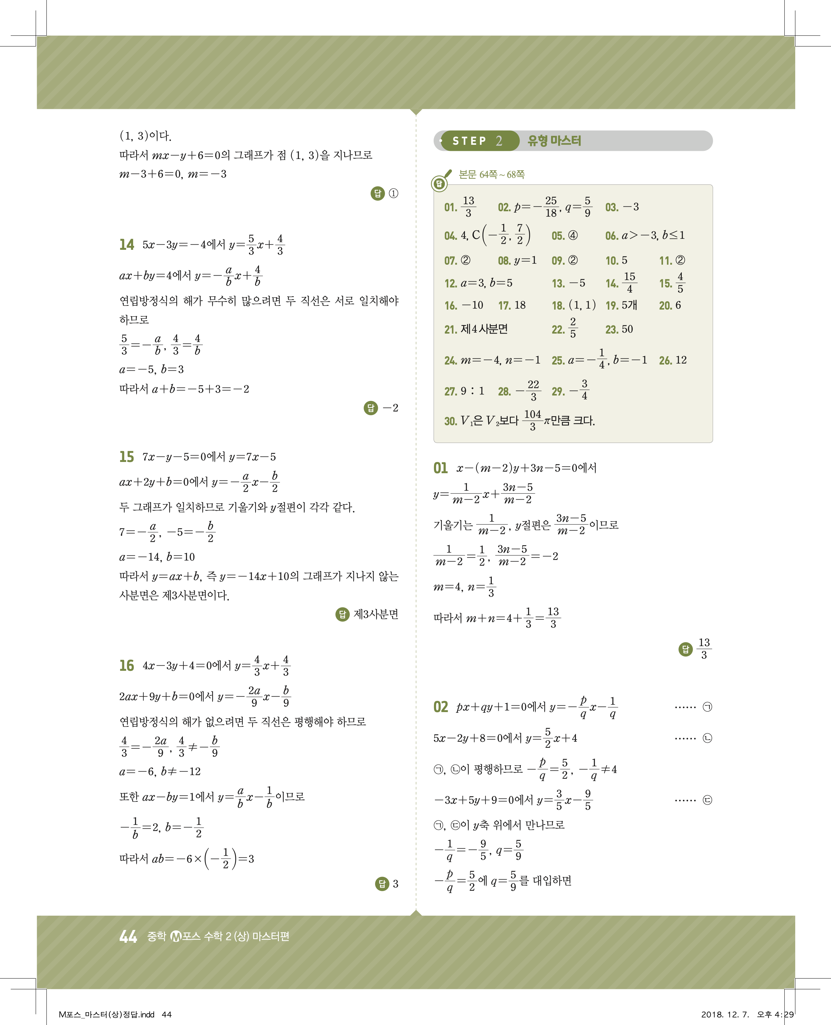 EBS M포스 마스터편 중2상 답지 해설 바로보는 사진답지 빠른답지 모바일최적화