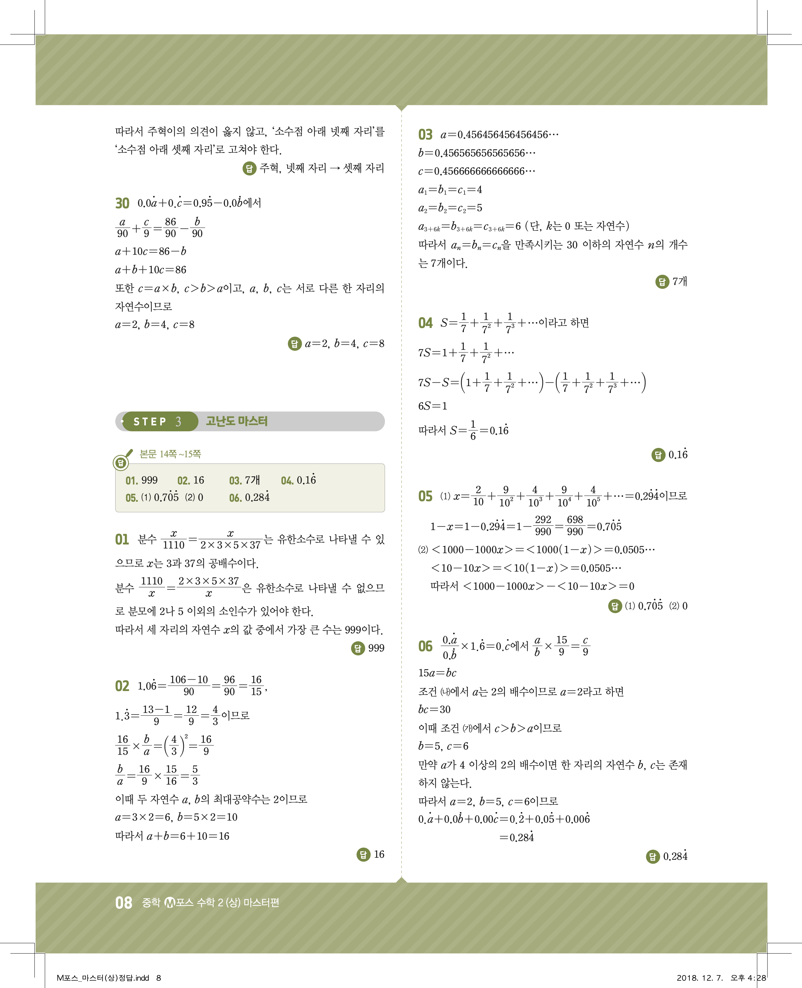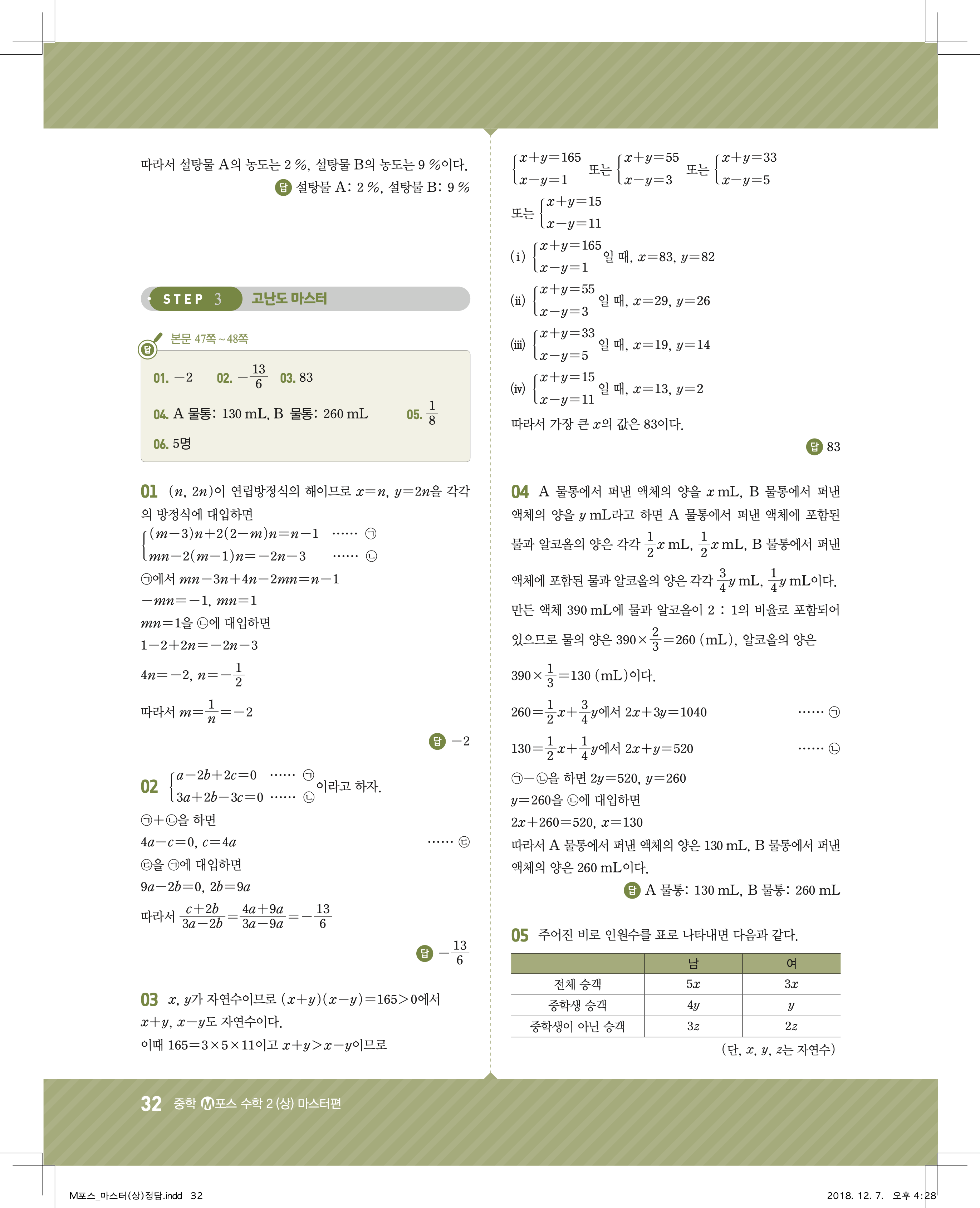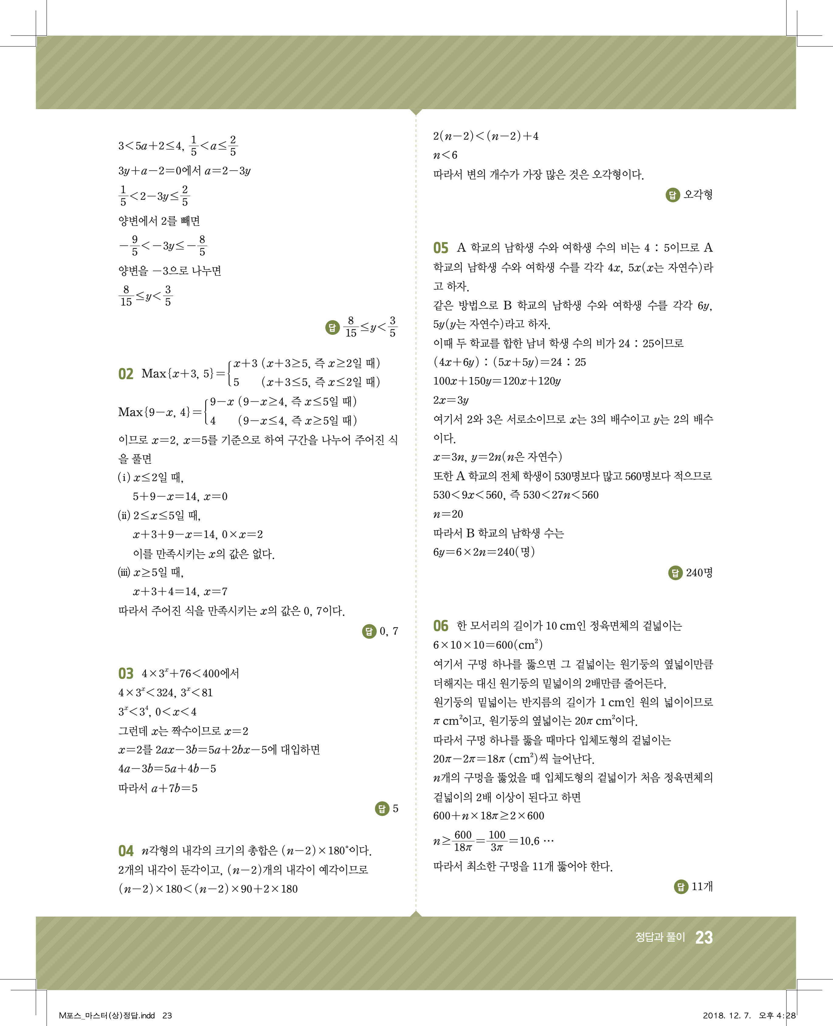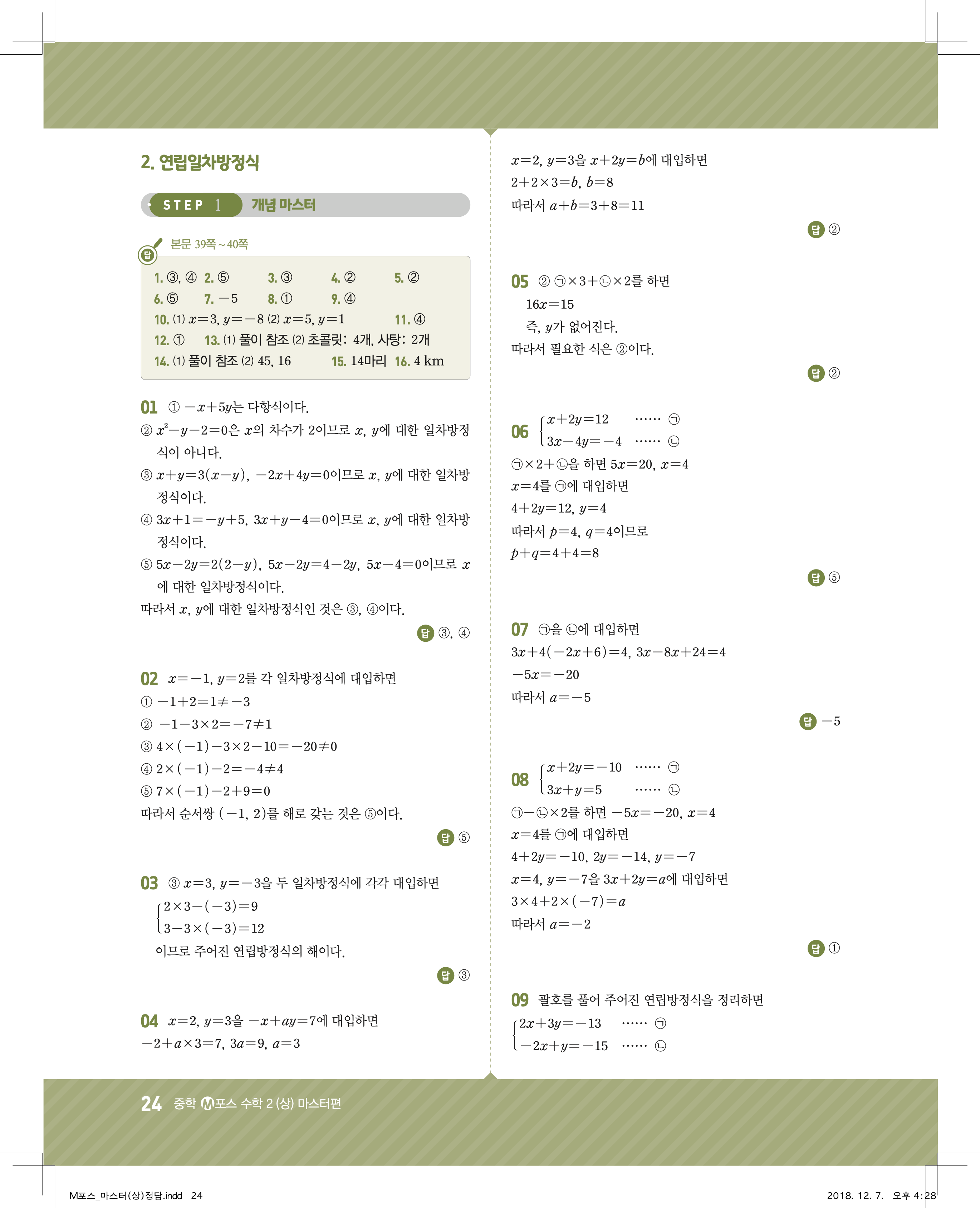 EBS M포스 마스터편 중2상 답지 해설 바로보는 사진답지 빠른답지 모바일최적화