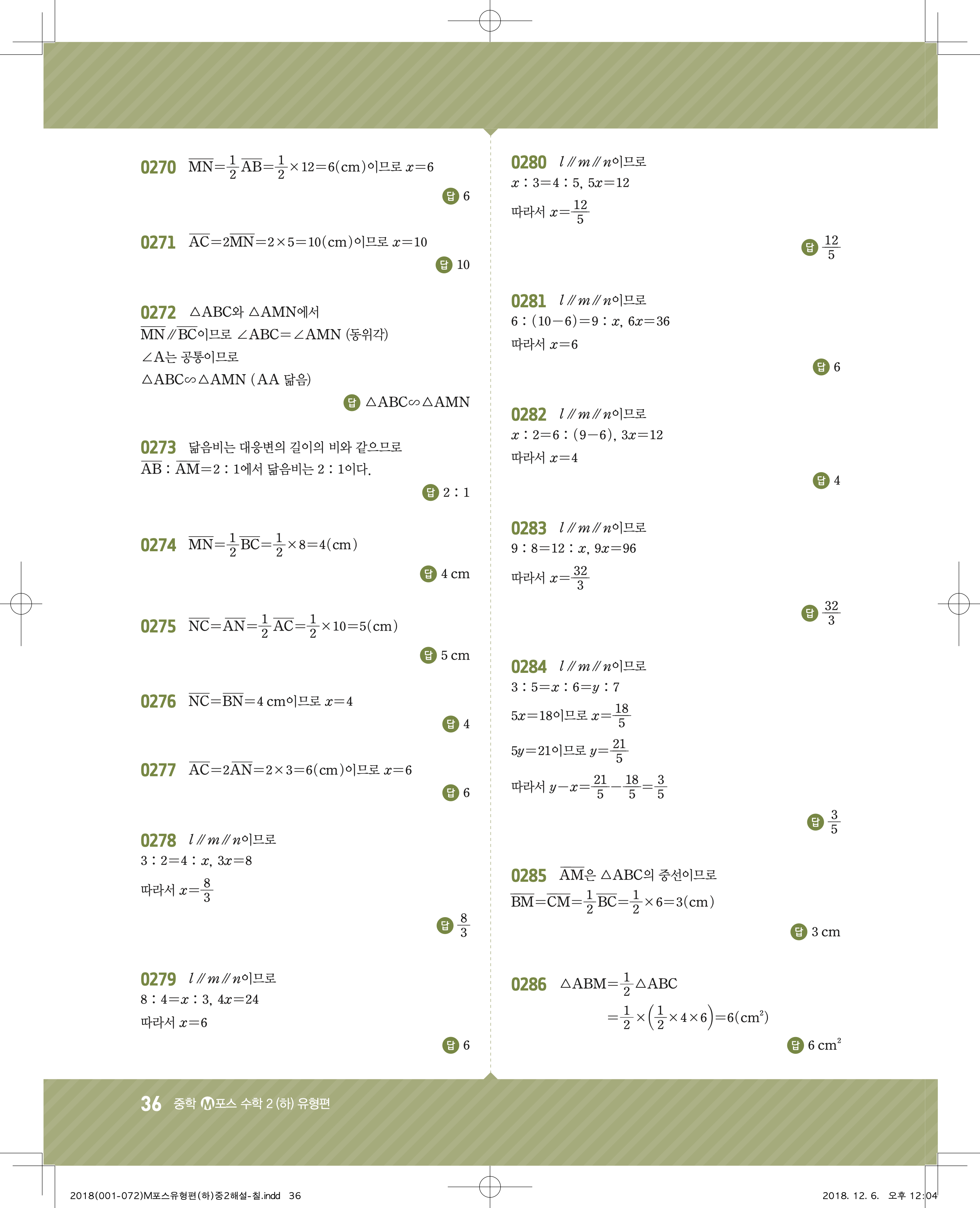EBS M포스 유형편 중2하 답지 해설 바로보는 사진답지 빠른답지 모바일최적화