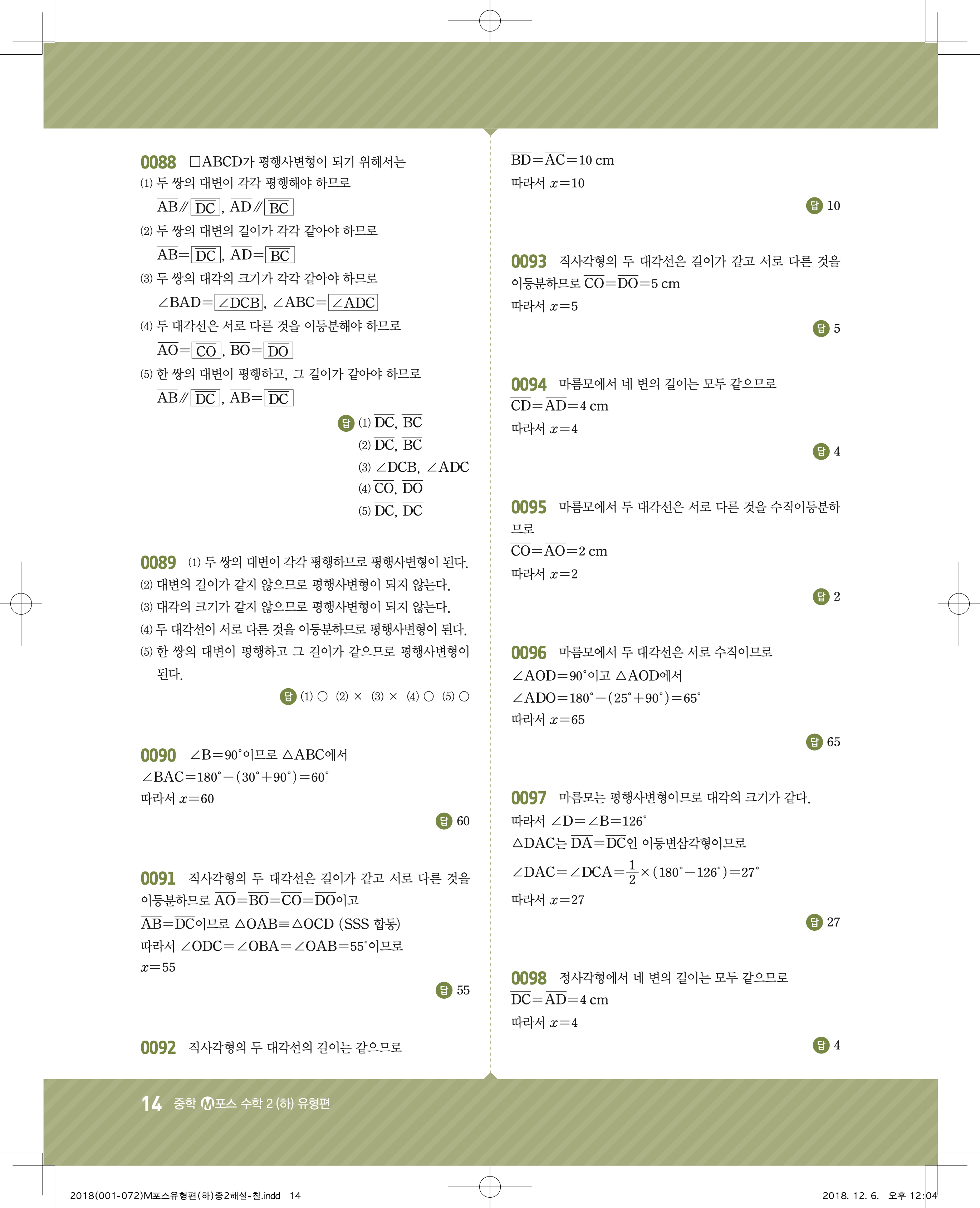 | 천재교육 류희찬 중2 수학교과서 답지 | |