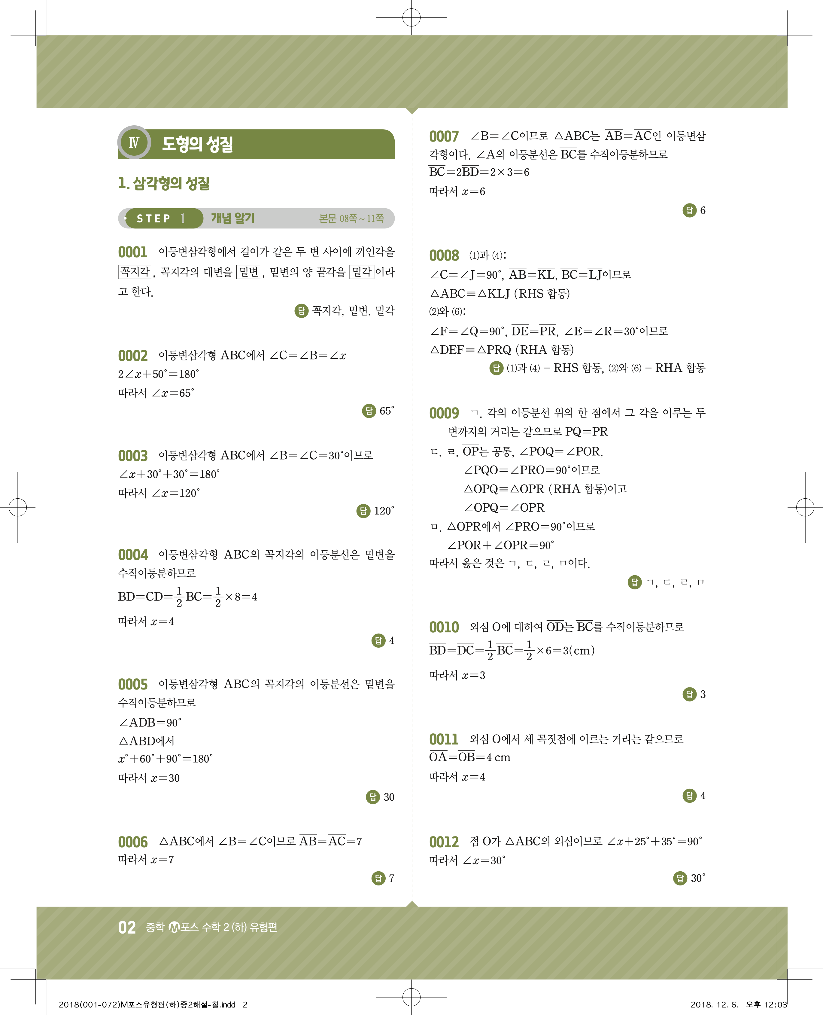 | 천재교육 이준열 중2 수학교과서 답지 | |