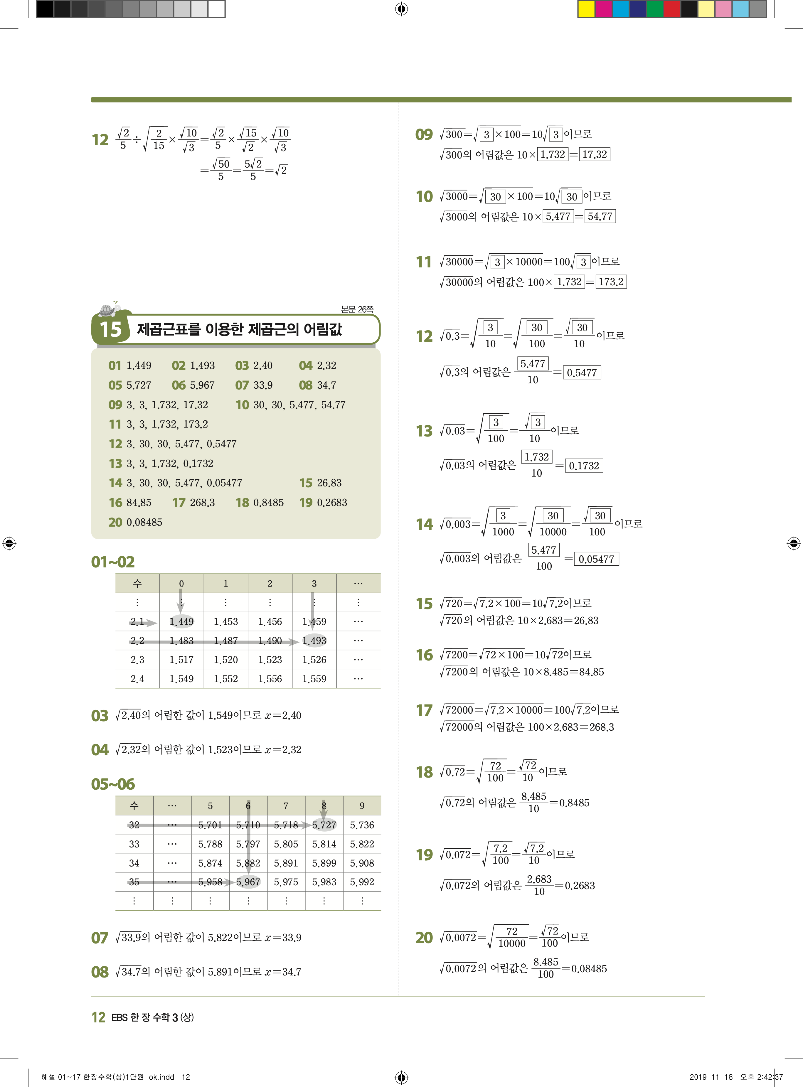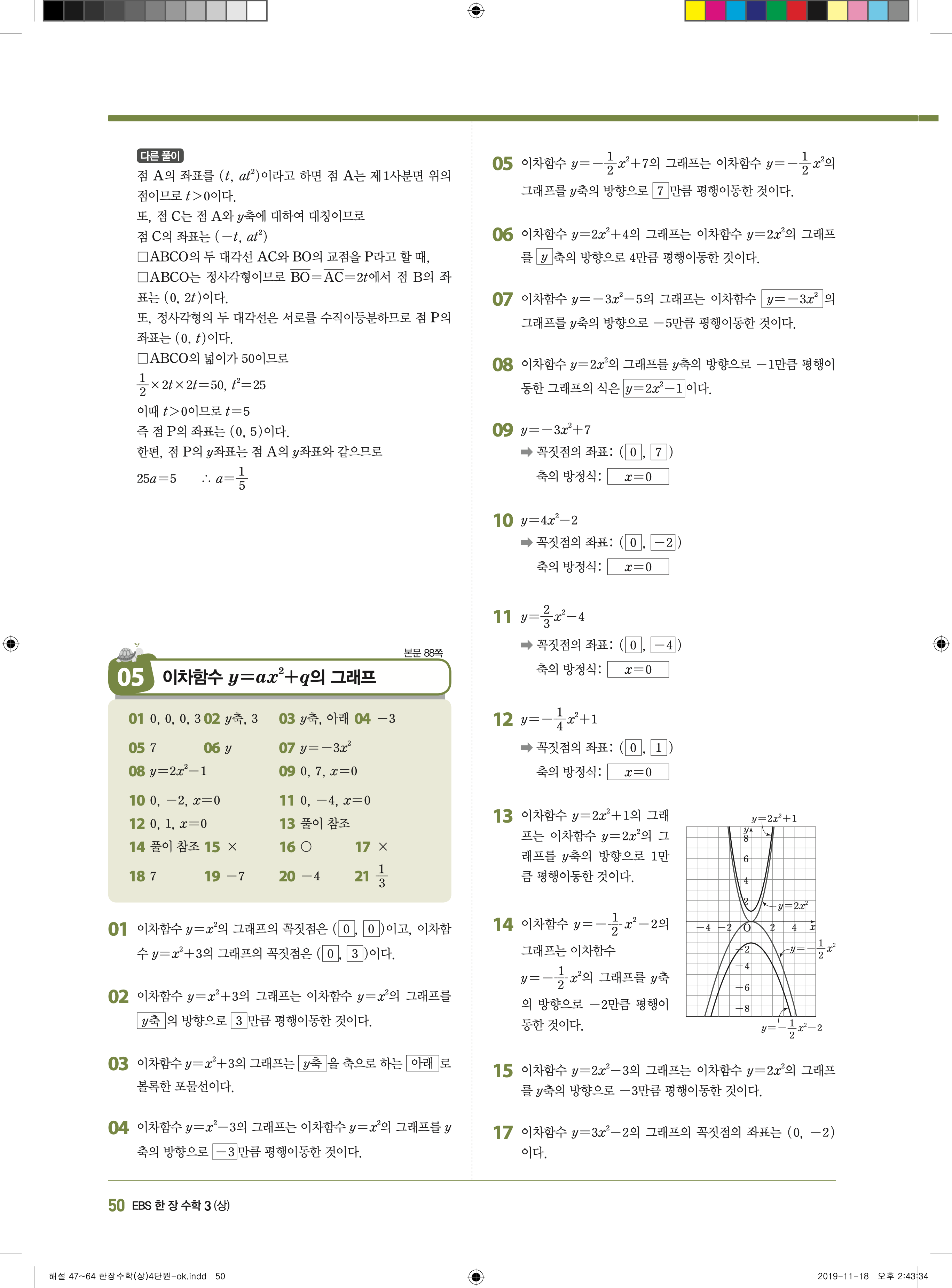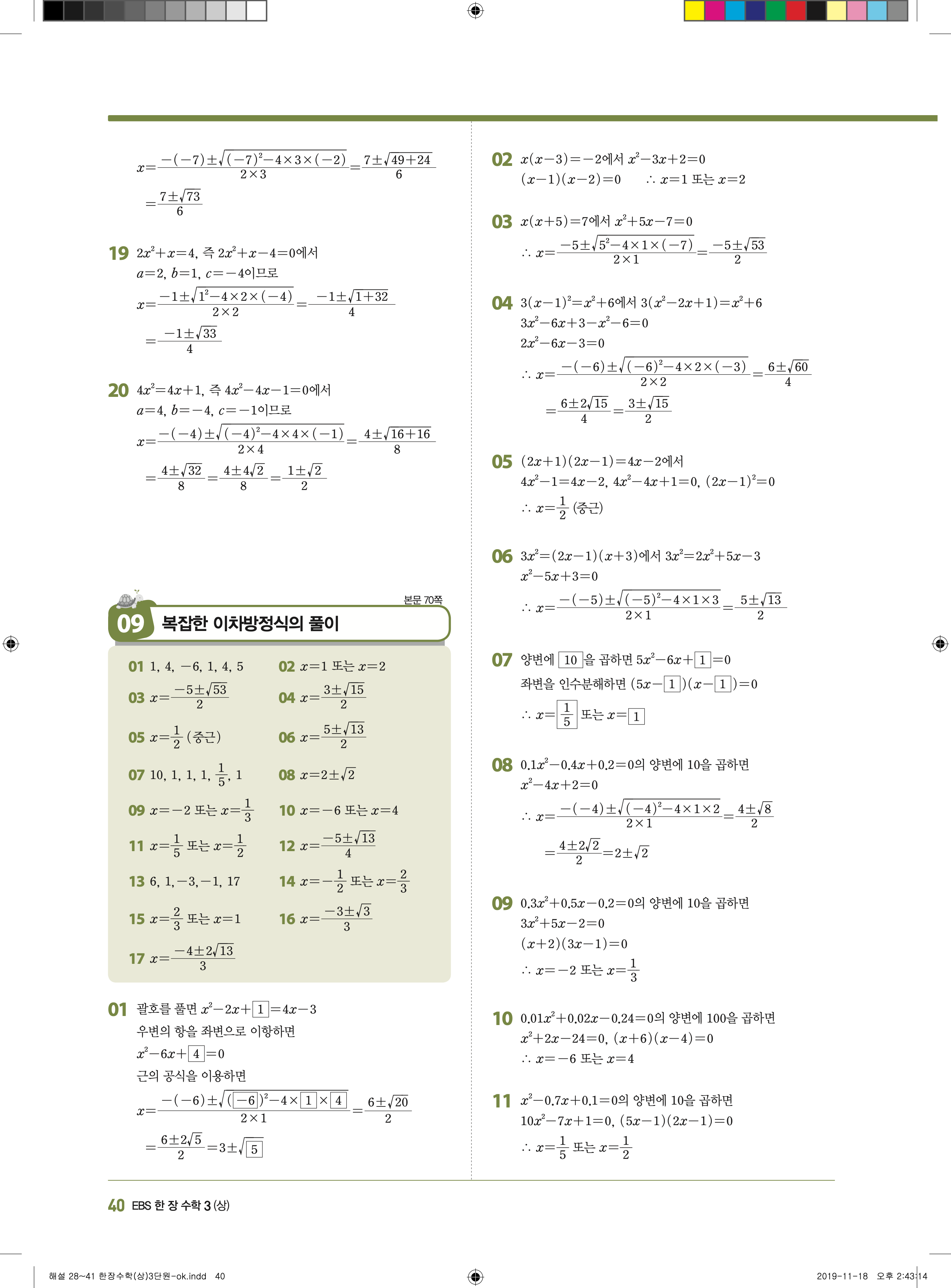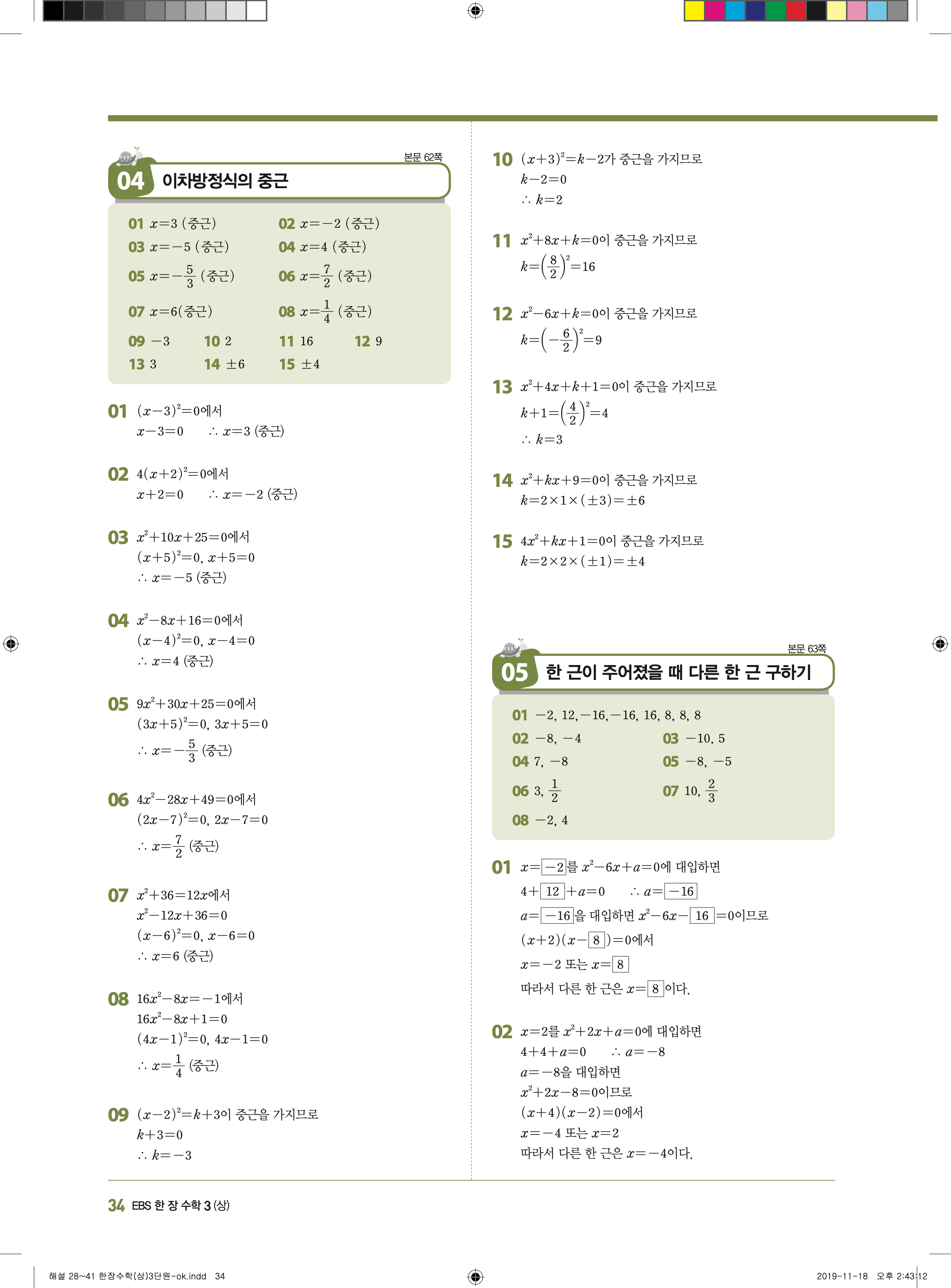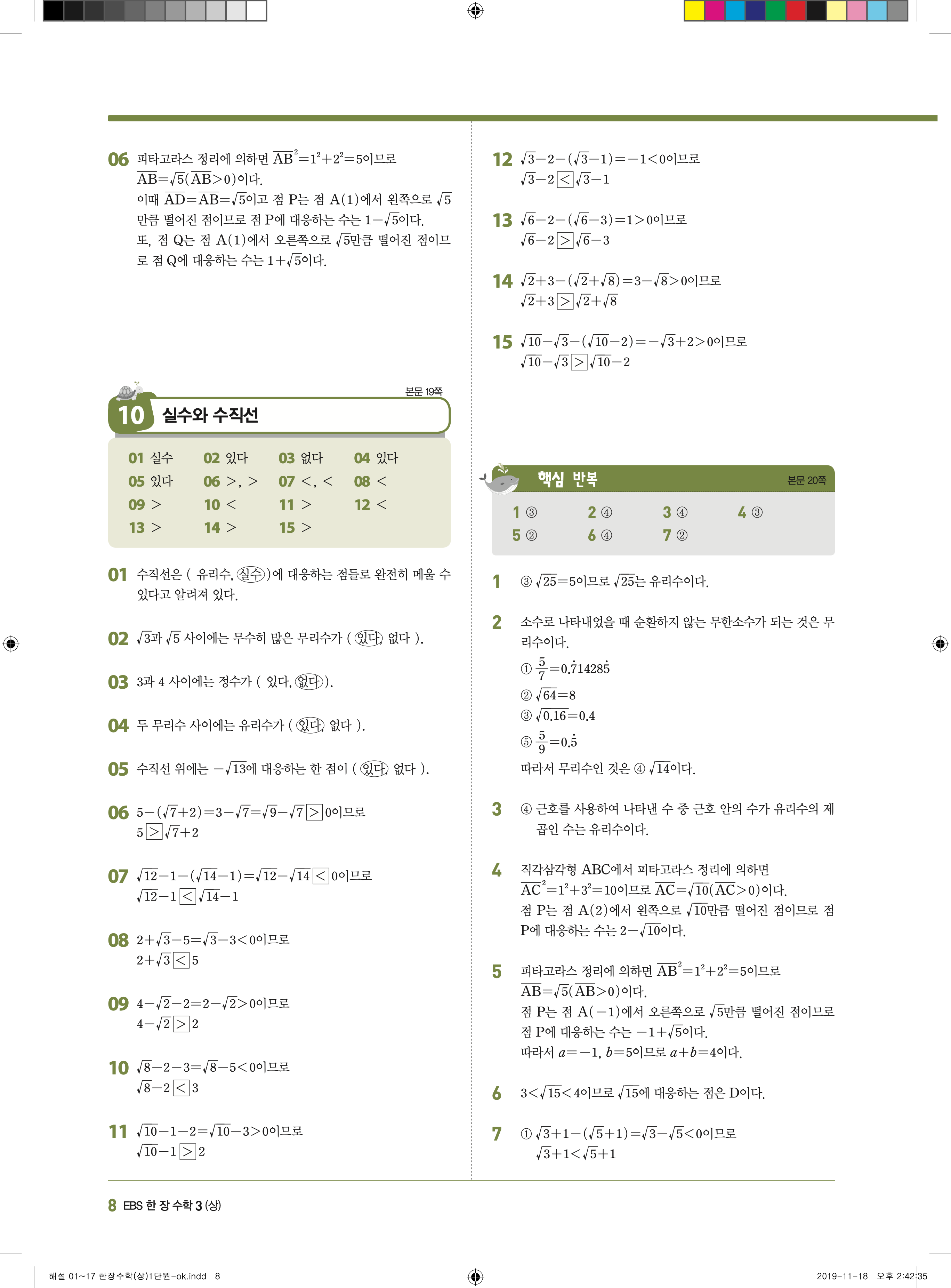 EBS 한장수학 중3상 3-1 답지 해설 바로보는 사진답지 빠른답지 모바일최적화